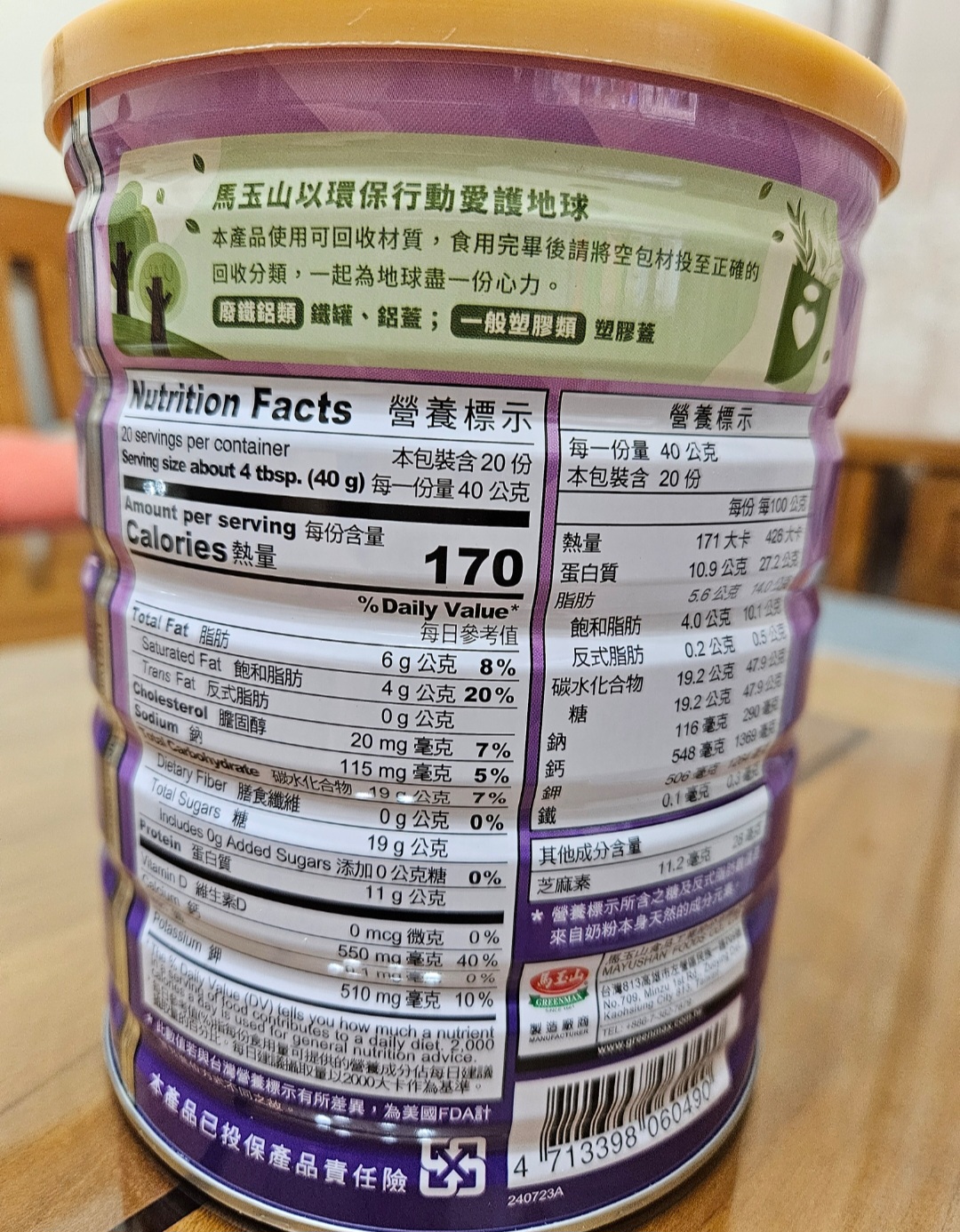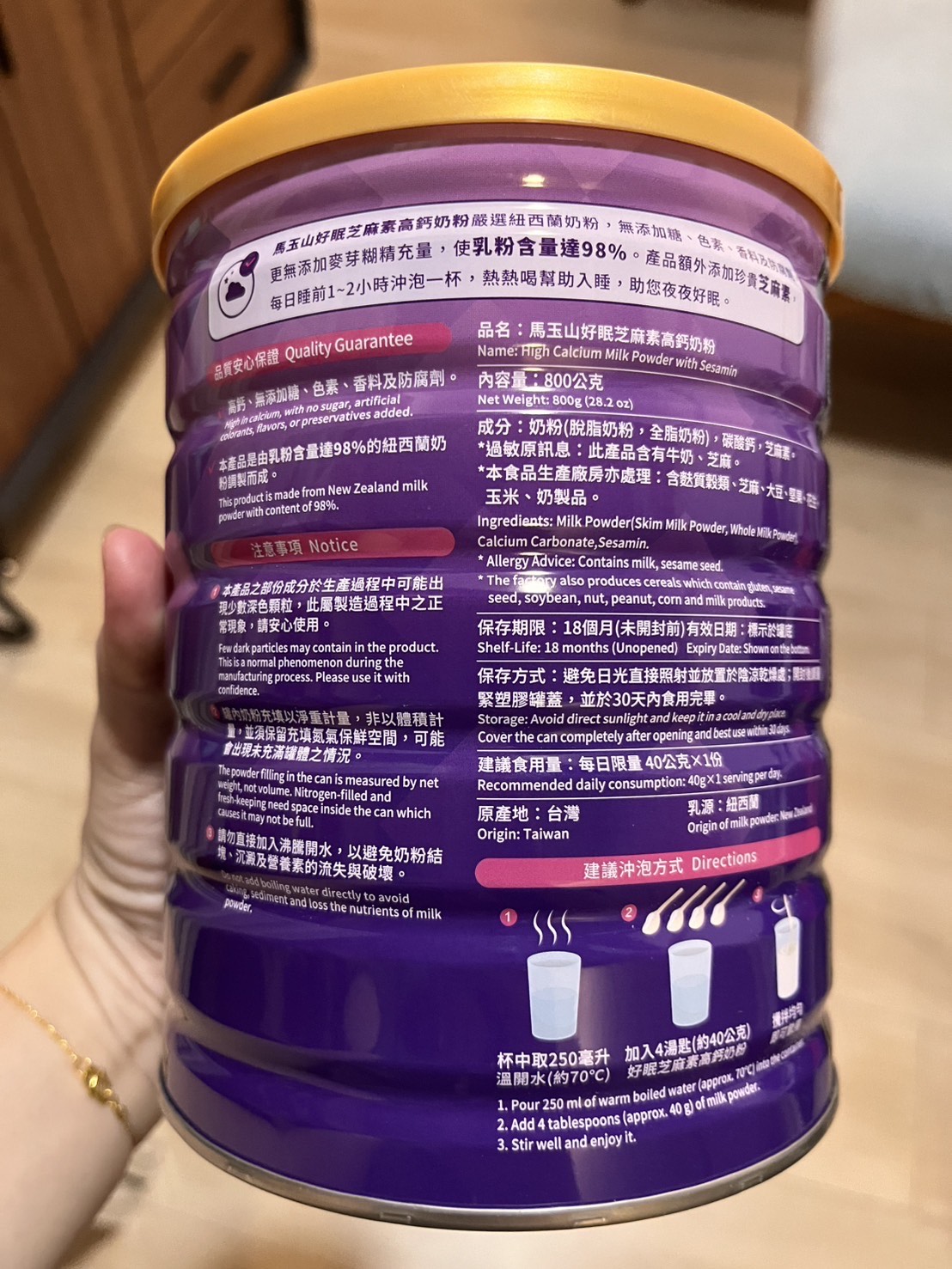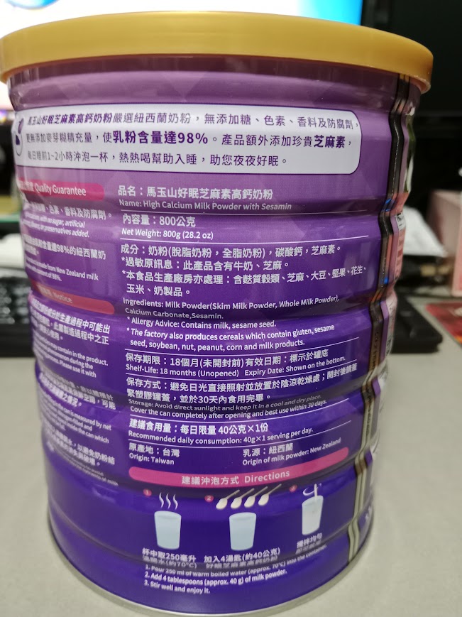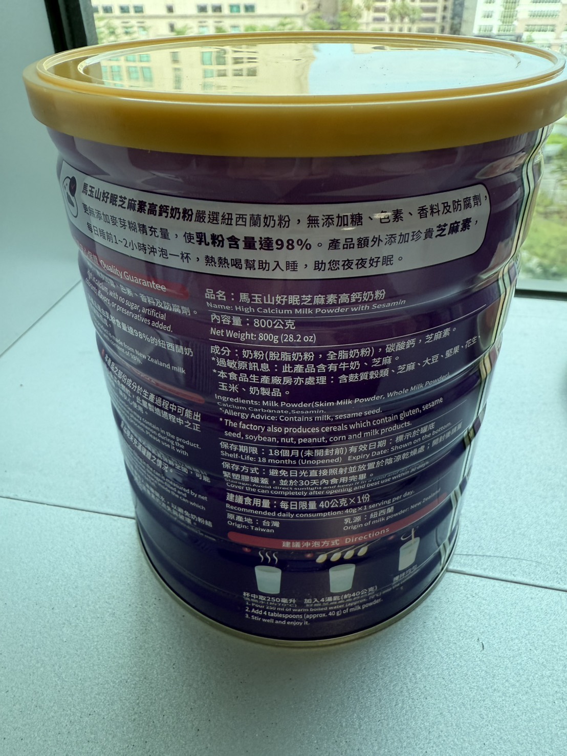 | 試用產品規格 | 馬玉山好眠芝麻素高鈣奶粉(800g/罐)+馬玉山觀光工廠入園門票及DIY體驗劵 |