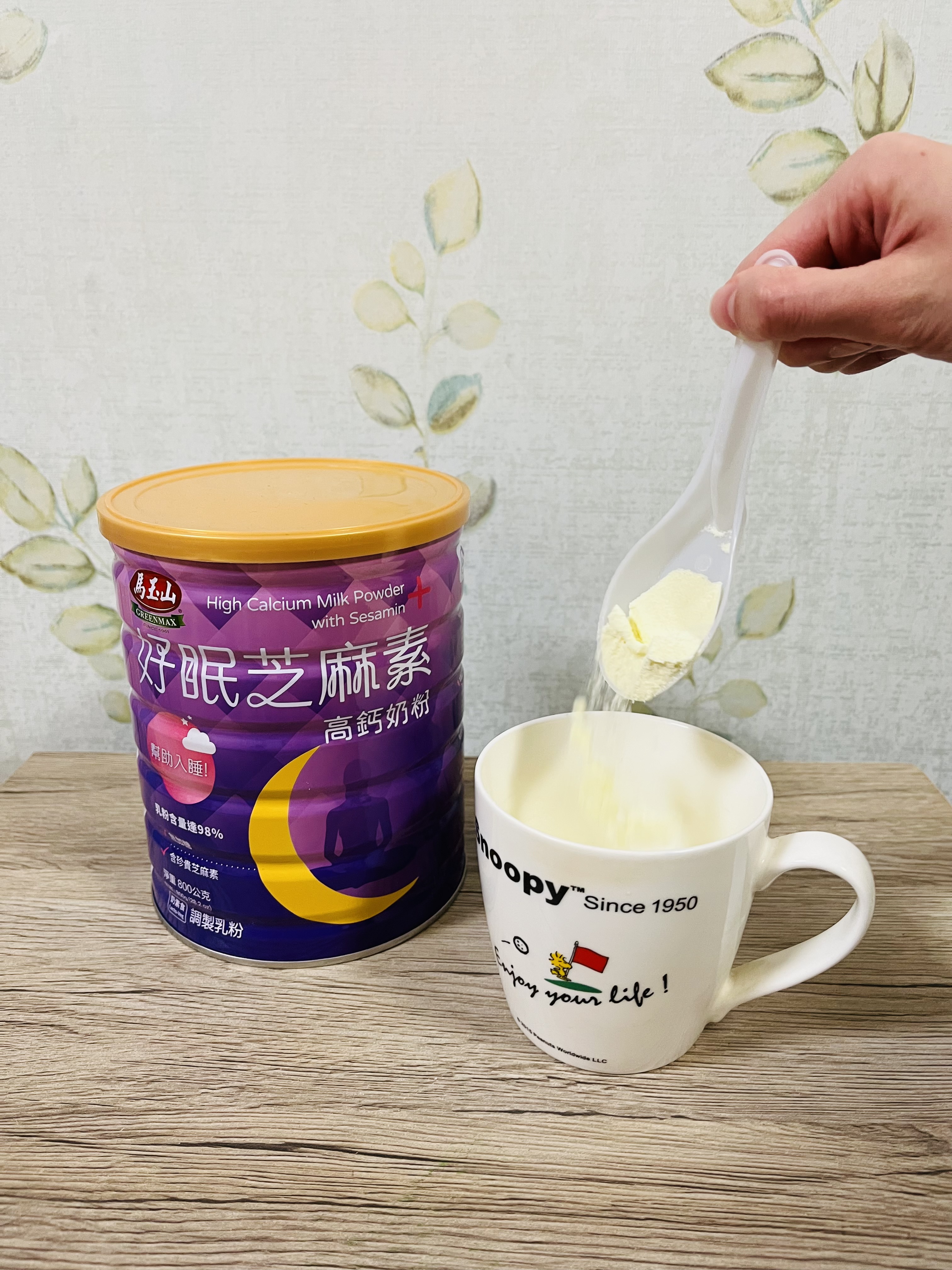取250毫升溫開水(約70°C),加入4湯匙(約40公克)好眠芝麻素高鈣奶粉,攪拌均勻即可飲用。