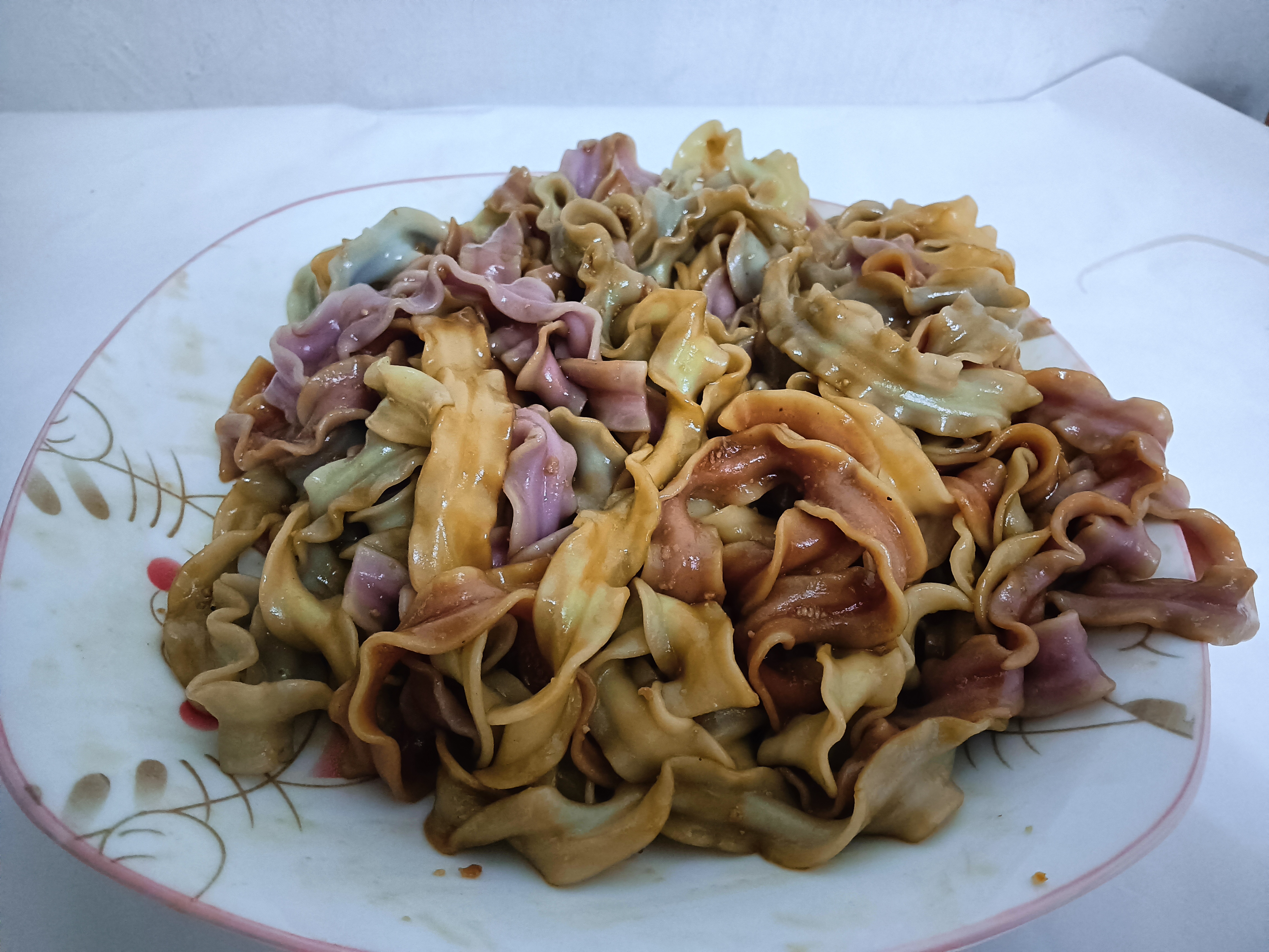 麵體:小麥麵粉、水、菠菜粉、甜菜根粉、紫地瓜粉、南瓜粉、藍藻粉、蝶豆花粉、鹽