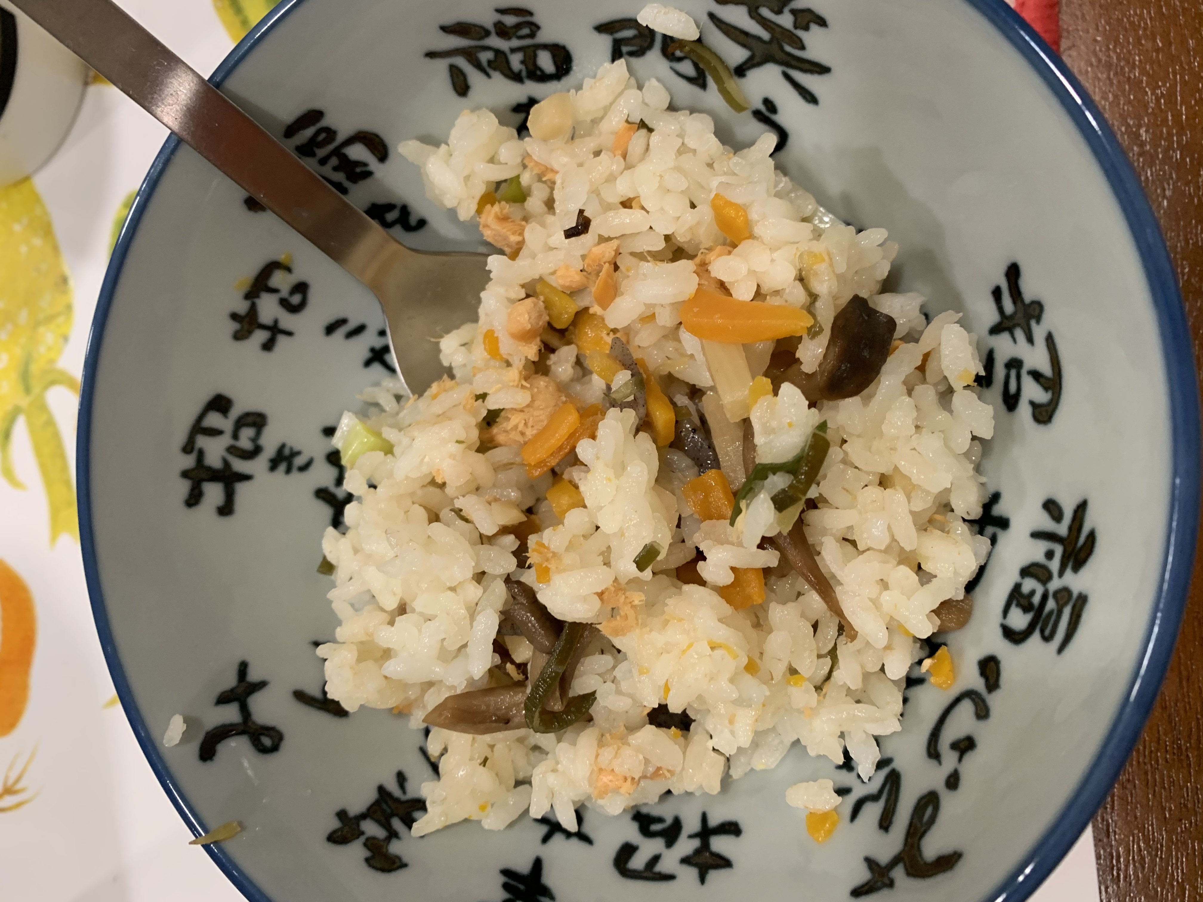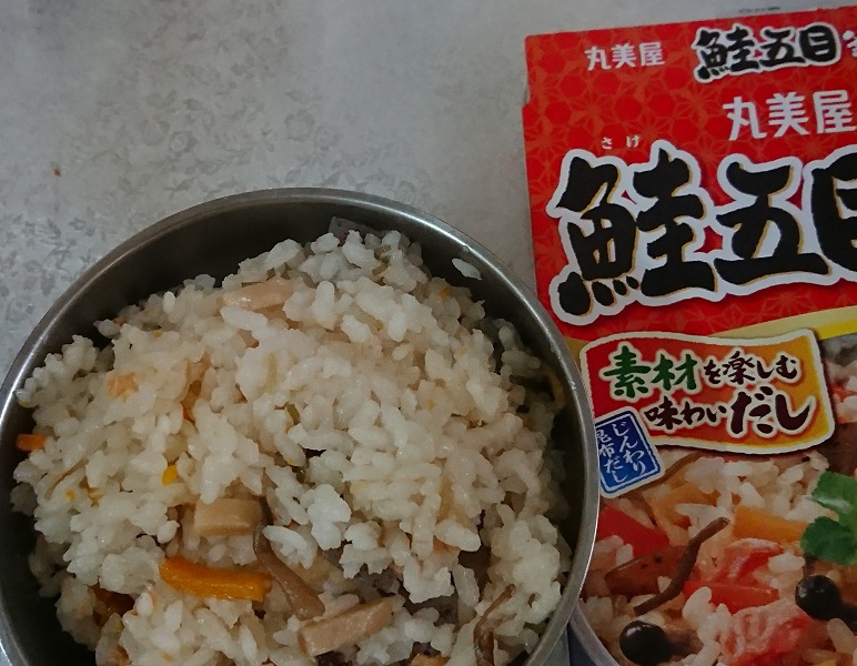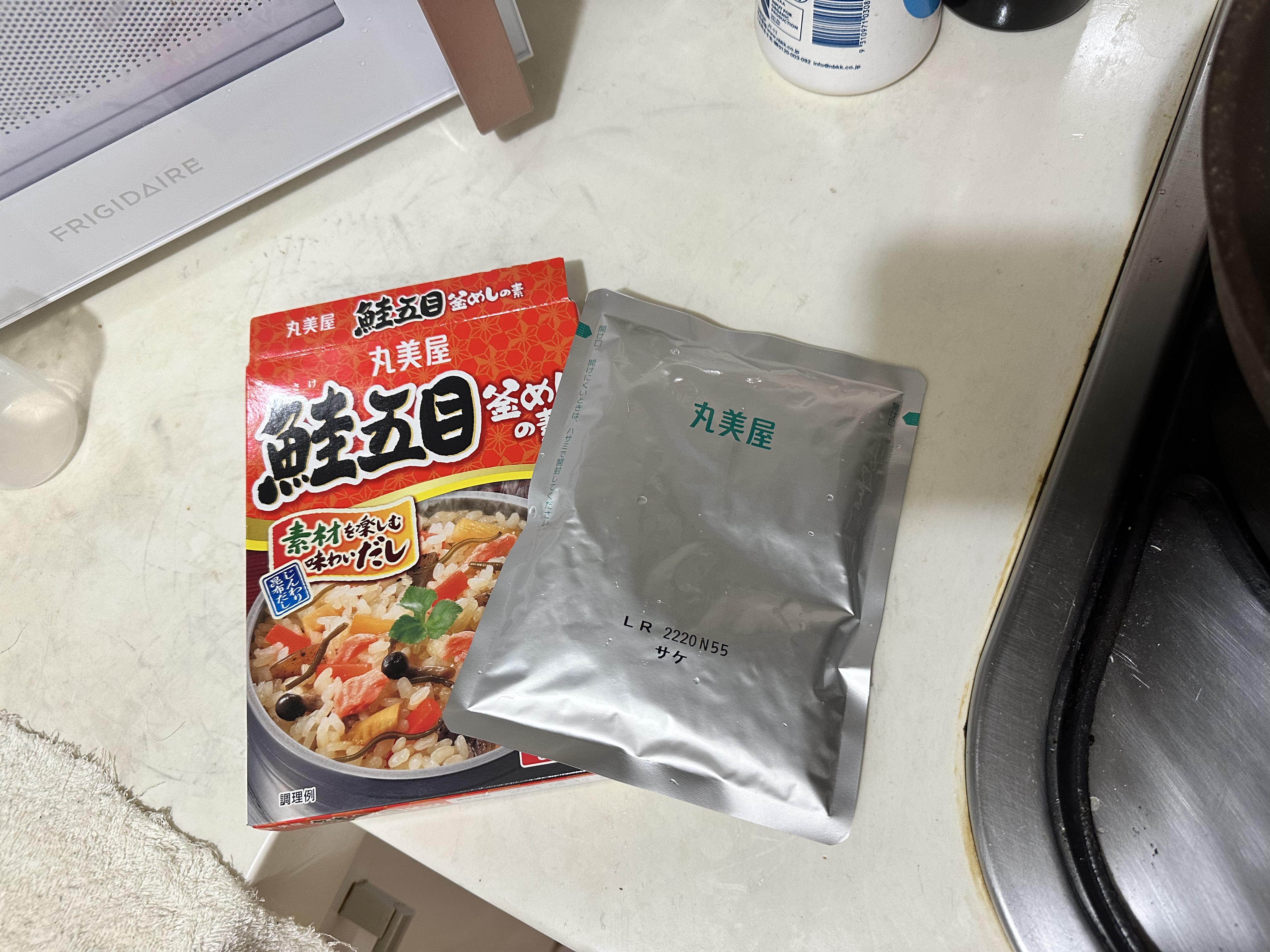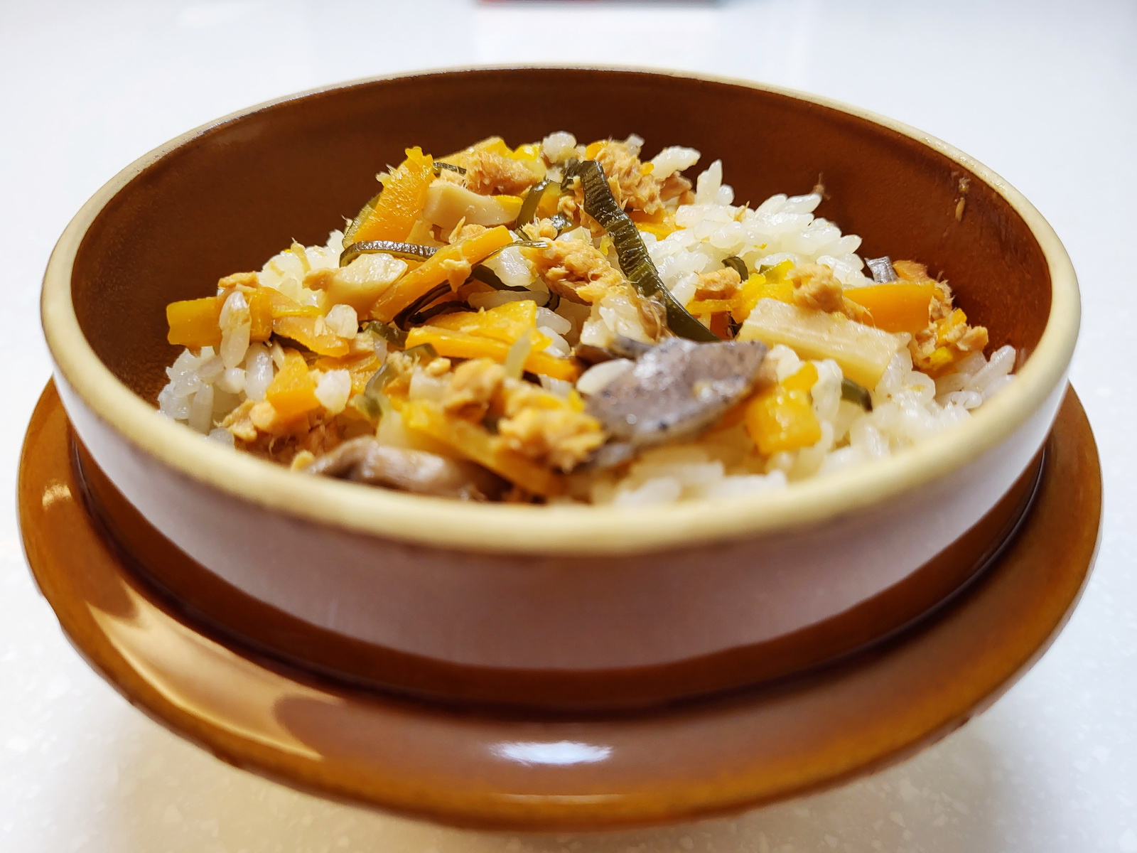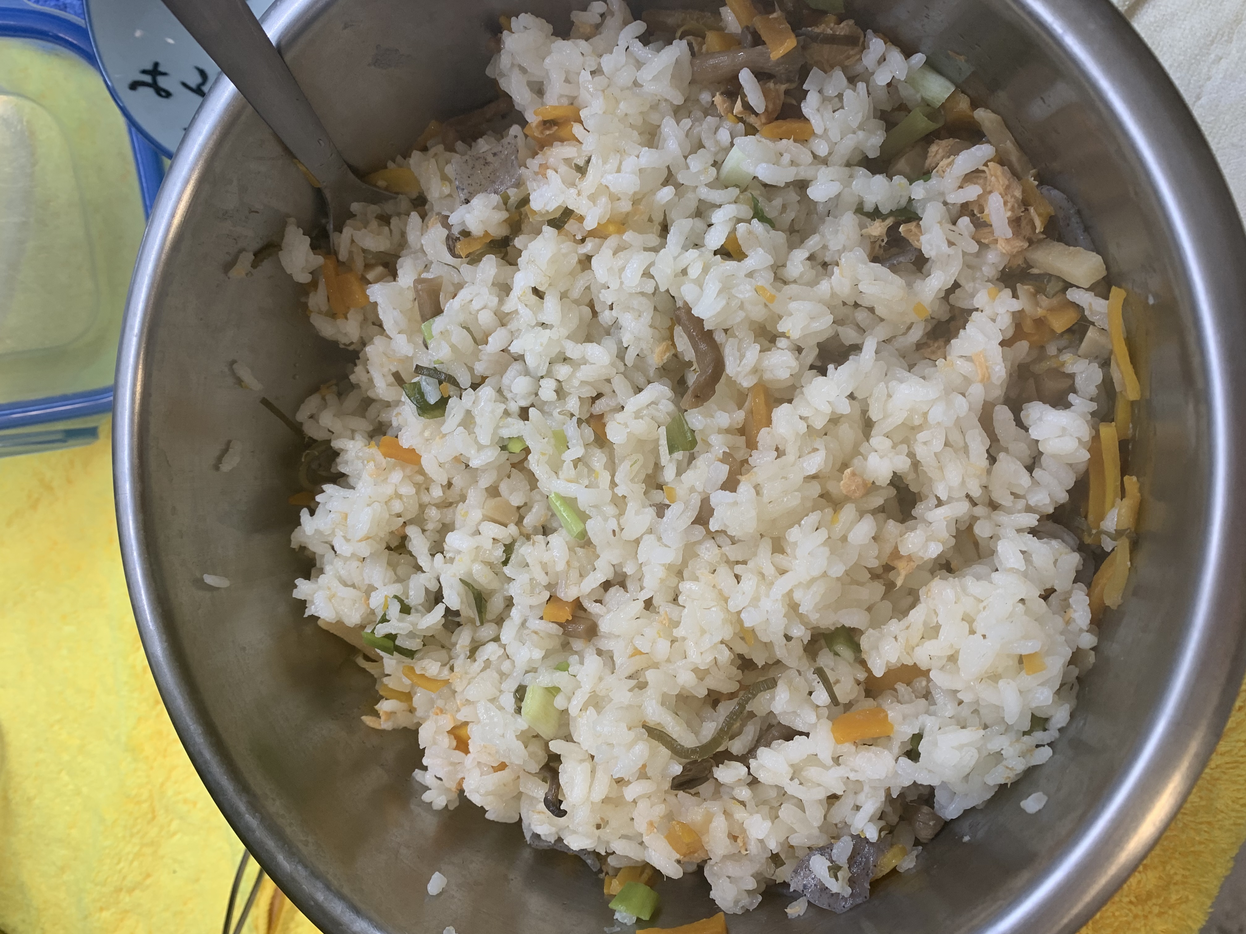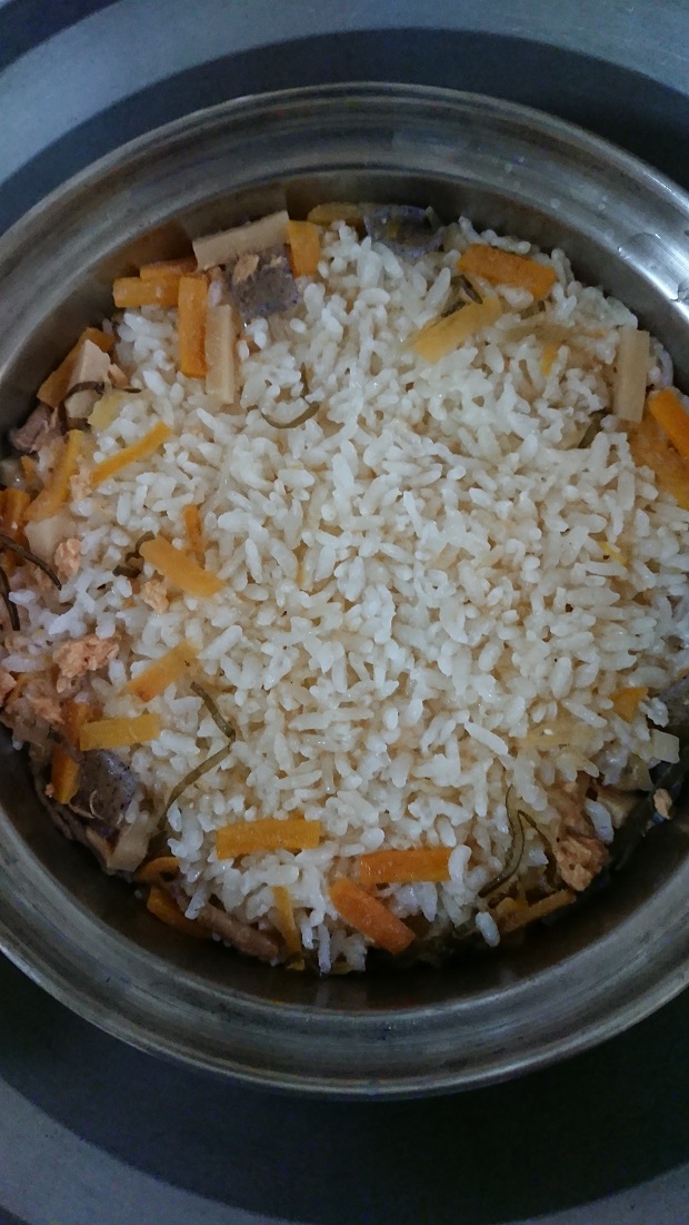 3杯米洗淨後加水,加入釜飯料,將其放入電子鍋或電鍋進行烹煮,待其烹飪完成後即可享用。