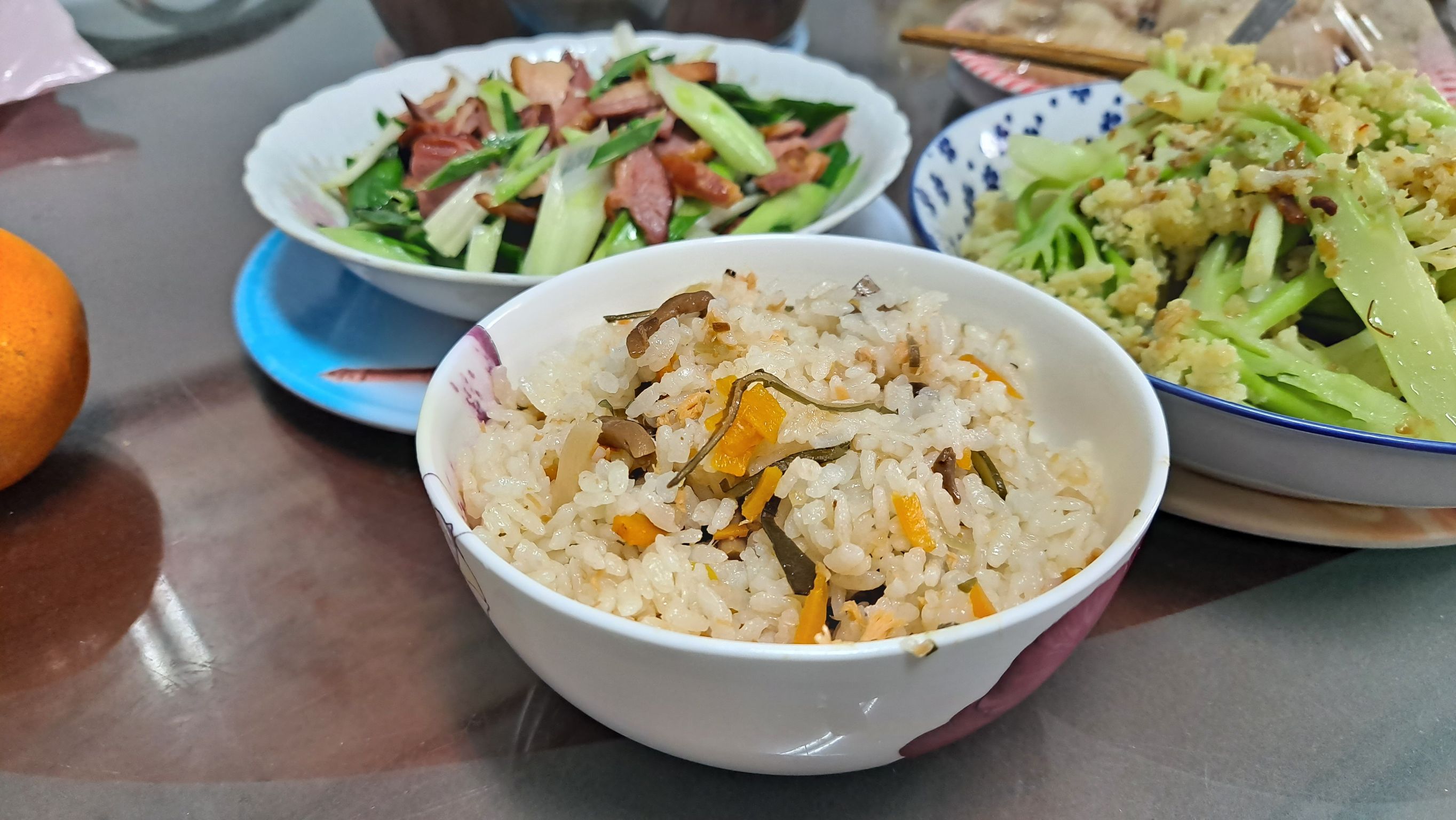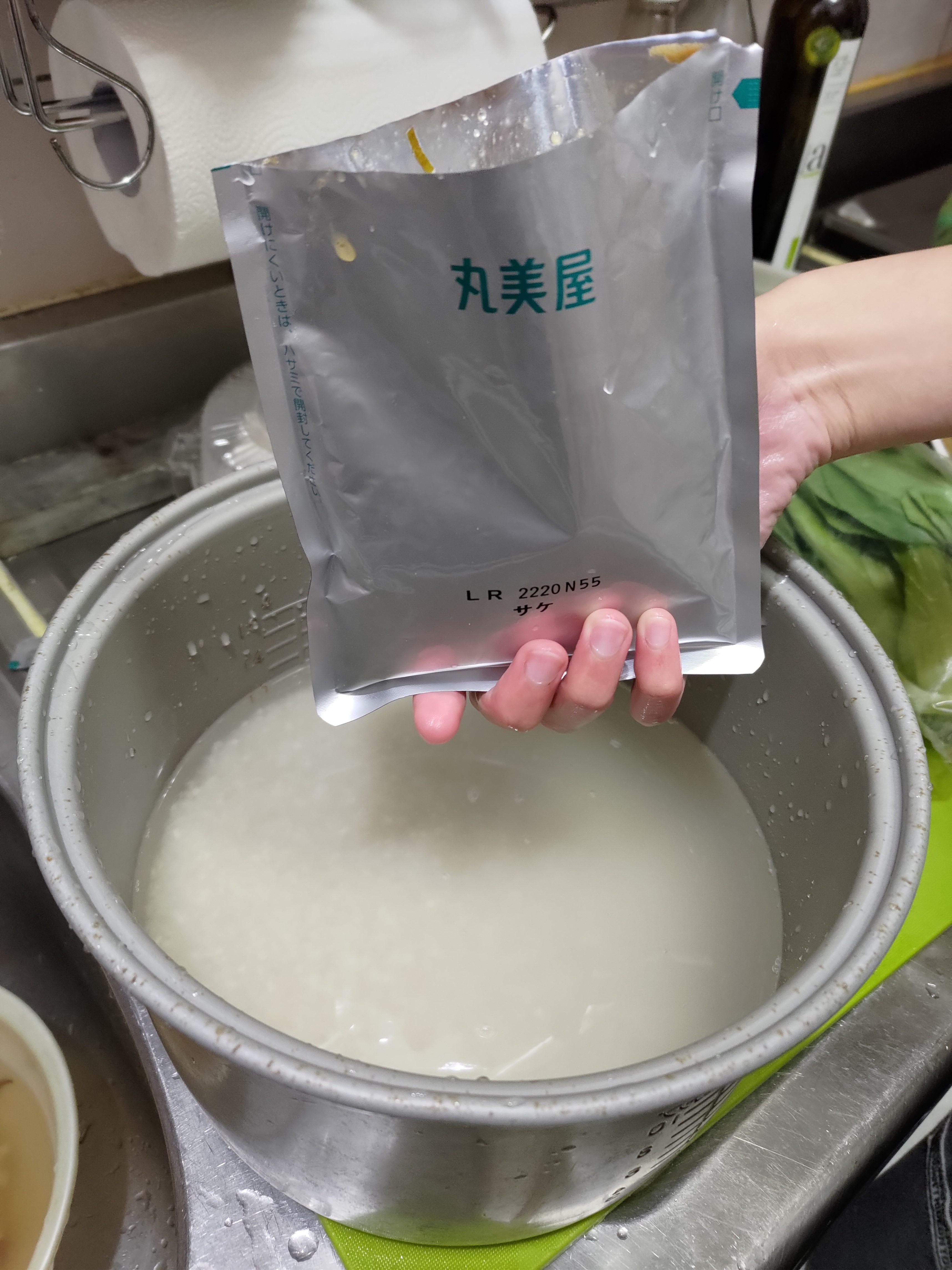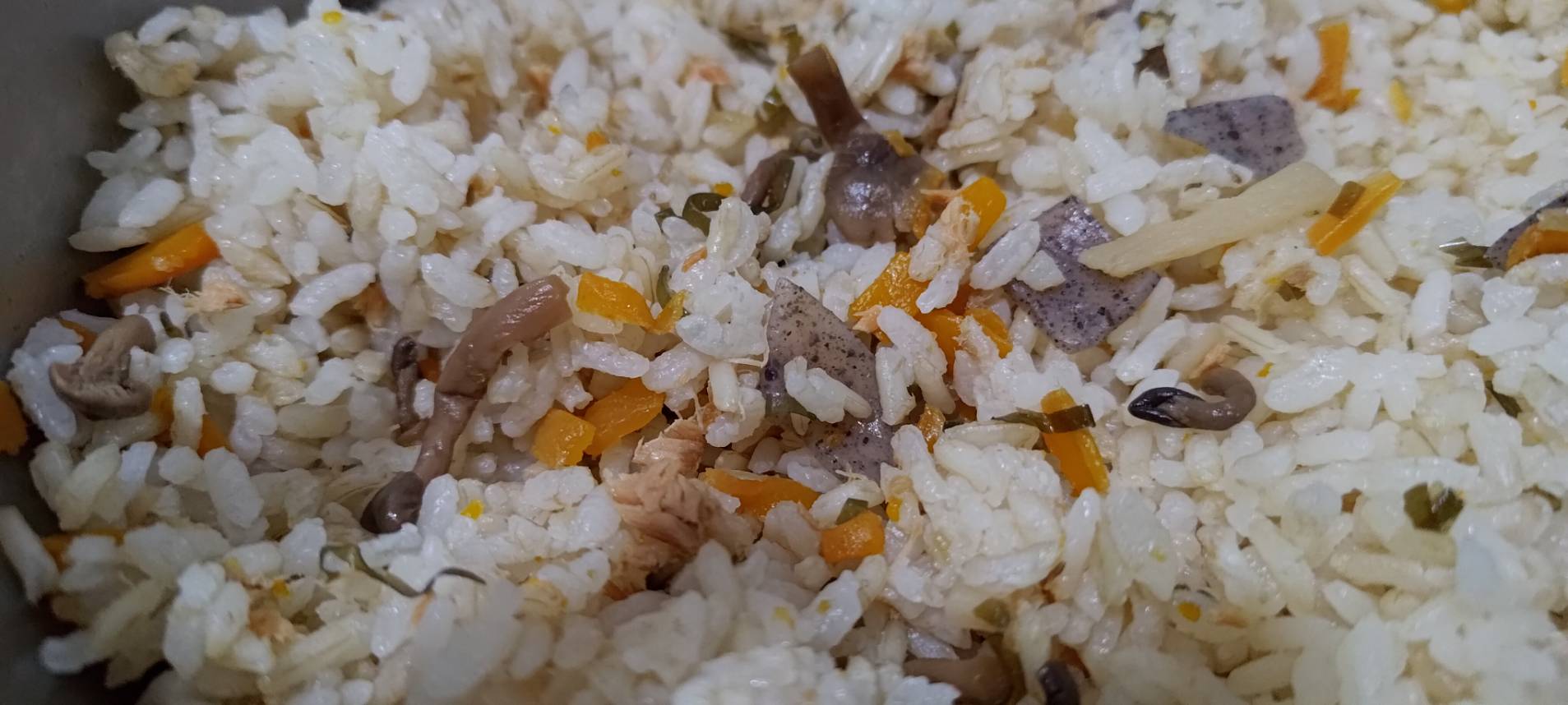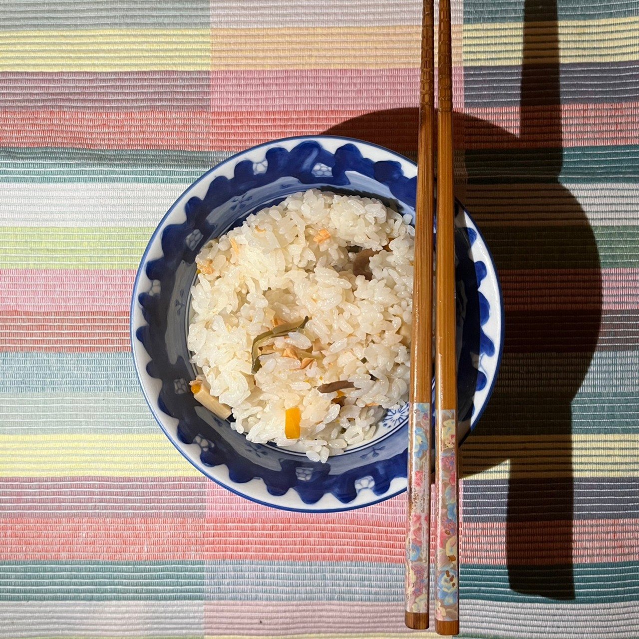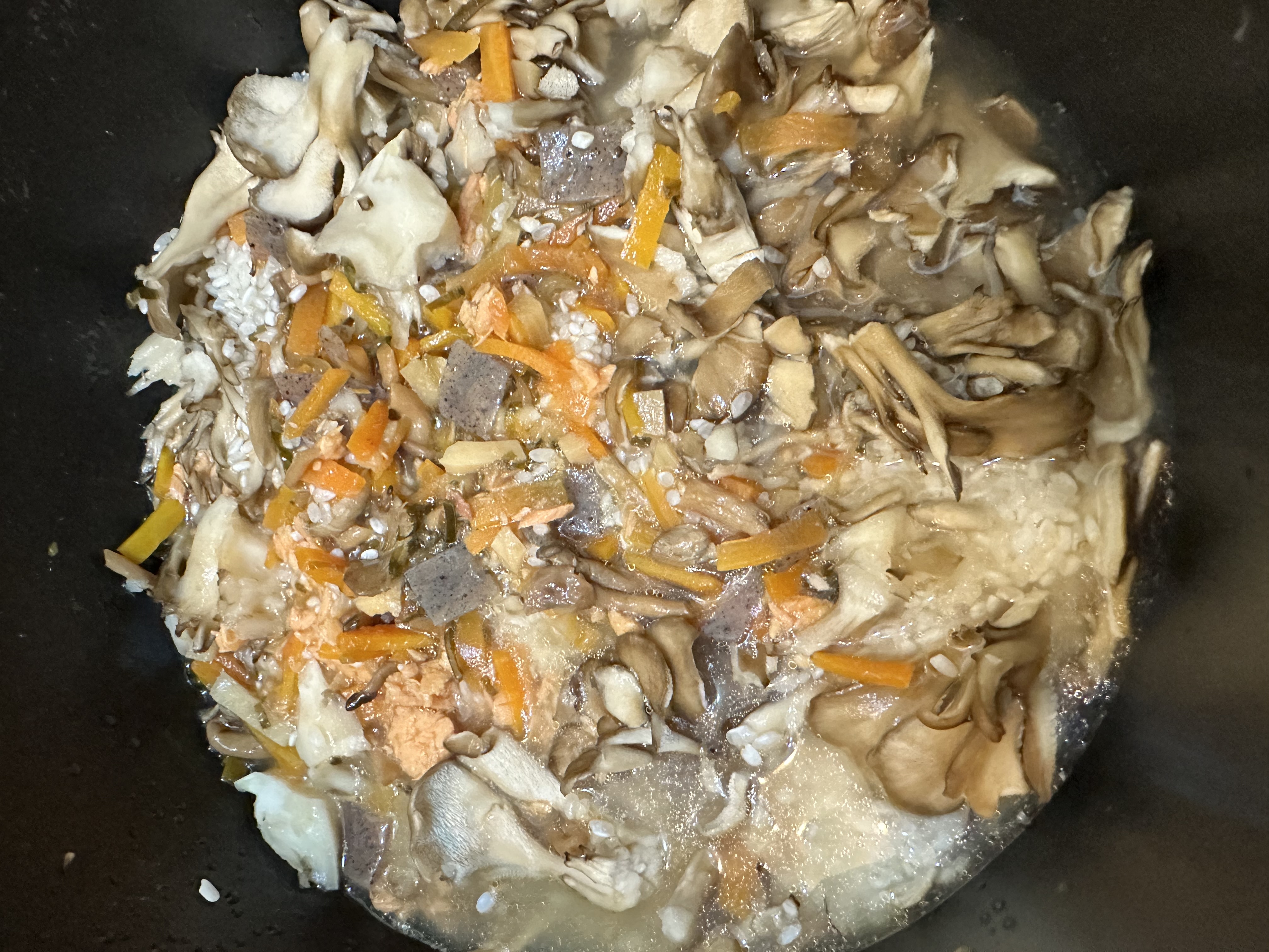 3杯米洗淨後加水,加入釜飯料,將其放入電子鍋或電鍋進行烹煮,待其烹飪完成後即可享用。