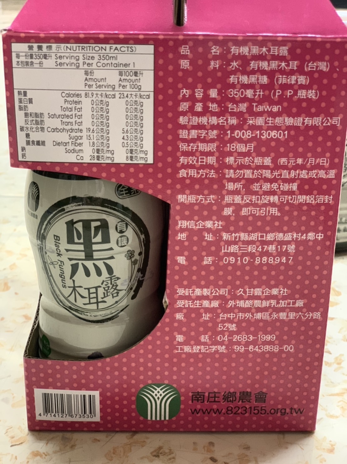 苗栗南庄農會 有機黑木耳露 一天一瓶健康又美麗
