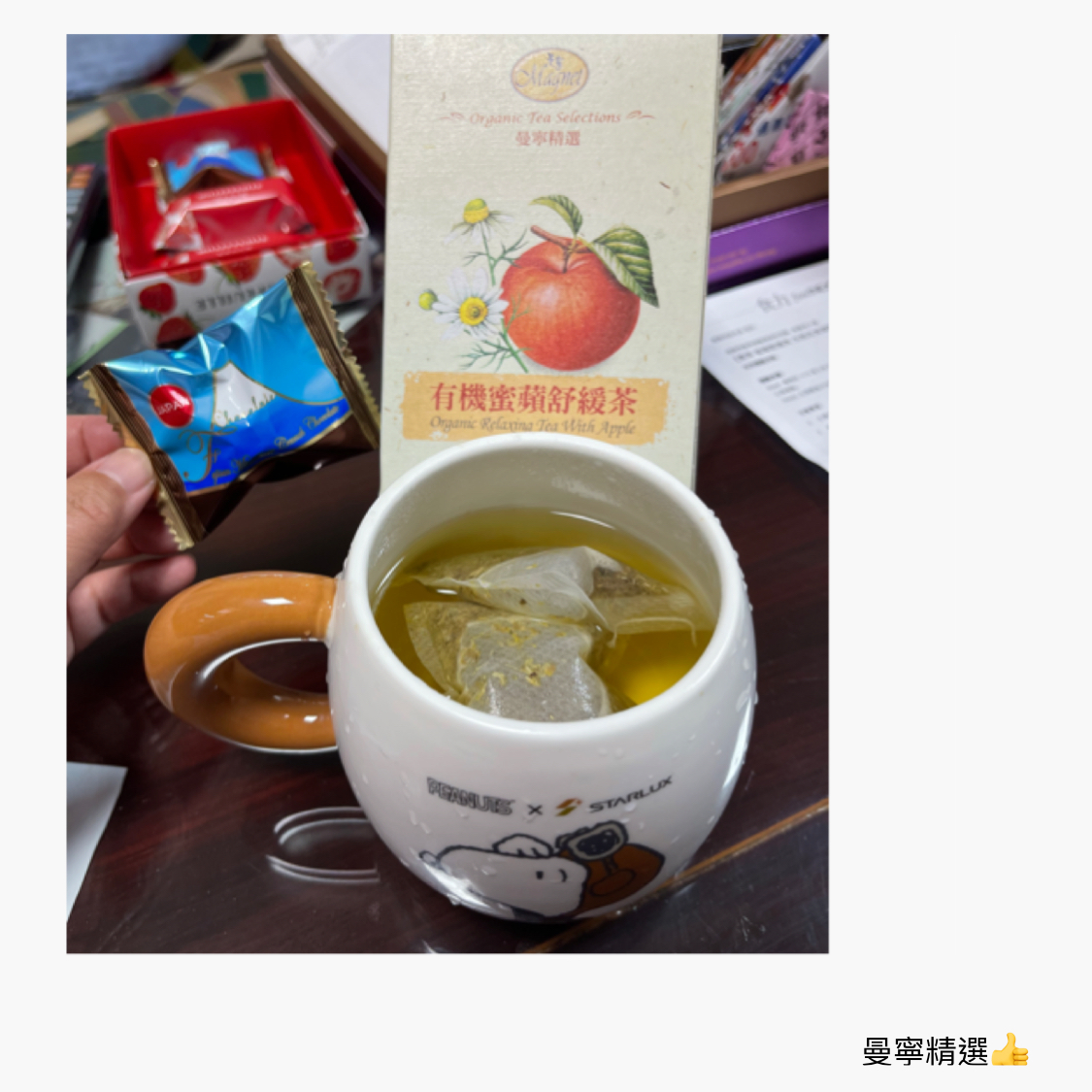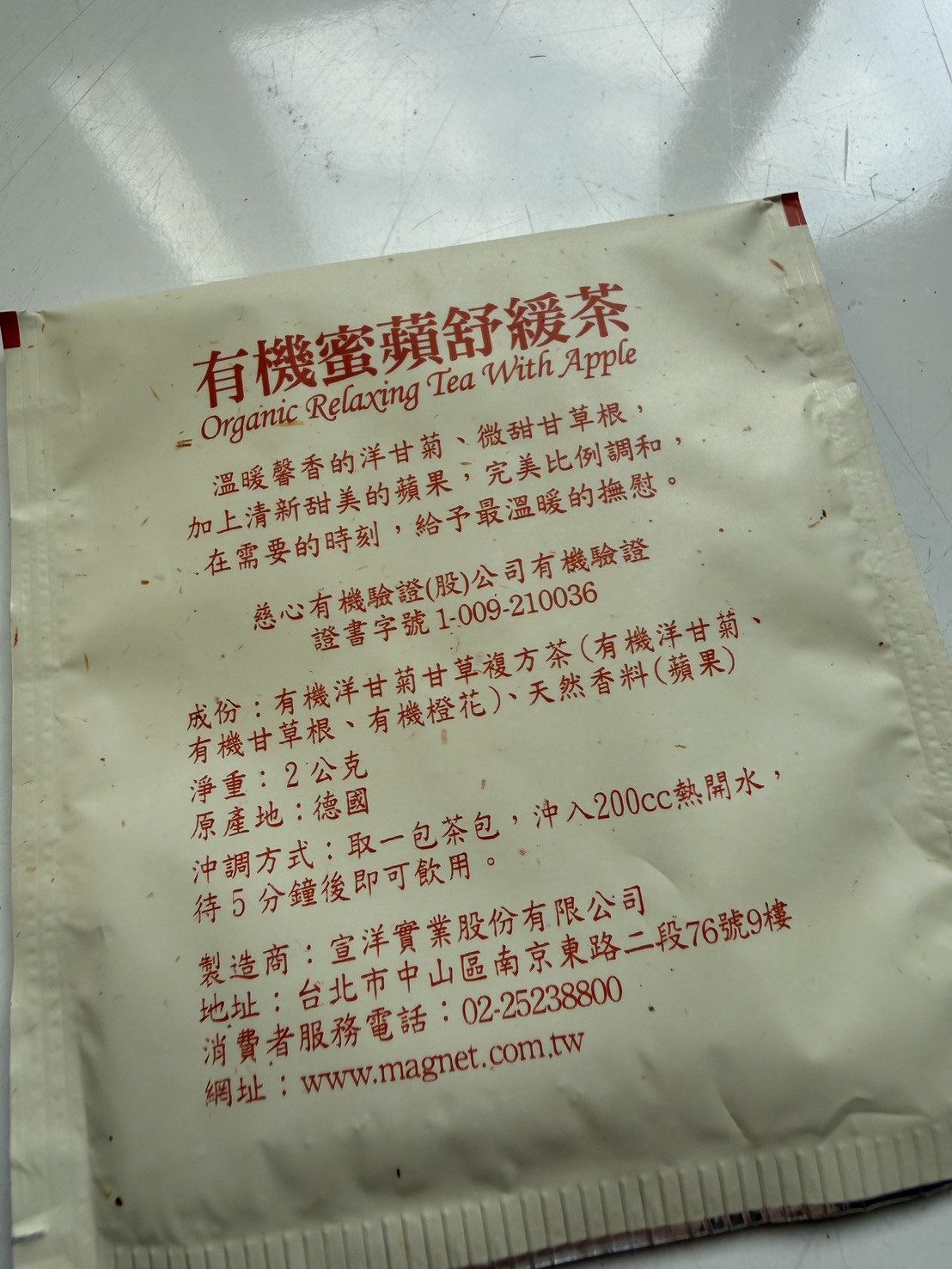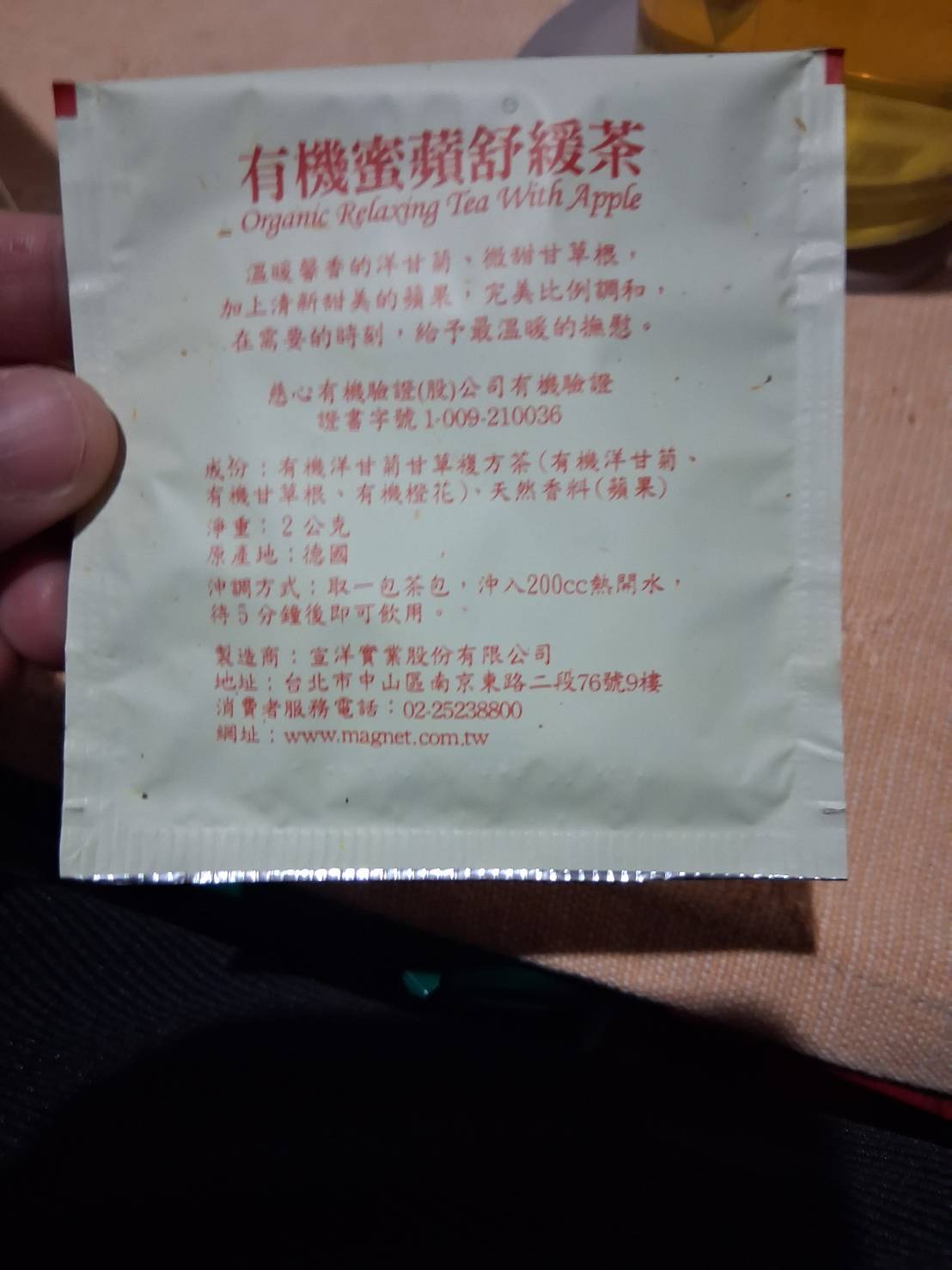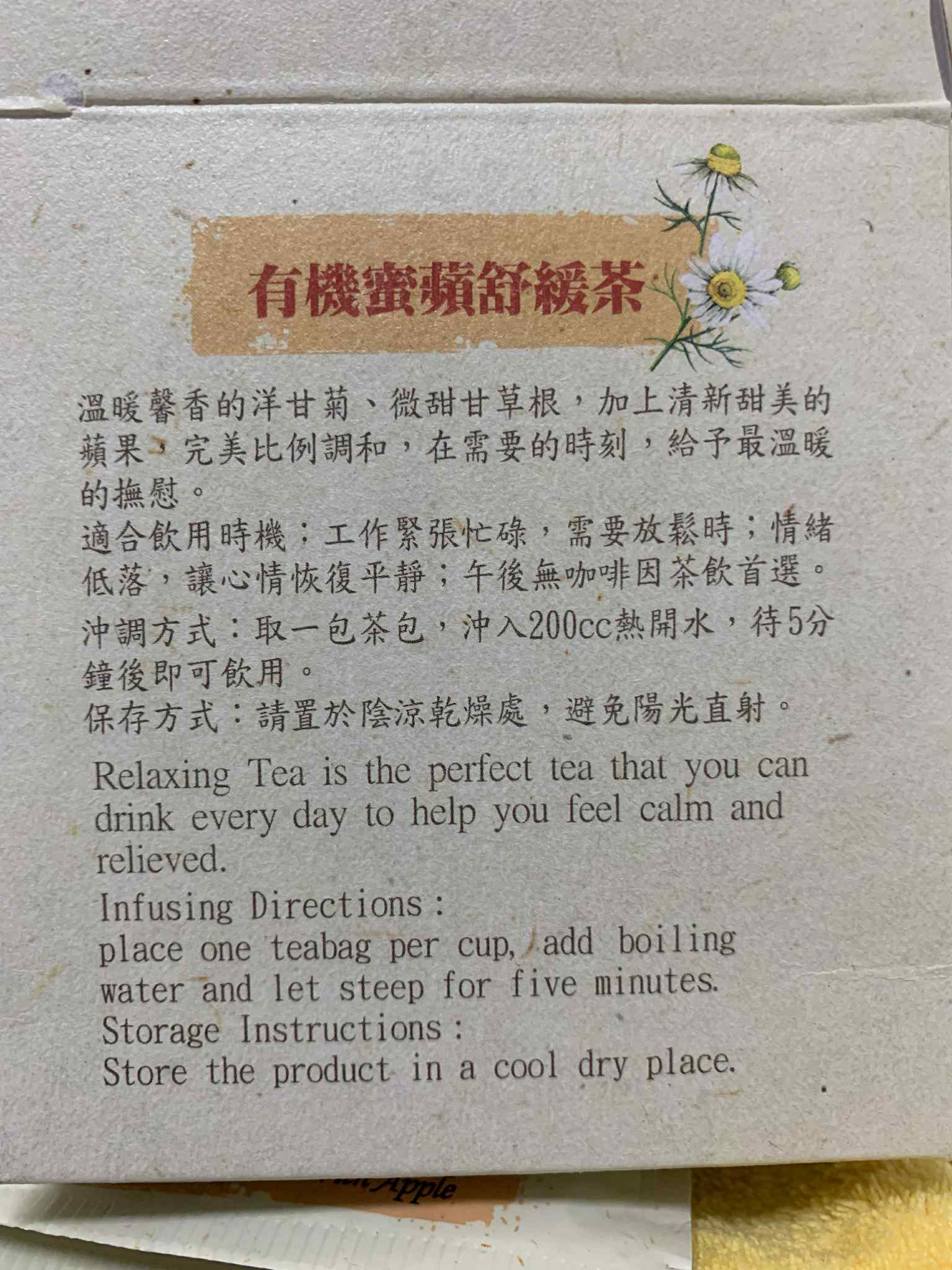 回列表 曼寧 蜜蘋舒緩茶 天然花草調配,溫暖每一刻的舒心時光 市價179元 (免費申請) 所需等級 一般會員以上 所需學分 60 體驗份數 15 關注人數 1086 申請人數 269 申請截止 品牌業者:曼寧 負責廠商 宣洋實業股份有限公司 廠商地址 臺北市中山區南京東路二段76號9樓 產地 台灣 試用產品規格 2g*20入 食品業者登錄字號 A-184747208-00000-8 投保產品責任險字號 0522字第25AML0000169號 心得分享 商品介紹 商品成分 使用方法 注意事項 體驗名單 9.1 曼寧 蜜蘋舒緩茶 茶湯口感 8.9 風味層次 9.1 香氣濃厚 9.1 包裝質感 8.9 建議推薦 9.1 心得分享 15則 黃建霖 金食達人 37歲 臺中市 2026/01/14 對曼寧 蜜蘋舒緩茶留下評價 10 未來不知道,但就目前為止,這是我喝過表現最好的洋甘菊茶1.香氣:熱水沖下去時,很快就能感受到它的香氣,讓人迫不及待想喝。2.顏色:茶湯顏色呈現金黃色,確實如品名,會讓人感到舒緩3.風味:一入口就能喝到洋甘菊的味道,濃度適中,配合著橙花、甘草根,蘋果香氣,從頭到尾都有層次。4.推薦程度:如果有朋友想買洋甘菊茶,一定會推薦,也會列入自己茶包購買的選項內5.使用情境:當你累得跟狗一樣回到家,坐在椅子上,靜靜的喝這個,讓人感到很舒服*一個小提醒,成分當中,沒有蘋果,可能得多加個風味,或者乾脆補一咪咪蘋果乾進去,會比較沒有法規疑慮 洪金蘭 金食達人 56歲 新北市 2026/01/16 對曼寧 蜜蘋舒緩茶留下評價 10 我喜歡這款<曼寧有機蜜蘋舒緩茶>的紙盒包裝質感,相當符合它天然有機的訴求,它清新自然的彩繪圖案也能讓人產生無壓的視覺感受。包裝盒的文字說明也表明無人工添加物,為純粹的花草成份等安心保證,讓人在未飲用前即已放下不明的疑慮,而能十足地享受它的天然風味。它帶著蘋果般的清香和甘甜味,很能夠讓人放鬆心情,特別是在餐與餐之間的空檔時間喝上一杯,可舒緩疲憊緊張的心靈;或是在晚餐後來上一杯,既可幫助消化又可讓身體放鬆,有助於夜晚的睡眠。我認為<曼寧有機蜜蘋舒緩茶>零醣、零咖啡因、零人工添加物,具有天然果香的療癒口感,實在是忙碌的現代人停下來緩口氣的好選擇。 晴 金食達人 26歲 桃園市 2026/01/19 對曼寧 蜜蘋舒緩茶留下評價 10 身為每天盯著電腦的上班族,下班後最想做的就是放鬆一下。平常我其實超愛喝飲料,但只要喝到含咖啡因的茶類,晚上幾乎都睡不著,所以一直不敢亂喝。這次抽到曼寧有機蜜蘋舒緩茶,剛好可以在晚上安心喝。泡的時候就聞到淡淡蘋果香,還有一點洋甘菊味,光聞就覺得心情放鬆。喝起來清爽順口,不會太甜,也不會有負擔感。我通常洗完澡,泡一杯坐在沙發上邊滑手機邊喝,感覺一整天的緊繃慢慢消散掉。對我這種想戒掉咖啡因,但又愛喝飲料的人來說,真的超級適合每天當小確幸的茶,而且茶包好用又方便,放辦公室或家裡都很適合。 雨涵 鑽石達人 41歲 新竹縣 2026/01/19 對曼寧 蜜蘋舒緩茶留下評價 10 這次體驗的是知名品牌:曼寧 有機密蘋舒緩茶一盒20入獨立包裝,非常方便攜帶,隨時可以沖泡享用,嚴選德國天然植物有機洋甘菊、有機甘草根、有機橙花、配上天然蘋果香料一打開,淡淡的天然花草香香氣餘緩慢慢的飄出。用熱水沖泡, 清香橙花、洋甘菊及清新香甜蘋果的香氣,撲鼻而來,甘草根、蘋果的香甜回甘,讓人口水垂涎,唾液不絕,不知不覺一杯就喝完了。我個人先用100cc熱水沖泡,浸泡約1~2分鐘即可,再加上一點溫水或冷水,就品嘗到風味了。所以一小包,我約可重複2~3次沖泡,一樣別有滋味。整體而言CP值超高,很適合小資族。如果喜歡味道香甜濃郁,可以依照包裝上說明, 一包2克.200cc水沖,浸泡5分鐘,絕對會讓你驚豔不已! 淑君 金食達人 54歲 雲林縣 2026/01/19 對曼寧 蜜蘋舒緩茶留下評價 10 很開心能獲得“曼寧有機蜜蘋舒緩茶”試喝的機會,其實平日就有沖泡曼寧有機花草茶的習慣,因為這一系列的茶皆無咖啡因,又有淡淡的果香,讓人神清氣爽。曼寧是台灣花草茶品牌,產品通過檢測,更加令人放心飲用。 有機曼寧蜜蘋舒緩茶成分~有機洋甘菊甘草複方茶(有機洋甘菊、有機甘草根、有機橙花)、天然香料(頻果),有淡淡的洋甘菊香氣、微甜甘草根加上清淡甜美的蘋果,能放鬆心情、幫助睡眠,是一款無咖啡因、極低熱量又無糖的健康飲品,特別適合下午或晚上飲用。沖泡方便,冬天可熱泡、夏天可冷泡放冰箱,一年四季皆可飲用。對於喝膩白開水又不想喝手搖飲或是害怕攝取太多咖啡因的人,是一個很好的飲品選擇。 angel 鑽石達人 55歲 嘉義市 2026/01/12 對曼寧 蜜蘋舒緩茶留下評價 9 最近試喝了這款曼寧「有機蜜蘋舒緩茶」,簡約優雅的包裝看著就很舒心。剛撕開包裝,就有一股清新香甜的蘋果氣息撲鼻而來,其中還夾雜著淡淡的洋甘菊芬芳,光是用聞的就已經很治癒了。實際沖泡後,茶湯呈現透亮的琥珀色。入口後,蘋果的清甜與草本的溫潤完美融合,口感甘醇不苦澀。最棒的是這款茶不含咖啡因,無論是忙碌午後想切換心情,或是睡前想靜心暖身,都不用擔心影響睡眠。在寒冷的天氣裡,握著冒著熱氣的茶杯,伴隨陣陣果香,彷彿所有的疲憊都隨之消散。這是一款集香氣、口感與舒壓於一身的優質茶飲,有機成分喝起來更安心,真心推薦給也喜歡天然果茶的朋友們! Meng Huang 鑽石達人 48歲 臺中市 2026/01/15 對曼寧 蜜蘋舒緩茶留下評價 9 這次試用的產品-曼寧有機蜜蘋舒緩茶,成分天然且通過慈心