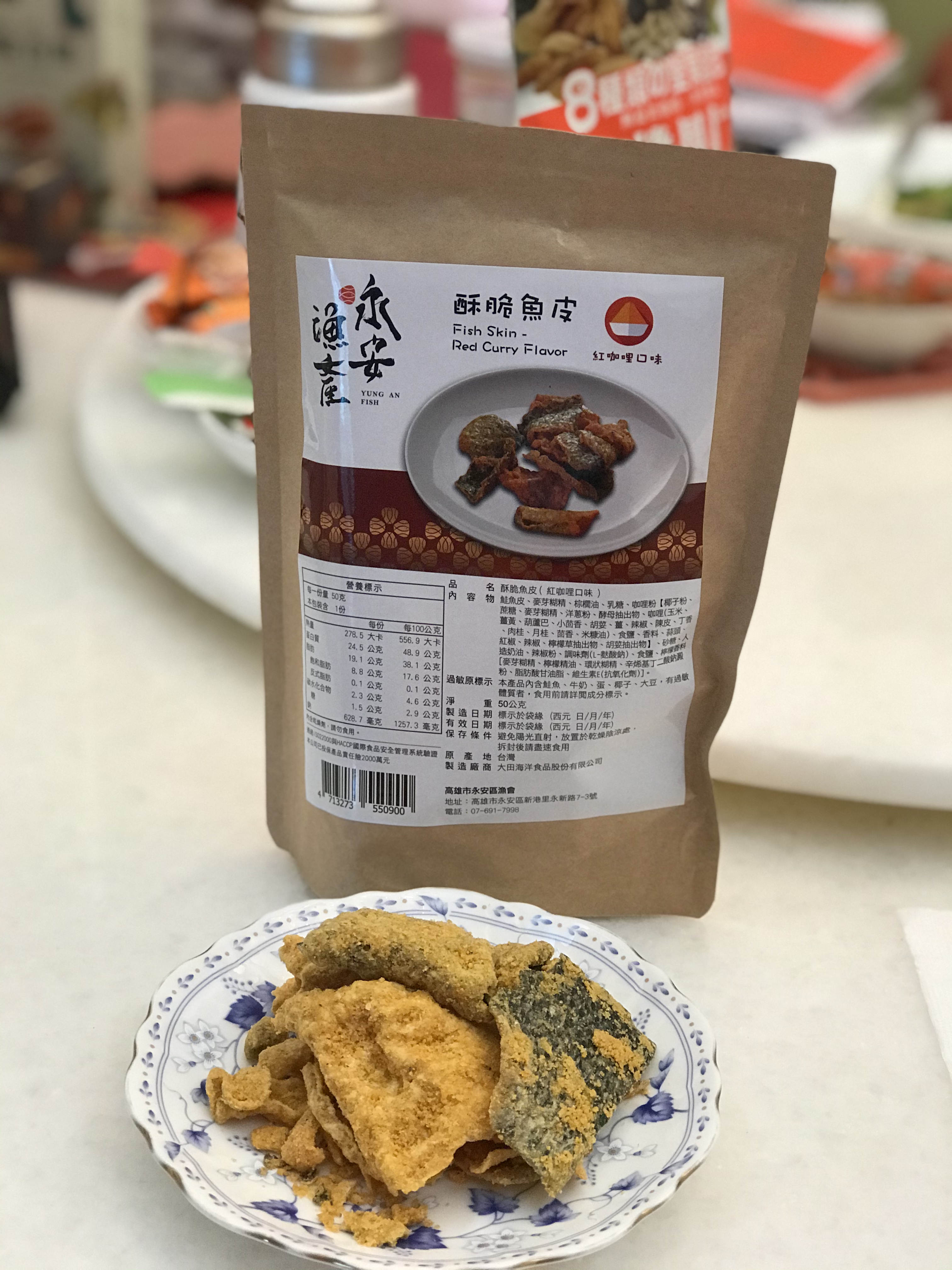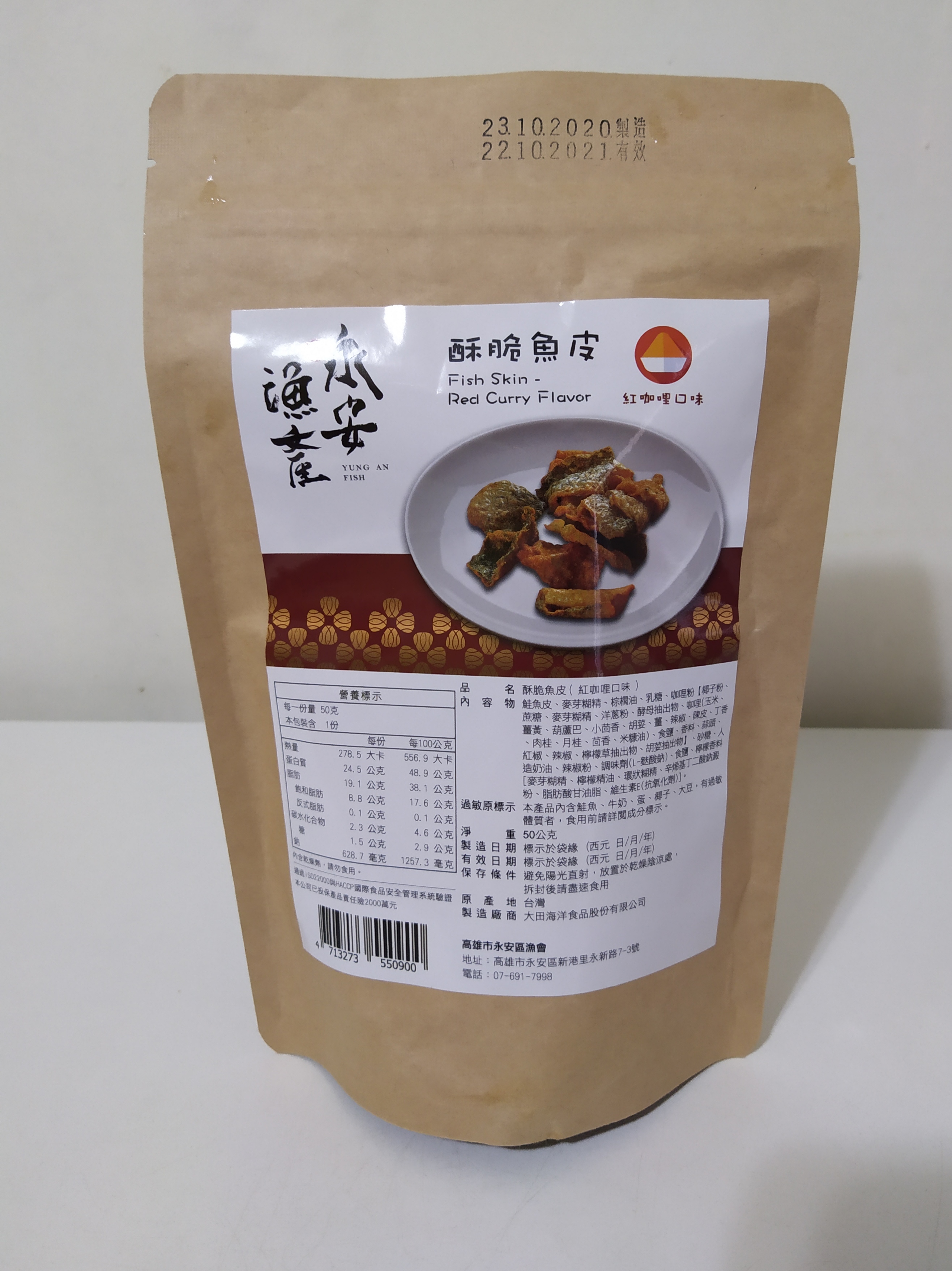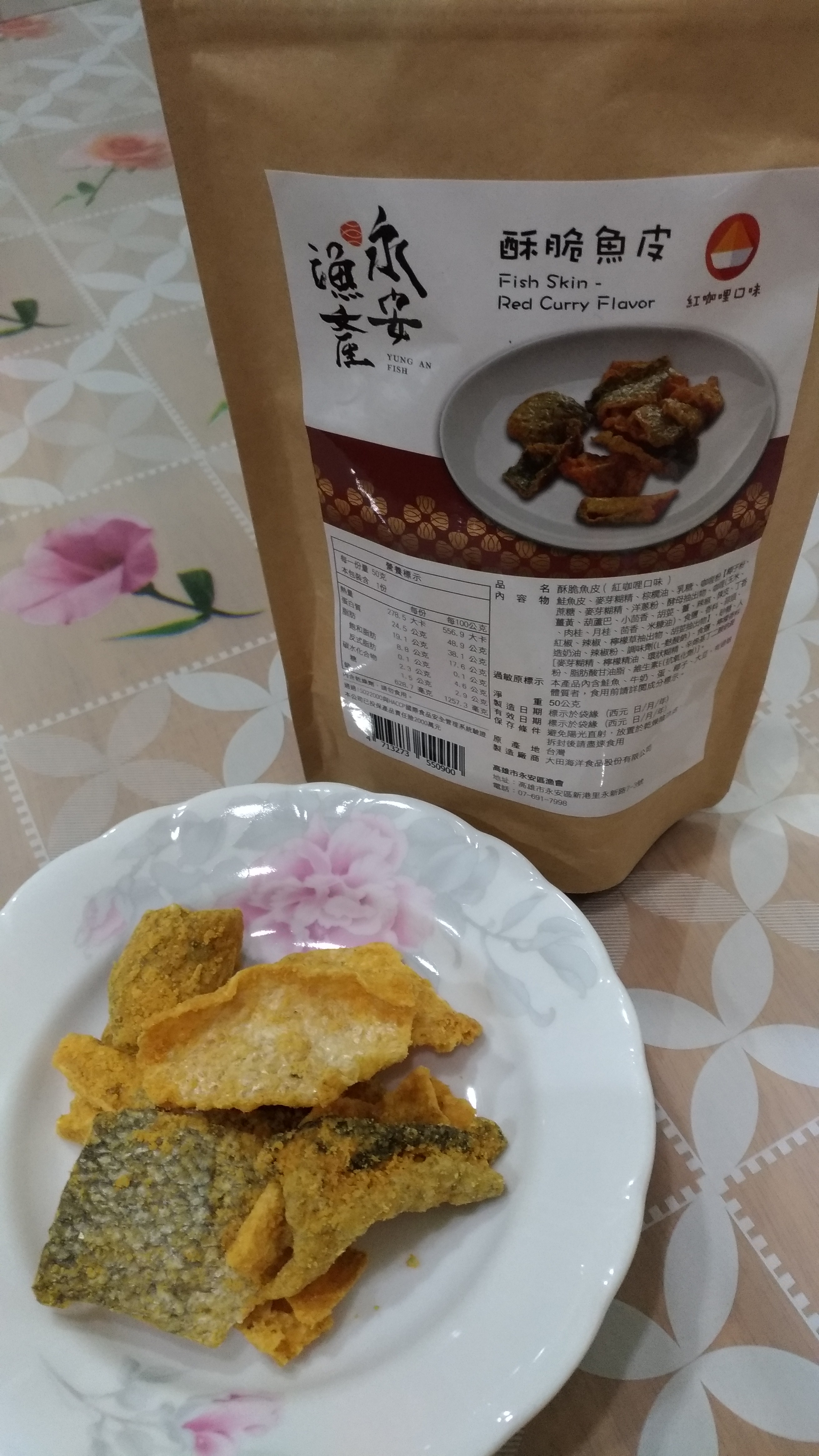 回列表 永安漁產 酥脆魚皮(紅咖哩口味) 味覺嗅覺大噴發 彷彿徜徉在南洋 NT$ 200 所需等級 一般會員以上 所需學分 60 體驗份數 15 關注人數 1709 申請人數 256 申請截止 品牌業者:高雄市永安區漁會 廠商名稱 高雄市永安區漁會 廠商地址 高雄市永安區新興路27-2號 產地 台灣 產品規格 50g/包 食品業者登錄字號 E-188500607-00000-6 投保產品責任險字號 富邦產物產品責任保險保單0507字第20AML0000819號 心得分享 商品介紹 商品成分 使用方法 注意事項 體驗名單 8.4 永安漁產 酥脆魚皮(紅咖哩口味) 包裝美學 7.9 風味香氣 8.7 酥脆口感 9.1 唰嘴程度 8.4 建議推薦 8.6 心得分享 14則 Lily Liao 鑽石達人 34歲 新北市 2021/03/29 對永安漁產 酥脆魚皮(紅咖哩口味)留下評價 8 感謝給予機會試吃永安漁產的酥脆魚皮。這次拿到的是紅咖哩口味,是以夾鍊袋形式做包裝,沒有辦法一次吃完的時候可以隨時夾起來,非常方便。打開一看,覺得好像份量不是很多,咖哩味撲鼻而來。為了講求衛生我是用夾子把所有內容物都夾出來放在盤子上,每塊大小不一,形狀捲曲,有的非常大塊,有的很適合一口吃掉,在最下面的則是幾乎碎得不成型的魚皮,還有應該只是紅咖哩粉的碎屑,當然裡面還有乾燥劑,要小心不要吃下肚。可以看得到黑色魚皮部份,但不是每一塊都有黑色魚皮,大多都是被咖哩染成黃色的部份,仔細看可以看得到咖哩粉的顆粒,每一片魚皮都沾了滿滿的咖哩粉,光看就能想像一定充滿了咖哩味。實際入口我是覺得薑黃味道非常重,其餘才是我比較熟悉的咖哩味,還帶一點辣,多吃幾口辣味會很明顯,但不至於會辣到想喝水或是其他飲料。口味對我來說稍重,不過咬起來十分酥脆又唰嘴,會忍不住想要一口接一口,我覺得很適合配酒或是碳酸飲料。試吃時正好鄰近吃飯時間,我就把一些比較碎的部份灑在白米飯上,也非常好吃,很下飯。推薦給各位! 夏鳳寶 鑽石達人 62歲 臺南市 2021/03/24 對永安漁產 酥脆魚皮(紅咖哩口味)留下評價 7 收到試吃品迫不及待趕快試吃,平常就滿喜歡吃雞皮魚皮,補充膠原蛋白!此款魚皮是用鮭魚皮製成,炸的很酥脆,香料有紅咖哩,洋蔥,大蒜,有些微的辣味,配啤酒或飲料很對味,份量不多,吃起來很唰嘴,一下子就吃完了!包裝是用紙袋,沒有過度包裝,符合環保的要求! 許淑瓊 金食達人 47歲 新竹縣 2021/03/25 對永安漁產 酥脆魚皮(紅咖哩口味)留下評價 8 酥脆魚皮加上紅咖哩口味,引起我的好奇,立即申請試吃,欸~打開包裝馬上就聞到濃濃的咖哩味,一入口先有濃厚的紅咖哩讓唾液不自覺的一直分泌一直分泌,把紅咖哩佈滿整個口腔,再一咬魚皮是脆脆的口感,兩者搭配在一起越嚼越香越嚼越香,還蠻特別的零食。 期果威 金食達人 29歲 臺北市 2021/03/26 對永安漁產 酥脆魚皮(紅咖哩口味)留下評價 9 包裝走相當精緻路線,用類似牛皮紙質感且有夾鍊設計的包裝,收到著實有驚喜,且在熱量營養標示上簡單明瞭,不會有好幾份要自己計算。打開有撲鼻的咖哩香氣,魚皮預期會有的腥味相對不明顯,在酥脆程度上或許油炸的相當用心,口感非常酥脆!完全不會有吃到魚皮的感覺,紅咖哩也裹得很足,有些甚至會看不到魚皮。不過也因為裹得較厚且又重口味,對於不習慣的人可能會容易覺得膩,減少了唰嘴程度,本來就習慣魚皮零食的友人則認為相當好吃,值得推薦! Li Emma 鑽石達人 49歲 高雄市 2021/03/26 對永安漁產 酥脆魚皮(紅咖哩口味)留下評價 8 很開心能試吃(永安漁產 酥脆魚皮 紅咖哩口味),打開真的很明顯的魚皮耶!很特別的零食哦!常聽人說吃魚皮很健康,但個人不是很愛料理內的軟軟的魚皮口感,酥脆的魚皮零食聽起來就可口多了,吃起來也比較合口爽脆,但紅咖哩口味的調味屬於比較重口味的味道,很適合搭配一杯果茶一起吃,吃完怎麼莫明的很想吃塩酥雞Y~不知道能不能再開發成塩酥九層塔的口味~呵~感謝分享試吃! 陳芝羽 鑽石達人 37歲 臺北市 2021/03/26 對永安漁產 酥脆魚皮(紅咖哩口味)留下評價 8 口感很酥很脆、不油膩,蠻唰嘴的,而且每一片尺寸都挺大的,吃起來很過癮,不過整體份量很少,一包大概5、6片而已。我曾經吃過國外進口的鹹蛋魚皮餅乾,腥味很重,只吃一口就不敢再吃了。而永安漁產的完全沒有魚腥味,鹹鹹辣辣很好吃,辣度大概是中辣,有點刺激,但不會辣很久造成不舒服,喜歡辣的朋友可以試試看! 黃春香 金食達人 57歲 新北市 2021/03/26 對永安漁產 酥脆魚皮(紅咖哩口味)留下評價 9 外觀可以直接辨識出魚皮,粉漿不會過厚掩飾。咖哩味道香醇濃厚,但不會過辣,口感層次豐富,一口吃得到鹹、香、辣。魚皮很脆,不會軟爛,每一片的味道都很足夠,不會有的過多太重,有的平淡沒有味道。沒有油耗味,吃完口中也不會充滿油感,令人想一直吃下去。 徐美芬 金食達人 61歲 新北市 2021/03/26 對永安漁產 酥脆魚皮(紅咖哩口味)留下評價 9 1.紅咖喱香味濃厚,是喝啤酒、飲料最佳的下酒菜及解饞的零食!讚!2.鹹度適中、脆度香酥、營養豐富、每片魚皮片附著的香料厚實!3.包裝開封附有拉鏈袋,方便取用可將剩餘魚片封口後可保新鮮度、脆度如常!4.媲美新加坡的魚片產品、更甚於感覺有魚片的真實感、不油膩、百吃不膩! ArthurHsu 鑽石達人 48歲 新北市 2021/03/28 對永安漁產 酥脆魚皮(紅咖哩口味)留下評價 9 本次試吃的這一款 永安漁產 酥脆魚皮,首先在包裝上面看起來,說實在話在包裝上面真的看