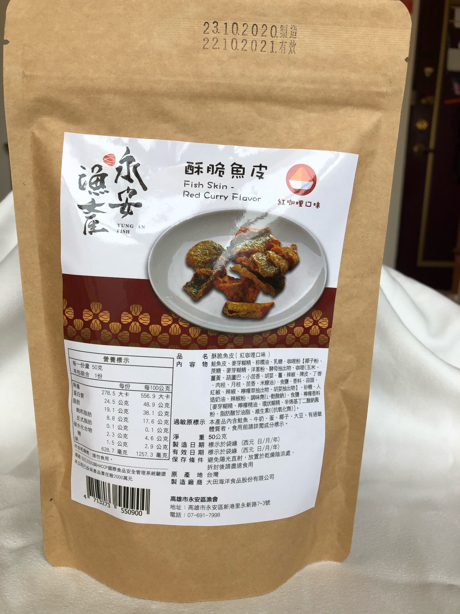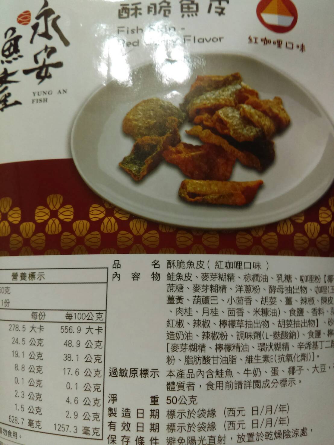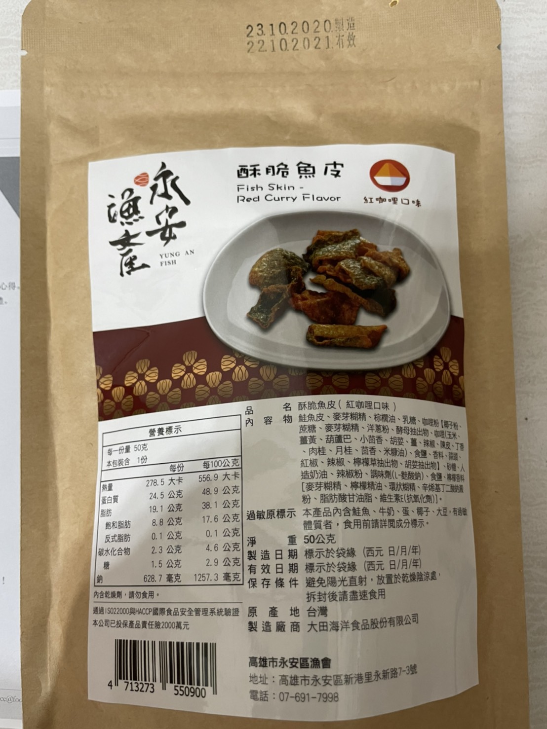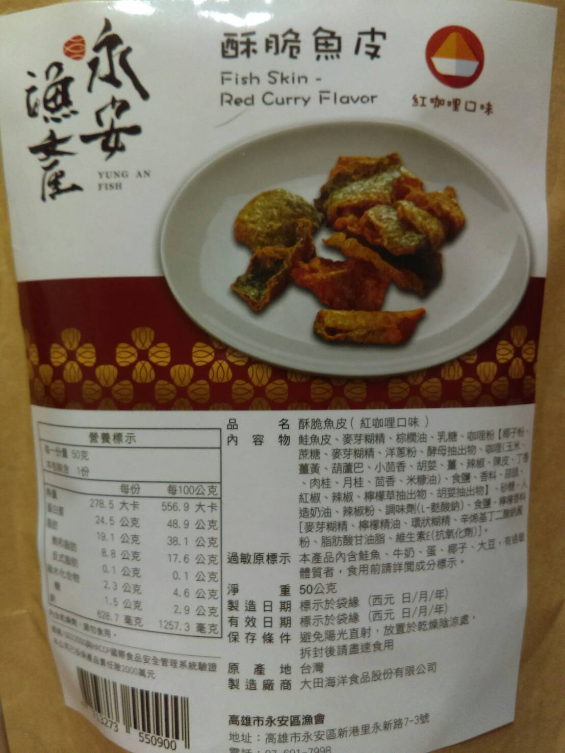 回列表 永安漁產 酥脆魚皮(紅咖哩口味) 味覺嗅覺大噴發 彷彿徜徉在南洋 NT$ 200 所需等級 一般會員以上 所需學分 60 體驗份數 15 關注人數 1709 申請人數 256 申請截止 品牌業者:高雄市永安區漁會 廠商名稱 高雄市永安區漁會 廠商地址 高雄市永安區新興路27-2號 產地 台灣 產品規格 50g/包 食品業者登錄字號 E-188500607-00000-6 投保產品責任險字號 富邦產物產品責任保險保單0507字第20AML0000819號 心得分享 商品介紹 商品成分 使用方法 注意事項 體驗名單 8.4 永安漁產 酥脆魚皮(紅咖哩口味) 包裝美學 7.9 風味香氣 8.7 酥脆口感 9.1 唰嘴程度 8.4 建議推薦 8.6 心得分享 14則 Lily Liao 鑽石達人 34歲 新北市 2021/03/29 對永安漁產 酥脆魚皮(紅咖哩口味)留下評價 8 感謝給予機會試吃永安漁產的酥脆魚皮。這次拿到的是紅咖哩口味,是以夾鍊袋形式做包裝,沒有辦法一次吃完的時候可以隨時夾起來,非常方便。打開一看,覺得好像份量不是很多,咖哩味撲鼻而來。為了講求衛生我是用夾子把所有內容物都夾出來放在盤子上,每塊大小不一,形狀捲曲,有的非常大塊,有的很適合一口吃掉,在最下面的則是幾乎碎得不成型的魚皮,還有應該只是紅咖哩粉的碎屑,當然裡面還有乾燥劑,要小心不要吃下肚。可以看得到黑色魚皮部份,但不是每一塊都有黑色魚皮,大多都是被咖哩染成黃色的部份,仔細看可以看得到咖哩粉的顆粒,每一片魚皮都沾了滿滿的咖哩粉,光看就能想像一定充滿了咖哩味。實際入口我是覺得薑黃味道非常重,其餘才是我比較熟悉的咖哩味,還帶一點辣,多吃幾口辣味會很明顯,但不至於會辣到想喝水或是其他飲料。口味對我來說稍重,不過咬起來十分酥脆又唰嘴,會忍不住想要一口接一口,我覺得很適合配酒或是碳酸飲料。試吃時正好鄰近吃飯時間,我就把一些比較碎的部份灑在白米飯上,也非常好吃,很下飯。推薦給各位! 夏鳳寶 鑽石達人 62歲 臺南市 2021/03/24 對永安漁產 酥脆魚皮(紅咖哩口味)留下評價 7 收到試吃品迫不及待趕快試吃,平常就滿喜歡吃雞皮魚皮,補充膠原蛋白!此款魚皮是用鮭魚皮製成,炸的很酥脆,香料有紅咖哩,洋蔥,大蒜,有些微的辣味,配啤酒或飲料很對味,份量不多,吃起來很唰嘴,一下子就吃完了!包裝是用紙袋,沒有過度包裝,符合環保的要求! 許淑瓊 金食達人 47歲 新竹縣 2021/03/25 對永安漁產 酥脆魚皮(紅咖哩口味)留下評價 8 酥脆魚皮加上紅咖哩口味,引起我的好奇,立即申請試吃,欸~打開包裝馬上就聞到濃濃的咖哩味,一入口先有濃厚的紅咖哩讓唾液不自覺的一直分泌一直分泌,把紅咖哩佈滿整個口腔,再一咬魚皮是脆脆的口感,兩者搭配在一起越嚼越香越嚼越香,還蠻特別的零食。 期果威 金食達人 29歲 臺北市 2021/03/26 對永安漁產 酥脆魚皮(紅咖哩口味)留下評價 9 包裝走相當精緻路線,用類似牛皮紙質感且有夾鍊設計的包裝,收到著實有驚喜,且在熱量營養標示上簡單明瞭,不會有好幾份要自己計算。打開有撲鼻的咖哩香氣,魚皮預期會有的腥味相對不明顯,在酥脆程度上或許油炸的相當用心,口感非常酥脆!完全不會有吃到魚皮的感覺,紅咖哩也裹得很足,有些甚至會看不到魚皮。不過也因為裹得較厚且又重口味,對於不習慣的人可能會容易覺得膩,減少了唰嘴程度,本來就習慣魚皮零食的友人則認為相當好吃,值得推薦! Li Emma 鑽石達人 49歲 高雄市 2021/03/26 對永安漁產 酥脆魚皮(紅咖哩口味)留下評價 8 很開心能試吃(永安漁產 酥脆魚皮 紅咖哩口味),打開真的很明顯的魚皮耶!很特別的零食哦!常聽人說吃魚皮很健康,但個人不是很愛料理內的軟軟的魚皮口感,酥脆的魚皮零食聽起來就可口多了,吃起來也比較合口爽脆,但紅咖哩口味的調味屬於比較重口味的味道,很適合搭配一杯果茶一起吃,吃完怎麼莫明的很想吃塩酥雞Y~不知道能不能再開發成塩酥九層塔的口味~呵~感謝分享試吃! 陳芝羽 鑽石達人 37歲 臺北市 2021/03/26 對永安漁產 酥脆魚皮(紅咖哩口味)留下評價 8 口感很酥很脆、不油膩,蠻唰嘴的,而且每一片尺寸都挺大的,吃起來很過癮,不過整體份量很少,一包大概5、6片而已。我曾經吃過國外進口的鹹蛋魚皮餅乾,腥味很重,只吃一口就不敢再吃了。而永安漁產的完全沒有魚腥味,鹹鹹辣辣很好吃,辣度大概是中辣,有點刺激,但不會辣很久造成不舒服,喜歡辣的朋友可以試試看! 黃春香 金食達人 57歲 新北市 2021/03/26 對永安漁產 酥脆魚皮(紅咖哩口味)留下評價 9 外觀可以直接辨識出魚皮,粉漿不會過厚掩飾。咖哩味道香醇濃厚,但不會過辣,口感層次豐富,一口吃得到鹹、香、辣。魚皮很脆,不會軟爛,每一片的味道都很足夠,不會有的過多太重,有的平淡沒有味道。沒有油耗味,吃完口中也不會充滿油感,令人想一直吃下去。 徐美芬 金食達人 61歲 新北市 2021/03/26 對永安漁產 酥脆魚皮(紅咖哩口味)留下評價 9 1.紅咖喱香味濃厚,是喝啤酒、飲料最佳的下酒菜及解饞的零食!讚!2.鹹度適中、脆度香酥、營養豐富、每片魚皮片附著的香料厚實!3.包裝開封附有拉鏈袋,方便取用可將剩餘魚片封口後可保新鮮度、脆度如常!4.媲美新加坡的魚片產品、更甚於感覺有魚片的真實感、不油膩、百吃不膩! ArthurHsu 鑽石達人 48歲 新北市 2021/03/28 對永安漁產 酥脆魚皮(紅咖哩口味)留下評價 9 本次試吃的這一款 永安漁產 酥脆魚皮,首先在包裝上面看起來,說實在話在包裝上面真的看