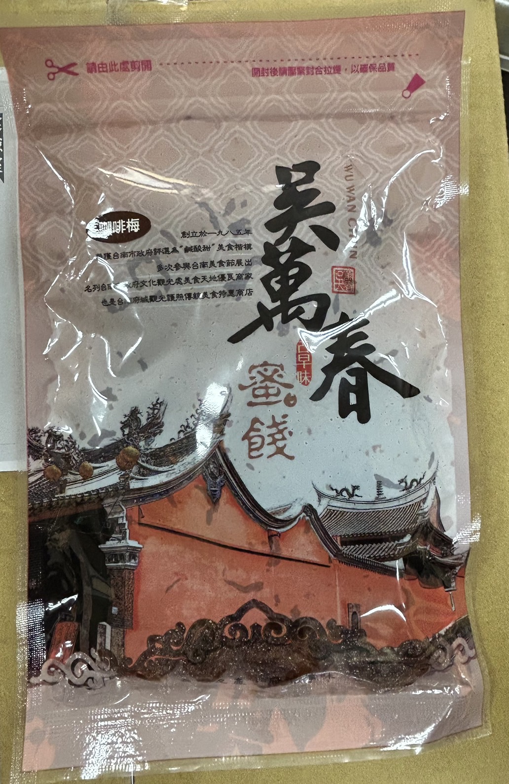 回列表 吳萬春 咖啡梅 榮獲府城美食楷模殊榮 蜜餞與咖啡的創新結合 拯救上班族一天好心情 市價90元(免費申請) 所需等級 一般會員以上 所需學分 50 體驗份數 15 關注人數 2116 申請人數 278 申請截止 品牌業者:吳萬春蜜餞 負責廠商 吳萬春蜜餞 廠商地址 台南市中西區西門路一段424號 產地 台灣 試用產品規格 120g/包 食品業者登錄字號 D-200013936-00000-4 投保產品責任險字號 1503字第 04PD01628號 心得分享 商品介紹 商品成分 使用方法 注意事項 體驗名單 8.4 吳萬春 咖啡梅 梅子香氣 8.0 咖啡香氣 8.2 蜜餞甜度 7.9 復古包裝 8.0 建議推薦 8.1 心得分享 14則 吳麗娟 鑽石達人 58歲 屏東縣 2023/11/14 對吳萬春 咖啡梅留下評價 8 吳萬春咖啡梅一開封就聞到濃郁的咖啡香,真的是名符其實的咖啡梅。梅子的果肉厚實濕潤,吃起來很Q彈,酸酸甜甜的滋味,還不錯吃。但是詳看成份,添加了不少的食品添加物,對重視養生追求飲食「自然、無添加」的族群而言,恐有疑慮。 July 鑽石達人 49歲 臺中市 2023/11/15 對吳萬春 咖啡梅留下評價 9 吳萬春咖啡梅,來自台南的古早味蜜餞。與市售的一般酸梅或蜜餞包裝相較,本次收到的試吃包分量很充足,也有夾鏈袋設計,很適合作為下午茶零食每天吃一點。打開包裝就可聞到酸甜的蜜餞香味,但又有一股特殊的咖啡甜味,蜜餞本體屬於表面濕潤、有籽的類型,很入味也容易入口。融合在蜜餞中的咖啡味並不屬於苦或焦香的成熟類型,整體感覺有點接近咖啡牛奶的味道,類似有咖啡香味但又清爽不過甜的奶梅。單吃或配茶吃都很適合。這款咖啡梅也很適合在辦公室分享,喜歡吃甜、吃酸的人都可接受,喜歡咖啡的人也可以嘗鮮。雖然每百公克291大卡,熱量還不算太高,但因為蜜餞本身的糖與鈉含量都相對較高,每百公克含39.1公克的糖、1350毫克的鈉,在好吃順口之餘,還是要注意避免過量,以一般茶食點心的份量,大約每次5-6顆會比較剛好。 林禹彤 金食達人 27歲 臺北市 2023/11/16 對吳萬春 咖啡梅留下評價 8 滿喜歡包裝結合臺灣的特色廟宇設計以口味來說滿新穎的,做到中西合併的咖啡口味咖啡香不會搶走梅子的風味,走襯托的淡雅路線配上一杯咖啡或是無糖茶更能品嘗到蜜餞的香此款商品很適合送給國外朋友! 吳佳霓 鑽石達人 35歲 雲林縣 2023/11/16 對吳萬春 咖啡梅留下評價 8 平日嘴饞的我特愛吃果乾,不管哪一種水果製成,一概接受,但特愛酸梅種類,遇到有特色的,定會多看幾眼。此次看到酸梅體驗包時,已經有酸V酸V的感覺了,所以收到體驗包時,立馬拆封,首當其衝是咖啡香味撲鼻而來,品嚐香濃的咖啡梅,梅子的酸甜口感,遇上咖啡的香醇,擁有相當濃郁的咖啡香,同時也保有梅子的Q度,值得推薦給喜愛咖啡及酸梅的您。 Yu Juan Zhang 金食達人 37歲 基隆市 2023/11/17 對吳萬春 咖啡梅留下評價 7 這次收到的咖啡梅試吃是一包裝,產品是台南製造,因此在包裝外觀印有台南的古蹟建築,感覺更添加了咖啡梅的復古風味。包裝袋設計為夾鏈袋裝,拿取跟保存都很方便,是非常貼心的設計。一打開包裝袋,濃濃的咖啡香就撲鼻而來,裡面的梅子數量不少,看起來濕潤引發食慾。吃入口後也是非常明顯的咖啡香並且帶有甜味,幾乎沒有感覺到梅子的酸味。個人平常是習慣喝無糖飲品,覺得整體來說偏甜,品嘗時適合搭配無糖茶飲食用。 廖姿婷 金食達人 25歲 臺北市 2023/11/17 對吳萬春 咖啡梅留下評價 8 咖啡梅整體的咖啡香氣在打開包裝的當下相當的濃郁,一入口是梅子的酸味及咖啡味交織在一起,由於梅子本身帶點酸味,因此吃多不會過膩,唯一美中不足的是梅子果肉偏少,因此咖啡梅需要在口中含一下才能軟化果肉方便嗑下來,且外包裝的設計缺少點美感,可在優化使更好。 張正杰 金食達人 43歲 臺中市 2023/11/17 對吳萬春 咖啡梅留下評價 8 本身喜歡吃蜜餞的我,蜜餞當然是不可缺少的零食之一。這次幸運獲選台南老店吳萬春蜜餞,咖啡梅試用。真的非常開心,因為該店使用特選梅子,充份吸收咖啡香味,酸酸甜甜的。入口尾韻又有香醇的咖啡味。不同於傳統的梅子,還是讓人一口接一口停不下來。 林哲因 金食達人 39歲 臺北市 2023/11/20 對吳萬春 咖啡梅留下評價 8 包裝稍顯傳統,不是太精緻的包裝,但容量很大且有夾鏈袋功能值得嘉獎。打開包裝撲鼻而來的味道有點出乎意料,本以為是濃郁咖啡香,但實際上是比較偏向咖啡糖的味道,吃起來也是咖啡糖的味道,有點可惜。以蜜餞梅子來評論的話,算是滿好吃的,不過若以咖啡味的梅子來吃就不太滿意了,希望有機會調整成真的咖啡香氣。 Lin 鑽石達人 31歲 臺北市 2023/11/20 對吳萬春 咖啡梅留下評價 8 梅子口感屬於QQ濕潤的質地,中心梅子核較大,果肉偏少整體:一開始較不習慣咖啡和梅子的結合,但嘗試幾顆以後,越來越順口,覺得兩者調配風味平衡,不會突兀,咖啡除了增添風味,也帶給梅子厚實濃郁的感覺。但個人偏好酸一些的梅子,此款屬於偏甜的蜜餞。咖啡風味源自香料,若可以使用咖啡豆研磨的咖啡粉而非香料,或許可以帶出更自然的風味。 吳靜宜 金食達人 47歲 臺南市 2023/11/20 對吳萬春 咖啡梅留下評價 9 感謝吳萬春蜜餞與食力提供試吃機會。打開包裝撲鼻而來的是濃濃的咖啡香味,品嚐時有梅子的酸甜、咖啡的醇厚香味及梅肉QQ的口感,咖啡的香味比較像是咖啡糖的味道,甜度偏甜符合台南人口味。飯後吃飽時來一顆解膩,上