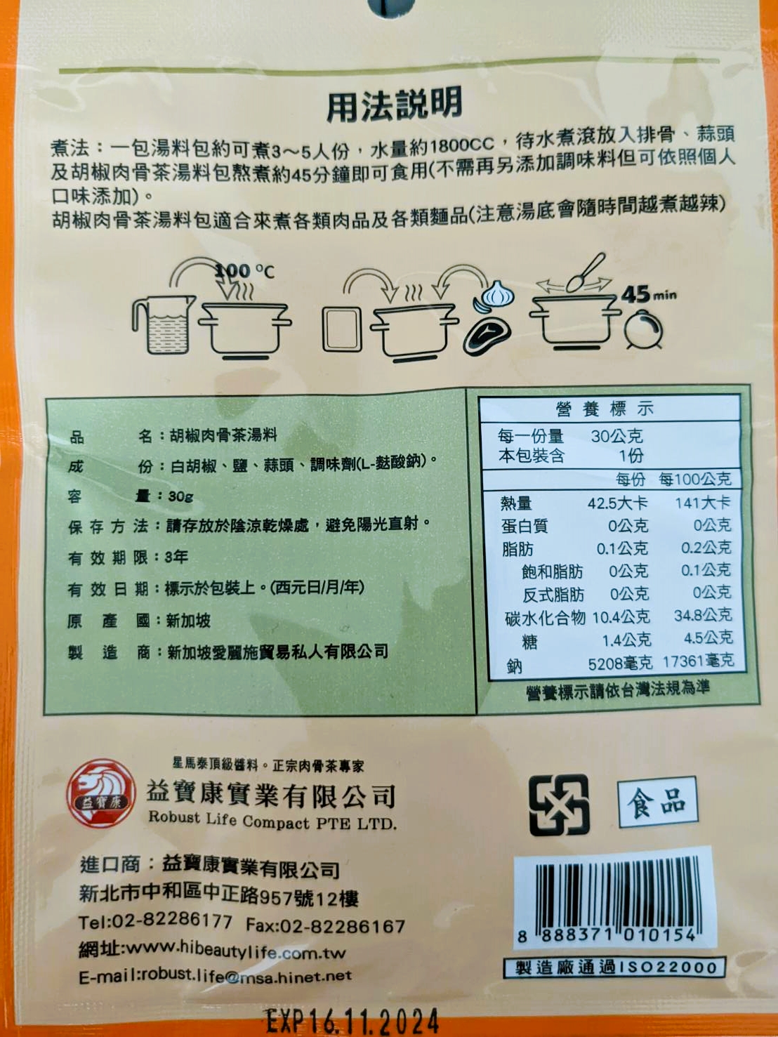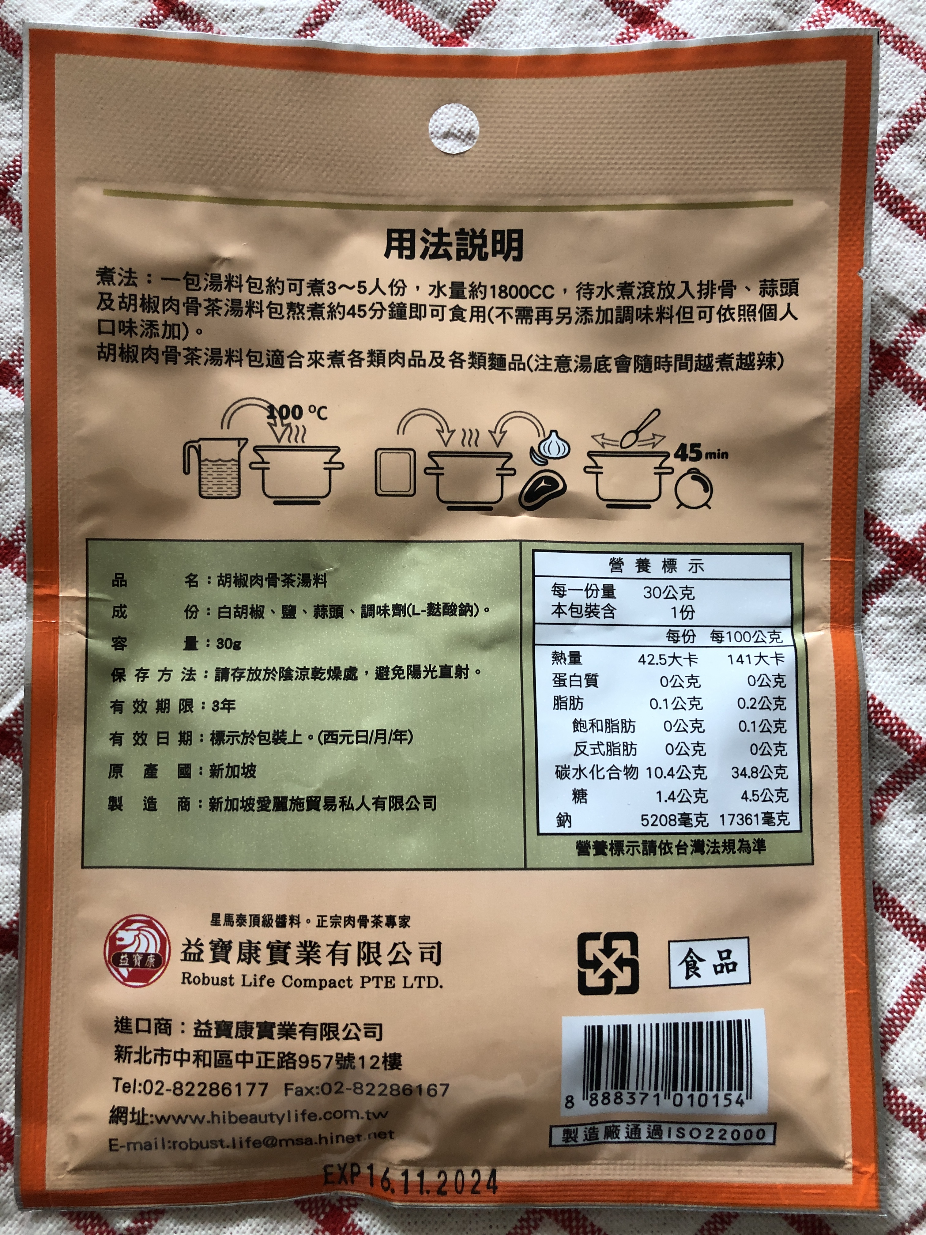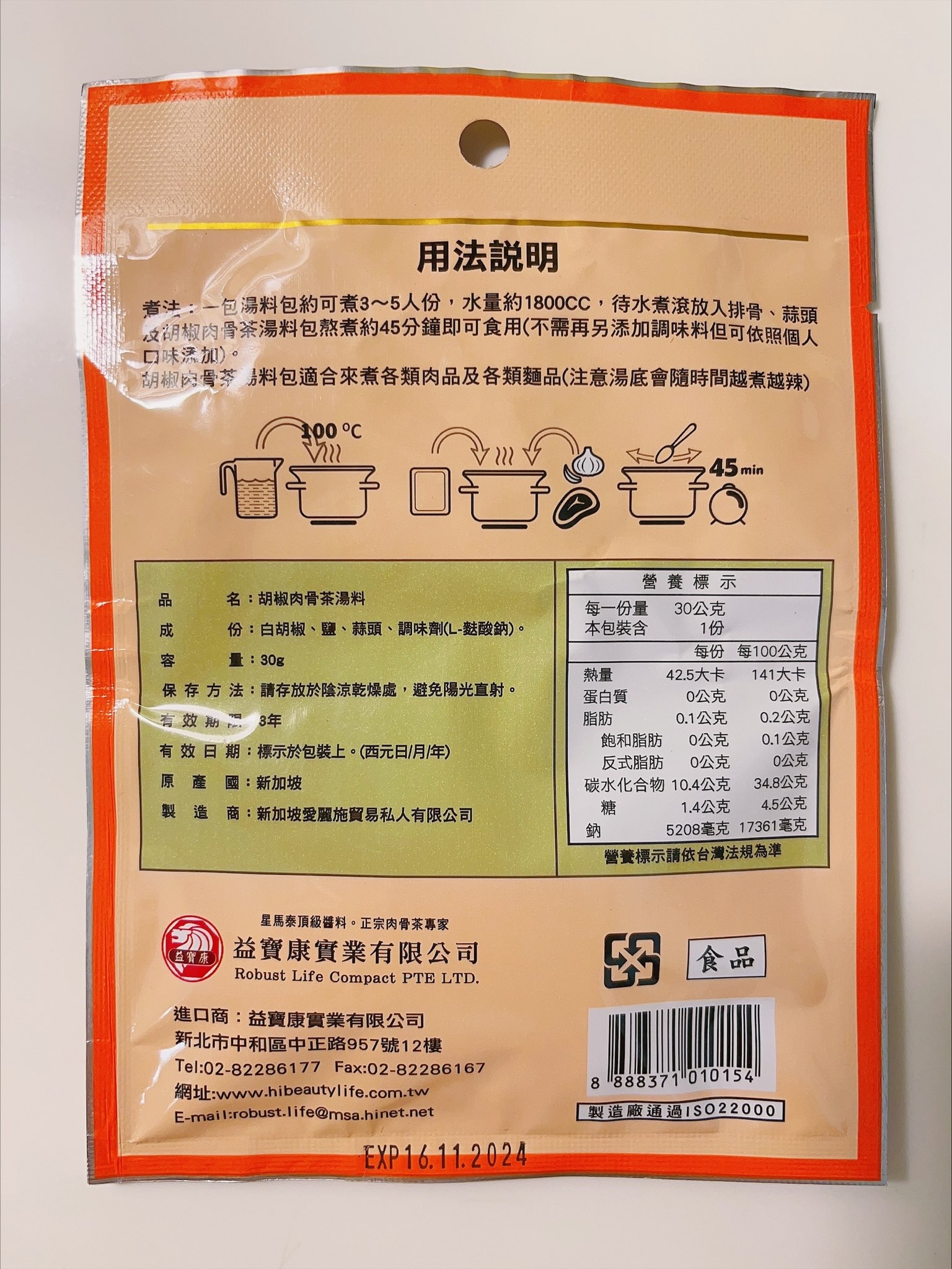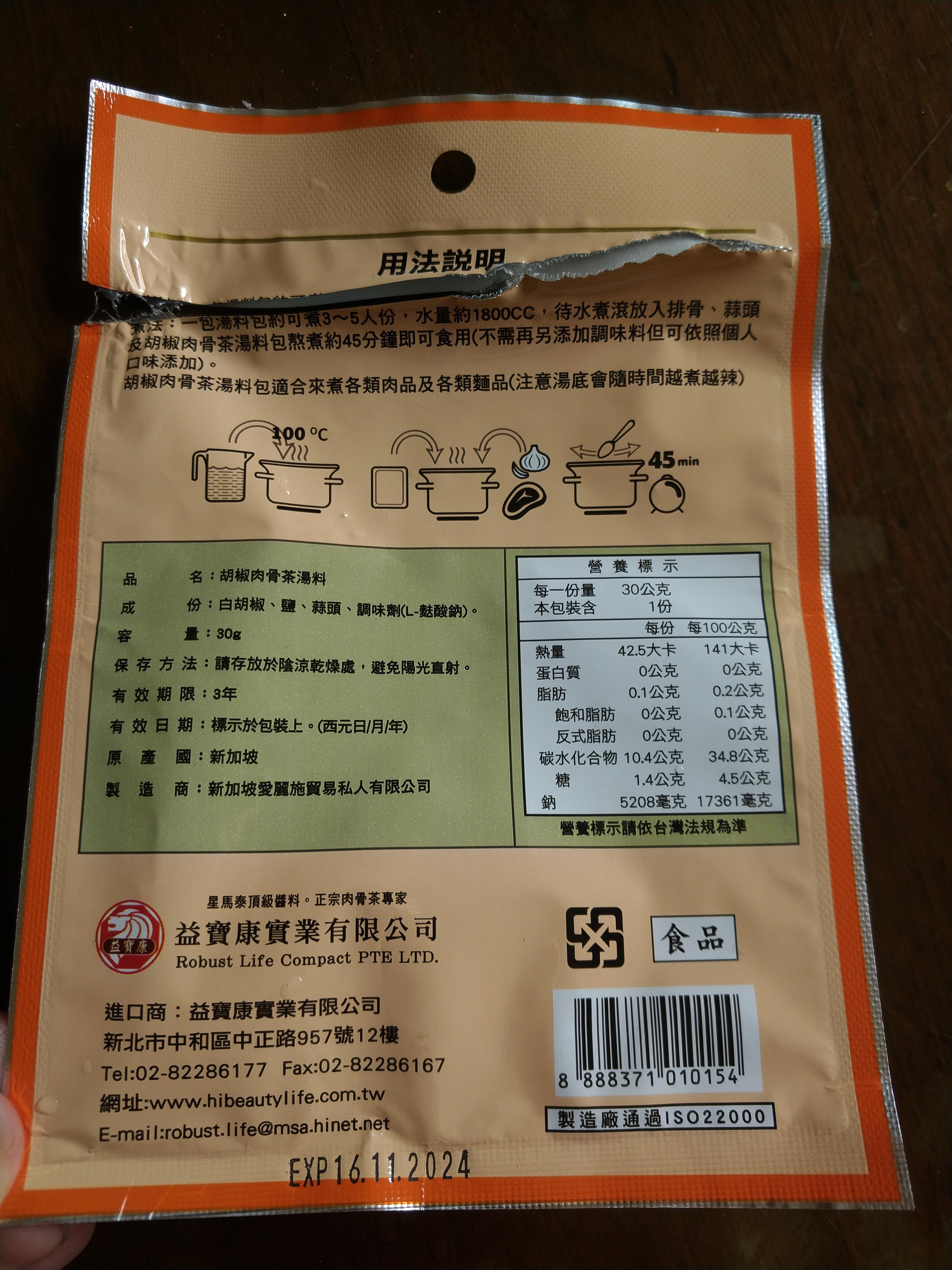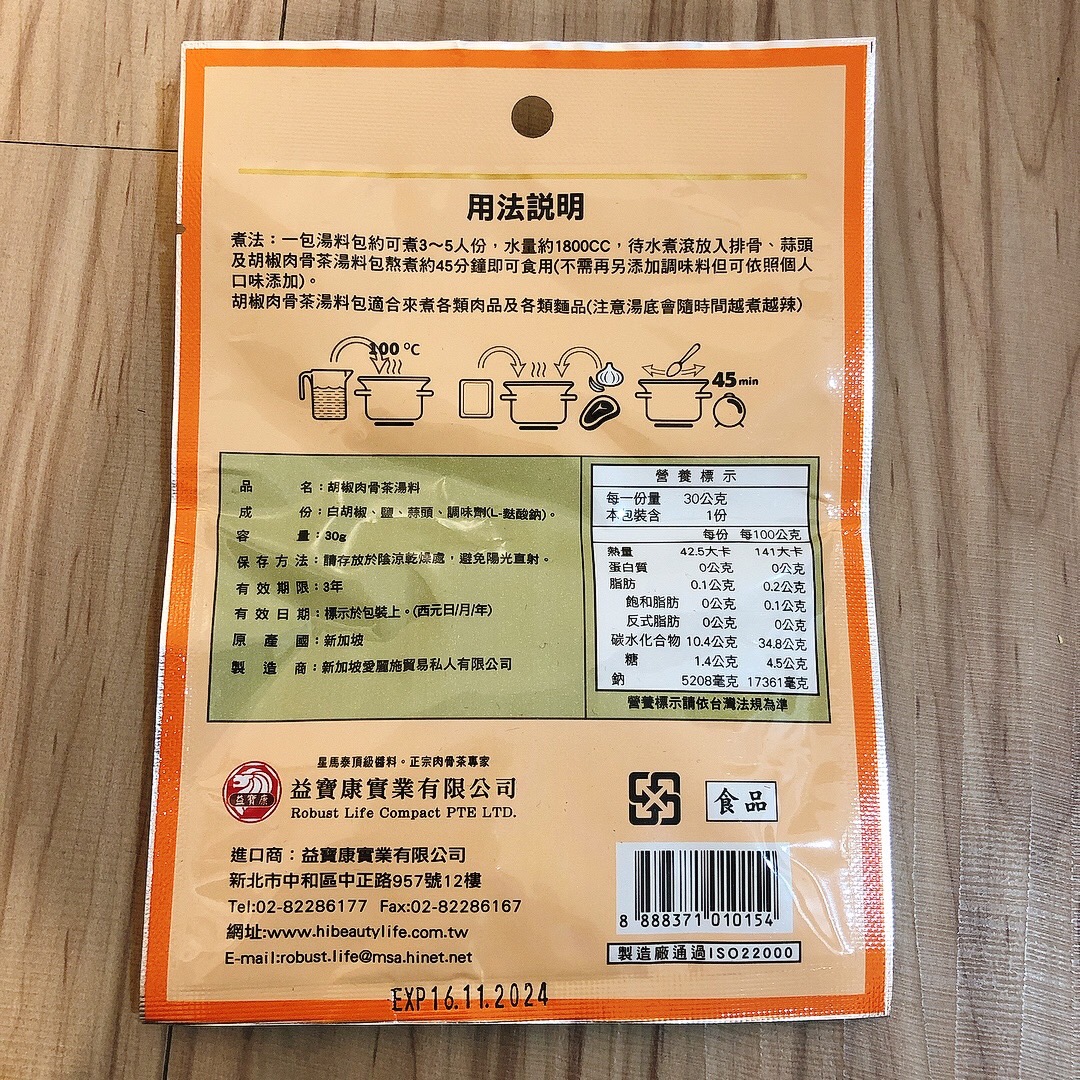 回列表 愛麗施 胡椒肉骨茶湯料 濃郁湯底美味上桌 市價199元 所需等級 一般會員以上 所需學分 60 體驗份數 15 關注人數 1474 申請人數 317 申請截止 品牌業者:駿三協成事業有限公司 負責廠商 駿三協成事業有限公司 廠商地址 新北市三芝區中山路一段55號 產地 新加坡 試用產品規格 30g/包(3~4人份) 食品業者登錄字號 F-128316079-00000-9 投保產品責任險字號 07字第 0622D100196 號 心得分享 商品介紹 商品成分 使用方法 注意事項 體驗名單 8.3 愛麗施 胡椒肉骨茶湯料(不含藥味) 包裝美學 7.7 風味香氣 8.7 湯頭濃郁 8.2 料理便利 9.4 建議推薦 8.5 心得分享 15則 楊明璋 金食達人 32歲 屏東縣 2022/05/03 對愛麗施 胡椒肉骨茶湯料(不含藥味)留下評價 9 年輕時去新加坡遊玩,印象最深刻的料理便是肉骨茶,在台灣沒吃過(見識太少),在當地第一次吃覺得非常道地好吃。申請到時也滿心期待。將肉骨茶湯料包,加上排骨、碎蒜頭後,不需加任何調味料,直接放到電鍋燉煮,等待電鍋跳起來即完成。喝完的第一個念頭是好可惜只有一包,如果之後在通路上有看到,一定會買。它喝起來的味道很多元,先入口的是胡椒的微辣,很厲害的是這個肉骨茶湯料包裡面胡椒的量恰到好處,把口味的層次提升很多,湯料包裡面的香料味被恰當的釋放出來,融合了蒜香味與排骨燉煮出來的淡淡肉香味,真的是絕妙的好味道,非常好喝的一道湯品,完全不輸外面的餐廳。煮起來方便又快速,在這疫情嚴峻不方便出國的時期買來體驗一下新加坡的風味,喝下去的瞬間,閉上眼體會,彷彿魚尾獅就在身邊般的實境感,是非常道地的肉骨茶湯。 isa小眼睛 鑽石達人 85歲 臺南市 2022/05/06 對愛麗施 胡椒肉骨茶湯料(不含藥味)留下評價 10 包裝設計很有味道,小小薄薄一包的料包,先燉了排骨,掀開鍋蓋,好香的白胡椒粒味~看起來還蠻清爽的湯,香味十足,尤其是我本來就愛胡椒的味道,湯盛碗後點綴一點香菜,夏天吃也不膩的口感。再加入一點冬粉,清爽美味,雖然白胡椒粒煮越久越有辣感,但這樣的辣是香的,也不嗆,最後又用料包再煮清湯,第二次煮過的湯頭就淡了許多,加入一點高麗菜,變成蔬菜湯,香氣無疑是充足的,湯頭味道是濃而不厚,我個人很喜歡。 譚惠貞 鑽石達人 54歲 臺北市 2022/05/04 對愛麗施 胡椒肉骨茶湯料(不含藥味)留下評價 8 愛麗施 胡椒肉骨茶湯料體驗分享微涼的天氣最適合來喝點熱熱的湯,怕中藥味有了新的選擇-愛麗施 胡椒肉骨茶湯料,打開包裝馬上就有濃濃的胡椒香味釋出,愛麗施胡椒肉骨茶湯料的成分很簡單,就只有白胡椒、鹽、蒜頭及調味劑(L-麩酸鈉),材料簡單卻可煮出濃厚的料理,真的是非常方便唷!愛麗施 胡椒肉骨茶湯料小小一包,就可以煮出滿滿一鍋,煮出來的湯頭非常清澈,而且不用再加任何的調味料,味道就剛剛好不會死鹹,入口不會有胡椒的嗆辣,微微香氣喝上一口濃濃正宗新加坡風味肉骨茶湯,真的是一大享受,想嚐鮮的朋友們不妨來試試哦! 林美惠 鑽石達人 60歲 臺北市 2022/05/06 對愛麗施 胡椒肉骨茶湯料(不含藥味)留下評價 9 湯料包的包裝設計很輕巧且方便打開。成分很簡單只有白胡椒、鹽、蒜頭、調味料湯料沒有中藥味,有著濃濃的胡椒加上獨特風味受到不喜愛中藥味的家人非常喜愛。再想到胡椒和蒜頭都是對身體有很大益處大家更是一碗接一碗的意猶未盡了。因全家都很喜歡蒜頭加入了20顆烹調也加入了麵條、時蔬,吃得營養均衡又開心。值得推薦的是這個湯料包很方便烹調而且是四季都可使用的養生食補。 CHIA 金食達人 28歲 桃園市 2022/05/02 對愛麗施 胡椒肉骨茶湯料(不含藥味)留下評價 8 是價位偏高的肉骨茶包。吃過許多肉骨茶料理包、這是吃過湯頭最濃郁的品牌。唯獨白胡椒味沒那麼強烈,吃起來不辣,小朋友也可以吃得安心。此次料理使用電鍋烹調,將冷水、排骨、肉骨茶包及蒜頭10瓣一同放入鍋中,烹煮1小時即可食用,人不需要顧火,超方便。不能出國也能吃到肉骨茶,好讚。 陳諭萱 鑽石達人 27歲 臺南市 2022/04/29 對愛麗施 胡椒肉骨茶湯料(不含藥味)留下評價 9 愛麗施這款胡椒肉骨茶湯料,是新加坡的風味,當濃郁湯底上桌時,讓人好像一秒到了新加坡一樣!胡椒味調味適中,且沒有中藥味,獨特摻雜胡椒與蒜頭味道的湯料,不僅對身體有益處,又讓人垂涎三尺、意猶未盡!小小一包就可以煮出三四人份的胡椒肉骨茶,很超值! 朱巧雲 鑽石達人 36歲 高雄市 2022/05/01 對愛麗施 胡椒肉骨茶湯料(不含藥味)留下評價 8 平時很愛中藥式的肉骨茶,這次想先品嘗新加坡式胡椒肉骨茶的原味,只準備了最基本的豬肉、大蒜,再跟肉骨茶湯料包一起丟電鍋就完成了,料理方式非常容易,也跟以前在新加坡喝到的味道一樣。只煮基本食材,喝得到湯頭清香,胡椒微微刺激味蕾也能吃到肉在燉煮後軟嫩清甜,不過胡椒風味會越煮越辣,若較難適應的話,二次加熱時湯料包可以先拿起來,另外配料加菜跟麵線也很搭。 王昭惠 鑽石達人 54歲 高雄市 2022/05/02 對愛麗施 胡椒肉骨茶湯料(不含藥味)留下評價 9 準備好1.雞里肌肉2. 蒜頭3.金針菇4.腐竹按照【胡椒肉骨茶湯料】包裝上的指示烹煮,另外要起鍋前15分鐘加入些許薑黃並嚐一下鹹淡的味道﹐因家中口味較重又添加一小匙醬油,起鍋時加入一些蔥花此時家中已是滿室胡椒肉骨茶的香味,湯頭喝起來非常的清爽不油膩、若要增加飽足感可加入一些麵條,整體來說【