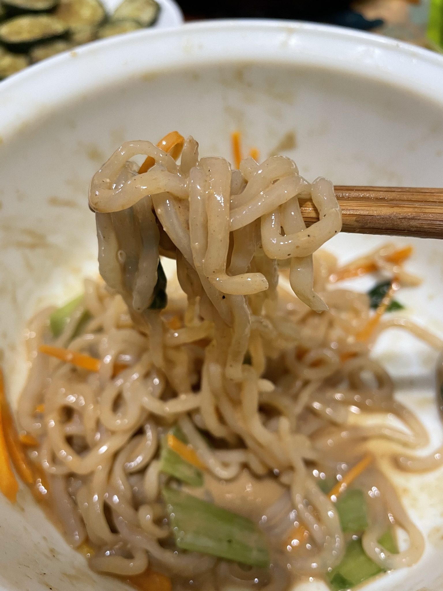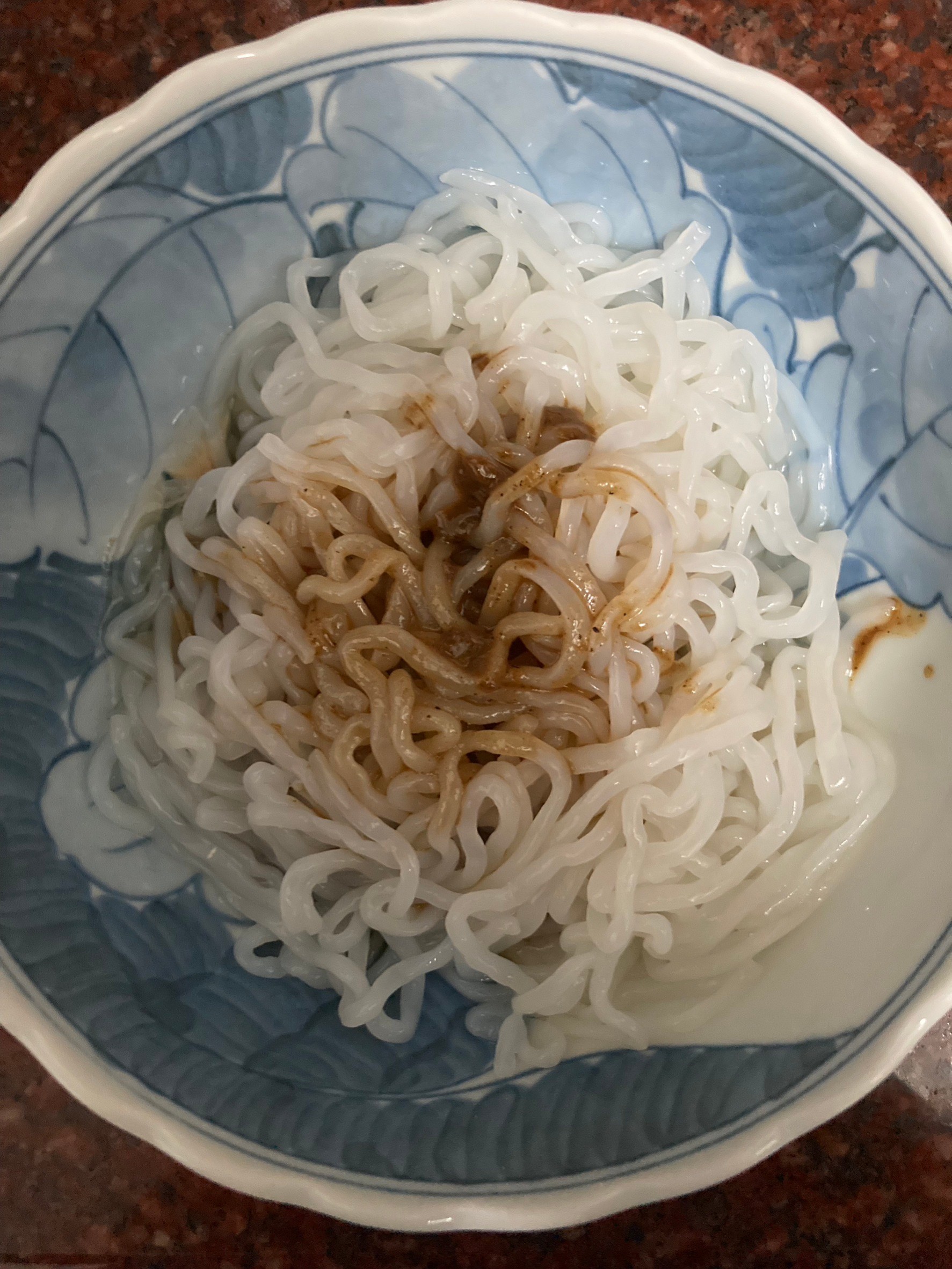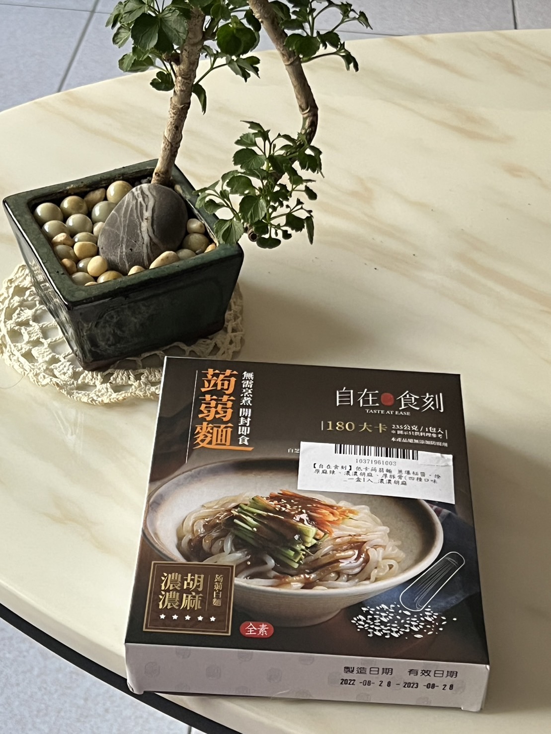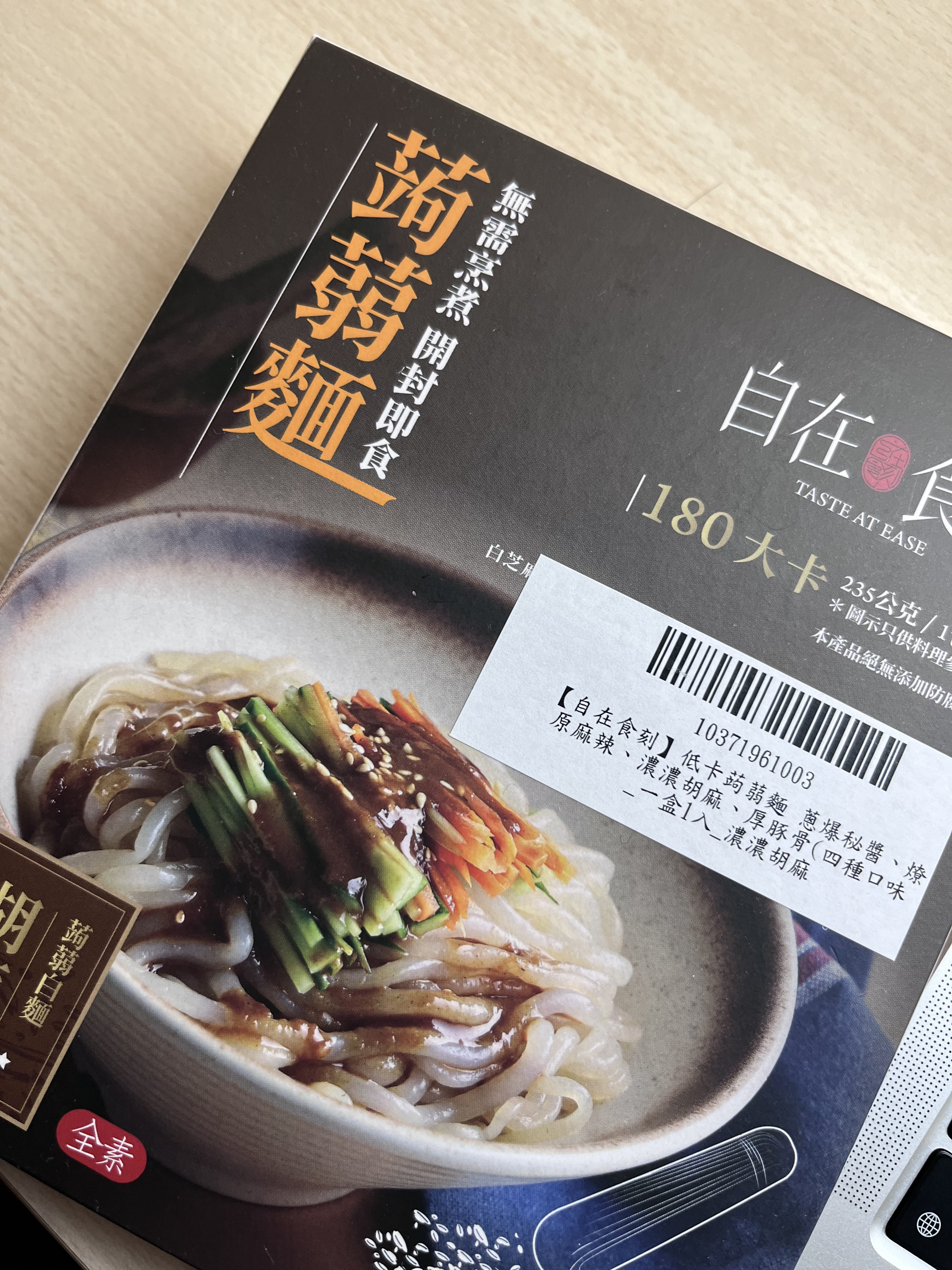 蒟蒻麵:水、蒟蒻精粉、食用氫氧化鈣(凝固用) 胡麻醬:芝麻醬(芝麻)、大豆油、芥花油、黑芝麻、抗氧化劑(混合濃縮生育醇) 風味醬油:水、釀造醬油、蔗糖、果糖、食鹽、L-鈦酸鈉、調味劑(5'-鳥嘌呤核苷 磷酸二鈉、5'-次黃嘌呤核苷磷酸二鈉)、多磷酸鈉、焦糖色素、玉米糖膠、調味 料(小麥發酵蛋白、酵母抽出物、糊精)、甜味劑(甘草萃)