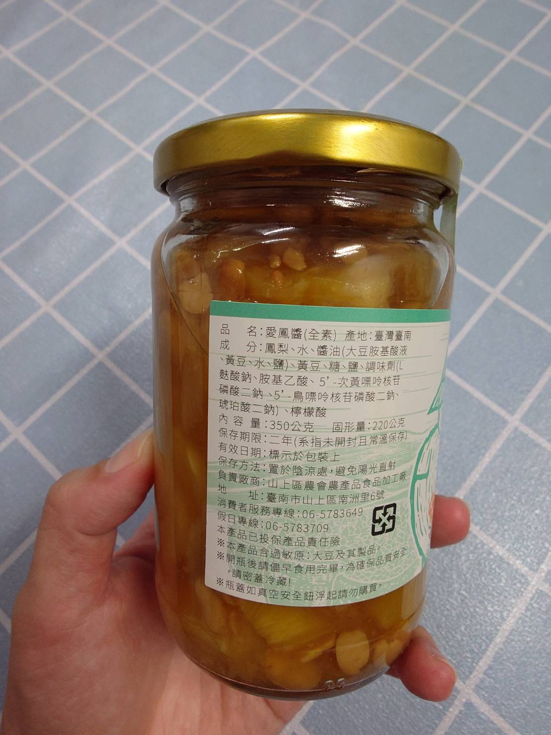 回列表 山上區農會 愛鳳醬 果香鳳梨醬,開胃百搭一吃就愛上! 市價145元(免費申請) 所需等級 一般會員以上 所需學分 50 體驗份數 15 關注人數 1258 申請人數 215 申請截止 品牌業者:山上區農會 負責廠商 山上區農會農產品小型食品加工廠 廠商地址 台南市山上區南州里6號 產地 台灣 試用產品規格 350克/一罐 食品業者登錄字號 D-173004806-00000-9 投保產品責任險字號 新安東京海上產物保險17667字第10ML000288號 心得分享 商品介紹 商品成分 使用方法 注意事項 體驗名單 9.2 山上區農會 愛鳳醬 果香濃郁 9.2 甜度適中 8.8 易於搭配 9.1 口感細膩 9.1 建議推薦 8.9 心得分享 14則 Li Emma 鑽石達人 49歲 高雄市 2025/08/08 對山上區農會 愛鳳醬留下評價 10 高雄下了好久的雨,又濕又熱!很幸運抽中試吃(山上區農會 愛鳳醬 果香鳳梨醬),一收到貨馬上去買雞肉和香菇來煮小孩愛吃的鳳梨醬雞湯配飯吃,這種甜甜鹹鹹的湯在夏天最開胃暖心了,小孩可以多喝好幾碗,鳳梨又讓湯多了幾分清爽,而且湯也不會死鹹,是甘甜的好滋味,大人小孩都很愛喝!包裝也簡潔明瞭沒有過度的包裝感覺很環保,外觀就能看到裡面鳳梨裝滿滿的,完全真材實料~超讚!玻璃罐裝也讓人吃的比較安心,以前在菜市場常看到是塑膠瓶裝的,心裡難免擔心會融出不好的物質,唯獨裝的太滿了,第一次開罐時不小心灑了一些湯汁,真是太可惜了。覺得用鳳梨醬來蒸魚應該也很讚,下次再來試試,非常感謝! 陳麒茗 鑽石達人 45歲 新北市 2025/08/09 對山上區農會 愛鳳醬留下評價 10 這次收到產品試用包裝有瑕疵,瓶蓋上有撞凹而且拿到有些微溢出而且瓶身超黏又有殘留果肉很髒。外觀也沒有什麼特別設計跟市面上一般醬料一樣是瓶裝一整罐,瓶身就用貼紙標示產品名稱,有塗鴉畫果農手拿鳳梨就知道產品跟鳳梨有關係。如果字體用黃色會更貼近產品,可惜字體用黑色無法凸顯出產品的特色。瓶身左側有註明品名,產地,產品成份,保存方式。右側則是營養標示。打開食用吃的到鳳梨果肉加入小黃豆其實還蠻對味。同時也可以用於烹調料理來提味,炒白肉加愛鳳醬。鳳梨的果肉跟醬汁吸收住白肉特別好吃,鹹中帶甜又有小黃豆配白肉的好滋味特別的口感。 陳昭安 鑽石達人 34歲 雲林縣 2025/08/09 對山上區農會 愛鳳醬留下評價 10 *首先謝謝食力和台南市山上區農會,很高興可以抽中「山上區農會 愛鳳醬」試吃活動。*這次收到一罐玻璃罐裝的愛鳳醬,愛鳳醬宅配送來裡面都有包緊緊的保護措施,這點很讚,讓運送的時候不用擔心碰撞,收到的時候還可以好好的完好無缺的送到大家手裡。*商品有明確標示商品的名稱及營養成分還有有效日期,商品名稱取名很有趣,愛鳳醬,諧音梗的名字配上農夫的可愛插畫,商品名稱很有創意讓人很好記又忘不了並搭配文創商品創新概念包裝,很讚。*本次烹飪&食用方式:*素食的一道料理-愛鳳醬炒腐竹準備食材有:木耳.毛豆.腐竹.杏鮑菇.加上愛鳳醬炒一炒。*愛鳳醬口感微微酸酸甜甜鹹鹹,帶點鳳梨果香,炒菜搭配一小匙炒一炒就很好吃,很方便料理,夏天吃起來很開胃,很順口,讚讚,推薦給大家。 丁瑛子 鑽石達人 34歲 彰化縣 2025/08/06 對山上區農會 愛鳳醬留下評價 10 愛鳳醬是一款結合鳳梨與傳統台式醃醬的美味調味品,開罐後香氣四溢,鳳梨的酸甜滋味搭配醬料的鹹香,讓人忍不住一口接一口。無論是拌飯、沾肉、炒菜,甚至搭配吐司或餅乾都非常合適,能瞬間提升整道料理的層次感。口感方面,鳳梨塊爽脆多汁,醬汁濃郁又不膩,吃起來既開胃又解膩。包裝設計也相當有特色,有濃濃的鄉土風情與懷舊感,送禮自用兩相宜。特別推薦給喜歡創新口味或重視食材天然的朋友,愛鳳醬不只是調味料,更是一種家鄉味的傳承與創新。 夏鳳寶 鑽石達人 62歲 臺南市 2025/08/06 對山上區農會 愛鳳醬留下評價 10 這次試吃山上區農會推出的「愛鳳醬 果香鳳梨醬」,真的是一次驚喜的味蕾體驗!一打開瓶蓋,濃郁的鳳梨果香撲鼻而來,酸甜適中的香氣讓人忍不住立刻想嘗一口。入口後,可以感受到天然鳳梨果肉的細緻口感與自然甜味,完全不會過膩,反而帶有微微的酸度,讓整體風味更加平衡。無論是搭配吐司、優格、炸物,甚至當作火鍋或烤肉的沾醬,都非常合適,展現出它百搭又創意的使用方式。另外用來煮湯,蒸魚,尤其在炎炎夏日裡,這樣的清爽果香更能開胃解膩,讓人一吃就愛上。感覺不僅是早餐良伴,更是餐桌上的萬用小幫手。我非常喜歡,也推薦給喜歡天然果香、又愛嘗鮮的你,一定會愛上這瓶「愛鳳醬」! 余敏娜 鑽石達人 62歲 臺北市 2025/08/09 對山上區農會 愛鳳醬留下評價 10 這次試吃的是山上區農會生產的愛鳳醬,收到的是350克玻璃罐裝一罐,從透明的外觀就可以看到裡面裝滿了滿滿的鳳梨。台南市山上區以盛產「甜蜜蜜鳳梨」聞名,其口感滋味有別於關廟的17號金鑽鳳梨,成熟時的果肉纖細多汁,山上區農會用它來生產鹹鹹的愛鳳醬,加入非基改的釀醬黃豆與天然釀造醬油調和,在蔭醬的鹹味中加入酸酸甜甜的滋味,使得味蕾的層次豐富卻又細緻,適合酸鹹的料理。愛鳳醬很方便融入料理中,我先用愛鳳醬來醃漬豬肉片,約一湯匙就可醃漬一盒超市的豬肉片,約半小時後就直接放入電鍋中蒸,愛鳳醬的鹹與酸甜味就會入味肉中,用來撘飯很好吃。愛鳳醬也可以用來加入炒青菜中,只要在起鍋前加入一點,可以取代鹽巴,又增加了