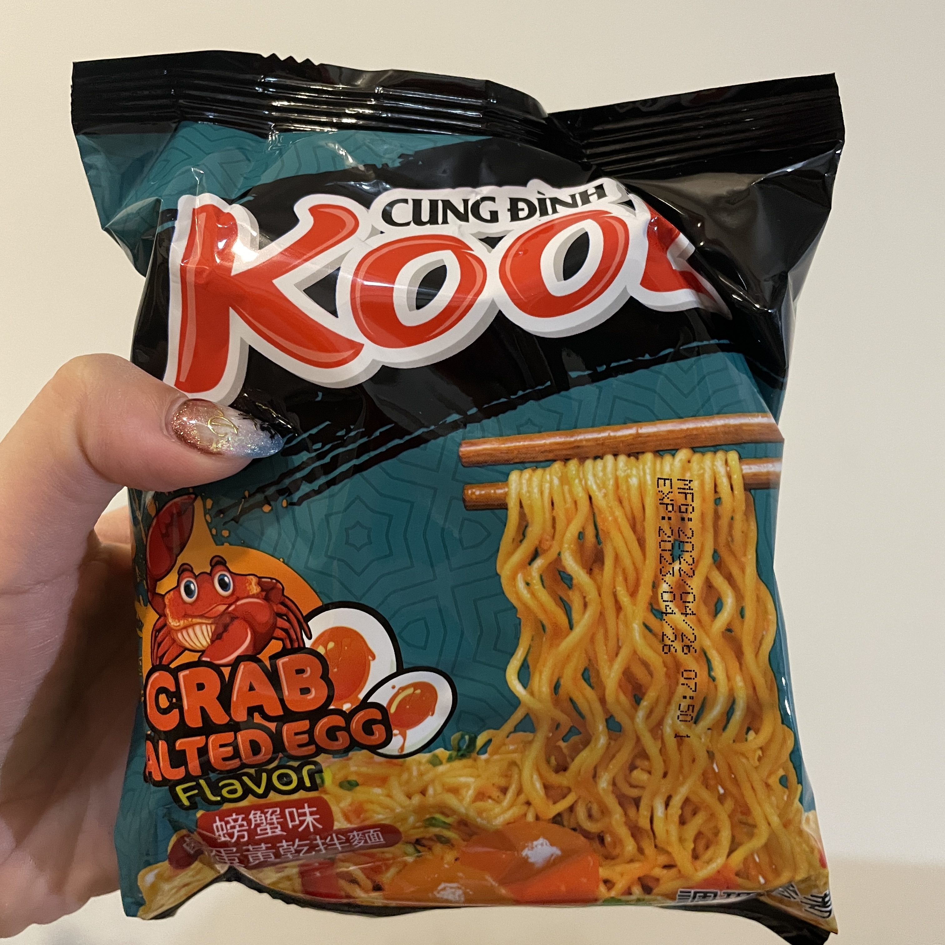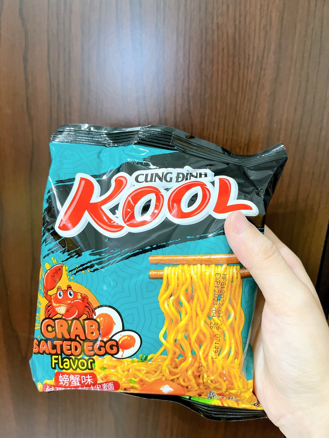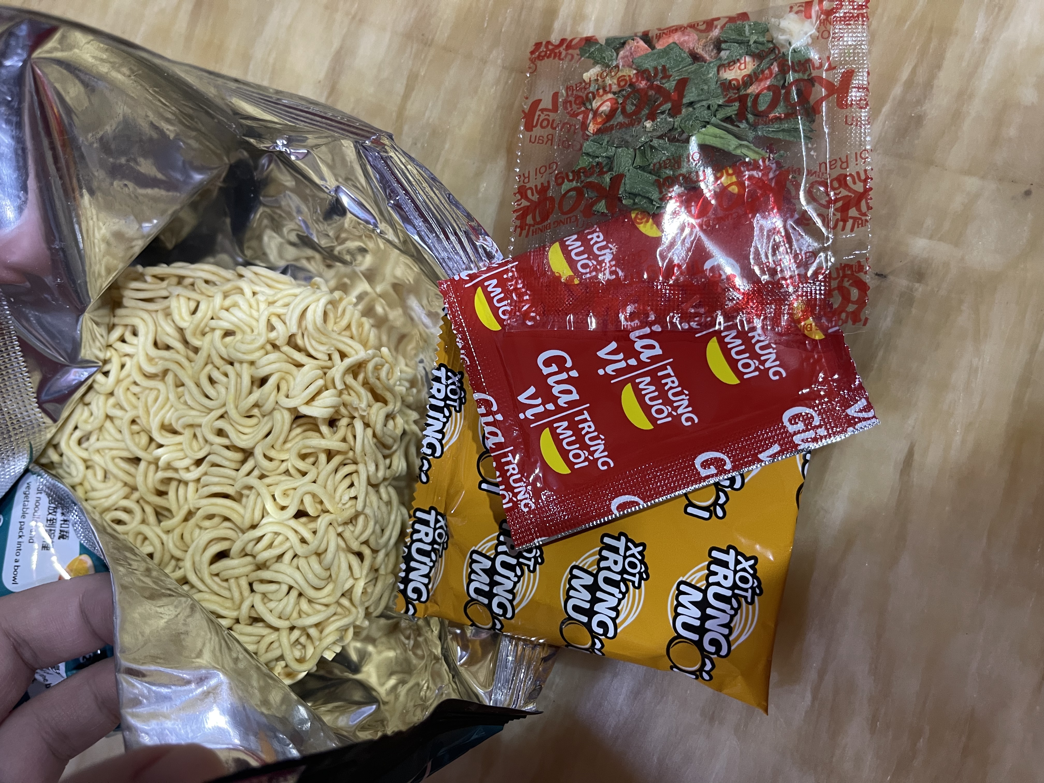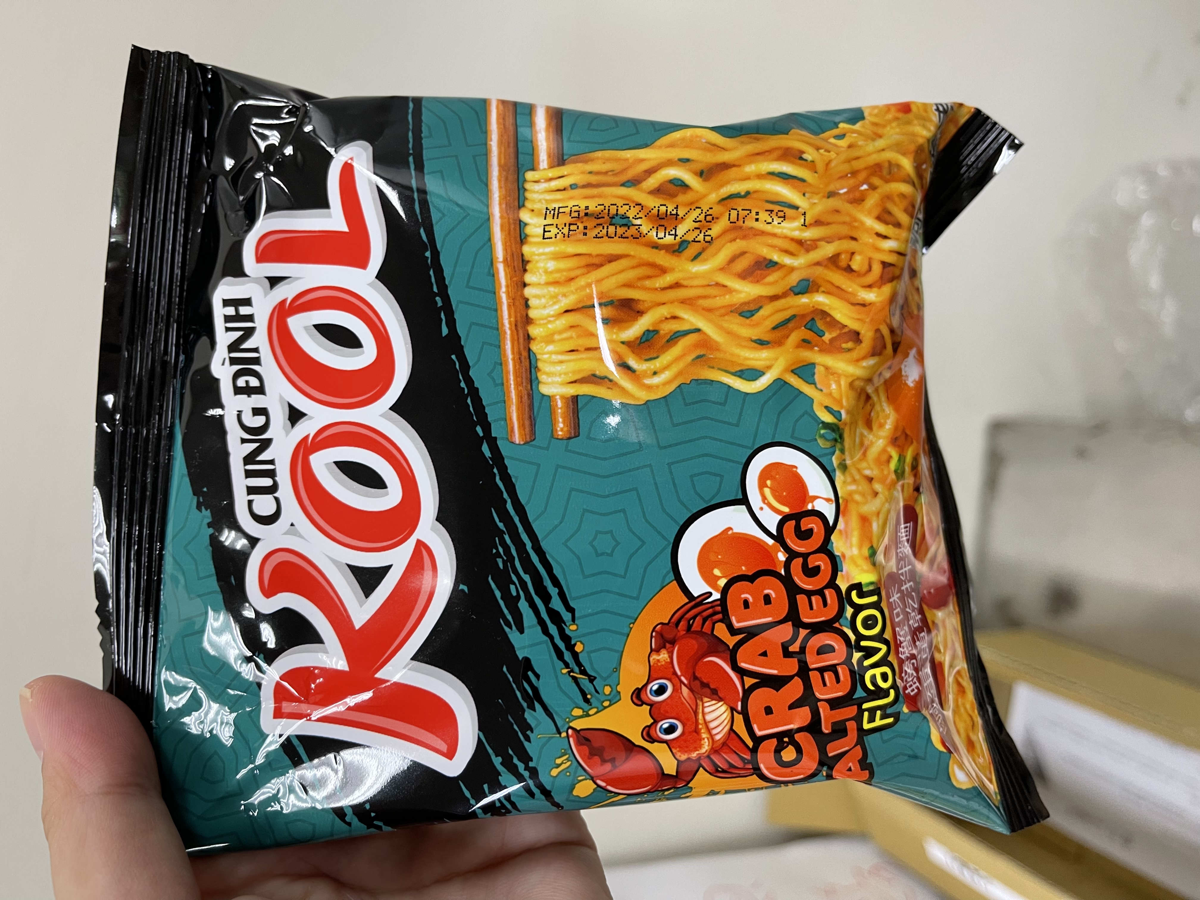 醬包:棕櫚油 、水、醬油{鹽、水、發酵大豆萃取物(含發酵大豆、小麥)、糖、L-麩酸鈉、焦糖色素(銨鹽焦糖)、醋酸 、玉米糖膠、5-次黃嘌呤核苷磷酸二鈉、5-鳥嘌呤核苷磷酸二鈉、香料(醬油)、碘化鉀}、糖、L-麩酸鈉、魚露(鳳尾魚、鹽)、大蒜粉、辣椒粉、蔥粉、胡椒粉、酵母萃取物、5-次黃嘌呤核苷磷酸二鈉、5-鳥嘌呤核苷磷酸二鈉、蝦粉[含蝦粉、魚露(鳳尾魚、鹽)、鹽]、胺基乙酸、玉米糖膠、檸檬酸、紅椒油、蟹粉{蟹粉、鹽、糖、 L-麩酸鈉、麥芽糊精、酵母萃取物、蝦粉、二氧化矽、5-次黃嘌呤核苷磷酸二鈉、5-鳥嘌呤核苷磷酸二鈉、辛烯基丁二酸鈉澱粉, 中鏈三酸甘油酯}、香料(香菜)、防腐劑(己二烯酸鉀)、甜味劑(醋磺內酯鉀)、香料(炸洋蔥)。