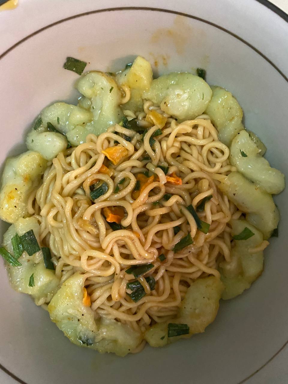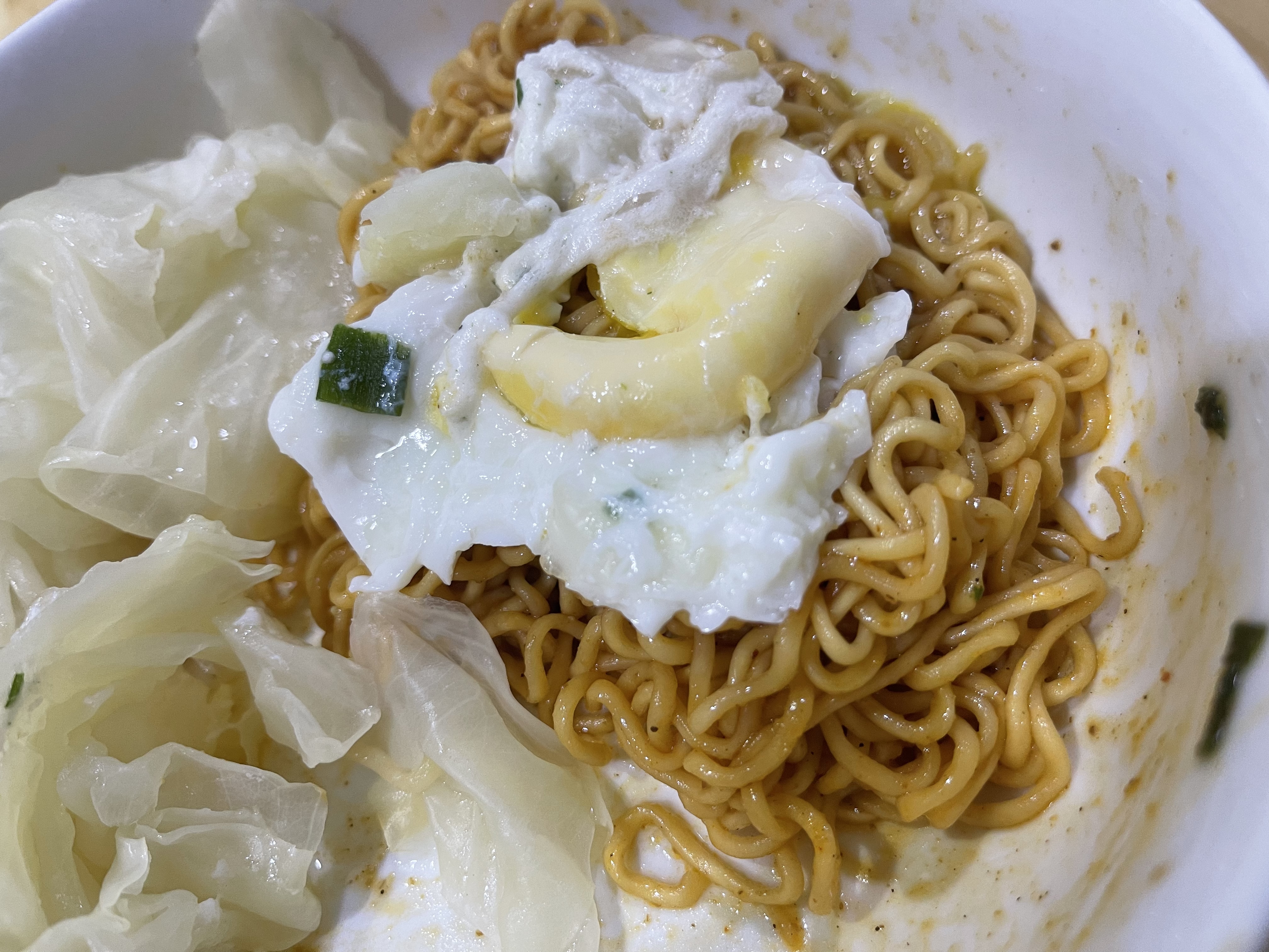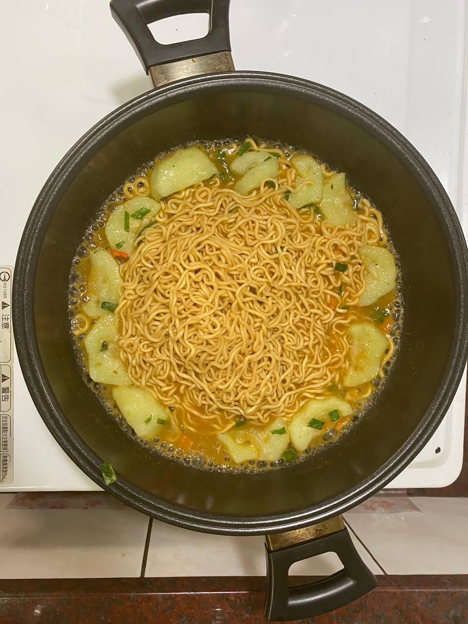 麵條:麵粉、棕櫚油[含有抗氧化劑(丁基羥基甲氧苯)]、樹薯澱粉、鹽、糯米粉、L-麩酸鈉、酵母萃取物、多磷酸鈉(E452i)、碳酸氫鈉、多磷酸鈉(E451i)、海藻酸丙二醇、混合濃縮生育醇(抗氧化劑)、5-次黃嘌呤核苷磷酸二鈉、5-鳥嘌呤核苷磷酸二鈉、琥珀酸二鈉、著色劑(核黃素)、薑黃色素。
