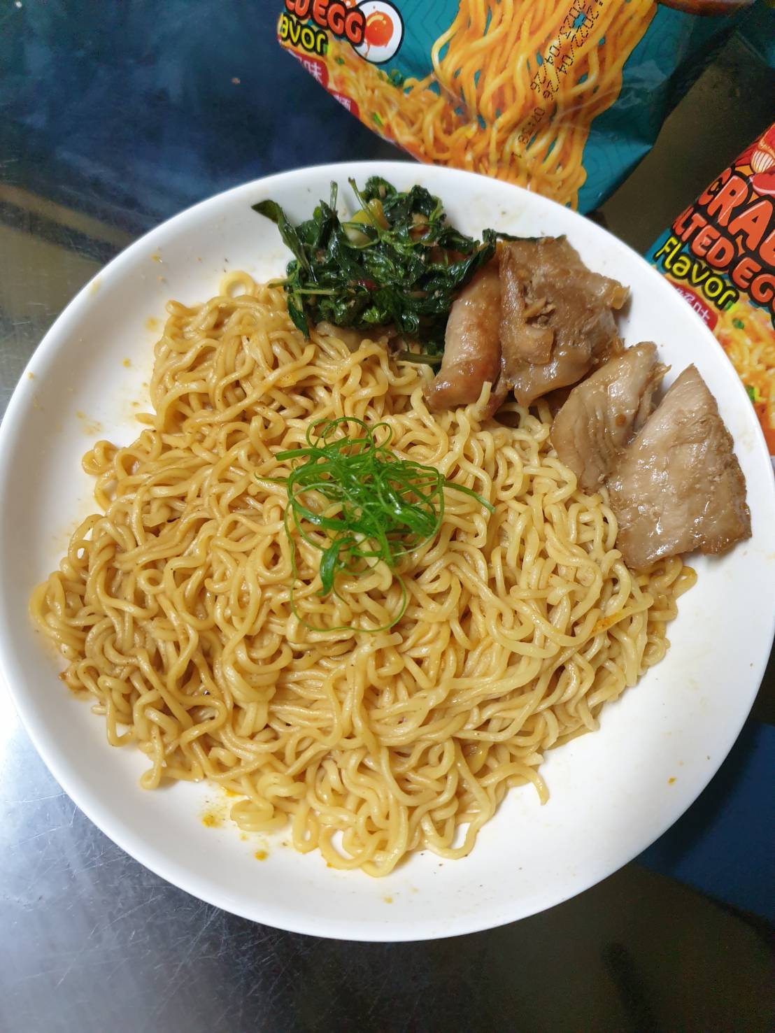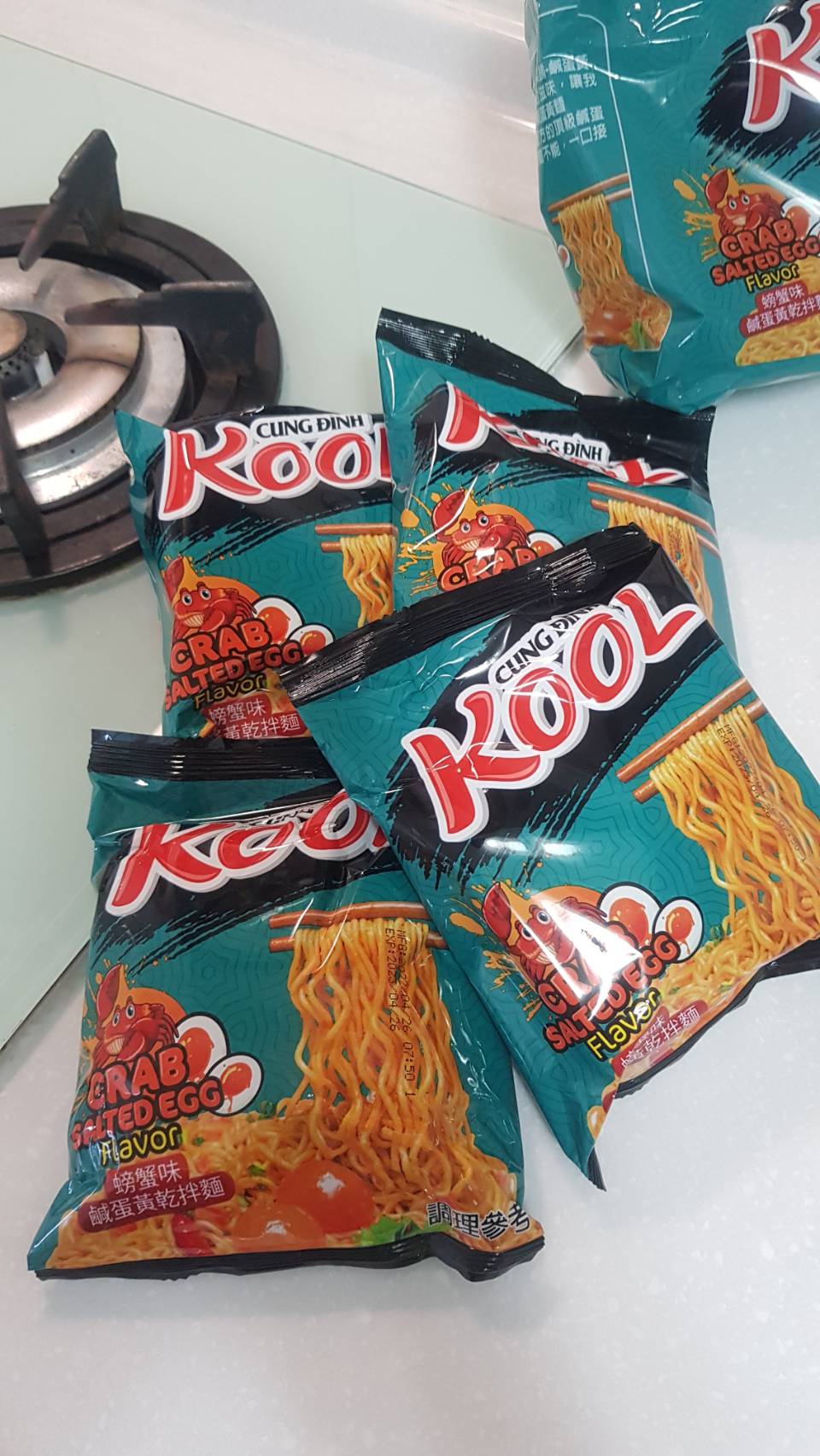 調味包:鹹蛋黃調味料{鹹蛋黃(鴨蛋黃、鹽)、棕櫚油、麥芽糊精、二氧化矽、阿拉伯膠}、 鴨蛋黃粉、L-麩酸鈉、鹽、糖、蔥粉、辣椒粉、蒜粉、二氧化矽、硫酸鈉、黑胡椒粉、薑粉、薑黃粉、香料(醬油)、5-鳥嘌呤核苷磷酸二鈉 、5-次黃嘌呤核苷磷酸二鈉。