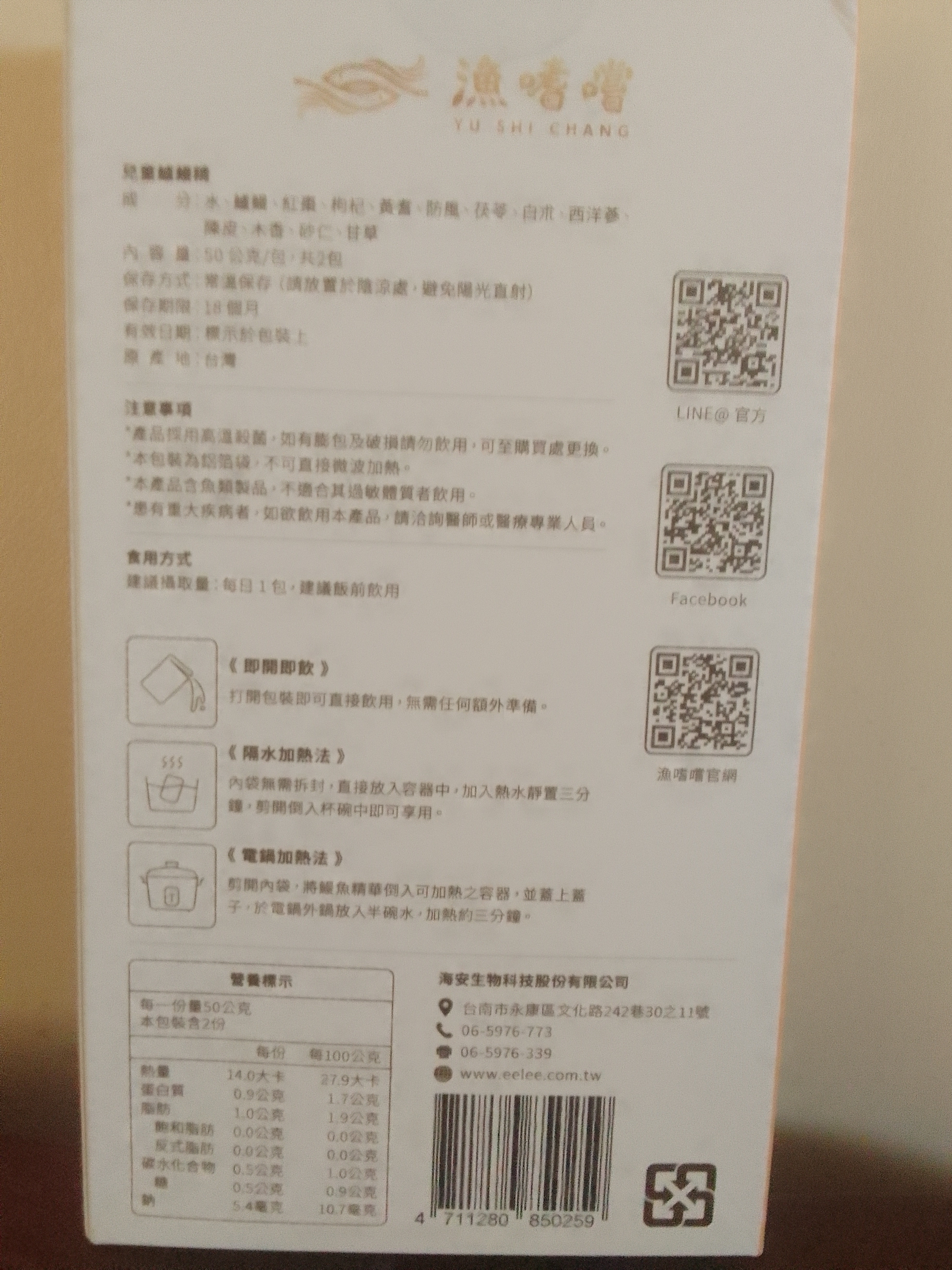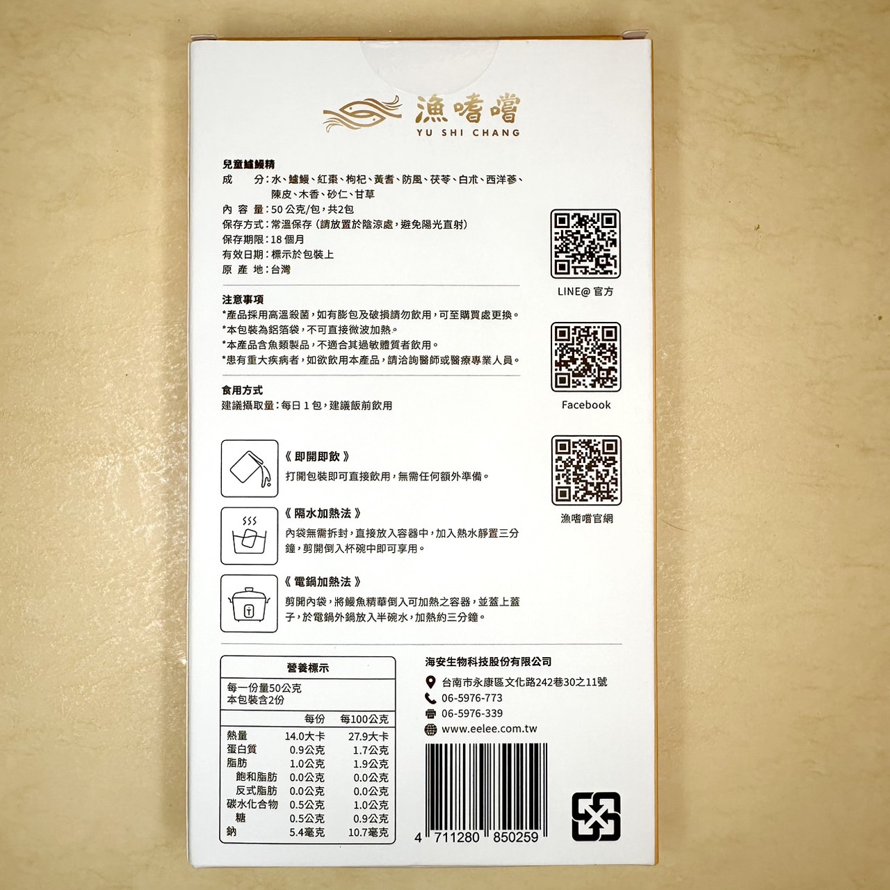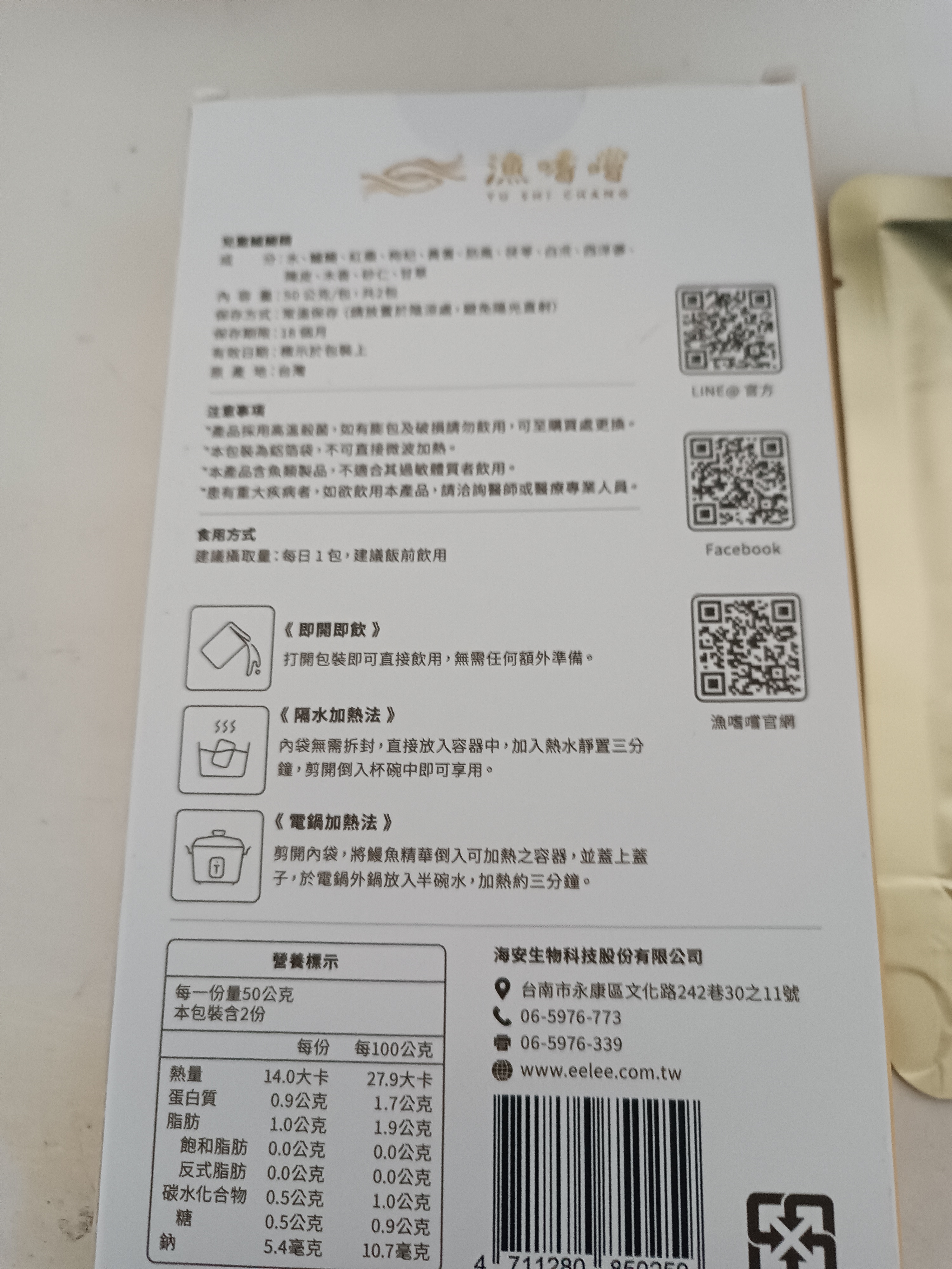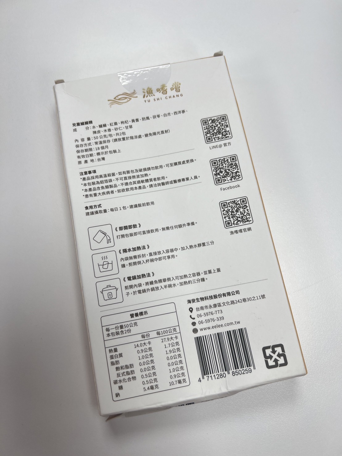 回列表 漁嗜嚐 兒童鱸鰻精 寶貝吃好好 健康沒煩惱 168元/包 所需等級 一般會員以上 所需學分 30 體驗份數 100 關注人數 974 申請人數 234 申請截止 品牌業者:漁嗜嚐 製造廠商 海安生物科技股份有限公司 廠商地址 台南市永康區文化路242巷30之11號 產地 台灣 試用產品規格 50毫克/包(共2包) 食品業者登錄字號 D-189176446-00000-6 投保產品責任險字號 華南產物保險1402-132050105 心得分享 商品介紹 商品成分 使用方法 注意事項 體驗名單 8.8 兒童鱸鰻精 天然健康無腥味 8.9 適合孩童補給營養 8.9 提升孩童精神元氣 8.7 小朋友喜愛程度 8.3 建議推薦 8.8 心得分享 84則 丁瑛子 鑽石達人 34歲 彰化縣 2025/03/13 對兒童鱸鰻精留下評價 10 兒童鱸鰻精是一種專為兒童設計的營養補充品,主要成分通常包含鱸魚精華與鰻魚精華。這些成分富含DHA、EPA、優質蛋白質、維生素A、B群、D等營養素,對兒童的大腦發育、免疫力提升、視力保護及成長發育有幫助。成分天然,無人工添加物或防腐劑 無腥味,口感佳,孩子較易接受 有檢驗合格證明,確保品質與安全適合需要補充營養的兒童食慾不振或偏食的孩子需要補充DHA促進學習專注力的兒童經常感冒、免疫力較弱的小孩 林欣慧 金食達人 29歲 臺南市 2025/03/13 對兒童鱸鰻精留下評價 10 漁嗜嚐 兒童鱸鰻精漁嚐嚐這款專門給兒童喝的鱸鰻精,孩子接受度高,吃魚怕魚腥味的都可以接受,對於小朋友抵抗力及免疫力沒那麼好時,常常容易生病感冒,整個精神狀態不好時是非常好的天然食補,對體力復原及恢復健康很有幫助,隨時補充營養、增強體力,不用放冰箱佔空間,常溫就可以方便保存,喝起來的感覺很香很好喝,清爽順口不油膩而且新鮮香醇好入口、無腥味,隔水加熱也很方便,加入蒸蛋、入菜、湯麵等料理也可以,提升免疫力、抵抗力,增強活力、精神及注意力,小小一包營養滿分,養身不養肉,作為日常營養補充調整體質的好產品,相信體力氣色也會慢慢養起來的. 蔡小雯 金食達人 28歲 宜蘭縣 2025/03/14 對兒童鱸鰻精留下評價 10 這次幸運的可以體驗到【漁嗜嚐 兒童鱸鰻精 】寶貝吃好好 健康沒煩惱一收到貨就迫不急待地打開來嘗鮮外包裝非常可愛,非常吸引小孩的眼球一盒裡面有兩包裝,一包約50毫升成分也很單純,包含鱸鰻以及十一種中藥材我這次沒有加熱,直接開袋即飲偷偷喝了一口,可能因為是要給小孩喝的喝起來甜甜的,很像紅棗桂圓茶完全沒有腥味,或是讓人感受不佳的味道小孩也很可以接受,非常喜歡鱸鰻精富含優質蛋白質、牛磺酸、EPA、DHA及胺基酸,可以增強小孩身體防護力,飯前飲用還可以開胃 陳雅玲 金食達人 33歲 新北市 2025/03/14 對兒童鱸鰻精留下評價 10 很開心這次抽中兒童鱸鰻精的體驗,雖然我是大人,但是選擇營養品時會優先選擇食物單純、較無負擔的兒童款,以下是我體驗完的感想:1.包裝:外包裝用卡通形象的鰻魚讓人一目瞭然,如果是在店內挑選產品,有魚的圖案比較不會買錯(對海鮮過敏的人也能很快避開);上方有標註要3歲以上兒童適用,且背面使用成份單純,除了鱸鰻外就是中藥材。2.口感:之前喝過其他牌的虱目魚精,魚的味道非常重,這次體驗有嚇一跳,我是用電鍋蒸的方式飲用,完全沒有魚味,喝起來比較像茶或不苦的中藥,是兒童可以接受的飲品。但同時也令我好奇產品的鱸鰻比率,是不是中藥材的比例高過鱸鰻很多呢? 查了官網也沒有明確寫到。整體而言,除了有些小疑問外,我對這次的體驗產品非常滿意,清爽無負擔,是會想自己回購的。 張佑安(yuanchang) 鑽石達人 63歲 臺中市 2025/03/15 對兒童鱸鰻精留下評價 10 鱸鰻(又稱鱸鱔)是一種少見的高檔食材,擁有細嫩的肉質與豐富的油脂;與一般鰻魚相比,鱸鰻的油脂分布均勻,燉煮後會釋放出濃郁的鮮香,帶有微微的奶油感;富含膠原蛋白,入口時有微微的黏嘴感;鱸鰻的風味介於淡水鰻與海水魚之間,具有溫和的鮮味。這款兒童鱸鰻精,除上述營養價值外,還附有許多種胺基酸成分,加上中藥配方,將魚腥味徹底去除,無論是冷、熱飲皆相當順口,且飲後口齒留香;雖標榜「兒童」字言,個人認為老少咸宜,值得推薦。 李庭 金食達人 33歲 臺北市 2025/03/15 對兒童鱸鰻精留下評價 10 這次收到的是【漁嗜嚐的兒童鱸鰻精】不要說小朋友,光是我自己都不太喜歡有藥膳味,或是土味的食物~但這次的鱸鰻精真的讓我非常驚豔,他不但沒有腥味,也沒有很重的中藥味喔!雖然說是想要給姊姊的小朋友試試看,自己還是偷偷吃了一包啦 :P個人覺得很香很順口,連小朋友都不會抗拒食用。尤其最近變天忽冷忽熱的,還有諾羅病毒肆虐,天然的防護力真的來的很即時:)小朋友聚在一起總是病毒互相傳染,蠻推薦給有小朋友的家長,或是跟我一樣不喜歡中藥味但又不想跑醫院的大人喔! 謝婷婷 金食達人 46歲 臺中市 2025/03/16 對兒童鱸鰻精留下評價 10 想用魚精給小孩跟老人補身體,尤其是小朋友,魚腥味重了不行,有中藥味不行 ,特別傷老媽子的腦筋。這次試喝的漁嗜嚐 兒童鱸鰻精,是特別為三歲以上兒童設計的,常溫打開的時候,就能聞到淡淡枸杞的香味,加熱出鍋的時候,特別讓我驚喜,居然一點腥味也沒有,之前也買過其他魚精,加熱後,魚腥味都有點令我卻步,而且一定要趁熱喝,一旦涼了,更是喝不入口,可是這次,雖然涼了,也不腥,更沒有濃厚中藥味,清清爽爽,接受度特別高,而且這款鱸鰻精,包裝可愛,加熱飲用