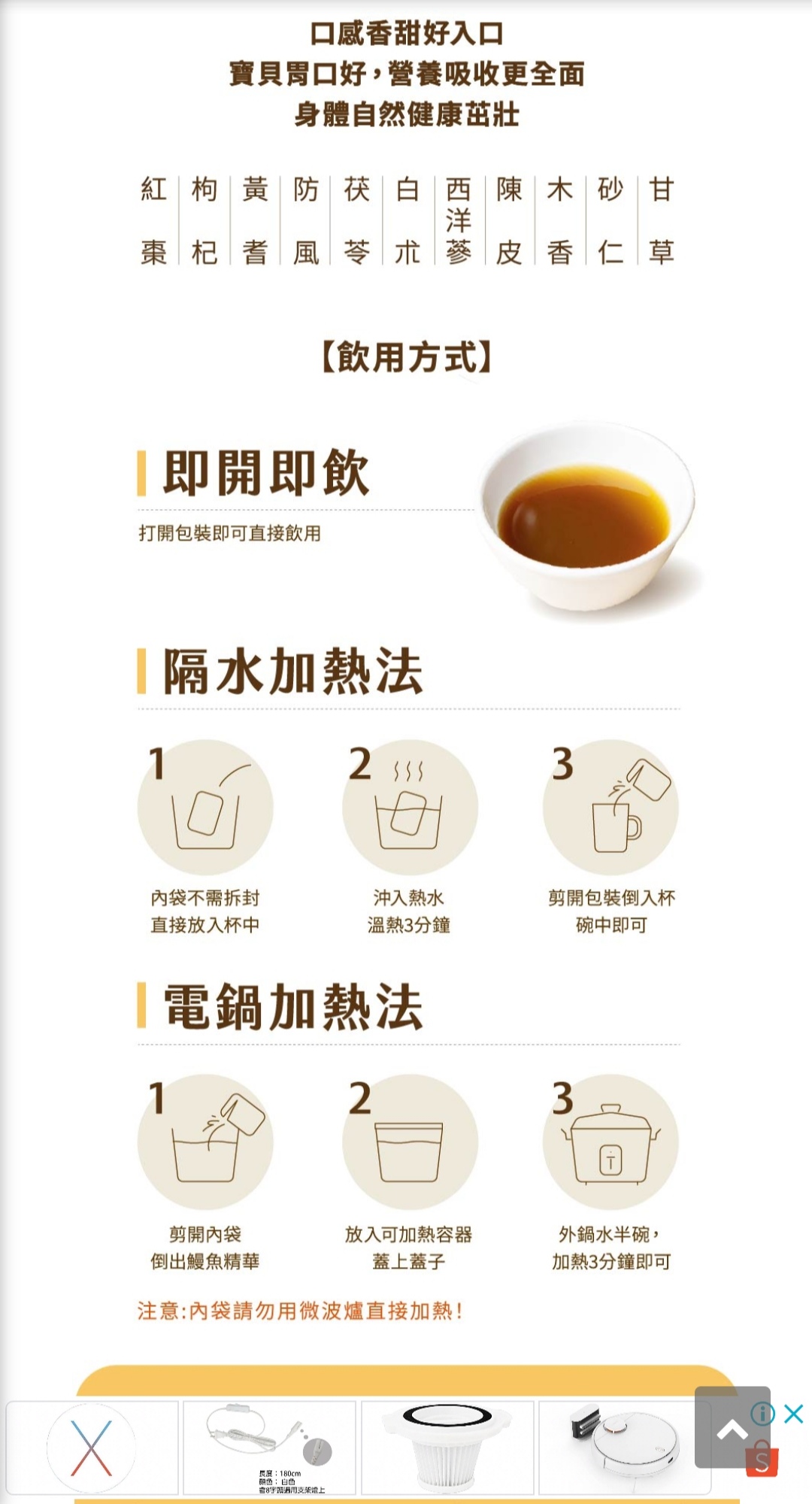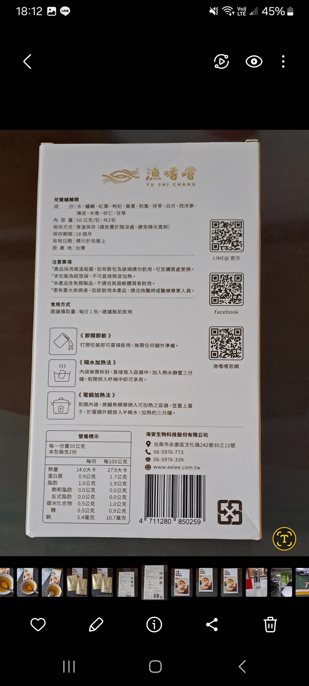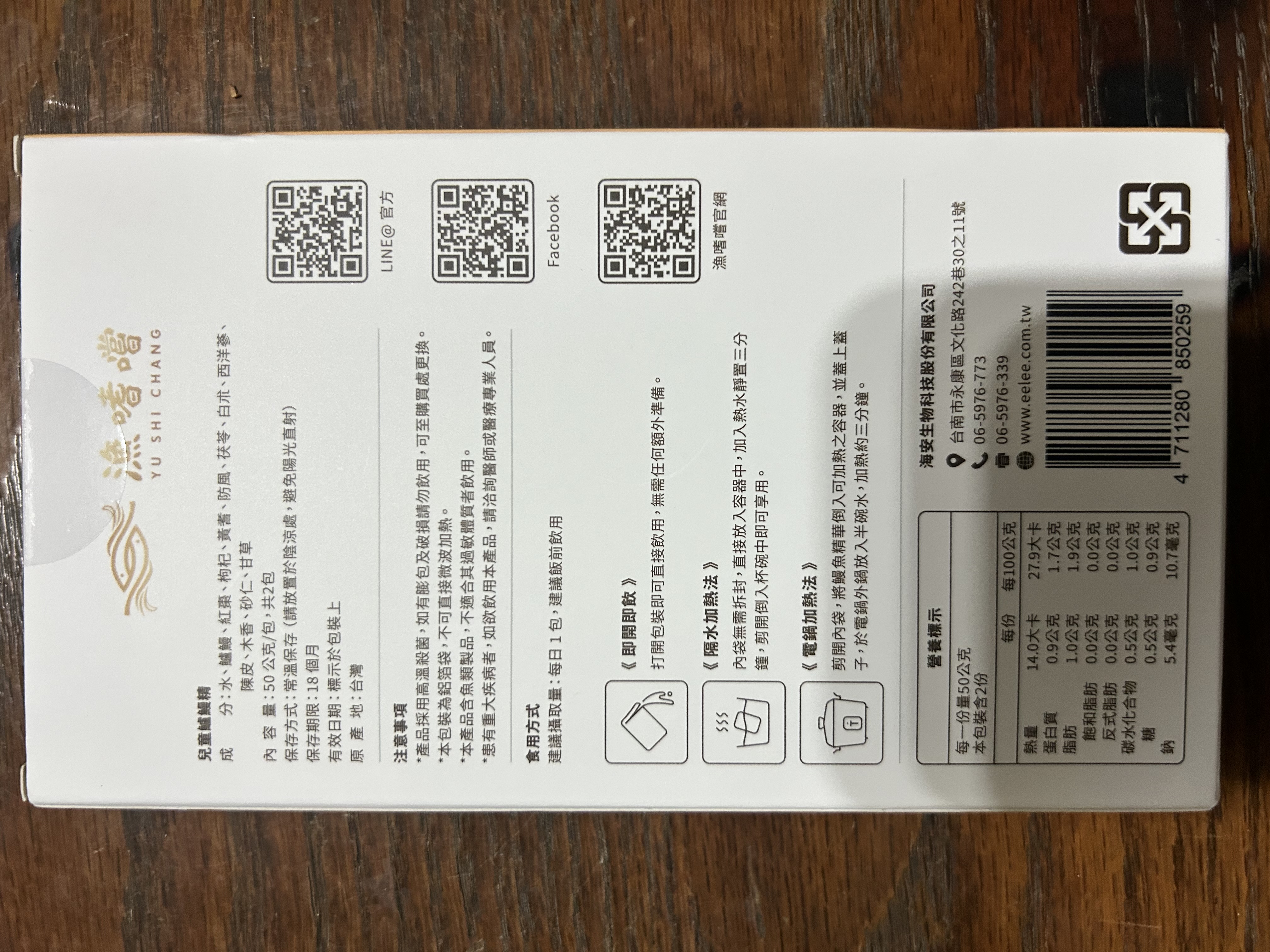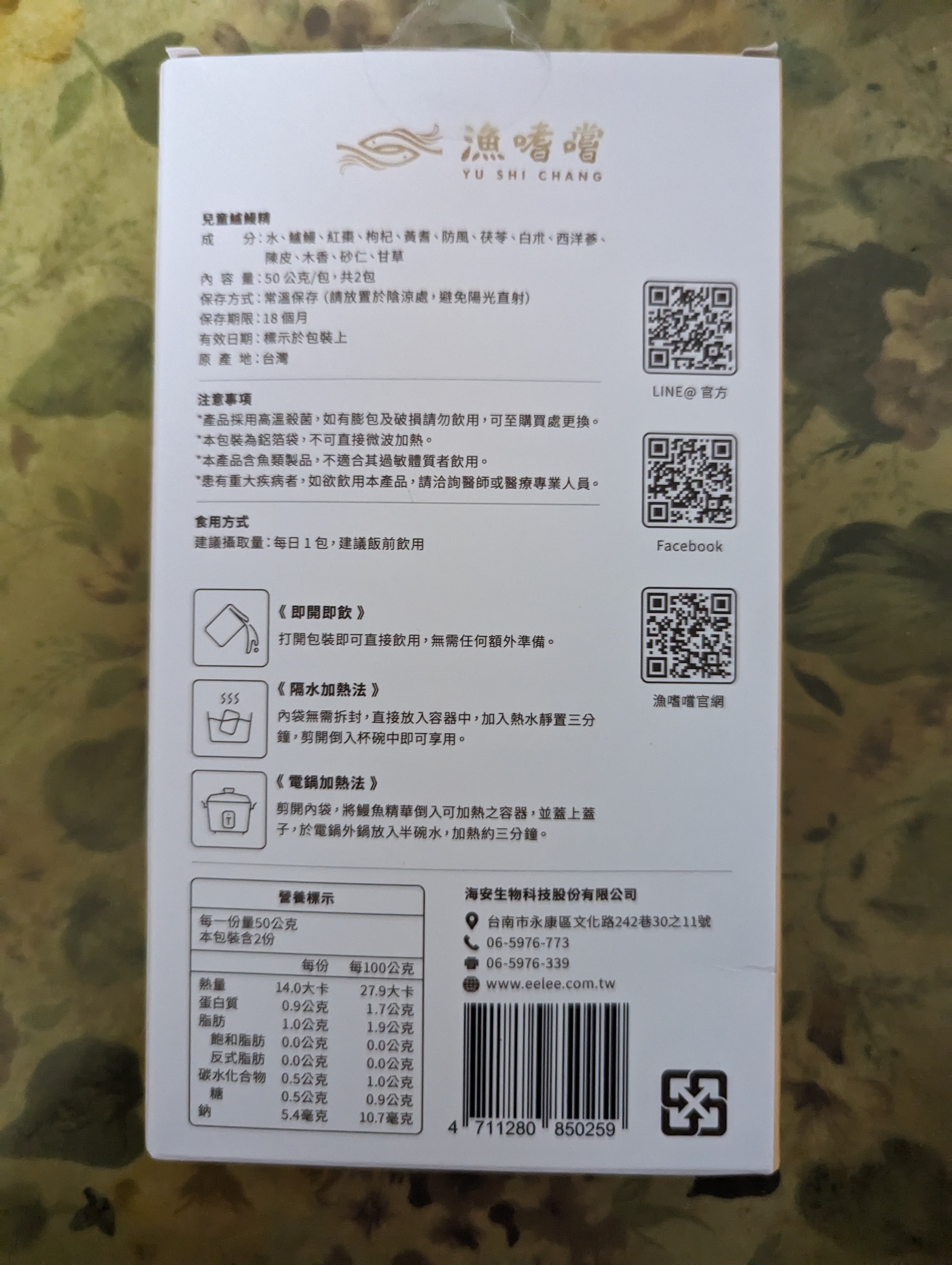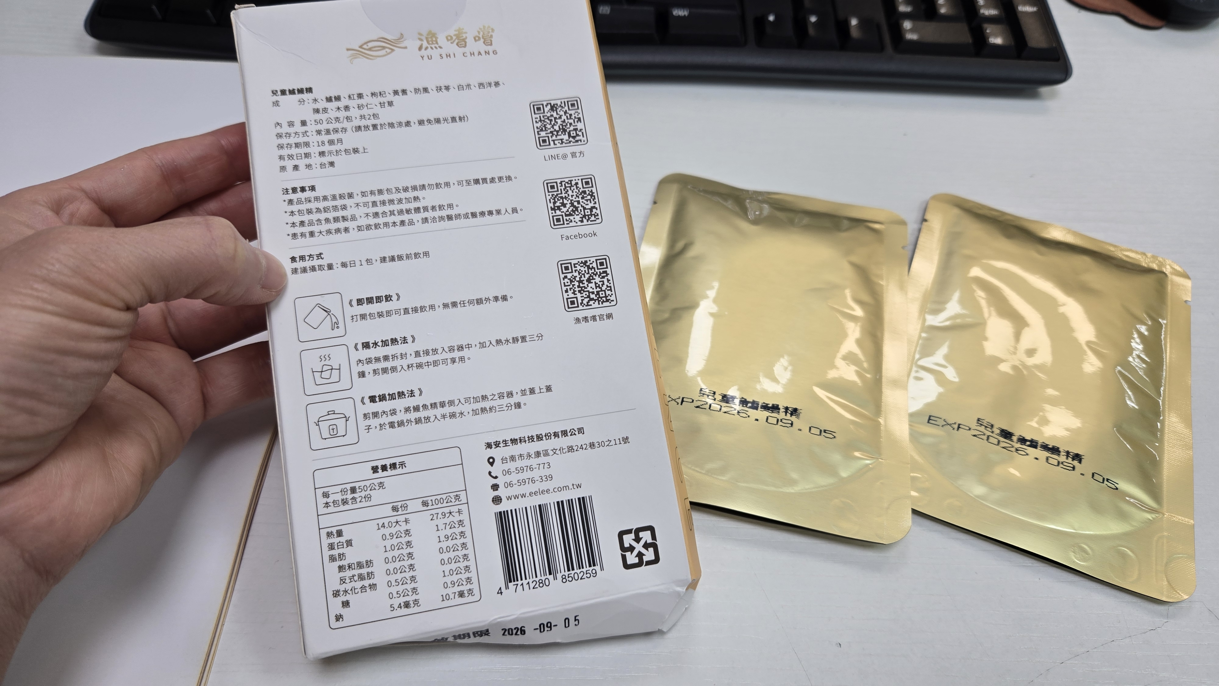 回列表 漁嗜嚐 兒童鱸鰻精 寶貝吃好好 健康沒煩惱 168元/包 所需等級 一般會員以上 所需學分 30 體驗份數 100 關注人數 974 申請人數 234 申請截止 品牌業者:漁嗜嚐 製造廠商 海安生物科技股份有限公司 廠商地址 台南市永康區文化路242巷30之11號 產地 台灣 試用產品規格 50毫克/包(共2包) 食品業者登錄字號 D-189176446-00000-6 投保產品責任險字號 華南產物保險1402-132050105 心得分享 商品介紹 商品成分 使用方法 注意事項 體驗名單 8.8 兒童鱸鰻精 天然健康無腥味 8.9 適合孩童補給營養 8.9 提升孩童精神元氣 8.7 小朋友喜愛程度 8.3 建議推薦 8.8 心得分享 84則 丁瑛子 鑽石達人 34歲 彰化縣 2025/03/13 對兒童鱸鰻精留下評價 10 兒童鱸鰻精是一種專為兒童設計的營養補充品,主要成分通常包含鱸魚精華與鰻魚精華。這些成分富含DHA、EPA、優質蛋白質、維生素A、B群、D等營養素,對兒童的大腦發育、免疫力提升、視力保護及成長發育有幫助。成分天然,無人工添加物或防腐劑 無腥味,口感佳,孩子較易接受 有檢驗合格證明,確保品質與安全適合需要補充營養的兒童食慾不振或偏食的孩子需要補充DHA促進學習專注力的兒童經常感冒、免疫力較弱的小孩 林欣慧 金食達人 29歲 臺南市 2025/03/13 對兒童鱸鰻精留下評價 10 漁嗜嚐 兒童鱸鰻精漁嚐嚐這款專門給兒童喝的鱸鰻精,孩子接受度高,吃魚怕魚腥味的都可以接受,對於小朋友抵抗力及免疫力沒那麼好時,常常容易生病感冒,整個精神狀態不好時是非常好的天然食補,對體力復原及恢復健康很有幫助,隨時補充營養、增強體力,不用放冰箱佔空間,常溫就可以方便保存,喝起來的感覺很香很好喝,清爽順口不油膩而且新鮮香醇好入口、無腥味,隔水加熱也很方便,加入蒸蛋、入菜、湯麵等料理也可以,提升免疫力、抵抗力,增強活力、精神及注意力,小小一包營養滿分,養身不養肉,作為日常營養補充調整體質的好產品,相信體力氣色也會慢慢養起來的. 蔡小雯 金食達人 28歲 宜蘭縣 2025/03/14 對兒童鱸鰻精留下評價 10 這次幸運的可以體驗到【漁嗜嚐 兒童鱸鰻精 】寶貝吃好好 健康沒煩惱一收到貨就迫不急待地打開來嘗鮮外包裝非常可愛,非常吸引小孩的眼球一盒裡面有兩包裝,一包約50毫升成分也很單純,包含鱸鰻以及十一種中藥材我這次沒有加熱,直接開袋即飲偷偷喝了一口,可能因為是要給小孩喝的喝起來甜甜的,很像紅棗桂圓茶完全沒有腥味,或是讓人感受不佳的味道小孩也很可以接受,非常喜歡鱸鰻精富含優質蛋白質、牛磺酸、EPA、DHA及胺基酸,可以增強小孩身體防護力,飯前飲用還可以開胃 陳雅玲 金食達人 33歲 新北市 2025/03/14 對兒童鱸鰻精留下評價 10 很開心這次抽中兒童鱸鰻精的體驗,雖然我是大人,但是選擇營養品時會優先選擇食物單純、較無負擔的兒童款,以下是我體驗完的感想:1.包裝:外包裝用卡通形象的鰻魚讓人一目瞭然,如果是在店內挑選產品,有魚的圖案比較不會買錯(對海鮮過敏的人也能很快避開);上方有標註要3歲以上兒童適用,且背面使用成份單純,除了鱸鰻外就是中藥材。2.口感:之前喝過其他牌的虱目魚精,魚的味道非常重,這次體驗有嚇一跳,我是用電鍋蒸的方式飲用,完全沒有魚味,喝起來比較像茶或不苦的中藥,是兒童可以接受的飲品。但同時也令我好奇產品的鱸鰻比率,是不是中藥材的比例高過鱸鰻很多呢? 查了官網也沒有明確寫到。整體而言,除了有些小疑問外,我對這次的體驗產品非常滿意,清爽無負擔,是會想自己回購的。 張佑安(yuanchang) 鑽石達人 63歲 臺中市 2025/03/15 對兒童鱸鰻精留下評價 10 鱸鰻(又稱鱸鱔)是一種少見的高檔食材,擁有細嫩的肉質與豐富的油脂;與一般鰻魚相比,鱸鰻的油脂分布均勻,燉煮後會釋放出濃郁的鮮香,帶有微微的奶油感;富含膠原蛋白,入口時有微微的黏嘴感;鱸鰻的風味介於淡水鰻與海水魚之間,具有溫和的鮮味。這款兒童鱸鰻精,除上述營養價值外,還附有許多種胺基酸成分,加上中藥配方,將魚腥味徹底去除,無論是冷、熱飲皆相當順口,且飲後口齒留香;雖標榜「兒童」字言,個人認為老少咸宜,值得推薦。 李庭 金食達人 33歲 臺北市 2025/03/15 對兒童鱸鰻精留下評價 10 這次收到的是【漁嗜嚐的兒童鱸鰻精】不要說小朋友,光是我自己都不太喜歡有藥膳味,或是土味的食物~但這次的鱸鰻精真的讓我非常驚豔,他不但沒有腥味,也沒有很重的中藥味喔!雖然說是想要給姊姊的小朋友試試看,自己還是偷偷吃了一包啦 :P個人覺得很香很順口,連小朋友都不會抗拒食用。尤其最近變天忽冷忽熱的,還有諾羅病毒肆虐,天然的防護力真的來的很即時:)小朋友聚在一起總是病毒互相傳染,蠻推薦給有小朋友的家長,或是跟我一樣不喜歡中藥味但又不想跑醫院的大人喔! 謝婷婷 金食達人 46歲 臺中市 2025/03/16 對兒童鱸鰻精留下評價 10 想用魚精給小孩跟老人補身體,尤其是小朋友,魚腥味重了不行,有中藥味不行 ,特別傷老媽子的腦筋。這次試喝的漁嗜嚐 兒童鱸鰻精,是特別為三歲以上兒童設計的,常溫打開的時候,就能聞到淡淡枸杞的香味,加熱出鍋的時候,特別讓我驚喜,居然一點腥味也沒有,之前也買過其他魚精,加熱後,魚腥味都有點令我卻步,而且一定要趁熱喝,一旦涼了,更是喝不入口,可是這次,雖然涼了,也不腥,更沒有濃厚中藥味,清清爽爽,接受度特別高,而且這款鱸鰻精,包裝可愛,加熱飲用