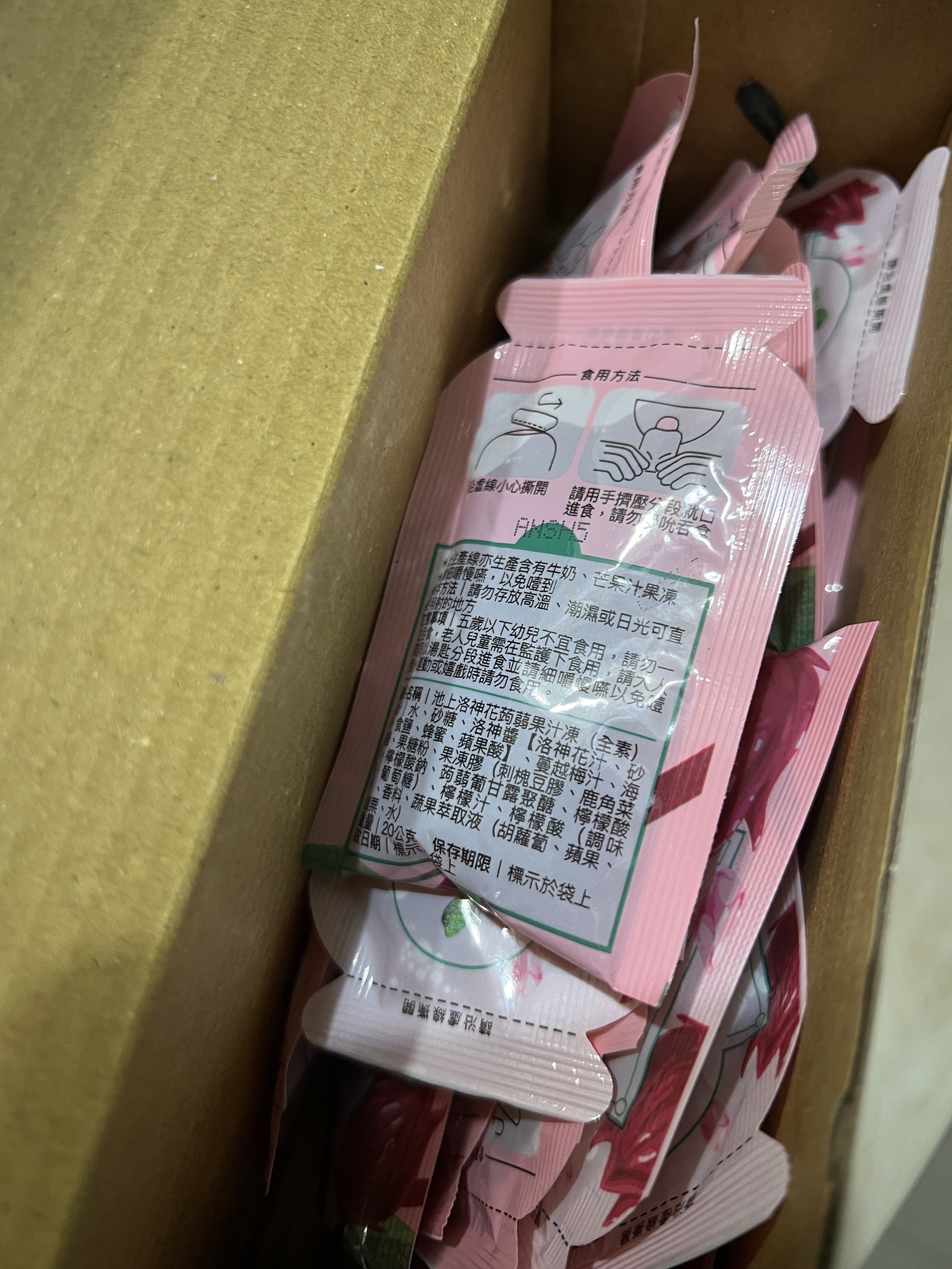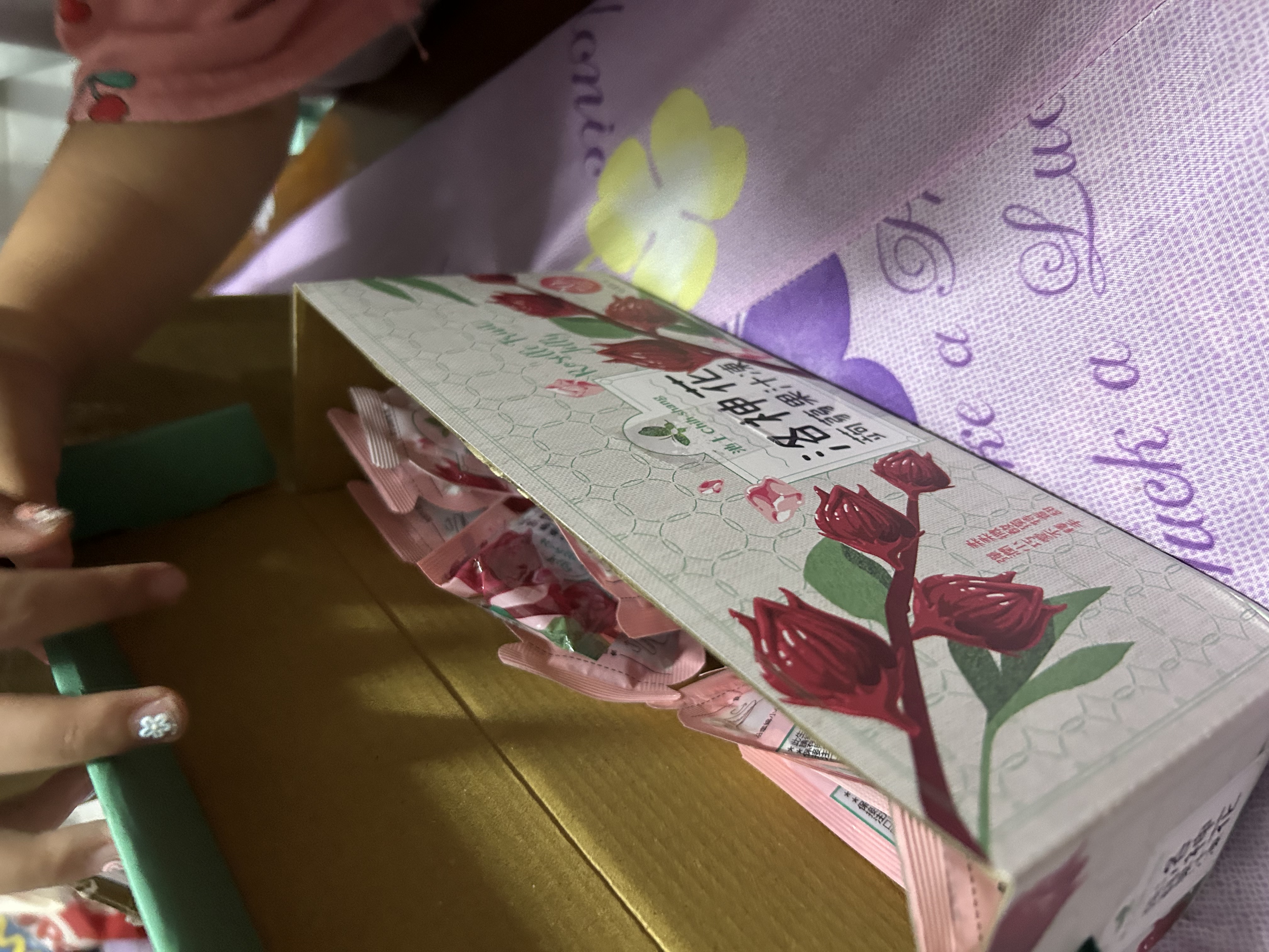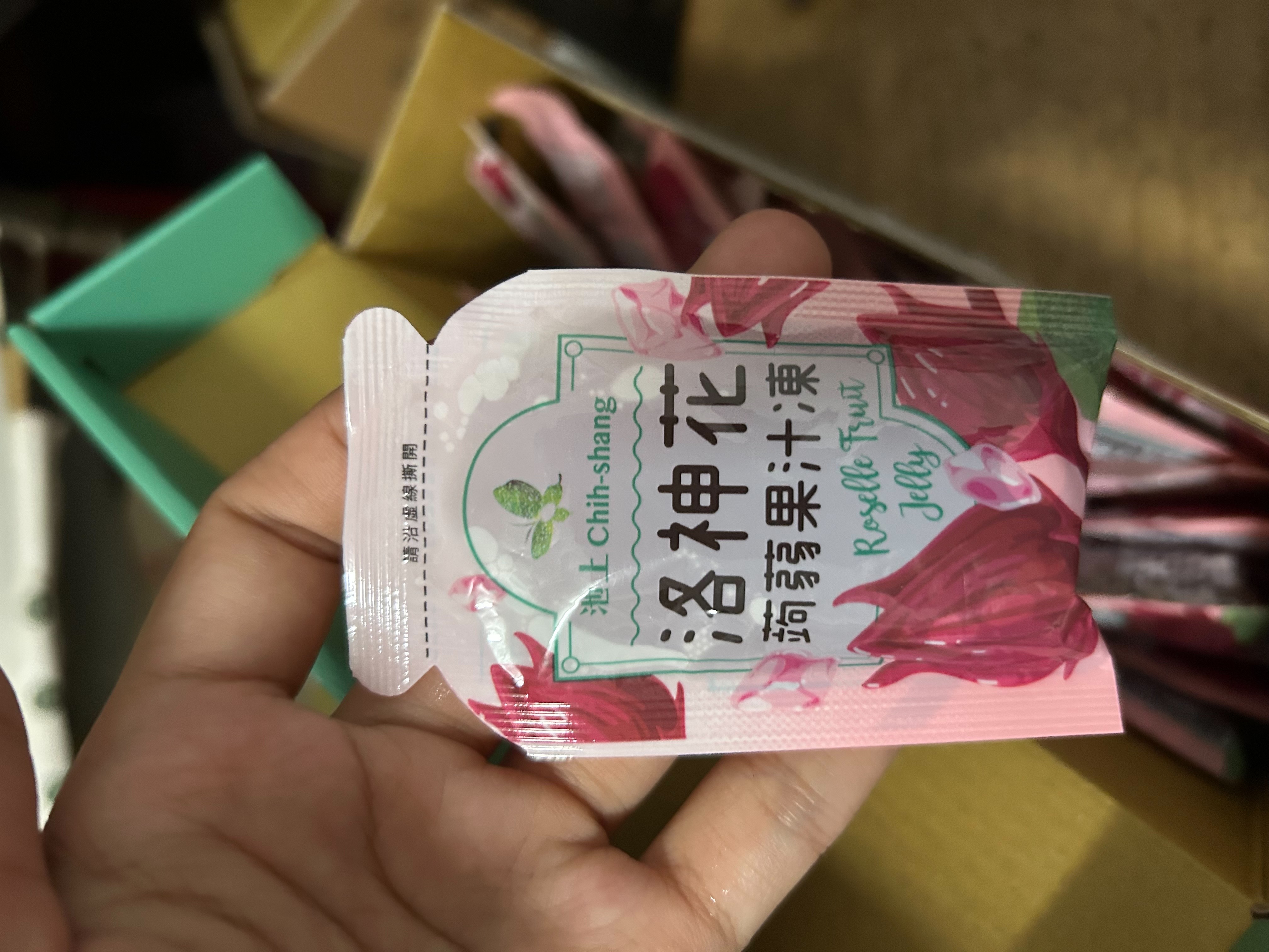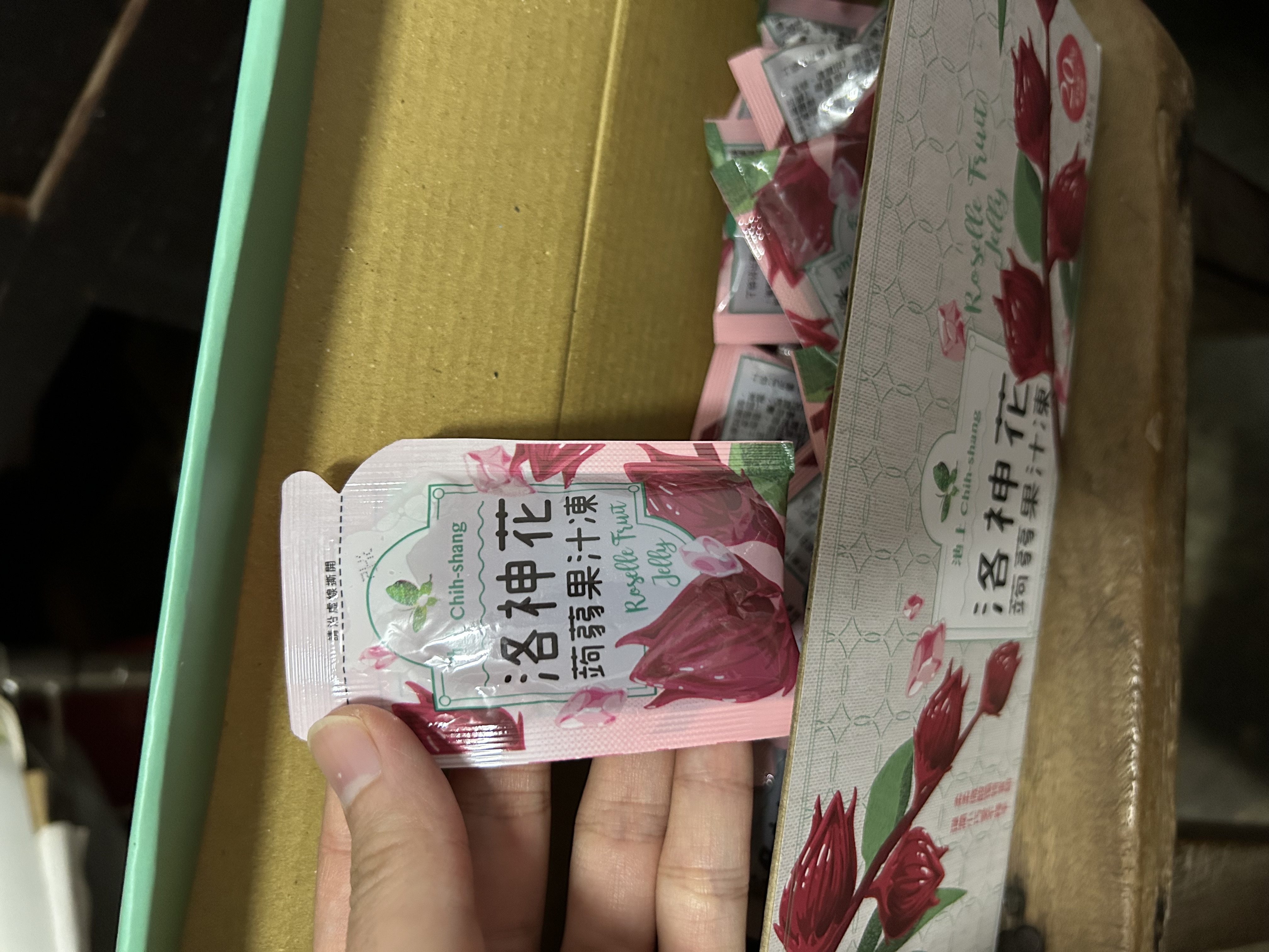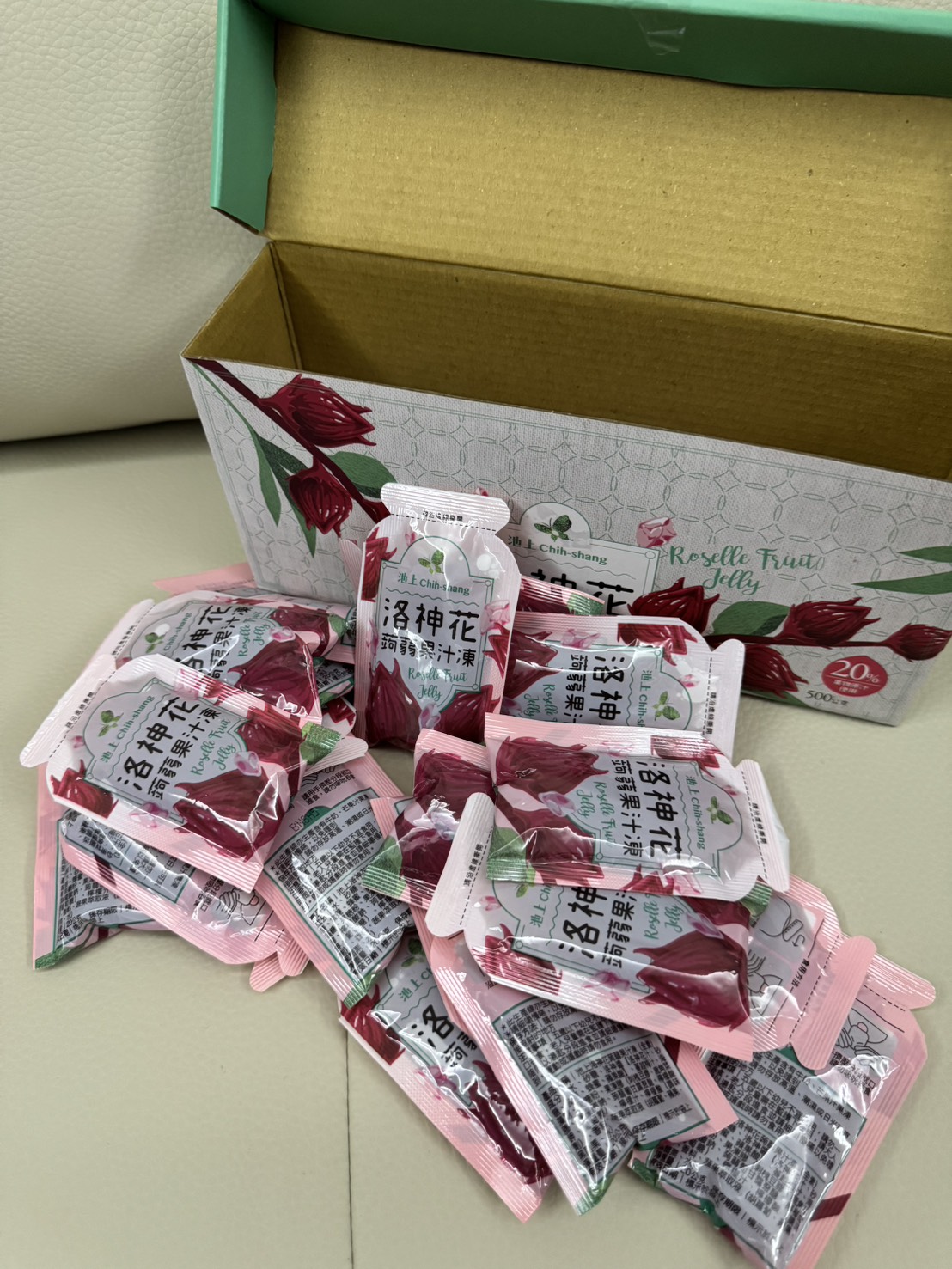 水、砂糖、洛神醬【洛神花汁、砂糖、食鹽、 蜂蜜、 蘋果酸】、蔓越莓汁、海藻糖、果糖粉、果凍膠(刺槐豆膠、鹿角菜膠、檸檬酸鈉、蒟蒻葡甘露聚醣、檸檬酸鉀、葡萄糖) 、檸檬汁、檸檬酸(調味劑)、香料、蔬果萃取液(胡蘿蔔、蘋果、黑醋栗、水)