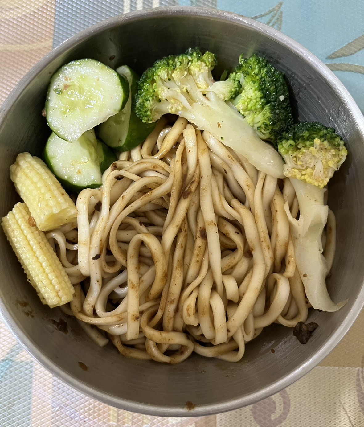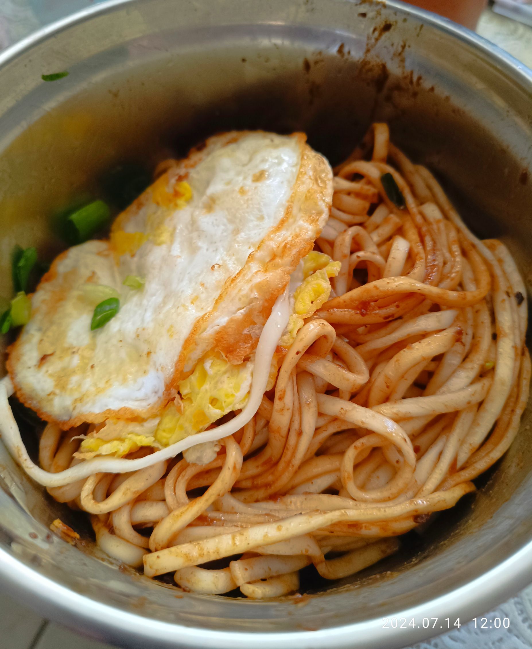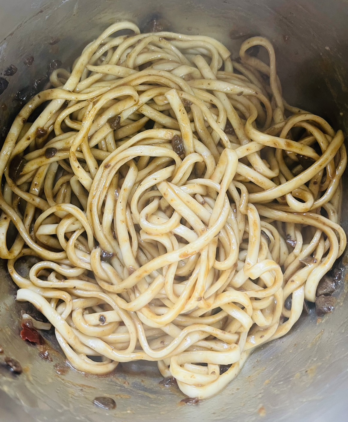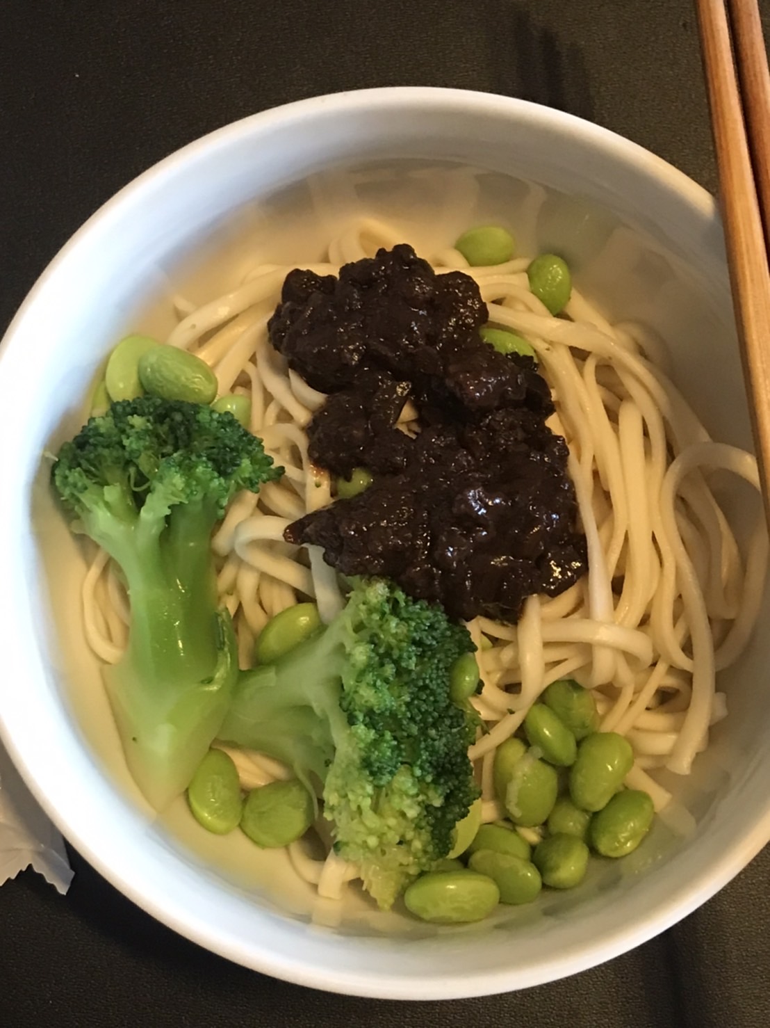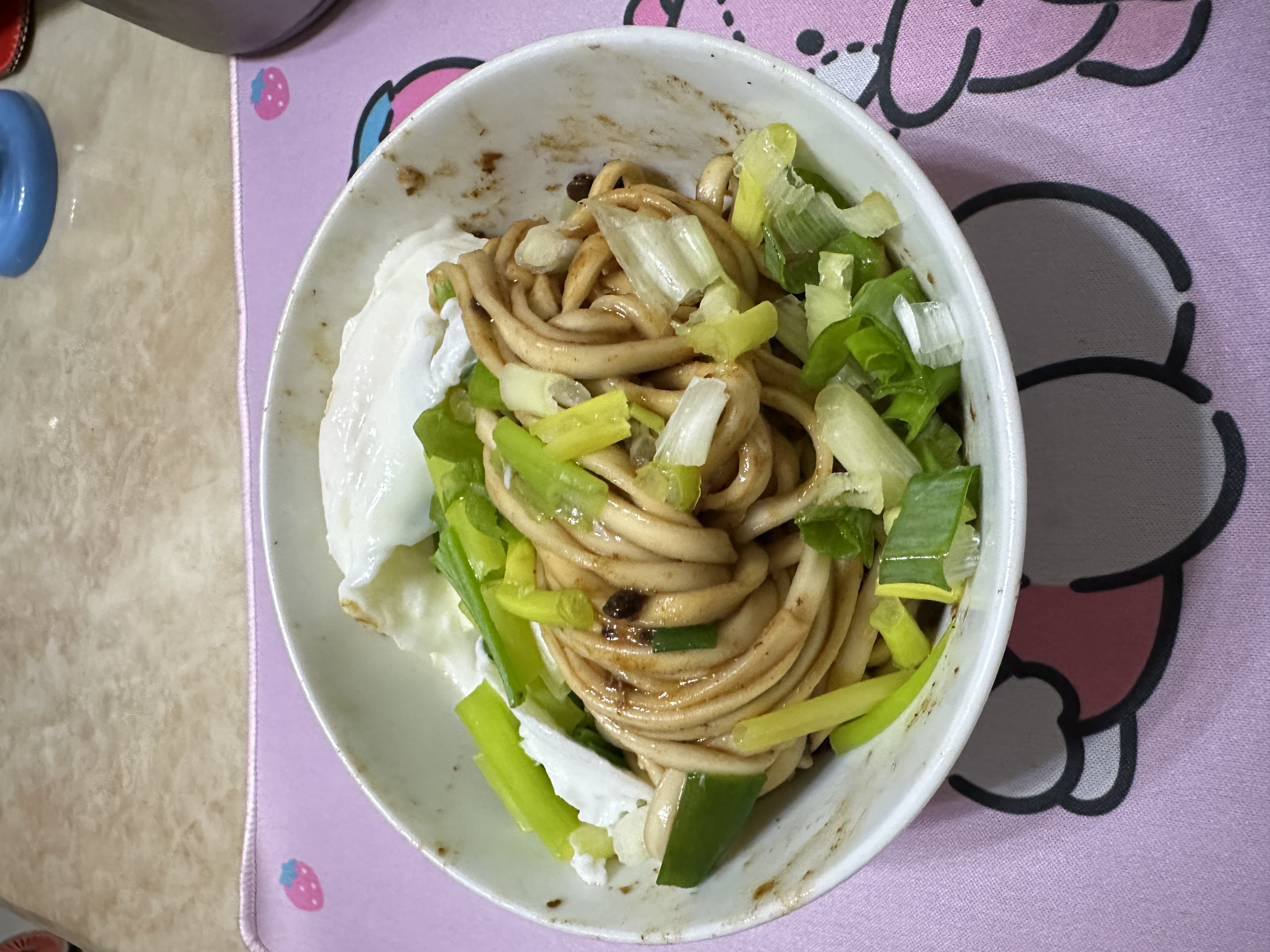 2、瀝乾麵條,倒入醬料包後視情況加入20-30cc的熱開水拌勻