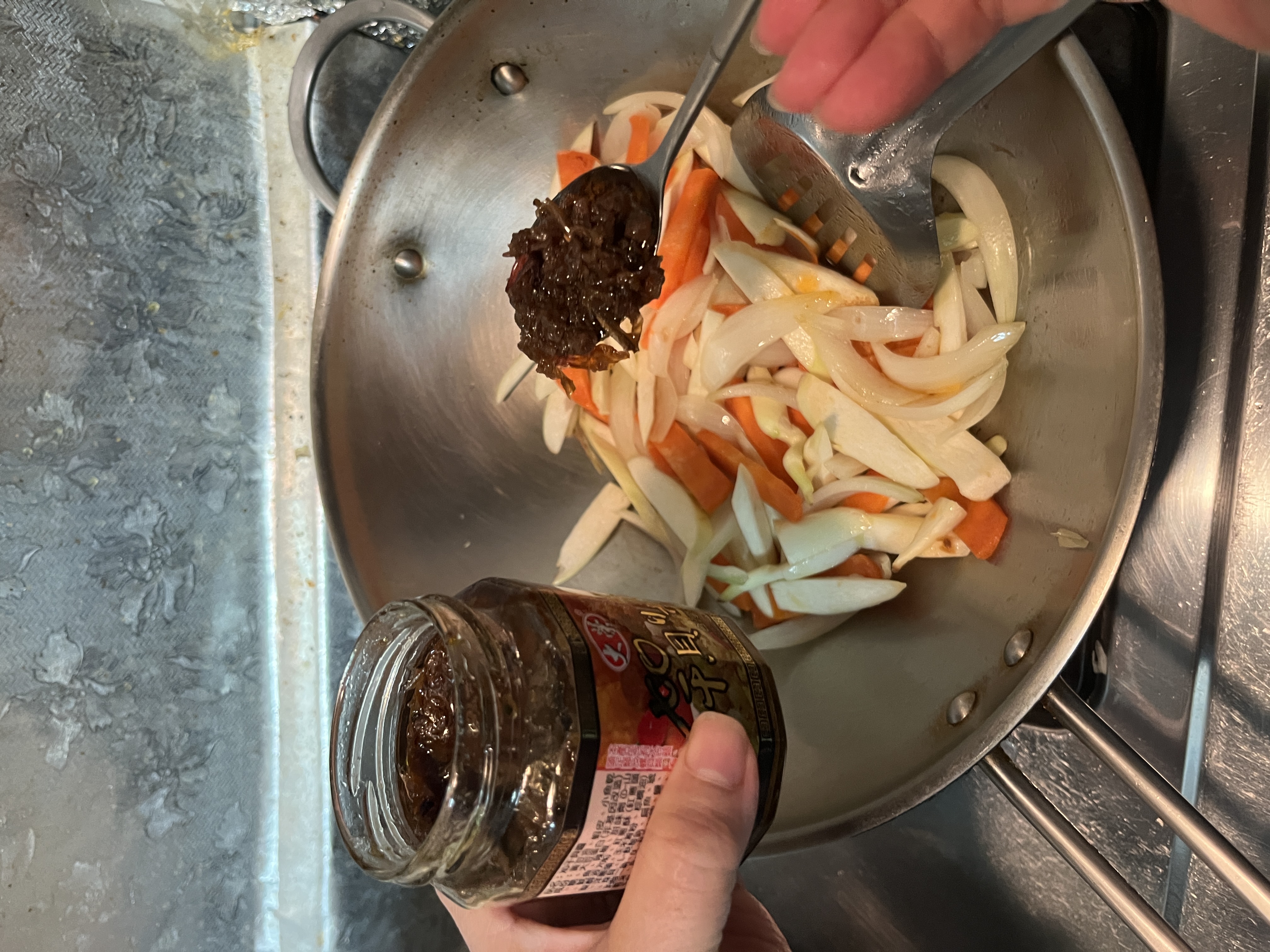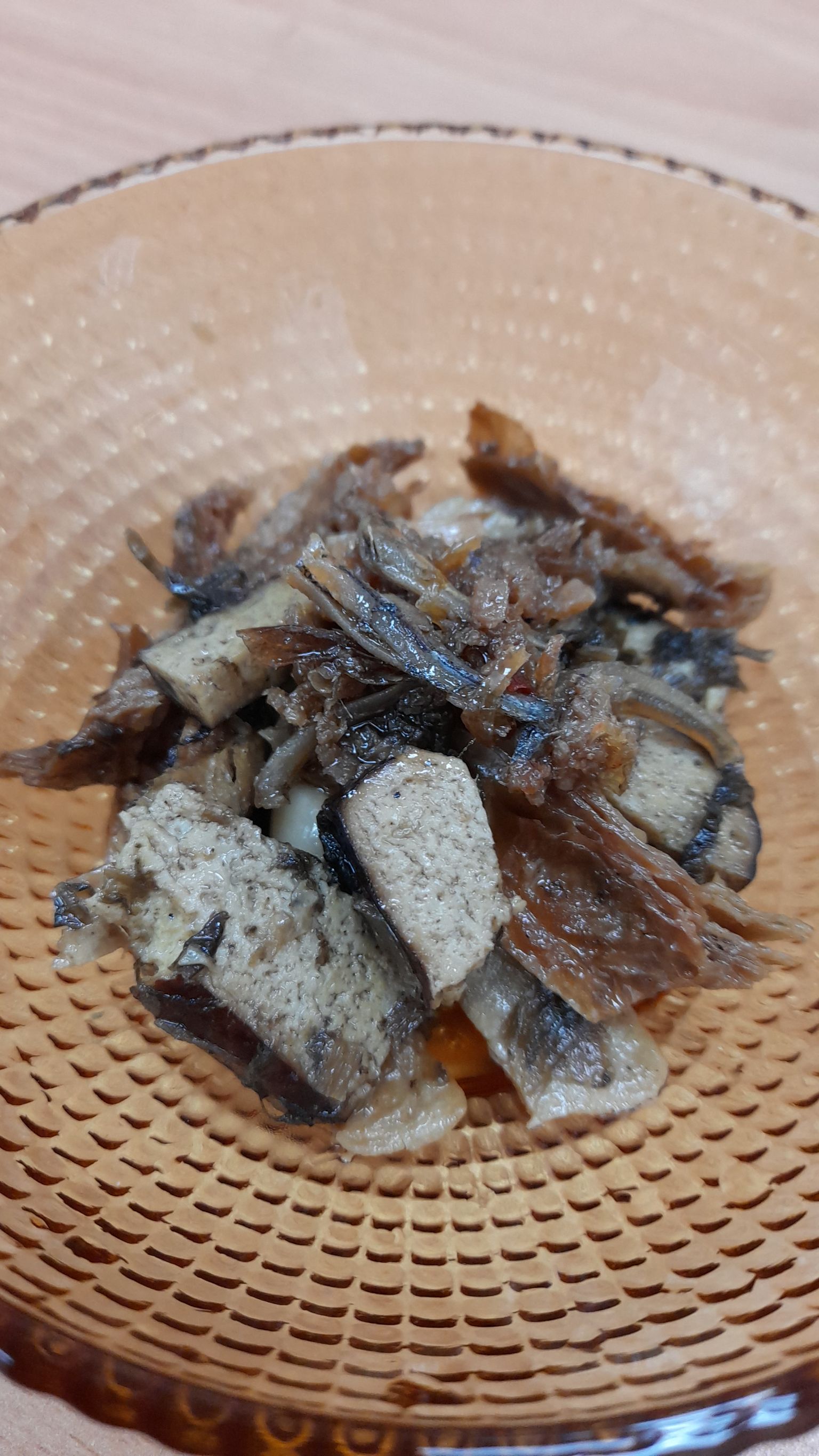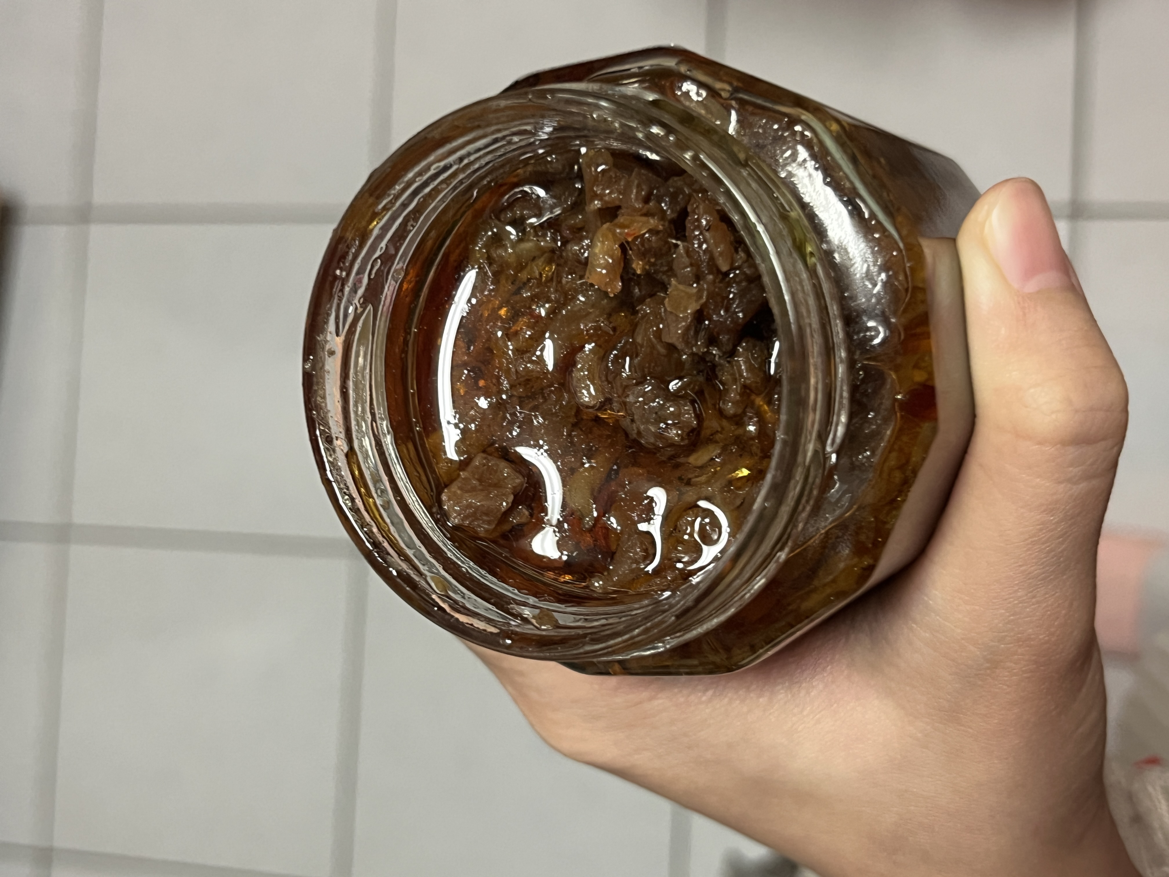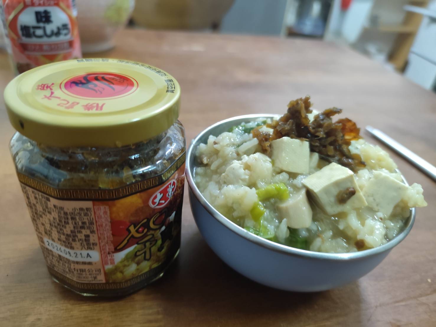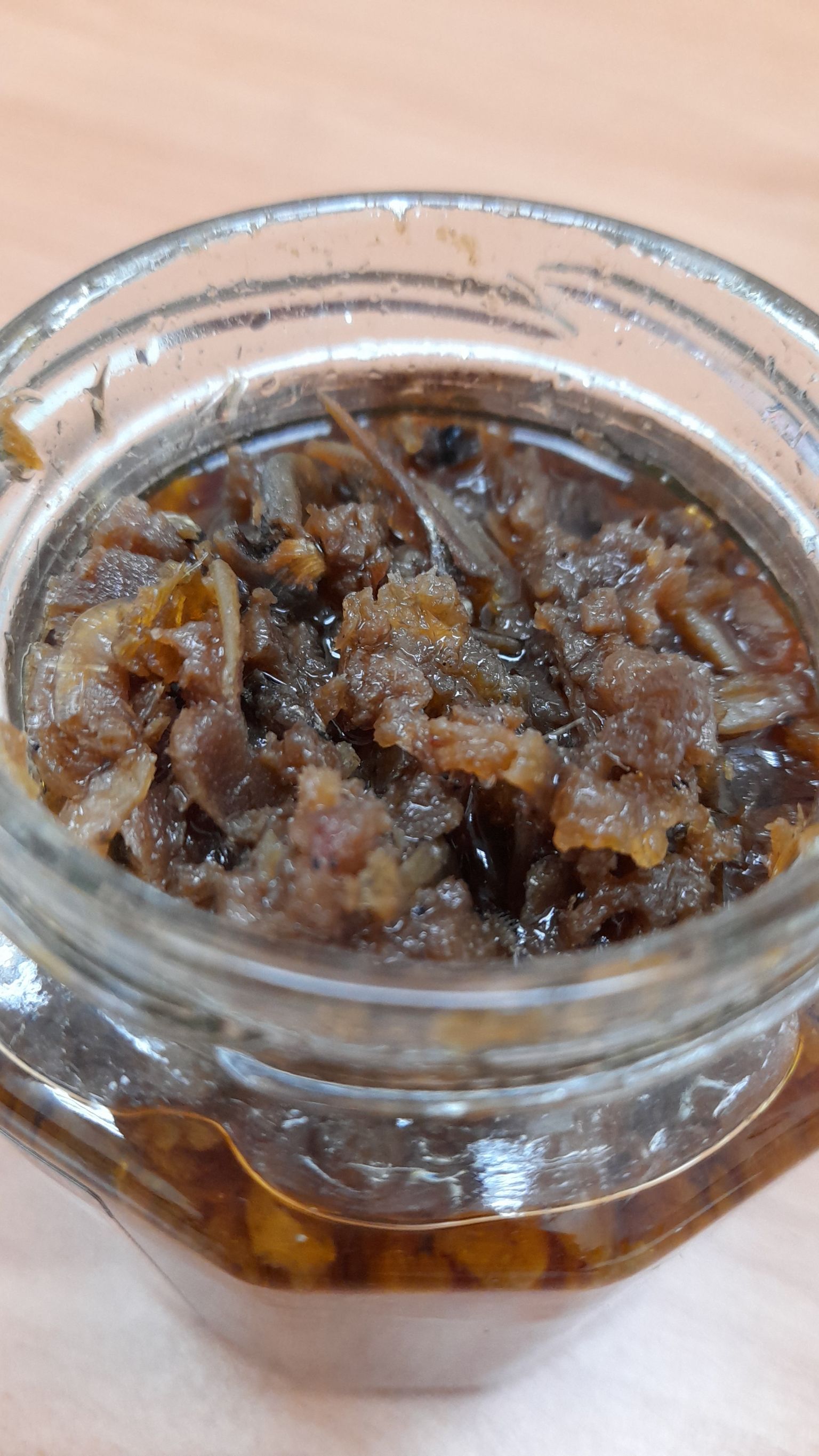 黃豆油、蝦 皮、小魚乾、糖、大豆蛋白(非基因改造)、魷魚、辣椒、甜味劑(D-山梨醇液70%)、紅蔥酥(紅蔥頭、洋蔥頭、玉米澱粉、棕櫚油)、珠貝、L-麩酸鈉、扁魚、琥珀酸二鈉、DL-蘋果酸鈉、鹽、蝦米、蒜粉、DL-胺基丙酸、干貝、薑粉、線椒粉、五香粉(肉桂、丁香、小茴香、八角)
