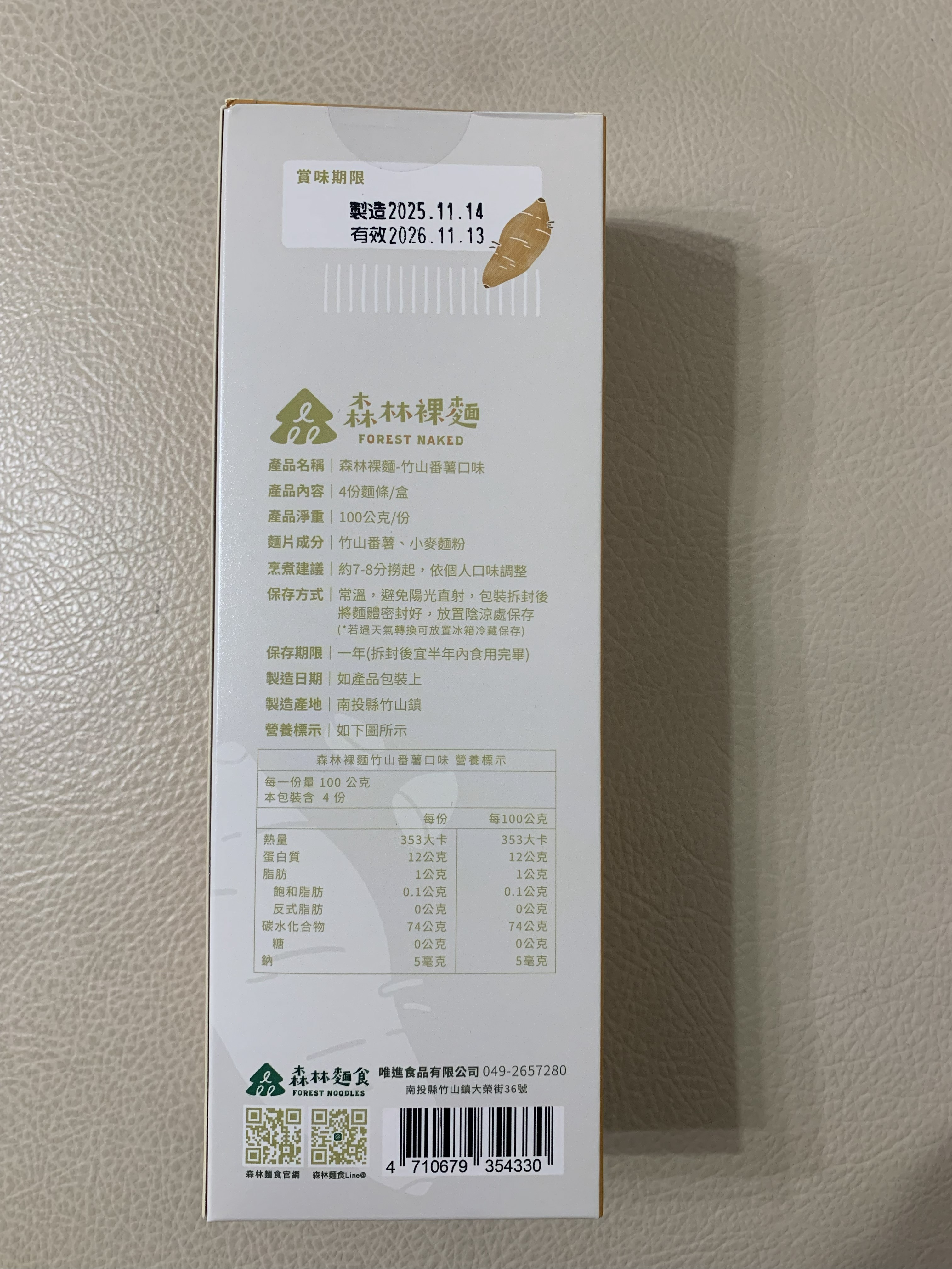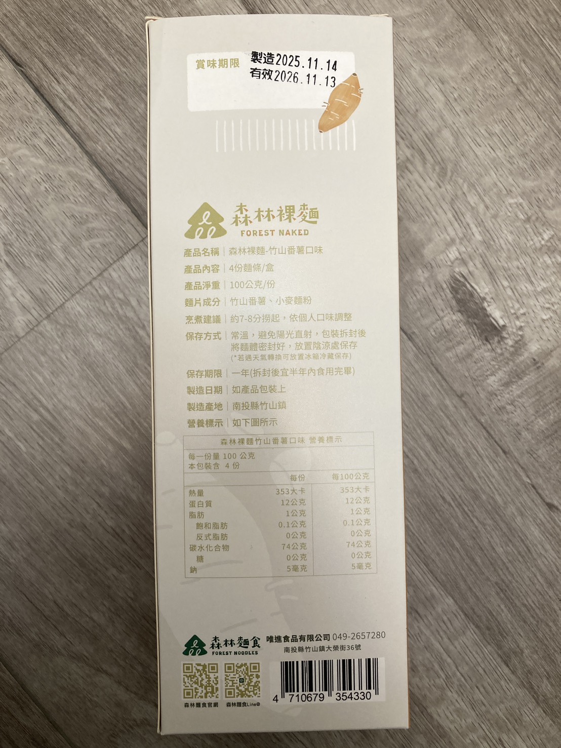 回列表 森林麵食 森林裸麵(竹山番薯) 一口享受大自然的清甜! 市價115元 (免費申請) 所需等級 一般會員以上 所需學分 50 體驗份數 15 關注人數 1135 申請人數 244 申請截止 品牌業者:唯進食品有限公司 負責廠商 唯進食品有限公司 廠商地址 南投縣竹山鎮大榮街36號 產地 台灣 試用產品規格 110g 食品業者登錄字號 M-200074628-00002-0 投保產品責任險字號 07-462212A10189 心得分享 商品介紹 商品成分 使用方法 注意事項 體驗名單 8.7 森林麵食 森林裸麵(竹山番薯) 包裝美學 9.1 麵條Q度 8.9 蕃薯香氣 7.9 成分單純度 9.6 建議推薦 8.5 心得分享 14則 蔡淨樺 鑽石達人 23歲 臺北市 2025/12/09 對森林麵食 森林裸麵(竹山番薯)留下評價 10 第一次品嘗「森林麵食 ‧ 森林裸麵(竹山番薯)」時,真的有種被大自然輕輕擁抱的感覺。麵條一拆開就能看到天然番薯帶來的淡淡色澤,不是那種刻意鮮豔的人工感,而是柔和又溫暖的「食物本色」。下鍋煮五、六分鐘,麵條在滾水裡舒展開來,撈起時能感受到它的彈性與紮實度,這次收到的是0.7 公分的寬麵,厚度與嚼勁都恰到好處。第一口入口時,最讓我驚艷的是那股若有似無、卻又非常真實的甘甜香氣——完全來自竹山番薯本身的清甜。這種味道不像調味料給的衝擊,而是自然的、輕盈的,吃起來特別舒服。小麥的香氣和番薯的柔甜融合得剛剛好,讓麵條本身就非常好吃,甚至不用加太多配料就能感受到食材的質地與純粹。最讓我喜歡的是它的「無添加」:無鹽、無色素、無防腐劑,成分就只有竹山番薯與小麥麵粉,讓人吃得安心又輕鬆。加上採用喜願台灣小麥,以及日曬的製程,整體風味更加自然、質樸,彷彿能從麵條裡吃到土地的香氣。獨立包裝也很貼心,保存收納都很方便。煮好後不論是拌醬、加湯、或搭些蔬菜、雞肉,味道都不會被蓋過,反而能襯托其他食材。每一口都清爽、溫和又滿足。這是一款讓人想推薦給家人朋友、真正能吃出安心與美味的麵條。 胡先生 金食達人 61歲 桃園市 2025/12/14 對森林麵食 森林裸麵(竹山番薯)留下評價 10 首先非常感謝有機會試吃森林裸麵──竹山番薯‧日曬麵。下鍋水煮後麵體並沒有過度吸水、膨大,保持在一個有嚼勁、不會軟爛的口感。刻意沒有過一遍冷水,想看看會不會很快就軟掉,結果是『不會』。可以保持熱騰騰的狀態在盤子裡大約10分鐘口感不會變。在加上拌醬前有先吃麵條的原味,除了有白麵微微的甜味之外,真的吃得到番薯的味道,如果只用少量的醬油、花椒油、沙茶醬去拌的話,比較能吃出來,如果用味道重的像芝麻醬、炸醬一類的就沒有了。麵體本身很Q彈,在湯裡應該也不會太快軟掉,配清湯或做成大滷麵應該也會很不錯。 洪金蘭 金食達人 56歲 新北市 2025/12/15 對森林麵食 森林裸麵(竹山番薯)留下評價 10 很感謝這次試吃<森林裸麵-竹山番薯口味>的機會,拿到產品一看,第一個印象就是包裝上有個圓形洞口,可以直接看到內裡的麵體,這樣的設計讓人一下就升起踏實信任感。每盒產品裡有4份麵條,每一次當我煮麵時,總讓我很感恩,因為麵條分開包裝不易變質,每份100公克,煮好又恰恰是一個人吃的份量,而且還附有烹煮時間建議約7-8分鐘,讓人很容易掌握煮麵的時間,這樣貼心的設計讓煮麵變得很簡單!另外我喜歡它是裸麵,成份簡單就是竹山番薯和小麥麵粉,除了陽光的曝曬,再無其他添加物。想加醬汁或用油拌、調味料的濃淡喜好都能自由發揮,單純的吃它就能嘗出太陽的麥香味和番薯的天然甜味,而且口感Q彈。它的麵體即使久煮也不易糊爛,而我嘗試了淋入雞汁、拌入芝麻油和金黃蒜油三種口味,麵體皆能均勻沾滿而不黏糊,吃起來各有不同風味又順滑,能一口接一口地吃~總而言之,我對這項<森林裸麵-竹山番薯口味>產品非常滿意,值得大力推薦! 洪佩楨 金食達人 32歲 臺中市 2025/12/15 對森林麵食 森林裸麵(竹山番薯)留下評價 10 森林裸麵-竹山蕃薯口味給我很好的第一印象。成份標示自然簡單,沒有多餘添加,讓人吃得安心。麵體帶有淡淡的蕃薯香氣,不搶味卻很耐吃。烹煮時需要比一般麵條多煮一點時間,才能完全展現口感,煮好後麵條不軟爛,反而相當有彈性,咀嚼時能感受到自然穀物的紮實感。搭配清炒蔬菜、簡單拌醬或湯麵都很合適,也能襯托食材本身的風味。整體來說,這款裸麵兼顧健康、口感與實用性,是日常飲食中會想回購的選擇。若喜歡成份單純、口感有嚼勁的麵食,森林裸麵竹山蕃薯口味相當值得一試,整體評分我會給9分。 Ray Hsu 金食達人 42歲 基隆市 2025/12/09 對森林麵食 森林裸麵(竹山番薯)留下評價 9 這次的體驗真的讓人驚喜!麵條一入口還好,但一次一大口就能感受到來自番薯的自然甜味,淡淡的香氣不會搶味,反而讓整體風味變得更柔和、舒服。口感比一般的細麵更帶有彈性,咬下去微微 Q 彈,帶著一點番薯特有的滑順感,讓人越吃越上癮,煮的很簡單也很好吃,煮之前看了一下成分表,真的不意外,成分非常單純、熱量很低,也讓人吃了不感到負擔最讓我喜歡的是,它的味道非常乾淨,真的沒有加工感,真的能吃到番薯本身的味道。不管是清炒、乾麵或搭配簡單的橄欖油、蒜頭就好,味道都能很自然地被襯托出來,是那種日常想吃清爽但又想有口感的理想選擇。吃完會有很輕盈的感覺,不會負擔太重,也很適合健康飲食或想簡單料理的人。整體來說是一款兼具天然香氣與好口感