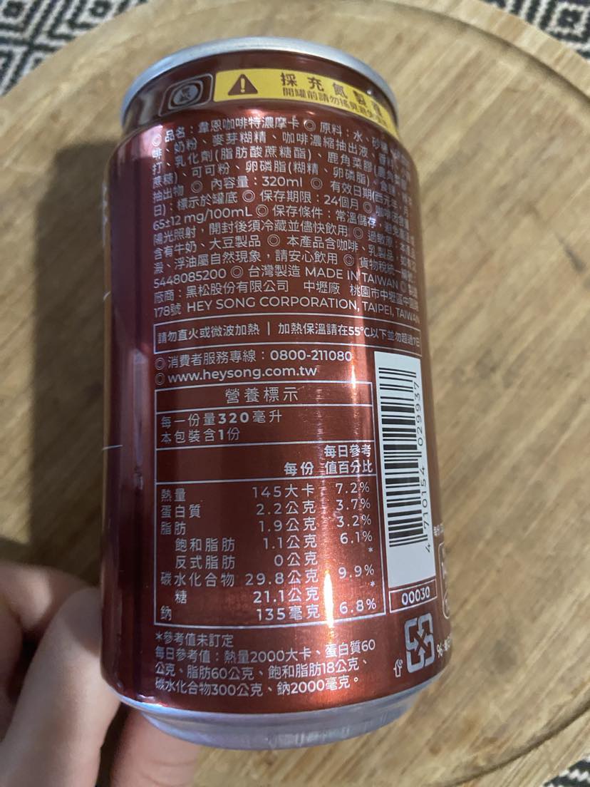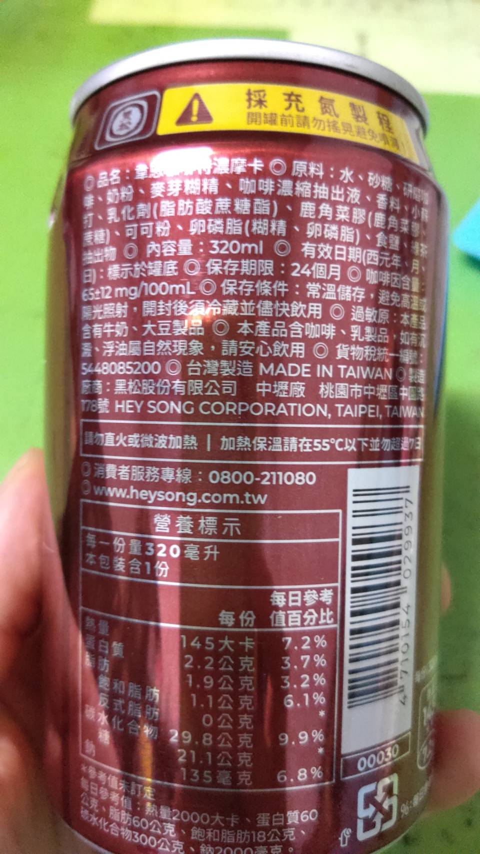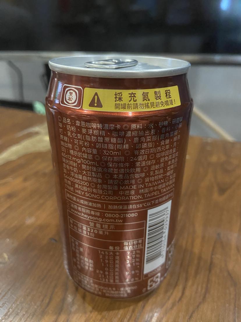 水、砂糖、研磨咖啡、奶粉、麥芽糊精、咖啡濃縮抽出液、香料、小蘇打、乳化劑 脂肪酸蔗糖酯 、鹿角菜膠 鹿角菜膠、蔗糖 、可可粉、卵磷脂 糊精、卵磷脂 、食鹽、綠茶抽出物