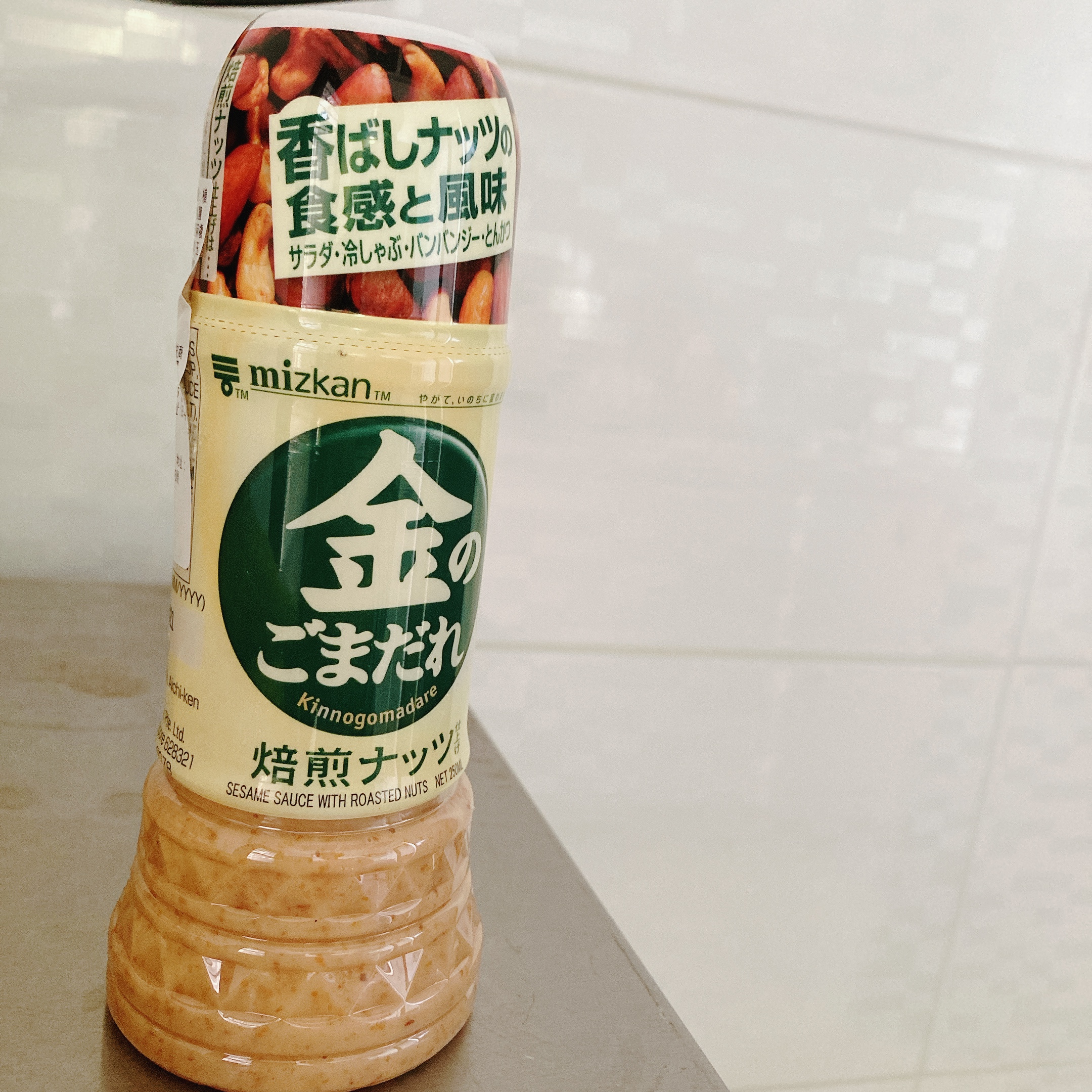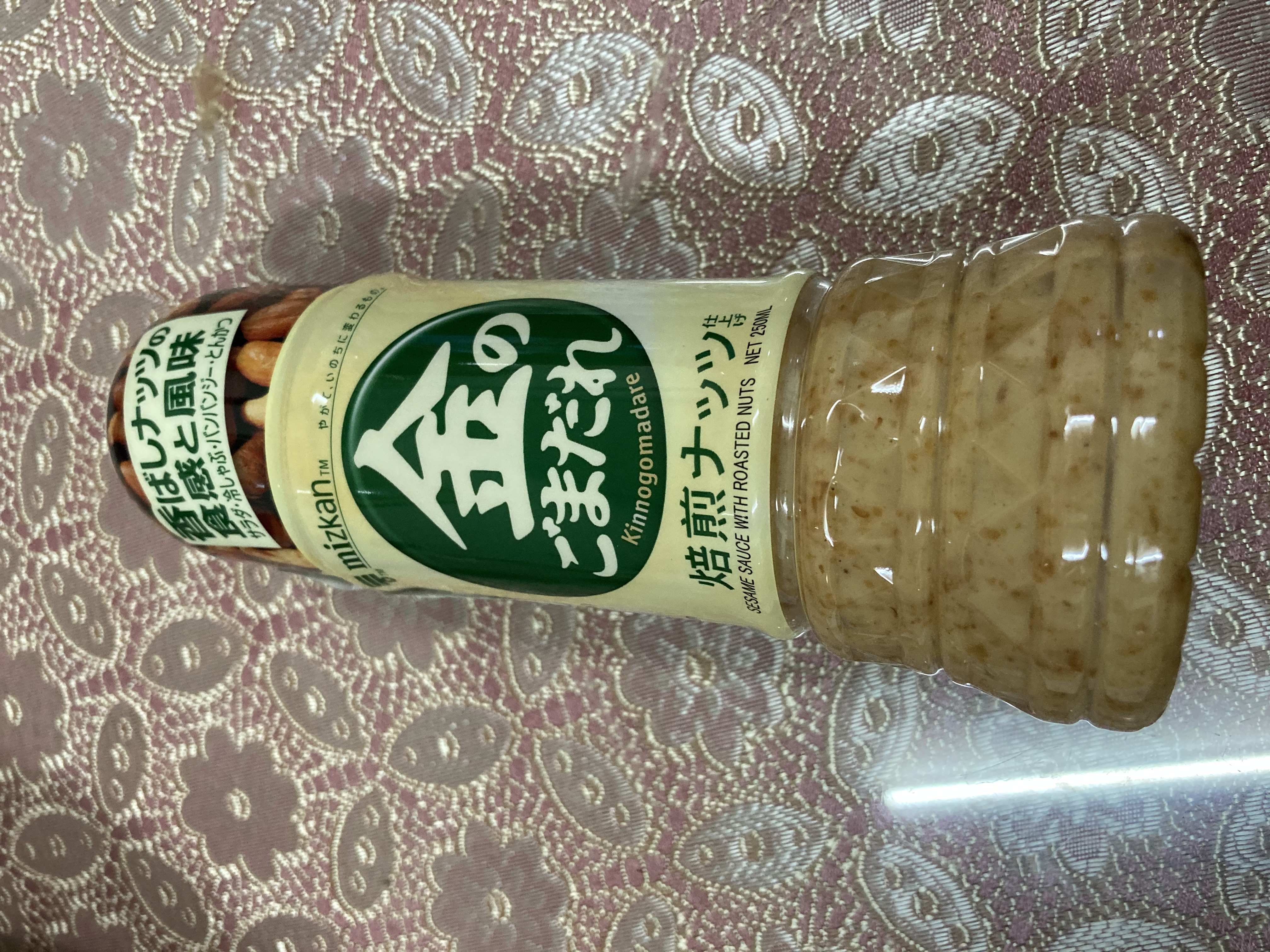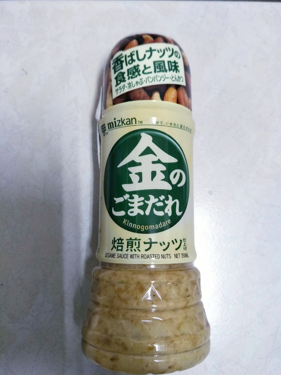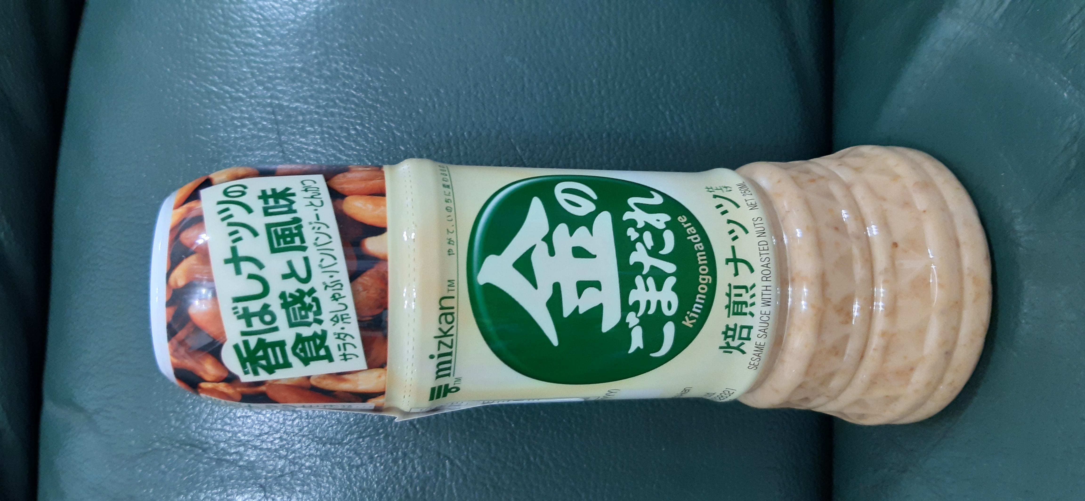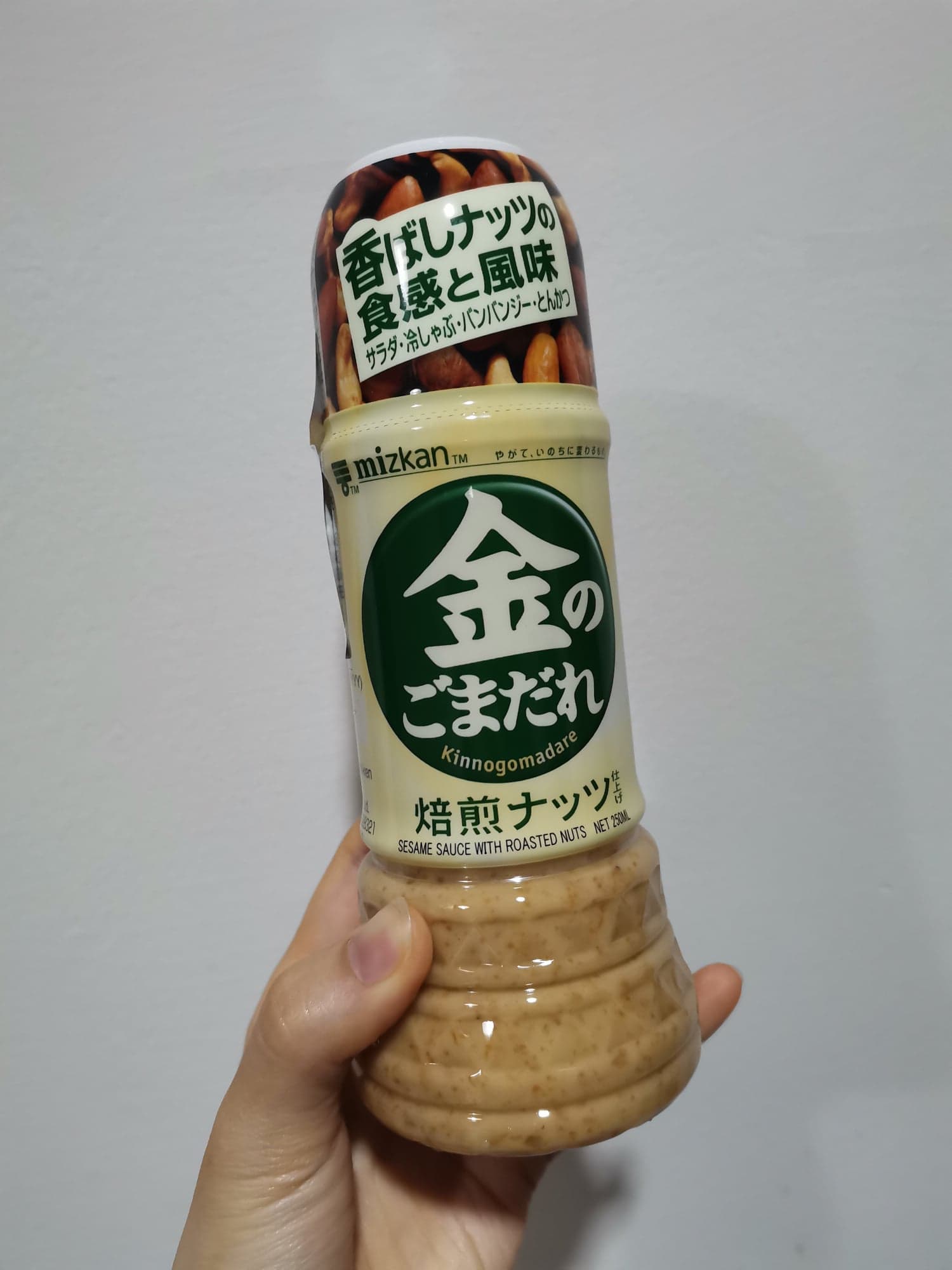 食用植物油脂(大豆油,芥花油),果糖葡萄糖糖漿,水,釀造醋,純釀造醬油,食鹽,芝麻粉,加鹽蛋黃,芝麻泥,杏仁,L-麩酸鈉,腰果,花生,複方香料(花生油,香料,乙醇,混合濃縮生育醇),芝麻複方香料[食用油脂(芝麻油,米油,芥花油,椰子油),香料,混合濃縮生育醇],玉米糖膠,芥末複方香料(玉米油,香料),香辛料(胡椒)。