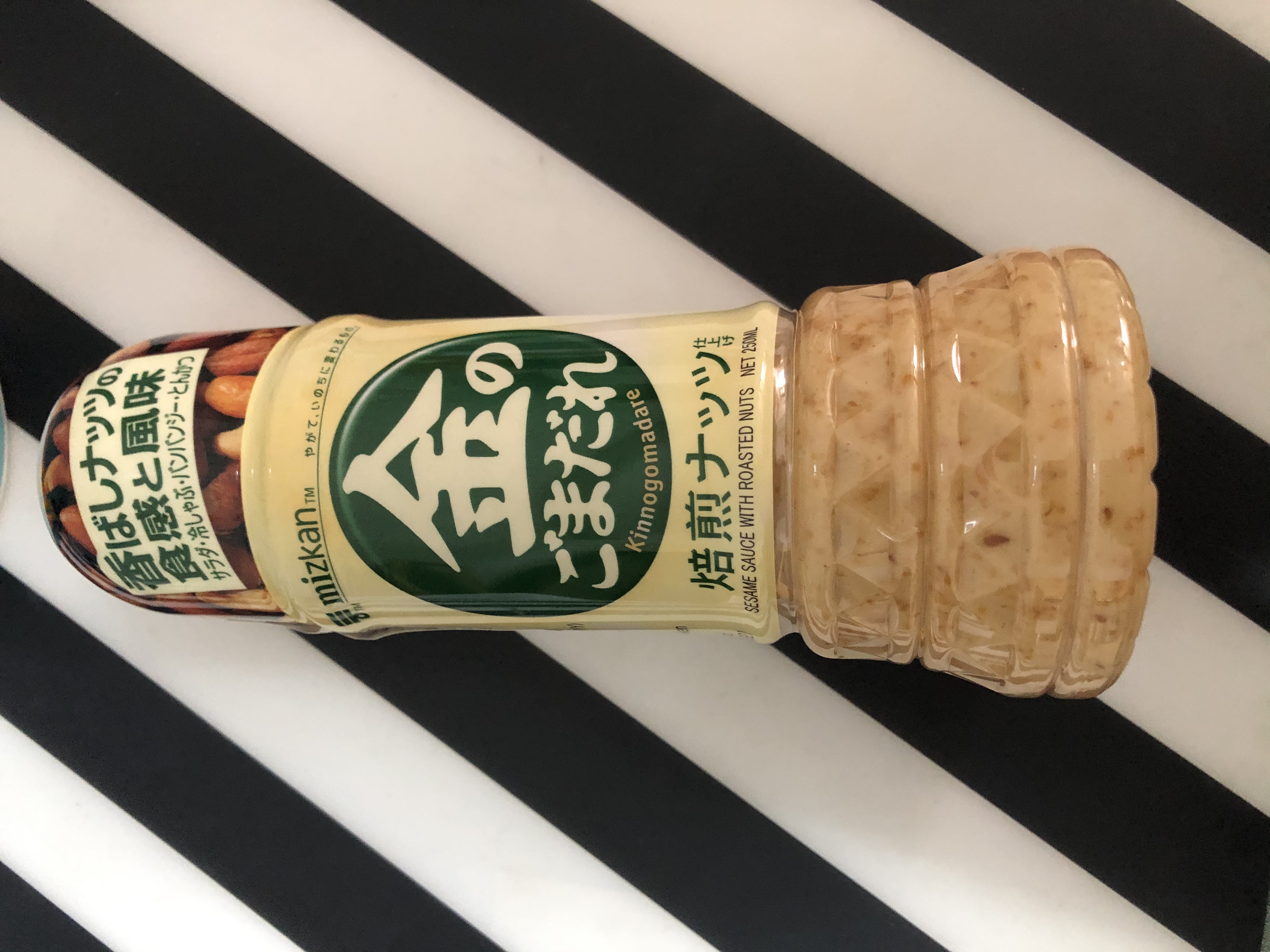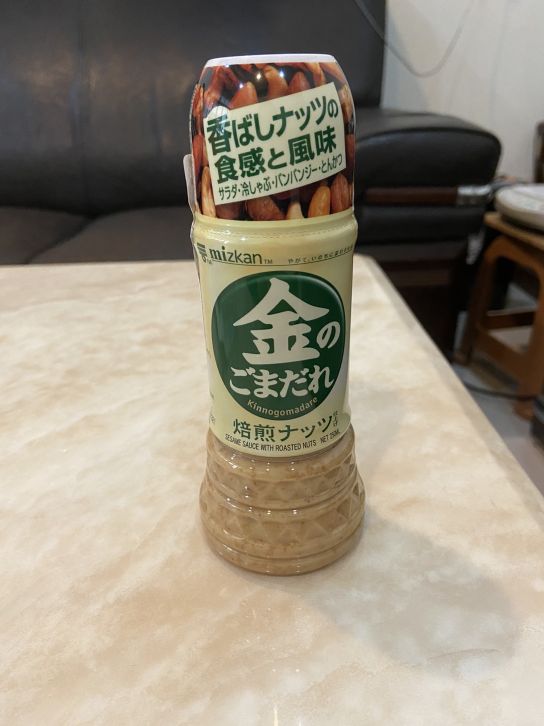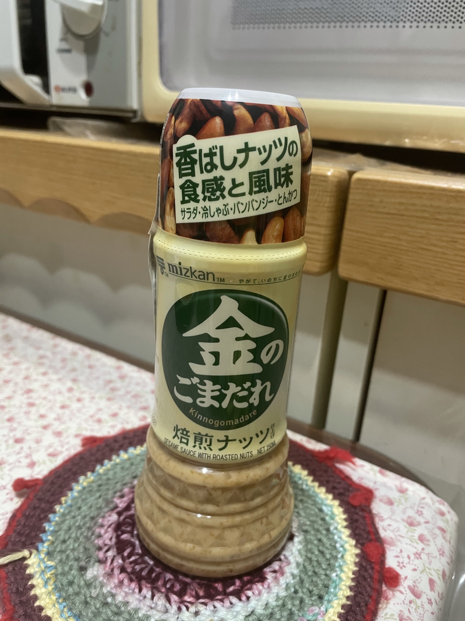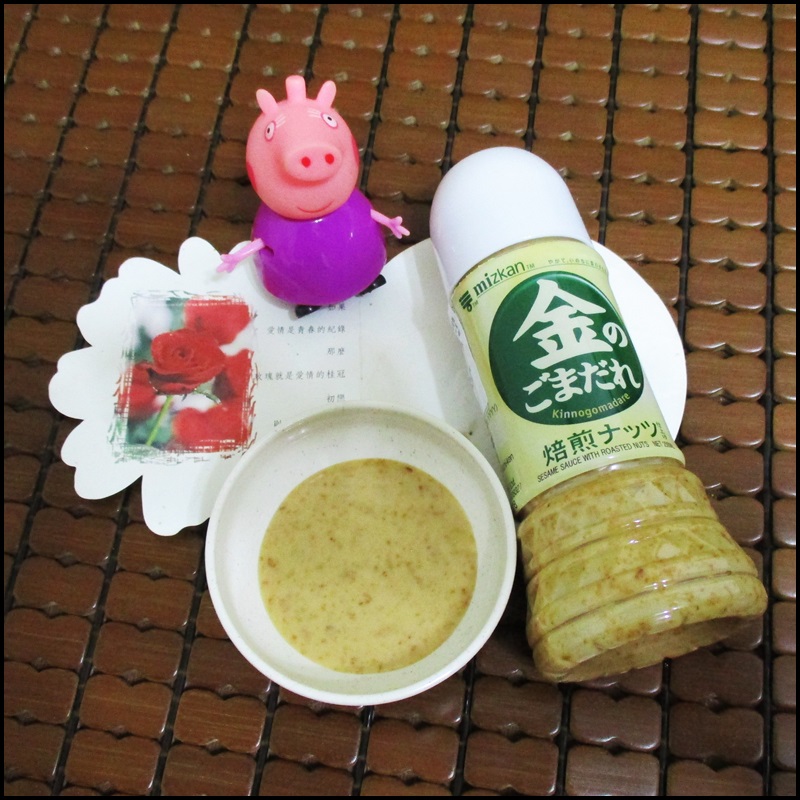食用植物油脂(大豆油,芥花油),果糖葡萄糖糖漿,水,釀造醋,純釀造醬油,食鹽,芝麻粉,加鹽蛋黃,芝麻泥,杏仁,L-麩酸鈉,腰果,花生,複方香料(花生油,香料,乙醇,混合濃縮生育醇),芝麻複方香料[食用油脂(芝麻油,米油,芥花油,椰子油),香料,混合濃縮生育醇],玉米糖膠,芥末複方香料(玉米油,香料),香辛料(胡椒)。
