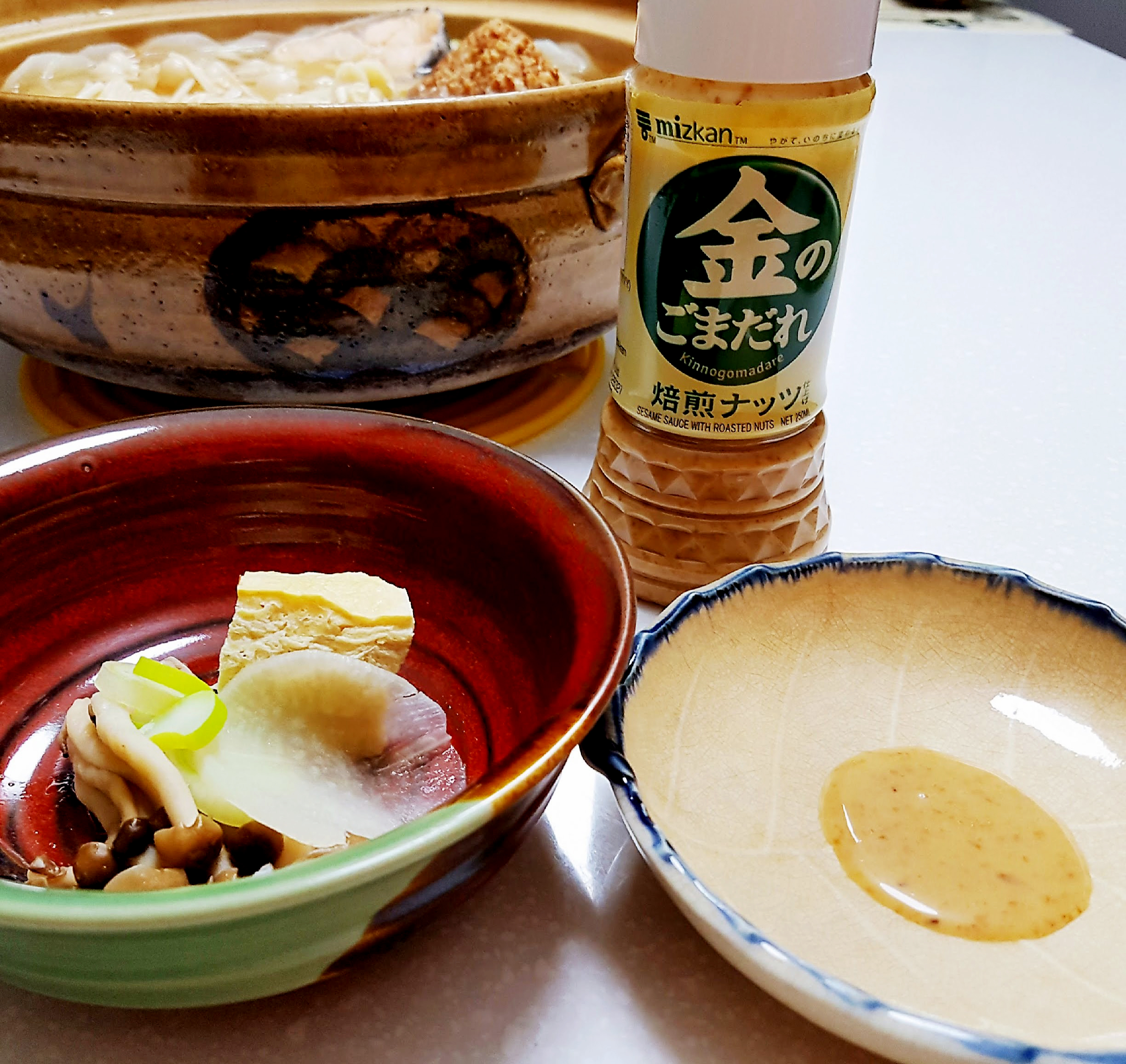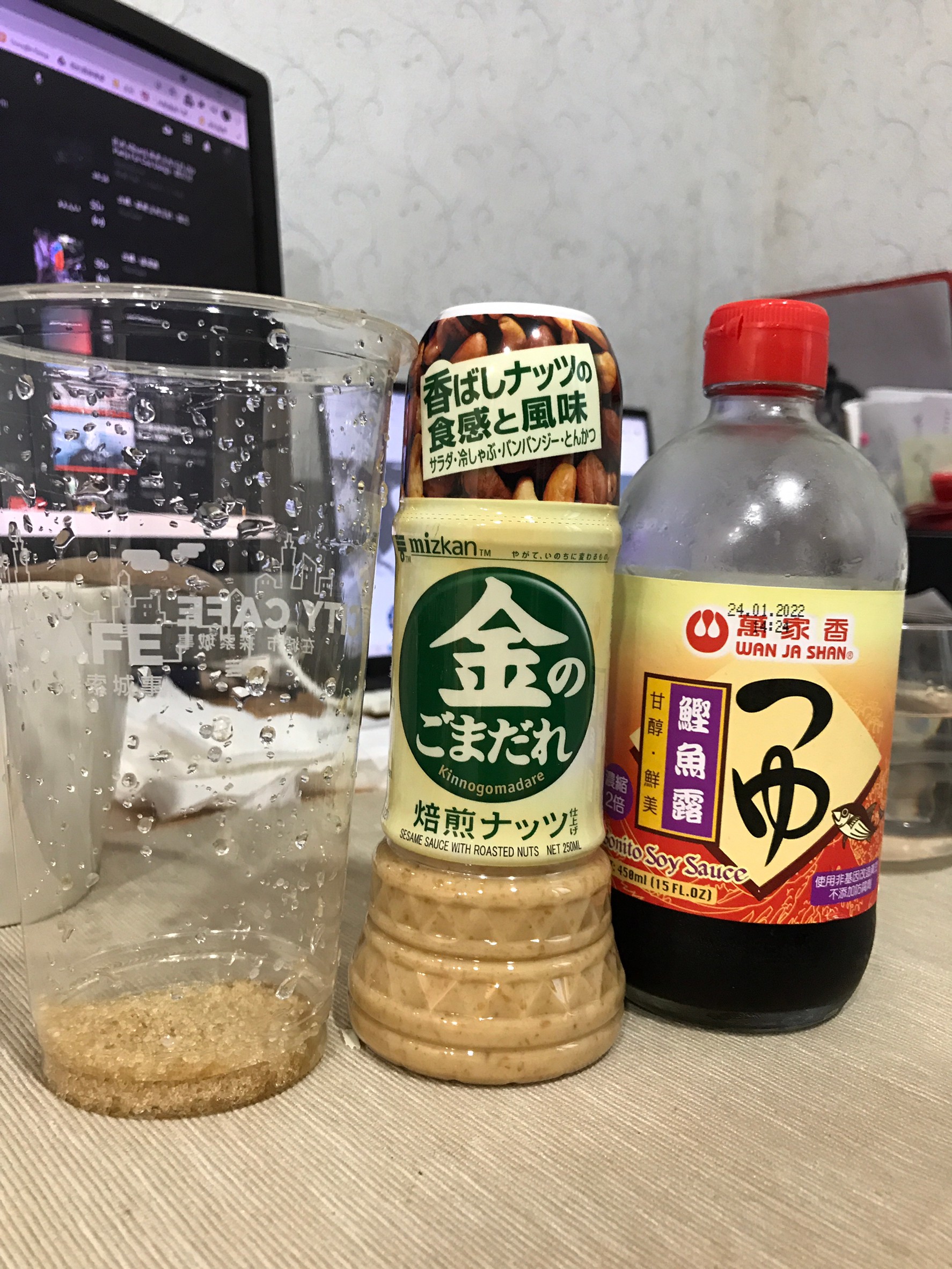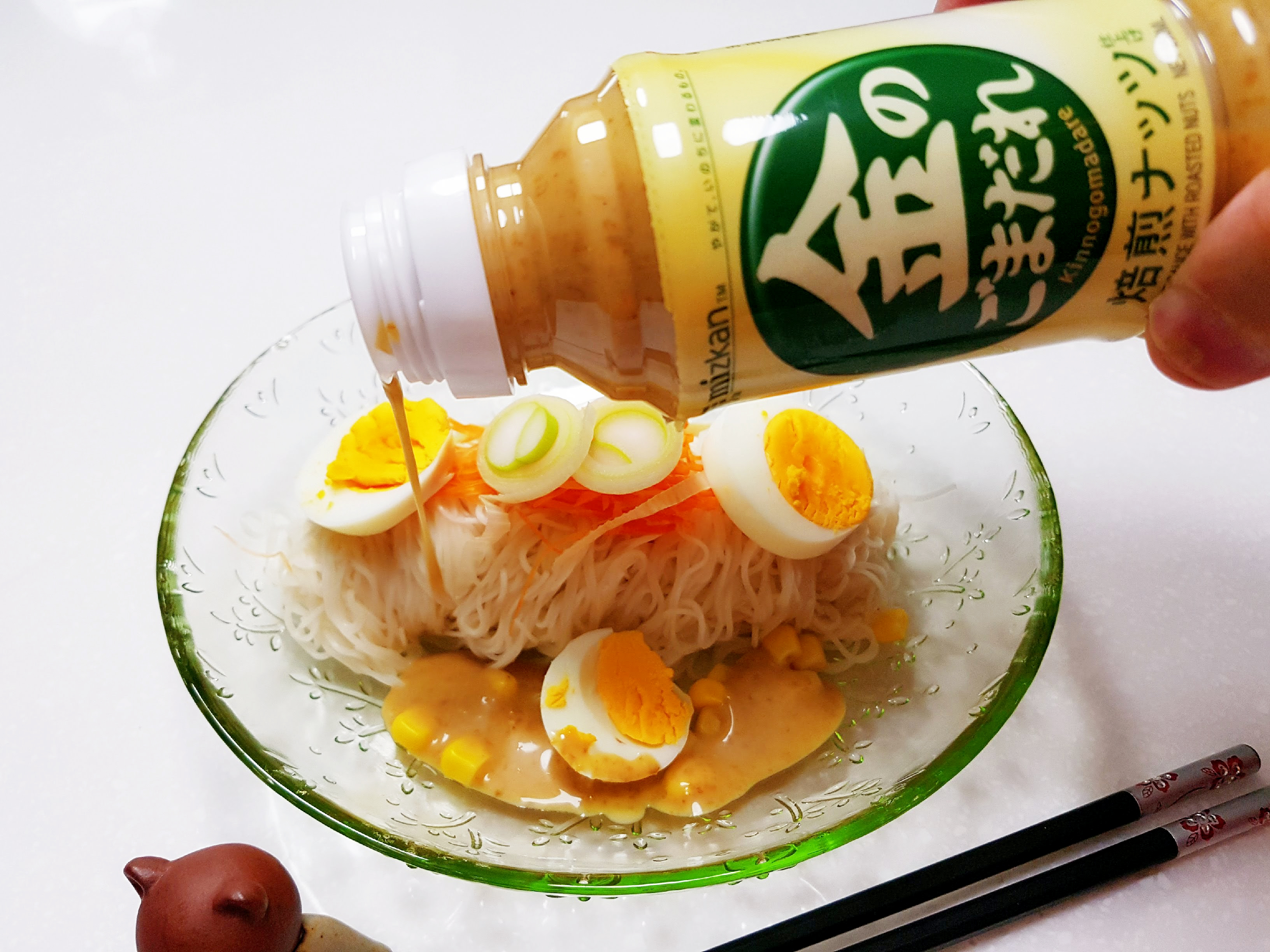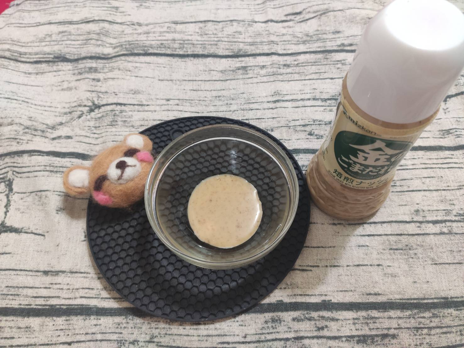 食用植物油脂(大豆油,芥花油),果糖葡萄糖糖漿,水,釀造醋,純釀造醬油,食鹽,芝麻粉,加鹽蛋黃,芝麻泥,杏仁,L-麩酸鈉,腰果,花生,複方香料(花生油,香料,乙醇,混合濃縮生育醇),芝麻複方香料[食用油脂(芝麻油,米油,芥花油,椰子油),香料,混合濃縮生育醇],玉米糖膠,芥末複方香料(玉米油,香料),香辛料(胡椒)。