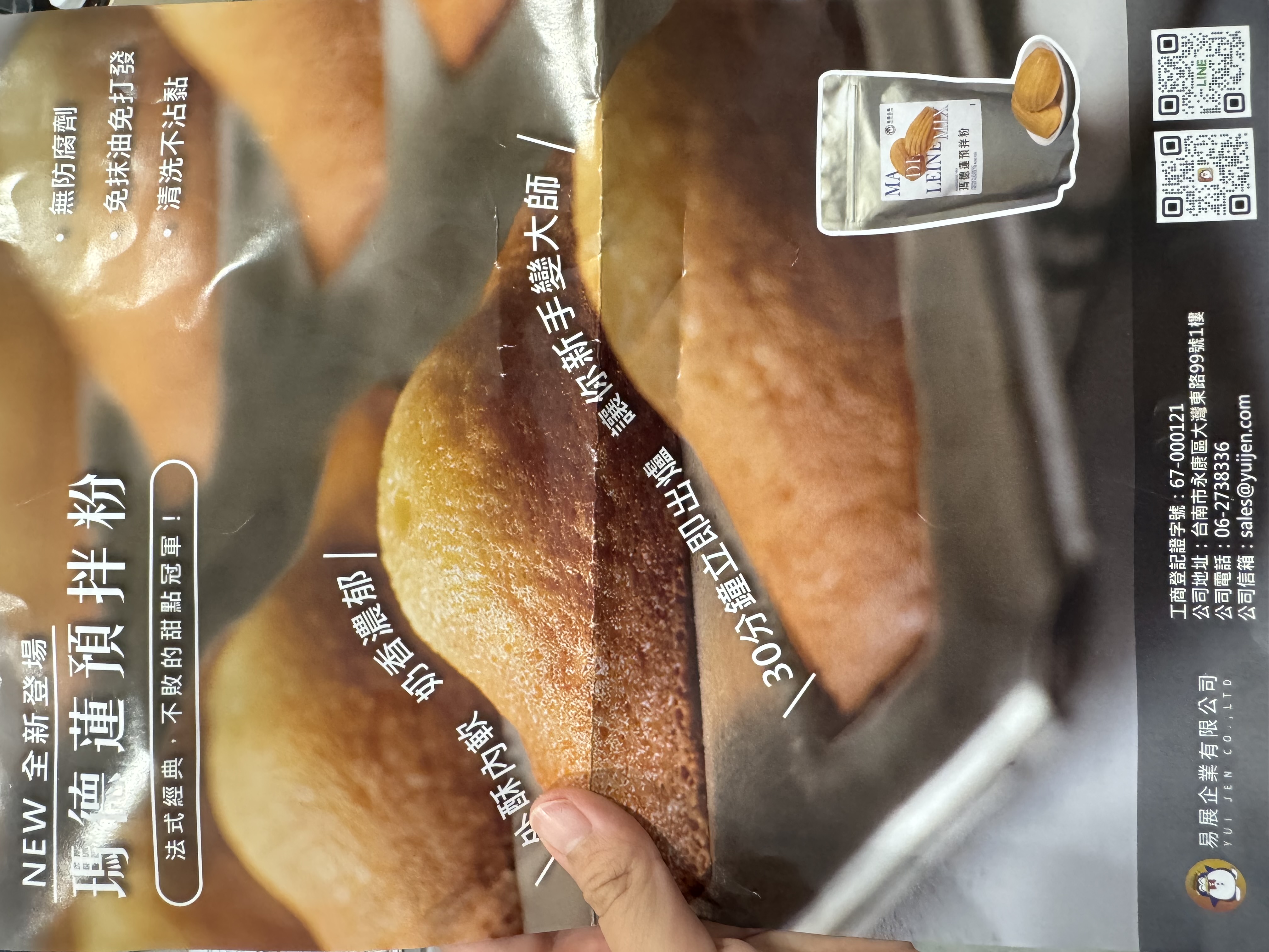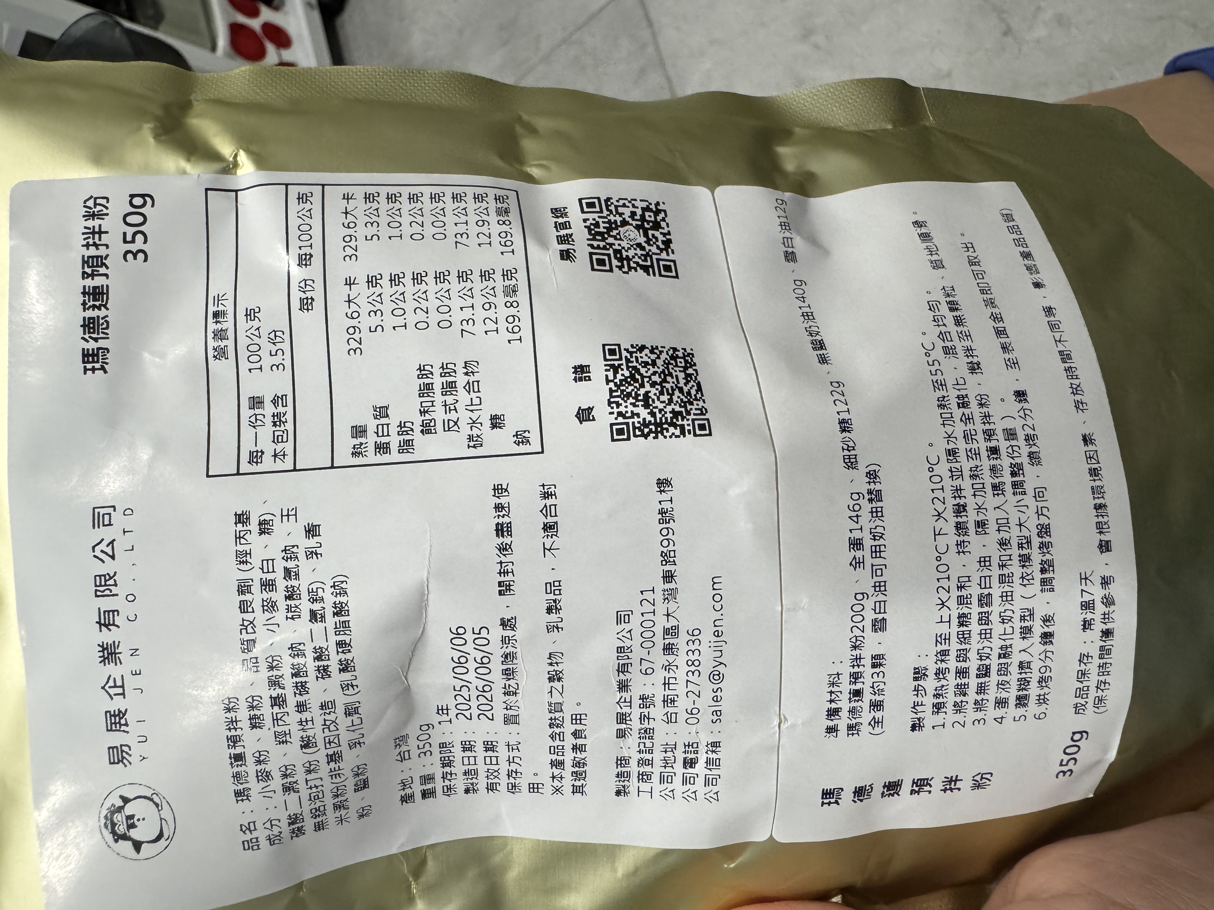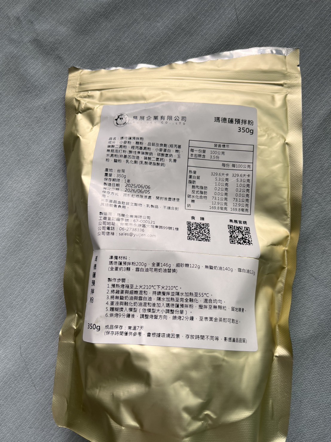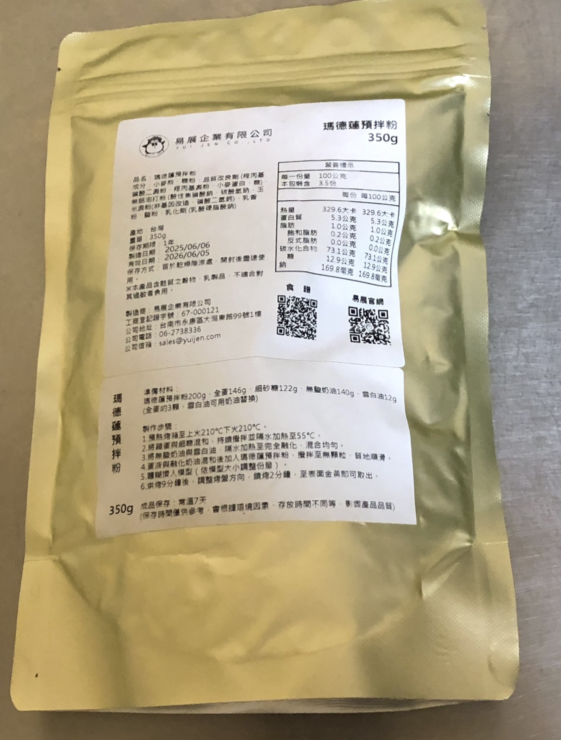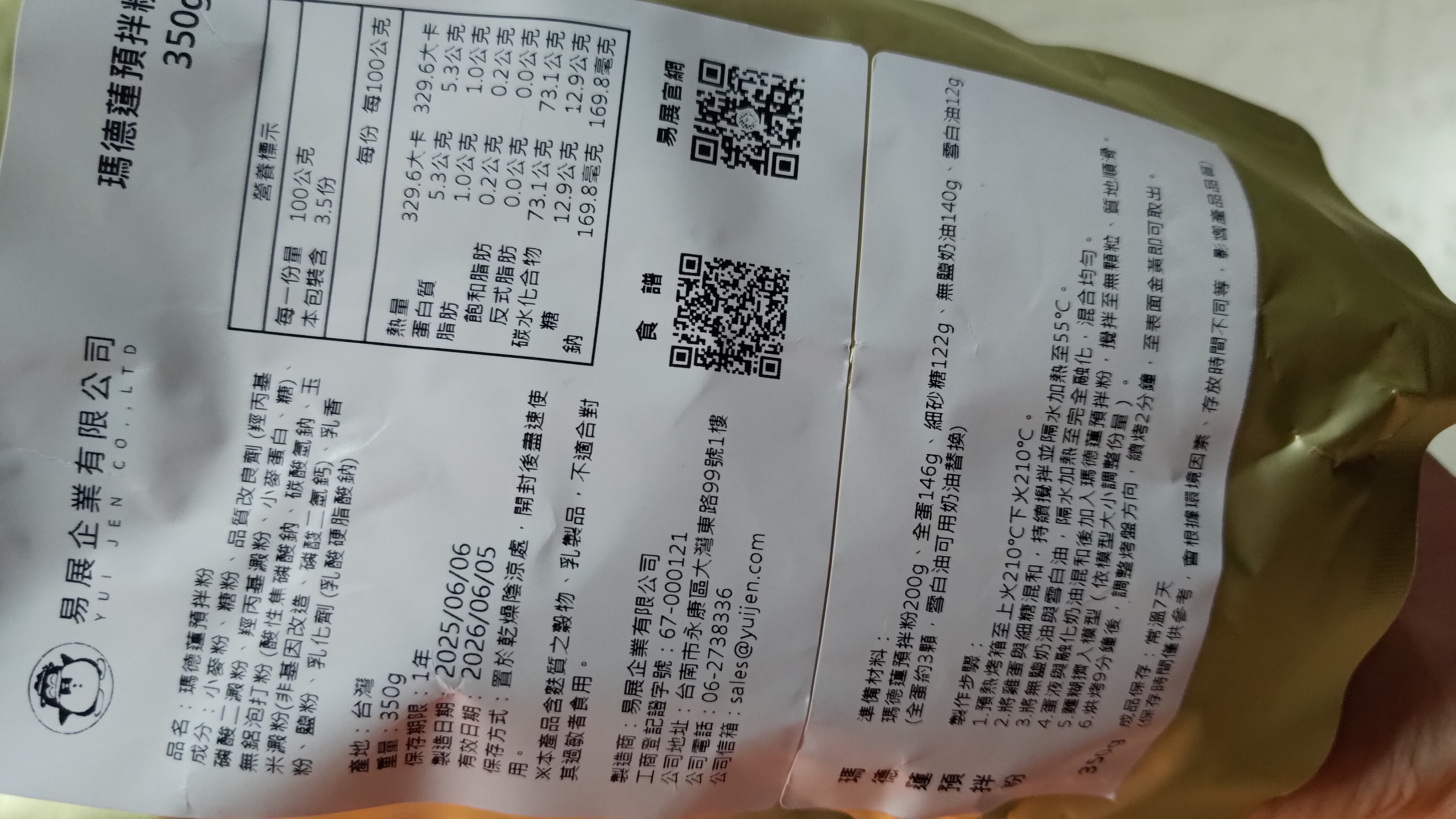 回列表 易展瑪德蓮預拌粉:30分鐘立即出爐,讓你新手變大師 市價190元 (免費申請) 所需等級 一般會員以上 所需學分 30 體驗份數 30 關注人數 1766 申請人數 143 申請截止 品牌業者:易展企業有限公司 負責廠商 易展企業有限公司 廠商地址 台南市永康區大灣東路99號 產地 台灣 試用產品規格 350g 食品業者登錄字號 D-116227019-00000-9 投保產品責任險字號 0506字第24AML0003736號 心得分享 商品介紹 商品成分 使用方法 注意事項 體驗名單 8.8 易展瑪德蓮預拌粉:30分鐘立即出爐,讓你新手變大師 包裝美學 8.3 製作方便 8.8 甜味適中 8.8 口感蓬鬆 9.0 建議推薦 8.8 心得分享 24則 陳諭萱 鑽石達人 27歲 臺南市 2025/07/17 對易展瑪德蓮預拌粉:30分鐘立即出爐,讓你新手變大師留下評價 9 瑪德蓮是經典的法式甜點,不敗的品項擁有一群死忠愛好者,例如我!這款瑪德蓮預拌粉真的是甜點愛好者的福音,只要一包預拌粉就可以讓你省去調配食譜的困擾、原料的浪費及甜點品質的不一致,在家也可以輕鬆做出高級甜點。標榜三十分鐘就可以立即出爐的產品,究竟有多厲害呢!你只需要有烤箱、有雞蛋、有無鹽奶油及砂糖,和這包厲害的瑪德蓮預拌粉,就能讓甜點店裡香氣逼人的瑪德蓮大功告成,對於新手十分友善唷!進階一點,如果想增加其他風味,例如茶口味、果醬、麻糬等也都是可以的,建議製作原味瑪德蓮上手後,也可以嘗試研發處自己獨特的喜好風味。總之,很推薦給想在家自己嘗試做甜點的你,或是想免除研發苦惱的新手甜點師,一個字讚! 莊佳縈 鑽石達人 32歲 臺中市 2025/07/18 對易展瑪德蓮預拌粉:30分鐘立即出爐,讓你新手變大師留下評價 9 │易展瑪德蓮預拌粉│感謝食力與易展企業有限公司品牌業者合作才有機會收到食力體驗品-易展瑪德蓮預拌粉貼心提供瑪德蓮食譜製作時間非常迅速30分鐘立即出爐新手也能輕鬆做出完美瑪德蓮蓬蓬肚正統法式比例鬆軟外酥讓口味多樣化更加豐富隨即開啟家人們的食慾👉成分內容物小麥粉、糖粉、品質改良劑 (羥丙基磷酸二澱粉、羥丙基澱粉、小麥蛋白、糖)、無鋁泡打粉(酸性焦磷酸鈉、碳酸氫鈉、玉米澱粉(非基因改造)、磷酸二氫鈣)、乳香粉、鹽粉、乳化劑 (乳酸硬脂酸鈉)👉過敏原資訊本產品含有乳製品、麩質之穀物及其製品,不適合對其過敏體質者食用👉營養標示每一份量100公克本包裝含3.5份每份熱量 329.6Kcal蛋白質 5.3g脂肪 1.0g 飽和脂肪 0.2g 反式脂肪 0.0g碳水化合物 73.1g 糖 12.9g鈉 169.8mg👉食用方法準備材料:瑪德蓮預拌粉200g全蛋146g細砂糖122g無鹽奶油140g雪白油12g(全蛋約3顆,雪白油可用奶油替換) 製作步驟:1.預熱烤箱至上火210°C下火210°C。2.將雞蛋與細糖混和,持續攪拌並隔水加熱至55°C。3.將無鹽奶油與雪白油,隔水加熱至完全融化,混合均勻。4.蛋液與融化奶油混和後加入瑪德蓮預拌粉,攪拌至無顆粒、質地順滑。5.麵糊擠入模型(依模型大小調整份量)。6.烘烤9分鐘後,調整烤盤方向,續烤2分鐘,至表面金黃即可取出。 徐梅燕 鑽石達人 39歲 苗栗縣 2025/07/18 對易展瑪德蓮預拌粉:30分鐘立即出爐,讓你新手變大師留下評價 10 其實一開始是沒想抽易展瑪德蓮預拌粉,因為要實作怕麻煩,後來覺得蠻慶幸最後有機會試吃~很久不曾做過點心,工具和需要的材料隨手都有,易展瑪德蓮預拌粉很方便,只要依照包裝後面的作法就能做出好吃的瑪德蓮,工具部份我還是有上點奶油比較好脫模。易展瑪德蓮預拌粉打開包裝時就有淡淡的香味,要拌入液體時也很好混勻,不會有顆粒,烤好口感有點像雞蛋糕又稍微扎實些,我是做原味還有玫瑰花醬口味,因為先前試吃的玫瑰花醬還有所以添加進去沒想到很香,所以可以多試驗一些不同口味~易展瑪德蓮預拌粉算是以後如果想吃瑪德蓮也願意自己操作的材料,味道上蠻喜歡,甜度也可以自己調整,操作上也很簡易省了打發蛋的步驟,算是簡易點心材料~ 尤引呈 鑽石達人 33歲 臺中市 2025/07/19 對易展瑪德蓮預拌粉:30分鐘立即出爐,讓你新手變大師留下評價 10 這次的試驗品為瑪德蓮預拌粉,並非平常一般的直接試吃品,需要一點手作時間,首先從拿到實體包裝,質感美感設計就相當舒適宜人,而且還貼心附有食譜材料及作法,由於大部分的材料所需已經事先添加在預拌粉整合,對於新手及懶人真得相當親切方便,只要準備雞蛋和細砂糖混合隔水加熱,再把無鹽奶油和雪白油隔水加熱混合,之後將兩者與預拌粉再混合攪拌即可倒入模具送入烤箱,從頭到尾時間都是花在備齊食材,攪拌混合,烤箱出爐,製作方法簡單速成,而且原料食材都很簡單輕易找齊,像我這種不常做烘焙的人,只為這一次性的烘焙,食材及工具都無須花太多心思備齊,況且雪白油也有替代品供參考使用,而我則是使用豬油替代,所以基本上食材就算有剩,一般廚房家庭都能消耗使用完畢,不會有那種為了做某西點而購買一次性某材料,然後做完這次成品就丟著再也用不到的情況發生,最後製成由於我沒有模具,所以索性直接倒入烤盤,直接做成像是派餅糕點一般,而非瑪德蓮式的小塊糕餅,味道甜度口感真的是相當一級棒,最重要的一點是成品出爐易脫模,不沾黏好清洗好收尾,超有烘焙成就感,不給滿分真的說不過去。 洪碧珍 鑽石達人 70歲 彰化縣 2025/07/20 對易展瑪德蓮預拌粉:30分鐘立即出爐,讓你新手變大師留下評價 9 這款 瑪德蓮預拌粉 真的像甜點界的超級英雄—