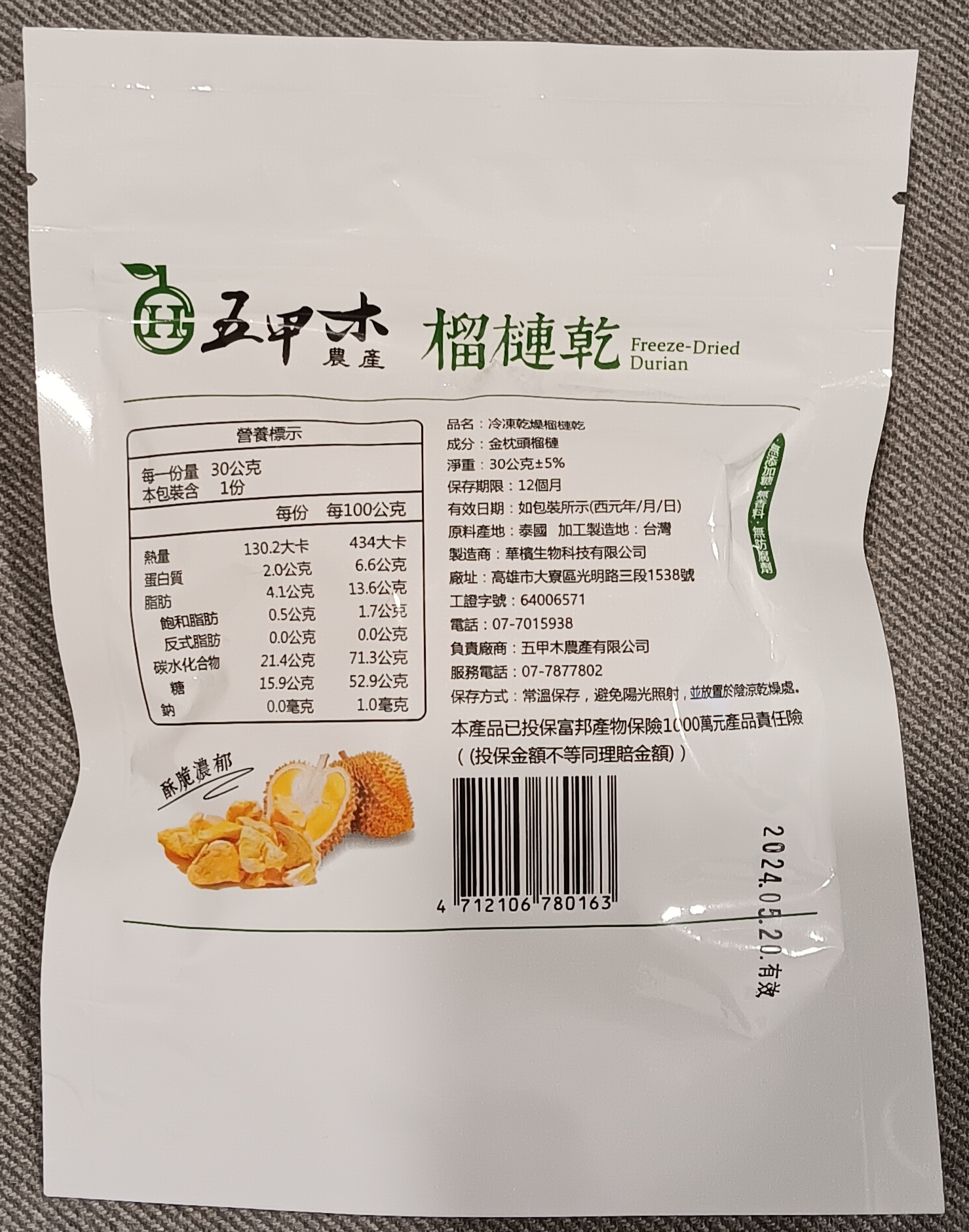 五甲木 金枕頭榴槤乾 充滿夏日風情的濃郁香氣