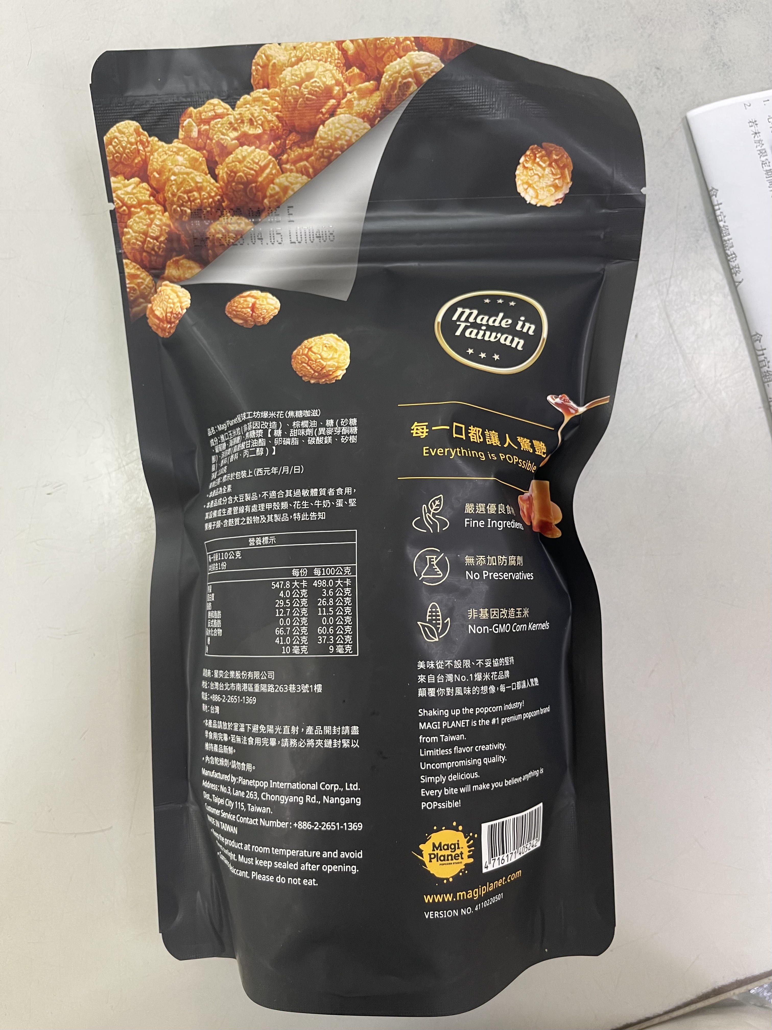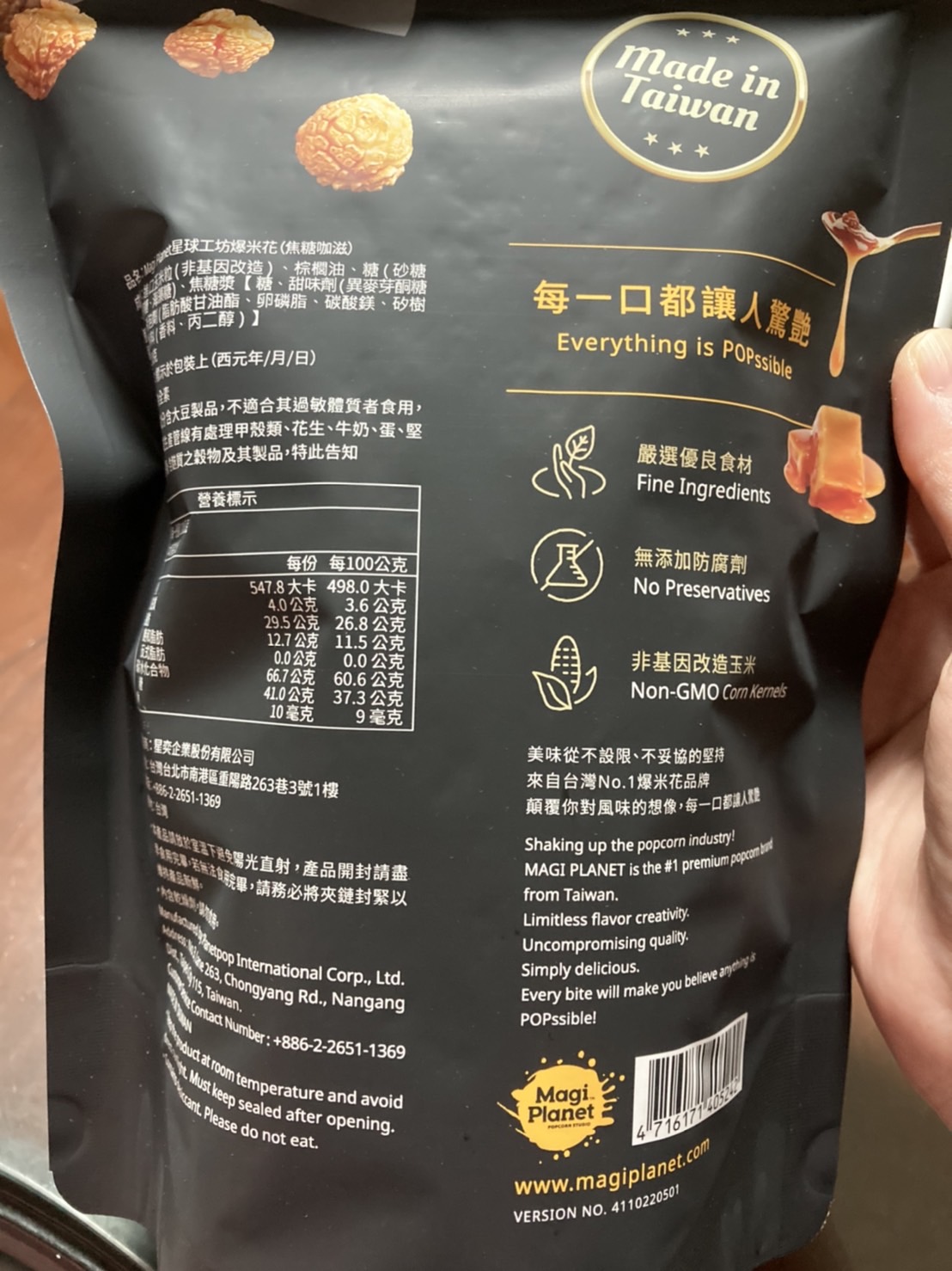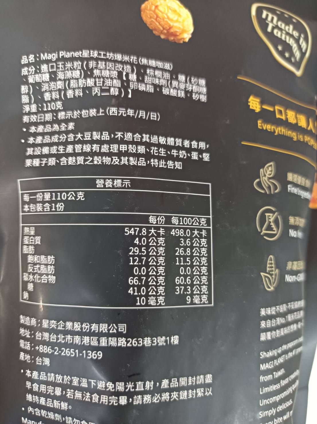 回列表 星球工坊 焦糖咖滋爆米花 甜而不膩誘人的焦糖風味 市價160元 所需等級 一般會員以上 所需學分 30 體驗份數 50 關注人數 1387 申請人數 360 申請截止 品牌業者:星球工坊 負責廠商 星奕企業股份有限公司 廠商地址 台北市南港區重陽路263巷3號2樓 產地 台灣 試用產品規格 110g/袋 食品業者登錄字號 A-125144882-00000-2 心得分享 商品介紹 商品成分 使用方法 注意事項 體驗名單 8.9 星球工坊 焦糖咖滋爆米花 包裝美學 8.9 口感香脆 9.1 甜度適中 8.9 唰嘴程度 8.8 建議推薦 8.8 心得分享 45則 謝宜蓁 金食達人 34歲 臺北市 2022/05/26 對星球工坊 焦糖咖滋爆米花留下評價 9 一直都是星球爆米花的愛好者,以往都是購買鹹口味的爆米花,很高興這次有機會可以體驗到甜口味的。這次體驗的是焦糖口味爆米花,打開包裝可以聞到濃濃香甜味,但實際品嘗卻不會有很黏膩的感覺,也不會沾手,不用擔心會吃到整隻手都黏黏的感覺。星球爆米花與其他爆米花最大不同的點,就是不會吃到有未爆開的玉米、不會有玉米殼,是可以放心讓孩子品嘗的點心。下次有機會到星球爆米花的櫃位時,會願意花錢購買這個口味。硬要說缺點的話,就是太小包啦!一口接著一口,一包一下就吃完了XD APPLE 金食達人 39歲 高雄市 2022/05/27 對星球工坊 焦糖咖滋爆米花留下評價 9 星球工坊總是顛覆我們的一般對爆米花的印象總是推出各種多元口味的爆米花,來刺激我們的味蕾~很喜歡他們的包裝,是使用夾鏈袋密封設計如果吃不完也可以再封起來,不用怕受潮影響口感!這次體驗的是星球工坊的經典口味(焦糖咖滋)爆米花一打開包裝袋,就聞的到焦糖香氣,焦糖也完美的包覆著爆米花~吃起來脆脆的,而且焦糖的甜不會死甜喔!反而是甜而不膩喔!!!真的可以一口接著一口吃耶😋😋😋 洪玉燈 金食達人 62歲 臺中市 2022/05/26 對星球工坊 焦糖咖滋爆米花留下評價 9 這次體驗焦糖咖滋爆米花,咬下的一口,焦糖咖啡香,在嘴裡留香,粒粒飽滿厚實,非常唰嘴讓人不想停下,富含著濃郁的玉米香,提升了口感與脆度,讓我一口接一口,停不下來,頂級糖漿,甜而不膩,品嚐時有層次的風味,非常分明,外型是一顆蘑菇型的爆米花,讓人感動驚喜,顛覆了對風味的想像,有著溫暖的快樂與滿足感。 Carly Yang 鑽石達人 43歲 臺南市 2022/05/25 對星球工坊 焦糖咖滋爆米花留下評價 8 這次要試吃的是星球工坊-焦糖咖滋爆米花-甜而不膩誘人的焦糖風味。一打開外箱,迎面而來的是有質感的配色包裝,星球工坊總是把送禮自用兩相宜的觀念落實的很好,大加分;接著就要來開吃啦!容量總是有八分滿左右,讓愛甜食的朋友不會感到空虛,外觀一樣是可愛的磨菇狀,吃下去時,帶著濃郁的焦糖香氣,但是,單純聞起來就像中藥當歸的味道,令人覺得神奇。因為,含在嘴裡超過十秒鐘,所以,咬下去的口感就像細緻的牛奶糖一樣好咬好吞。這次的焦糖口味在香氣上讓我驚豔。由衷感謝食力和星球工坊,下次請再選我!選我! 林易 金食達人 30歲 金門縣 2022/05/25 對星球工坊 焦糖咖滋爆米花留下評價 10 感謝食力與星球工坊提供試吃機會!一直以來都很喜歡吃爆米花,但卻尚未嘗試過星球工坊的爆米花,非常感謝此次試吃機會!這次試吃的焦糖咖滋爆米花,包裝設計相當新潮更以夾鏈袋包裝,不怕受潮能夠保鮮更能夠保持酥脆度。一打開包裝香氣撲鼻而來,吃起來酥脆可口,每一顆爆米花都裹滿焦糖卻不會過於甜膩,吃過後使我對星球工坊的爆米花產生極大的興趣,有機會再購買其他口味回來嚐嚐! 趙莉郡 金食達人 30歲 臺中市 2022/05/26 對星球工坊 焦糖咖滋爆米花留下評價 8 記憶中這個口味好像不是新口味?包裝是夾鏈袋設計,吃不完可以密封起來,不怕接觸到空氣造成爆米花軟化。打開包裝,實際容量約袋子的一半但不論是否是新口味,整體口感都是好吃的,爆米花本身很酥脆 爆米花中帶有焦糖香,又不會至於死甜,是很順口的口感。口感脆中帶軟,焦糖香味中迸出玉米香氣~讓人不自覺一口接一口,有幸福的滋味❤️ 葉筱楓 金食達人 44歲 桃園市 2022/05/25 對星球工坊 焦糖咖滋爆米花留下評價 9 很開心獲選為星球工坊焦糖咖滋爆米花的試吃員。爆米花我最喜歡的口味就是焦糖,這次試吃的星球工坊焦糖咖滋爆米花大致上來說已經有90分,口感香脆度簡直滿分;甜度的話,因為此產品主打甜度降低40%,所以吃起來真的比較不甜,符合商品的訴求。只是依美味程度唰嘴程度來說的話,吃到後面覺得有點單調不夠甜,所以就我而言如果甜度降低20%的話可能會是更完美的平衡。又或者這口味是給不愛甜食又想吃一點甜的人吃的。不過,整體來說還是一個非常好吃的爆米花。包裝也是美美的很吸引人購買。 賴紀潔 鑽石達人 38歲 高雄市 2022/05/26 對星球工坊 焦糖咖滋爆米花留下評價 8 每顆玉米爆開完美,不虧文宣上的大力宣傳並書寫成字,大讚特讚;每粒爆米花大小堪稱達到其所能爆開達到的邊界極限值之幅度且又不過度而至破碎;每粒大小均勻、糖液平均包覆每個角度;不禁讚嘆自動工業化展現的極致技術,絕不是平凡路邊小攤人力機器手工拌攪所能做出的一致性的完美爆米花。 焦糖口味表現正常,就是個一般人在陌生品牌裡保守選擇下所會挑的安全選項;不特別耀眼,也不至於平淡無味。 Jennifer 金食達人 57歲 新北市 2022/05/26 對星球工坊 焦糖咖滋爆米花留下評價 10 爆米花一直都是小時