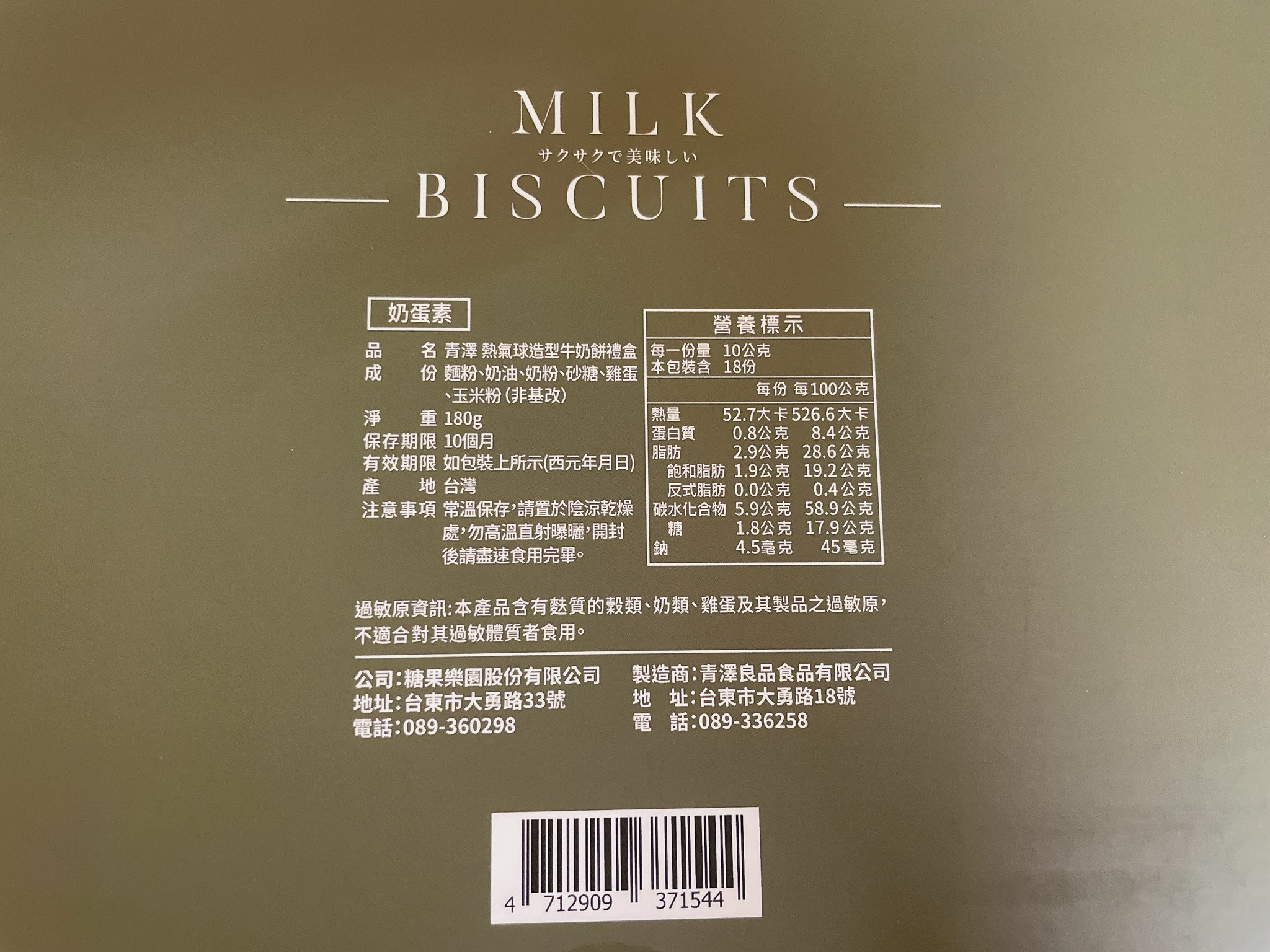 回列表 青澤 熱氣球造型牛奶餅禮盒 濃郁牛奶香氣 酥脆口感 獨特造型 台灣必買伴手禮 市價525元/1盒(免費申請) 所需等級 一般會員以上 所需學分 30 體驗份數 30 關注人數 1848 申請人數 410 參與試吃再贈獨家優惠折扣可至青澤官網折抵使用效期至09/30! 申請截止 品牌業者:青澤 負責廠商 糖果樂園股份有限公司 廠商地址 台東市大勇路33號 產地 台灣 試用產品規格 180g(18片入)/盒 食品業者登錄字號 V-153400981-00000-9 投保產品責任險字號 0900-2236010440-01 心得分享 商品介紹 商品成分 使用方法 注意事項 體驗名單 9.4 青澤 熱氣球造型牛奶餅禮盒 濃郁牛奶香氣 酥脆口感 獨特造型 送禮適合 9.9 牛奶香氣 9.0 攜帶方便 9.2 造型獨特 9.5 建議推薦 9.4 心得分享 28則 陳志成 金食達人 51歲 臺北市 2024/05/11 對青澤 熱氣球造型牛奶餅禮盒 濃郁牛奶香氣 酥脆口感 獨特造型留下評價 10 這款青澤熱氣球造型牛奶餅禮盒真的是太適合送禮了,外盒的設計實在精美,偌大熱氣球正是美麗的台東特色,打開裡面更有一層立體的熱氣球設計,這麼具有代表性又精緻的禮盒好適合買來當伴手禮送親友呢!就連餅乾的造型也是熱氣球,獨特的造型真的是太有心了,滿滿的台東風情映入眼底!牛奶餅的香氣十足,咬起來不但軟硬適中,還有淡淡的奶香,很順口,餅乾也是一片片單包裝相當好攜帶,下次去台東我也想買這款伴手禮回來與大家分享,收到的人一定會非常開心的! 羅仁宏 鑽石達人 24歲 臺南市 2024/05/11 對青澤 熱氣球造型牛奶餅禮盒 濃郁牛奶香氣 酥脆口感 獨特造型留下評價 10 這款青澤熱氣球造型牛奶餅禮盒絕對是我在台東旅遊時的一大驚喜!禮盒外觀美輪美奐,熱氣球飛越縱谷的場景令人心曠神怡,尤其是卑南溪流淌在下方,彷彿讓人身臨其境,感受到了台東的自然美景。打開禮盒後更是驚喜連連,內部設計以各式各樣的熱氣球在天空中飛舞的景象,為禮盒增添了一份奇幻與美妙。這款禮盒背後的設計理念更是令人動容,以台東的物產恩澤到全世界,展現了青澤對於台灣的熱愛與期許,實在讓人由衷地感動。得知這款禮盒花了7個月時間構思及設計,更是讓我對這份禮物的價值倍感珍貴。而熱氣球飛越縱谷的設計更是讓歐美客戶驚艷,這次的視覺與味覺的結合,展現了青澤對於創新的不懈追求,真的是非常特別也非常具有代表性。這款禮盒的售罄更是充分證明了它的受歡迎程度,而即將推出的第二版禮盒更是讓人無比期待。一盒18片的熱氣球餅乾更是讓人垂涎欲滴,用心挑選的食材和精湛的製作工藝,絕對是大人小孩都能夠喜愛的美味。最後,恭喜青澤熱氣球造型牛奶餅禮盒榮獲飲食界奧斯卡之稱的食創獎最高殿堂三星等的榮譽!這是對他們不懈努力的最好肯定,也是對台灣飲食產業的一份極大的貢獻。 圈圈 金食達人 22歲 臺南市 2024/05/12 對青澤 熱氣球造型牛奶餅禮盒 濃郁牛奶香氣 酥脆口感 獨特造型留下評價 10 感謝食力及青澤給予這次的試吃活動。收到商品時,包裝相當完整,餅乾及禮盒都沒有受到傷害,謝謝青澤的用心。打開紙箱入目的是非常漂亮的熱氣球禮盒,精緻的圖案設計令人相當驚豔!接下來打開蓋子,「哇~~好厲害,第一次看到這麼漂亮的禮盒」不由自主的就說出來這句,立體感的熱氣球設計,就像自己身在台東看熱氣球一樣! 包裝漂亮,餅乾也不馬虎,熱氣球造型的餅乾,花紋也各有特色,打開包裝後,香甜濃厚的奶味撲鼻而來!酥鬆的口感,香甜的奶味佈滿在口中的各個角落,手工製作的餅乾特別美味,一口接一口停不下來,配茶配牛奶都好適合,家人朋友也說讚。 薛育柔 金食達人 28歲 臺北市 2024/05/13 對青澤 熱氣球造型牛奶餅禮盒 濃郁牛奶香氣 酥脆口感 獨特造型留下評價 10 開始申請時就很期待想快點看到實體,收到貨那天就很立刻打開來看,真的很漂亮!整體熱氣球跟台東的關聯性很強,再加上立體的包裝設計,真的非常用心又好看。再來牛奶餅乾的部分,帶有淡淡的奶香,只是口感的部分有點稍軟,但整體還是非常喜歡~! Leo 金食達人 27歲 臺北市 2024/05/13 對青澤 熱氣球造型牛奶餅禮盒 濃郁牛奶香氣 酥脆口感 獨特造型留下評價 10 感謝食力平台提供本次機會參與試吃體驗,已經關注青澤很久了,沒想到這麼幸運可以試穿~首先先來說說禮盒外觀,美觀大方、色彩鮮豔,與市面上的其他餅乾禮盒風格上有很大的區別,難怪可以得食創獎的三星大獎。再來是內容物,除了有熱氣球造型的可愛牛奶餅乾外,還有立體式設計的熱氣球裝飾,增添了更多開箱的樂趣,確認了他就是過節送禮好物,收到的人一定超級驚豔,會有很新穎的印象!最後是餅乾口感的部分,硬度中等,奶香濃郁,吃起來沒有過多調味,非常單純老少皆宜。三個面向來做評估,整個就是一個很創新的禮盒,對收禮人來說一定非常驚喜,超推~~~ 陳瑋聆 金食達人 25歲 臺北市 2024/05/16 對青澤 熱氣球造型牛奶餅禮盒 濃郁牛奶香氣 酥脆口感 獨特造型留下評價 10 外包裝盒非常的精美,超級精艷,打開禮盒後的熱氣球立體包裝及印刷也是讓我印象深刻,這禮盒拿去送人絕對不會失禮吧,裡面的熱氣球牛奶餅乾造型可愛,奶味香濃,餅乾體酥脆,雖然不是太精緻的零食,但是這簡單的美味也是讓人唇齒留香呀~ Meng Huang 鑽石達人 48歲 臺中市 2024/05/17 對青澤 熱氣球造型牛奶餅禮盒 濃郁牛奶香氣 酥脆口感 獨特造型留下評價 10 結合台東在地觀光特色-熱氣