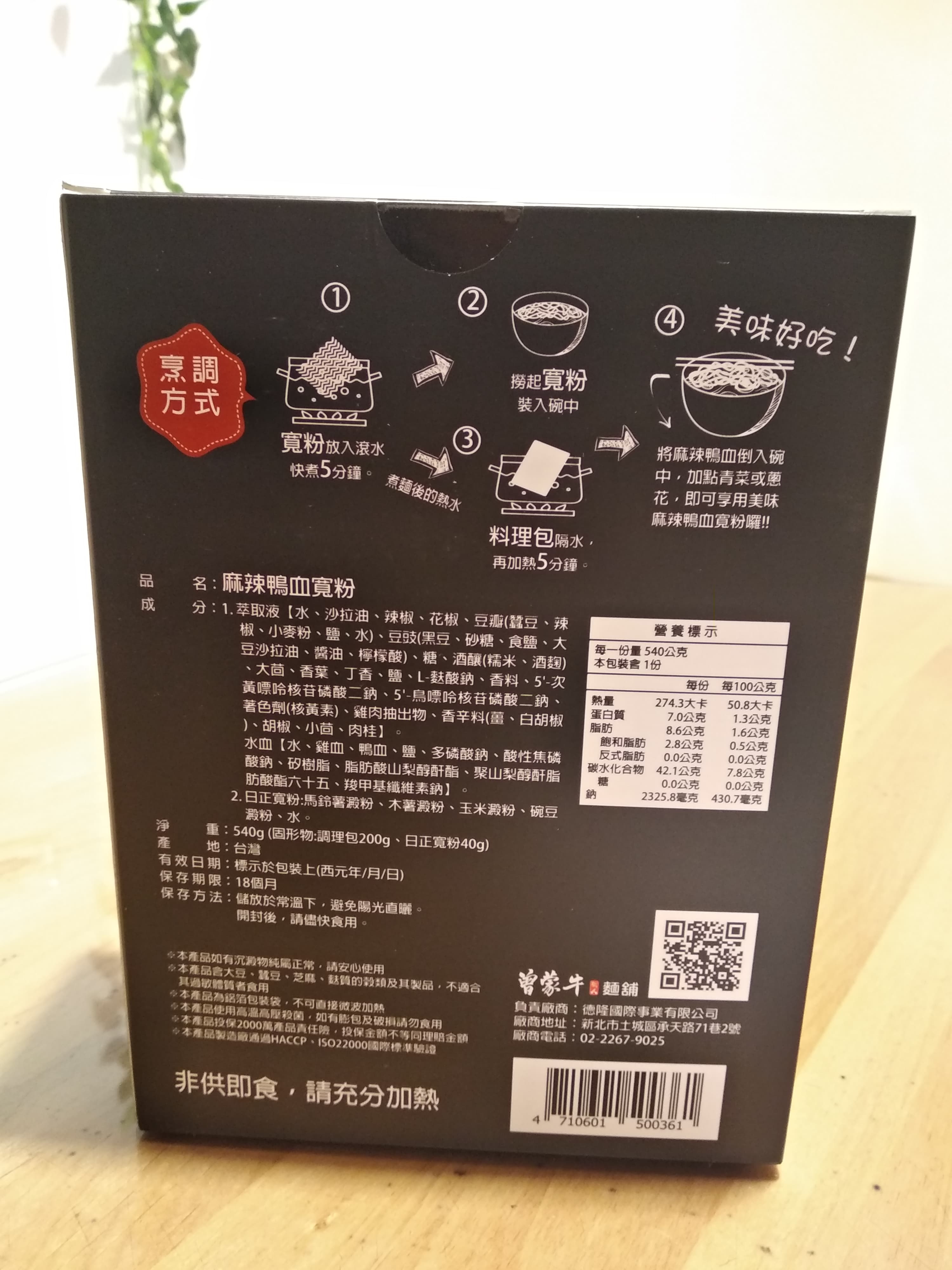 回列表 曾蒙牛職人麵舖 麻辣鴨血寬粉 讓人垂涎欲滴的勁辣爽感 市價198元 所需等級 一般會員以上 所需學分 60 體驗份數 15 關注人數 1584 申請人數 198 申請者入選試吃活動後,系統會扣除60學分以取得產品試吃資格。體驗完成後,請返回會員專區完成試吃體驗心得分享(至少100字,加上三張照片),經主辦單位確認後,會贈送30學分給您作為鼓勵。若未於限定期間內完成心得分享,系統將列入黑名單,影響後續申請權益喔! 申請截止 品牌業者:曾蒙牛職人麵舖 廠商名稱 德隆國際事業有限公司 廠商地址 新北市土城區承天路71巷2號 產地 台灣 產品規格 540g 廠商電話 02-2267-9025 心得分享 商品介紹 商品成分 使用方法 注意事項 體驗名單 7.7 曾蒙牛職人麵舖 麻辣鴨血寬粉 包裝美學 8.3 湯頭濃郁 7.7 勁辣程度 6.9 寬粉Q彈 8.1 建議推薦 7.7 心得分享 15則 胡家菁 金食達人 50歲 高雄市 2020/12/31 對曾蒙牛職人麵舖 麻辣鴨血寬粉留下評價 8 打開包裹一看,是日正的產品,心裡馬上覺得值得信賴,品質有保證. 因之前常買日正的粉類及乾貨,品質都很好.試吃當天正直寒流來襲,來碗熱熱辣辣的麻辣寬粉再適合也不過了. 加熱方式依照自己的方式有稍做改變. 料理包的部分是將食材倒入小鍋中用電鍋加熱,而寬粉是是用滾水煮4分鐘,之後,將兩種食材一起倒入炒鍋中再煮2分鐘,讓寬粉吸飽湯汁.第一口品嚐湯頭時,覺得茴香味稍重,寬粉雖煮了6分鐘還是稍硬. 吃了幾口之後,感覺順口許多,也較好吃了!若湯頭再濃郁一些,辣味再強一點,在冬天或過年時食用此產品,溫暖的感覺馬上湧入心裡. 王乙葶 金食達人 35歲 臺南市 2021/01/02 對曾蒙牛職人麵舖 麻辣鴨血寬粉留下評價 8 包裝蠻有質感,烹煮做法也很詳細!因為喜歡吸附湯汁的冬粉,所以我的做法是先把寬粉煮稍軟後加進調理包,再放些喜歡的配料下去一起煮。調理包裡面有三大塊鴨血,口感是較屬軟嫩的那種,湯頭很順口香氣也ok,但對於無辣不歡的嗜辣者來說,我覺得麻辣感較不足。如果可以有不同辣度選擇的話會更好! ArthurHsu 鑽石達人 48歲 新北市 2021/01/02 對曾蒙牛職人麵舖 麻辣鴨血寬粉留下評價 8 這一款曾蒙牛麻辣血旺寬粉、料理起來方便快速、寬粉口感不會軟爛、鴨血口感扎實不鬆散,入口的香味很充足、花椒的味道也是在入口之後,漸漸的從喉頭回上,對於我這種比較不太敢吃太辣的人來說是個很美好的體驗。在味道上面也不會太死鹹。這一包的份量上也是剛剛好不會太少。在這寒冷的天氣 ,可以在家中吃個麻辣血旺寬粉 正是時候,煮時簡單只要幾分鍾,加上自己愛吃的肉片青菜,美味可口的料理,就上桌囉! Chang Yi Hsiu 金食達人 30歲 宜蘭縣 2021/01/03 對曾蒙牛職人麵舖 麻辣鴨血寬粉留下評價 8 打開有一包寬粉和湯料包,烹調方式蠻簡單的,但寬粉要煮久一點才不會太硬,裡面的鴨血份量十足,湯頭嘗起來不會過於麻和過於辣,介於中間值,只是份量不算很多,當正餐吃可能會餓,鴨血和寬粉的組合有點略顯單調,希望以後有增加其他配料的版本,讓消費者有更多的選擇在。 K 銀食達人 35歲 新北市 2021/01/03 對曾蒙牛職人麵舖 麻辣鴨血寬粉留下評價 7 盒子外包裝的圖示跟配色讓人覺得頗有質感,打開裡面兩個包裝。食物部分,湯頭夠麻,但香氣不太夠,整體味道尚可。鴨血有入味,又軟嫩,非常好吃,給予好評。寬粉耐煮,又有彈性,但份量可以再多一點。分量部分,因為是一人份,但是整體偏少,必須自己再加入青菜、肉片、冬粉等材才會有飽足感。整體而言,因為必須再加上一些食材,所以湯底不夠,建議可以增加湯底的料跟湯,如此一來可以做為一人份小火鍋基底。 Yan-Ru Chen 金食達人 40歲 桃園市 2021/01/03 對曾蒙牛職人麵舖 麻辣鴨血寬粉留下評價 8 天冷就是要吃火鍋啊!一個人獨享美味超幸福的!一打開就聞到香味,包裝方便易懂,烹調方式也很簡單方便,隨時想吃都很快速!鴨血份量算可以,口感軟嫩很入味,寬粉不容易爛,也很Q彈。沒有額外加水,有多一些配料,湯頭辣度適中,不會過嗆,整鍋湯都喝光光了!回購率70%,因為價錢偏高,如果有折扣或團購價會考慮! 張宛瑩 金食達人 28歲 臺北市 2021/01/04 對曾蒙牛職人麵舖 麻辣鴨血寬粉留下評價 7 烹煮方式只需將麵條另外加熱,湯包部分隔水加熱即可,相當簡單,以單純一人吃須加其他配料時,湯顯得不夠。湯稍鹹,可以加一些水稀釋,平常吃微辣小辣,這湯頭吃起來有香但沒有辣,有點失望。鴨血給四塊都蠻大塊的,但男友覺得不新鮮,我自己是沒感覺。 派派 金食達人 35歲 新北市 2021/01/04 對曾蒙牛職人麵舖 麻辣鴨血寬粉留下評價 4 今天收到的是曾蒙牛職人麵舖-麻辣鴨血寬粉其實我本來看介紹以為是像一道菜可以大家一起分享而且包裝也沒有說幾人份就讓我誤會了實際收到就是像調理包加一球寬粉煮起來就像一人份麻辣燙這樣鴨血也不像圖文說明那麼多實際上就是5到6塊以建議售價198來講真的不行不如去吃麻辣燙還可以有肉有菜再來說味道第一口下去其實真的有點死鹹不會辣就是有麻的部分還不錯看烹調方式沒有說需要加水這部分口味淡的就要自己加本來想要加點蔬菜進去但湯真的有點少所以也不能加了保存方式部分很方便就是常溫可以保存18個月這點我覺得很神奇畢竟食物還有鴨血就這樣放18個月不會有問題很神奇缺點就是吃完就是份量有點少調味有點重鹹優點就是方便跟冬粉很Q但之後應該