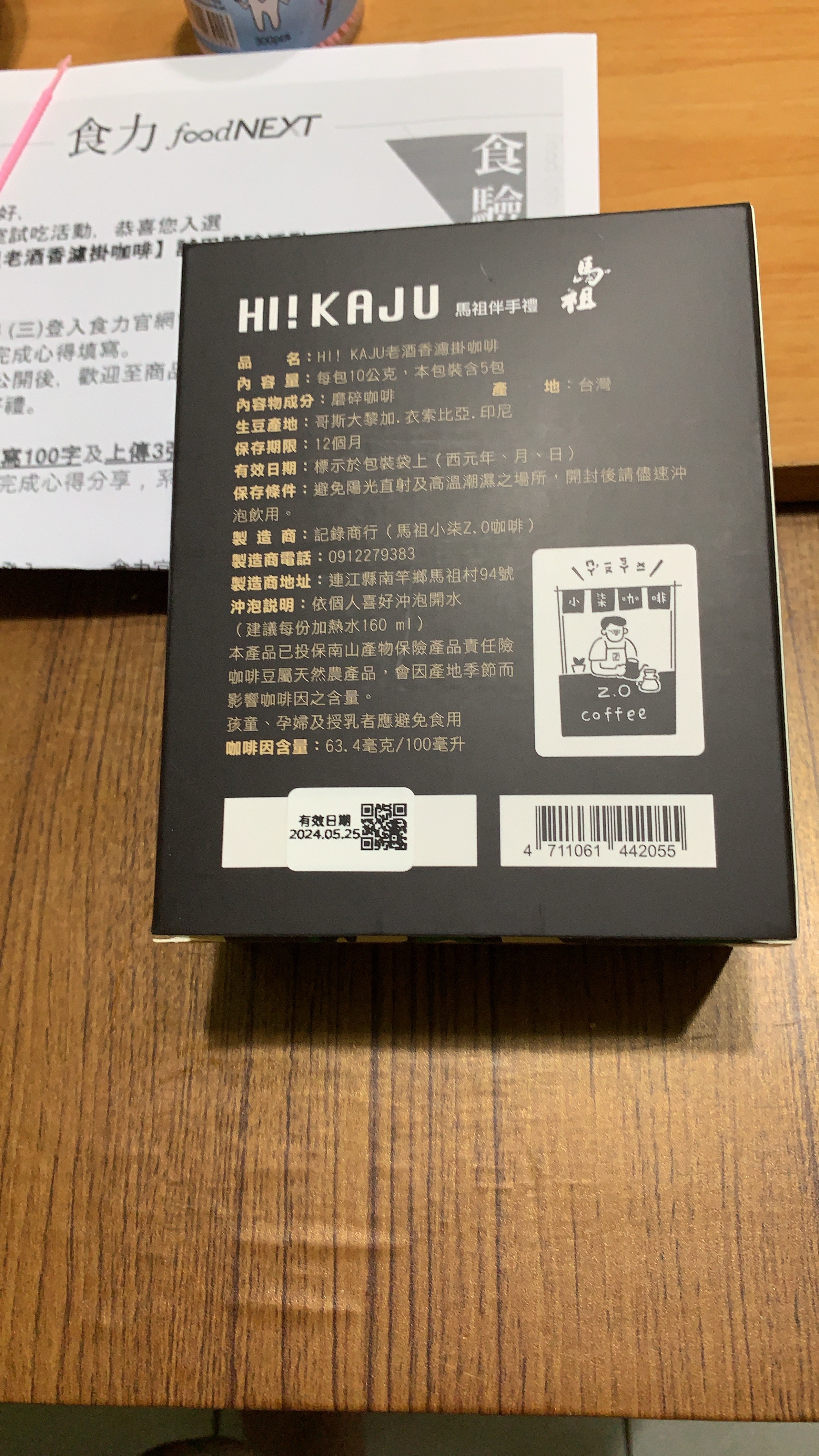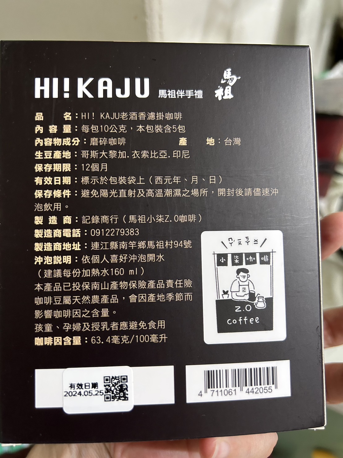 回列表 HI ! KAJU 馬祖老酒香濾掛咖啡 獨特老酒香氣喉韻回甘 市價 350元/組(免費申請) 所需等級 一般會員以上 所需學分 30 體驗份數 50 關注人數 3142 申請人數 436 申請截止 品牌業者:馬祖小柒咖啡 負責廠商 馬祖小柒咖啡 廠商地址 連江縣馬祖村53號 產地 台灣 試用產品規格 1盒(10g/5包) 食品業者登錄字號 F-124761211-00000-7 投保產品責任險字號 22A0001226 心得分享 商品介紹 商品成分 使用方法 注意事項 體驗名單 8.9 HI ! KAJU馬祖老酒香濾掛咖啡 咖啡香味 8.9 順口清爽 8.8 特殊酒香 9.1 口感酸甜 8.5 建議推薦 8.8 心得分享 50則 宇智波ひのき 金食達人 35歲 新竹市 2023/06/07 對HI ! KAJU馬祖老酒香濾掛咖啡留下評價 10 以前去過馬祖遊玩兩次,每次去必點老酒麵線來品嘗,對馬祖老酒的味道是念念不忘,這次很高興能抽到馬祖老酒香濾掛咖啡,在收到產品的隔天一早就迫不及待的泡了一杯來品嘗,嚴格的依照包裝上的建議只沖了160 mL的熱水,便聞到了令人懷念的酒香,喝起來也十分順口且酸度適中,極度推薦。 鄭乃華 金食達人 33歲 新北市 2023/06/07 對HI ! KAJU馬祖老酒香濾掛咖啡留下評價 9 馬祖,除了迷人的戰地風光以外,最令我懷念的就是當地的老酒!馬祖家家戶戶都有自己釀的老酒,風情也都不太一樣,是只有在馬祖才能品嚐到的風味。而在馬祖必去的景點之一就是介壽獅子市場,市場裡藏身一間小而美的咖啡店-Z.O 咖啡!此次很開心可以開箱它們家的【Hi!KAJU咖酒濾掛式咖啡】,當初去馬祖玩的時候因為行程安排沒來得及去他們家喝一杯咖啡,沒想到這次會先以濾掛咖啡的方式體驗他們家的產品!Hi! KAJU酒香濾掛包一組有5包,光是一打開包裝它的老酒香氣就直接撲鼻而來,熱水沖泡時也不斷散發出濃濃香氣。最後終於在口中喝下第一口咖啡時覺得這就我所懷念的老酒!第一次喝到這種老酒香氣如此濃厚的咖啡!店家採用特殊發酵處理法的綜合拼配豆磨粉,光是一杯咖啡感覺就帶我回到馬祖遊玩的時光,不得不推薦給喜歡馬祖老酒或是想送特色伴手禮的人,這款咖啡真的非常特別! 關小因 金食達人 42歲 臺北市 2023/06/09 對HI ! KAJU馬祖老酒香濾掛咖啡留下評價 9 本來以為只是噱頭,收到包裹才知道真的從馬祖寄來的呢! 第一次喝來自馬祖的濾掛式咖啡,包裝很有設計感而且充滿海島風格,濾掛式咖啡真的很方便,不用自己磨豆也聞得到新鮮咖啡豆的香氣,邊倒熱水邊撲鼻而來微微的酒香,真的好特別! 喝起來也不會有苦澀或酸感,只有淡淡的甘甜,是一款順口的黑咖啡。 吳靜宜 金食達人 47歲 臺南市 2023/06/06 對HI ! KAJU馬祖老酒香濾掛咖啡留下評價 10 感謝食力和馬祖小柒Z.O咖啡,讓我可以免費體驗品嚐HI!KAJU老酒香濾掛咖啡!首先看到包裝袋上迷彩Q版軍人覺得很有趣,軍人除了要保衛國家也是要追隨潮流喝杯好咖啡的。打開包裝撲鼻而來一股咖啡香味伴隨著淡淡老酒香味,利用細管壺加入約160ml熱水。沖泡時有鮮明的老酒香,飲入口後濃醇的老酒香在口中蔓延開來,口感非常滑順,完全不酸、不苦、不澀,尾韻回甘。品嚐後口腔中還留有濃濃的老酒香,推薦給喜歡喝咖啡的你。 黃麗淑 金食達人 60歲 臺北市 2023/06/06 對HI ! KAJU馬祖老酒香濾掛咖啡留下評價 8 我每天早上一定必須來杯,現磨現煮的咖啡,下午收到老酒香濾掛咖啡,馬上來試喝,首先打開濾掛咖啡,就可以聞到馬祖陳年高梁的酒香氣,和醇厚咖啡的結合,在來塊蛋糕就是完美的下午茶。但是如果本身不喜歡有酒味的人,可能就比較無法接受,可是也可以試著嚐鮮或許你會喜歡這個結合。 林其堅 金食達人 35歲 高雄市 2023/06/07 對HI ! KAJU馬祖老酒香濾掛咖啡留下評價 9 之前去馬祖玩,都會吃馬祖的老酒麵線,吃起來有一股濃郁的酒香。這次的產品巧妙的將咖啡跟老酒試圖結合起來,打開包裝就有聞到除了咖啡之外的淡淡酒香,用熱水沖泡之後那個香味就更加舒服了,喝起來口感偏酸,但是滿順口的,我個人比較推薦直接喝不加牛奶喔。 楊麗珍 鑽石達人 67歲 新北市 2023/06/07 對HI ! KAJU馬祖老酒香濾掛咖啡留下評價 8 外包裝簡約黑底加LOGO沒太多複雜圖案配上戰地迷彩很有質感內包裝也是統一設計風格整體觀感很好背後多一層貼紙好奇去撕開原來是多用印刷說明才會多貼貼紙撕開內裝封口濃烈酒香衝出取出後是常見的濾掛包裝撕開濾掛封口酒香更明顯可看見研磨顆粒偏粗開始沖泡10克的粉依建議加水至160CC左右粉水比1:16沖煮時酒香多了一層甜味萃取時速度偏快(有做悶蒸與分段注水下)可能跟剛剛提到研磨偏粗有關咖啡液清澈偏淺色微透光香氣濃烈入口後反而有花果香氣口味上偏酸尾段才有淡淡的甘甜咖啡味很順口包裝上未標示烘培度與處裡法但跟我平常有常消費的咖啡店當中的淺陪蜜處理喝起來相似個人是偏中深培為主偶而到咖啡店才會喝一下淺培身邊蠻多資深咖啡愛好會喝淺培我反而倒是覺得很適合對咖啡沒特別愛好也不討厭的人會有一種喝花果茶帶咖啡香氣的感覺以上是資淺的咖啡愛好者個人感受提供給大家參考 淑瑛 金食達人 59歲 高雄市 2023/06/07 對HI ! KAJU馬祖老酒香濾掛咖啡留下評價 9 收到產品,從外包裝就乾收到不同的意象感。 是阿兵哥有駐營的區域,口愛的ㄊㄡˊ 盔國軍,也是需要提神。香氣跟市售咖啡包,有哪麼一點說不上來的不同,是可以上人喜歡的。整體是有讓人驚艷得感但是若以訂價,是呼是呼有昂貴很多,平