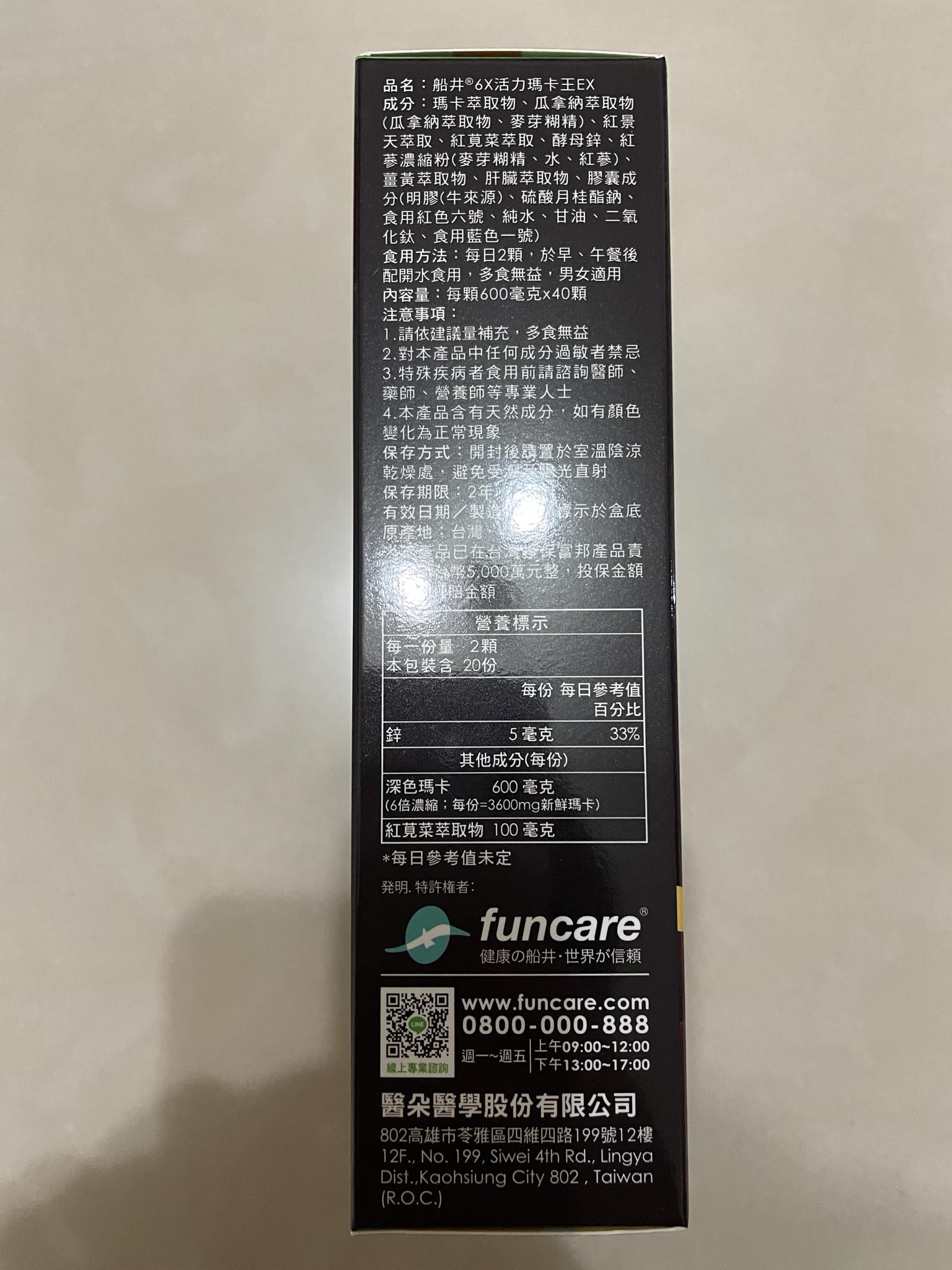 回列表 船井活力瑪卡王EX 4倍衝勁 滿足男人的野望 市價1980 40顆/盒 (免費申請) 所需等級 一般會員以上 所需學分 30 體驗份數 50 關注人數 1081 申請人數 189 申請截止 品牌業者:船井生醫股份有限公司 負責廠商 百鷗國際股份有限公司 廠商地址 台南市北區中樓里開元路92號2樓 產地 台灣 試用產品規格 每顆600毫克X40顆 食品業者登錄字號 A-124770464-00000-2 心得分享 商品介紹 商品成分 使用方法 注意事項 體驗名單 8.7 船井活力瑪卡王EX 精神提升 8.7 體力充沛 8.7 無異味 9.3 成分天然 9.2 建議推薦 8.8 心得分享 44則 洪鼎軒 金食達人 31歲 臺中市 2024/02/26 對船井活力瑪卡王EX留下評價 10 今天喜獲由食力公司寄送:品名:船井funcare. 6X活力瑪卡王EX成份:瑪卡萃取物、瓜拿納萃取物紅景萃取物、紅蔘濃縮粉、薑黃萃取物、紅莧菜萃取物所組成 。營養標示:鋅:5毫克深色瑪卡:600毫克紅莧菜萃取物:100毫克提供製造商:醫朵醫學股份有限公司試吃心得: 瑪卡生長於惡劣的高海拔地區(海拔4500m)。瑪卡是印加古文明的食物之一,食用瑪卡後益發健壯,更可以加強人體適應力,它調節內分泌/荷爾蒙系統,其影響層面上不受限於局部具全面性的健康效益,可說是活力聖品。並可促進代謝,提高體能和性能,幫助提高認知能力,降低精神疲勞,及舒緩緊張情緒造成的壓力,是一種很好的保健機能食品。 Leo 金食達人 27歲 臺北市 2024/03/02 對船井活力瑪卡王EX留下評價 10 感謝食力提供本次試用體驗,也讓我能夠獲取體驗船井活力瑪卡王的機會。在冬天寒冷的時候容易感到疲勞,有時一躺下就想睡覺,開車時也比較容易累,自從開始體驗船井活力瑪卡王之後,這些情況就比較不明顯,可以持續活力一整天,服用過後也不會有任何不適的感覺,真的非常不錯,可以推薦給身邊的人使用! 陳昭安 鑽石達人 34歲 雲林縣 2024/03/02 對船井活力瑪卡王EX留下評價 10 很開心能參與這次食驗室-「船井活力瑪卡王EX 試吃體驗」的試吃體驗,*外包裝:有明顯標示名稱、熱量以及商品成分,以及附產品說明書。*商品成分內容物為: 瑪卡萃取物、瓜拿納萃取物(瓜拿納萃取物、麥芽糊精)、紅景天萃取、紅莧菜萃取、酵母鋅、紅蔘濃縮粉(麥芽糊精、水、紅蔘)、薑黃萃取物、肝臟萃取物*使用方式: 每日兩顆於早、午餐後食用*試吃心得: 瑪卡膠囊為紅色,膠囊沒有味道,好吞,早、午餐後食用,長期吃下來感覺工作的時候精神上有比較專注跟比較有精神。 木元殳 金食達人 39歲 新北市 2024/03/04 對船井活力瑪卡王EX留下評價 10 很開心入圍這次體驗,船井生醫十分大方一次提供一組正貨。拆封後除了商品之外之外還有一張DM,上面有完整的研究數據,專業與信任感大加分~我平時是午餐跟晚餐後各吃一顆,因為習慣在晚上運動,吃一周之後,比較明顯觀察到重訓每組間的間隔時間有縮比較短,會在持續觀察工作與運動上的差異,總之一周體驗下來算是蠻有感,會考慮購買繼續食用 郭鴻諭 金食達人 28歲 臺中市 2024/03/06 對船井活力瑪卡王EX留下評價 10 很高興收到這次船井活力瑪卡王的商品體驗,個人過去並沒有特別補充健康食品的習慣,這次的瑪卡體驗可以說是全新的體驗,體驗兩週後就以下幾點跟各位分享:●精神提升:補充瑪卡後工作約兩個小時會明顯發現自己並不會跟過去一樣有疲憊的感覺,反而可以持續到下班都不會有明顯的精神不濟感。 ●體力充沛:在平日健身的隔天通常身體多多少少都會有痠痛感,但真的不誇張,第一天補充瑪卡健身後的隔天竟然毫無痠痛及疲累感,大大增加健身的頻率及效率! ●有無異味:過去常常聽身邊的朋友訴說雖然瑪卡有效,但那股異味還是難以接受,甚至影響自己的信心常常擔心自己身體是否散發出那股異味,但是船井活力瑪卡王完全沒有這個問題,反而有股清香,讓我更加好奇其他品牌的異味到底是怎麼回事,不過我想我應該會被船井寵壞,哈哈哈!●成分天然:成分天然已經是當今保健品的標配,這款船井活力瑪卡王當然就更不用說了,不但有效而且安全!綜上所述,我認為這款船井活力瑪卡王應該推廣給更多人知道,不但可以安全無負擔的攝取,而且對於身理及心理都有著非常大的幫助。 夏鳳寶 鑽石達人 62歲 臺南市 2024/03/09 對船井活力瑪卡王EX留下評價 10 這次試吃的是船井活力瑪卡EX,瑪卡又稱為秘魯人篸或秘魯威而鋼,為秘魯重要的經濟作物,生長於海拔4000-4500公尺的安第斯山脈,古印加人的先人在一次激渴難耐下發現的,以其充饑,解渴,沒想到吃了之後體力充沛,連生育能力都強力提高,因為裡面的成份瑪卡烯及瑪卡醯胺是可以壯陽,幫助睡眠,提高記憶。這個產品裡面還添加紅景天,鋅,瓜拿納,低溫粹取6倍濃縮,保留最完整的營養,一天早晚各一顆,讓我感覺精神有活力一整天,以前曾吃過類似的產品沒什麼感覺,船井的此項產品很有感,推薦給大家可以服用!! 王雋升 金食達人 26歲 臺中市 2024/03/09 對船井活力瑪卡王EX留下評價 10 目前我是一名碩士研究生,每天的作息通常是早上九點到晚上十一點左右,平常都睡不太飽且很容易改受到疲憊,之前也有吃過他牌的馬卡但改善效果不佳,不過每天吃船井生醫的 6X 改善很多生理上的變化,除了精神力、專注力變好外,在離開研究室後的閒暇運動也有感受到明顯的體力變化。 鄭世昌 鑽石達人 55歲 臺中市 2024/03/10 對船井活力瑪卡王EX留下評價 10 這種產品,好像是適合