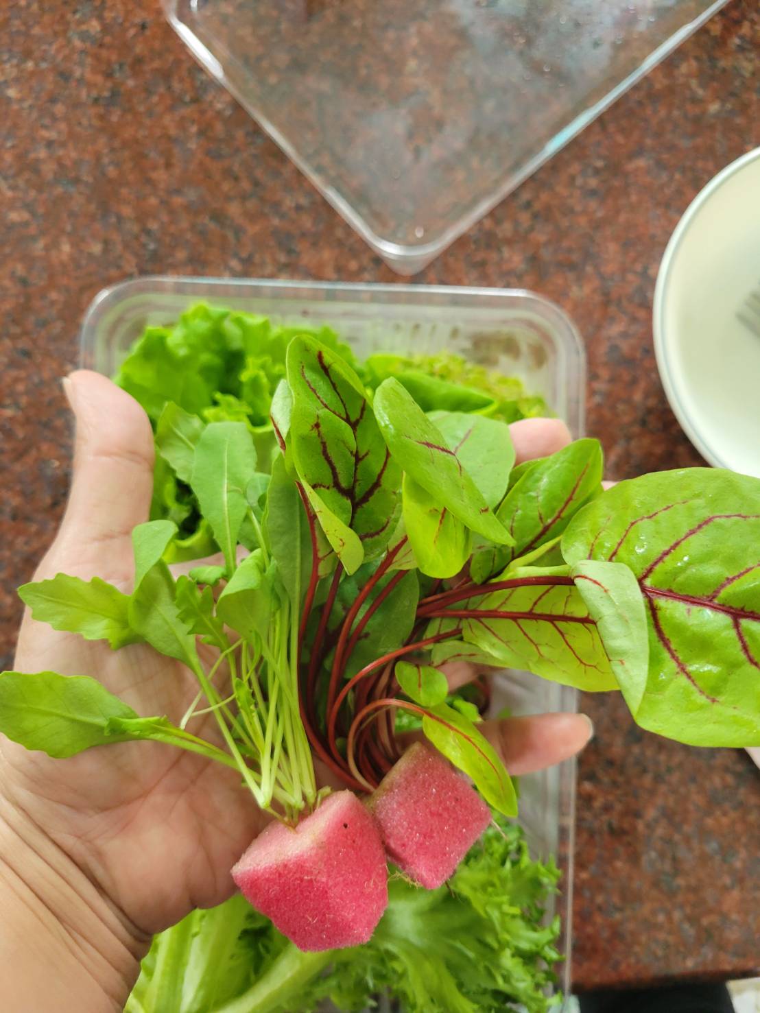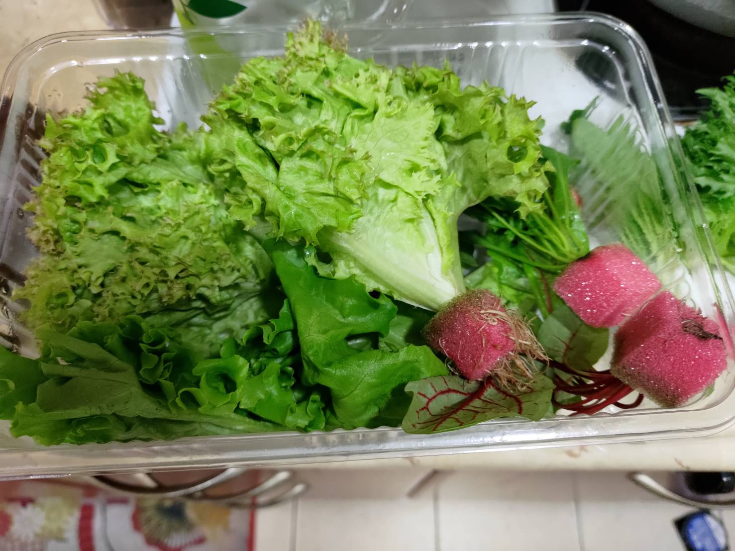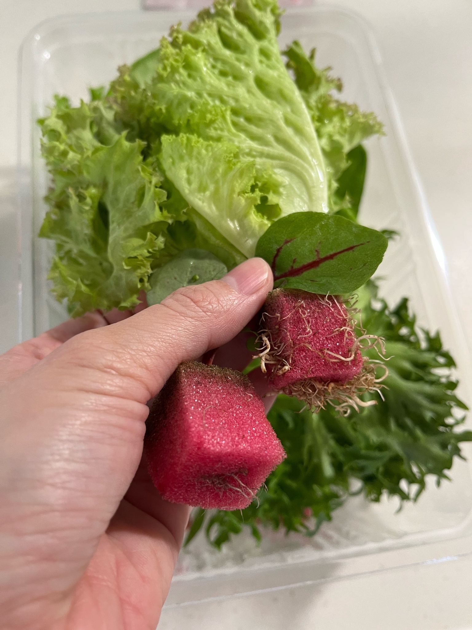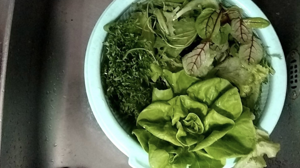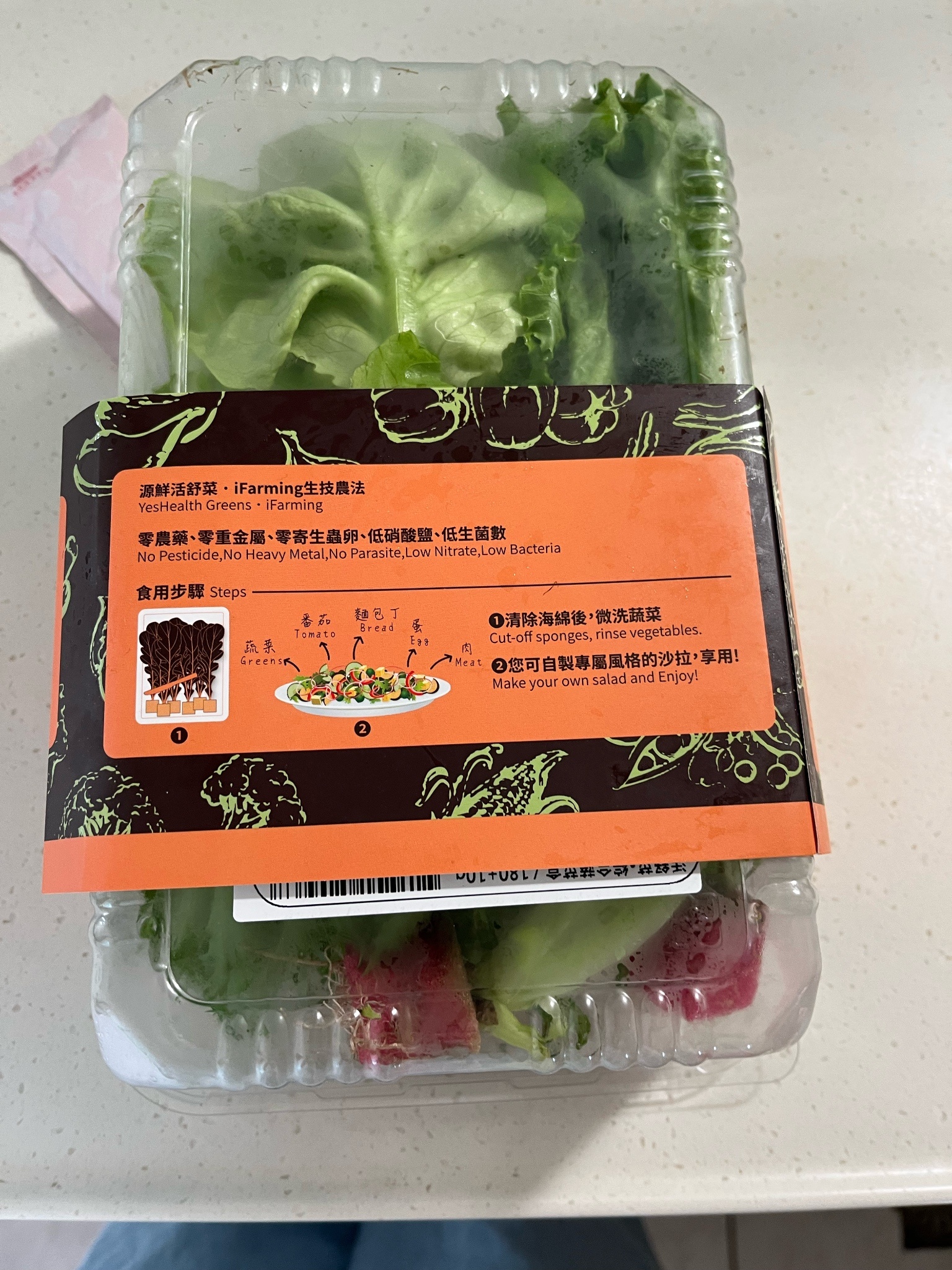 蔬菜盒-將海綿剪掉過濾水微洗即食。
