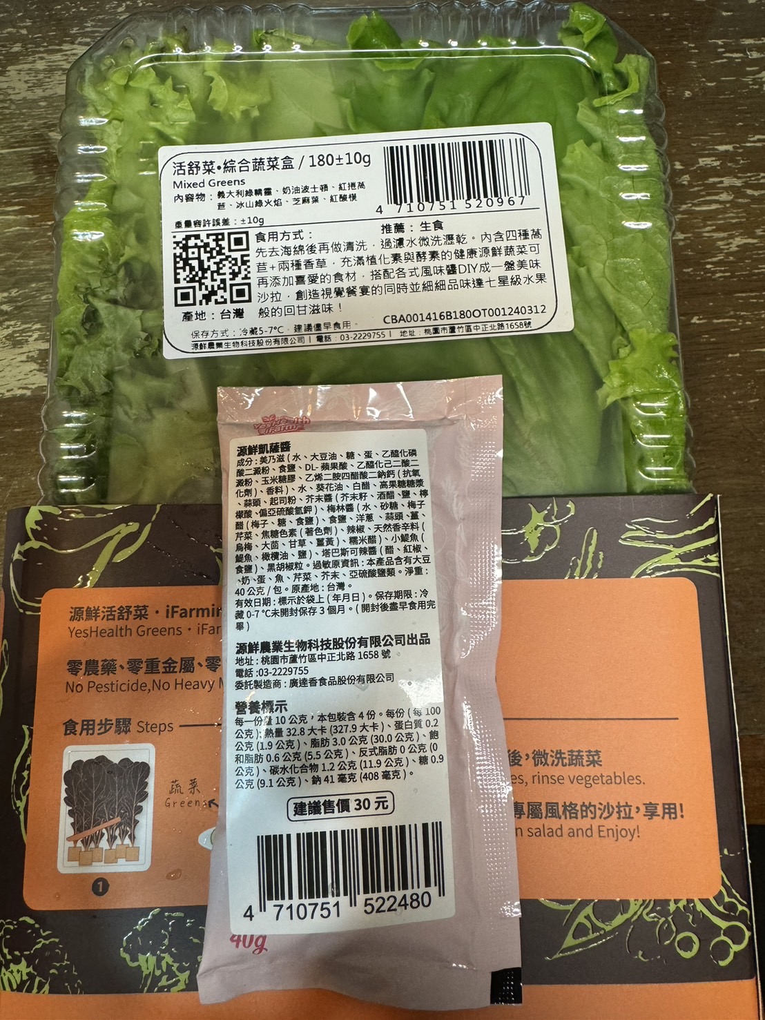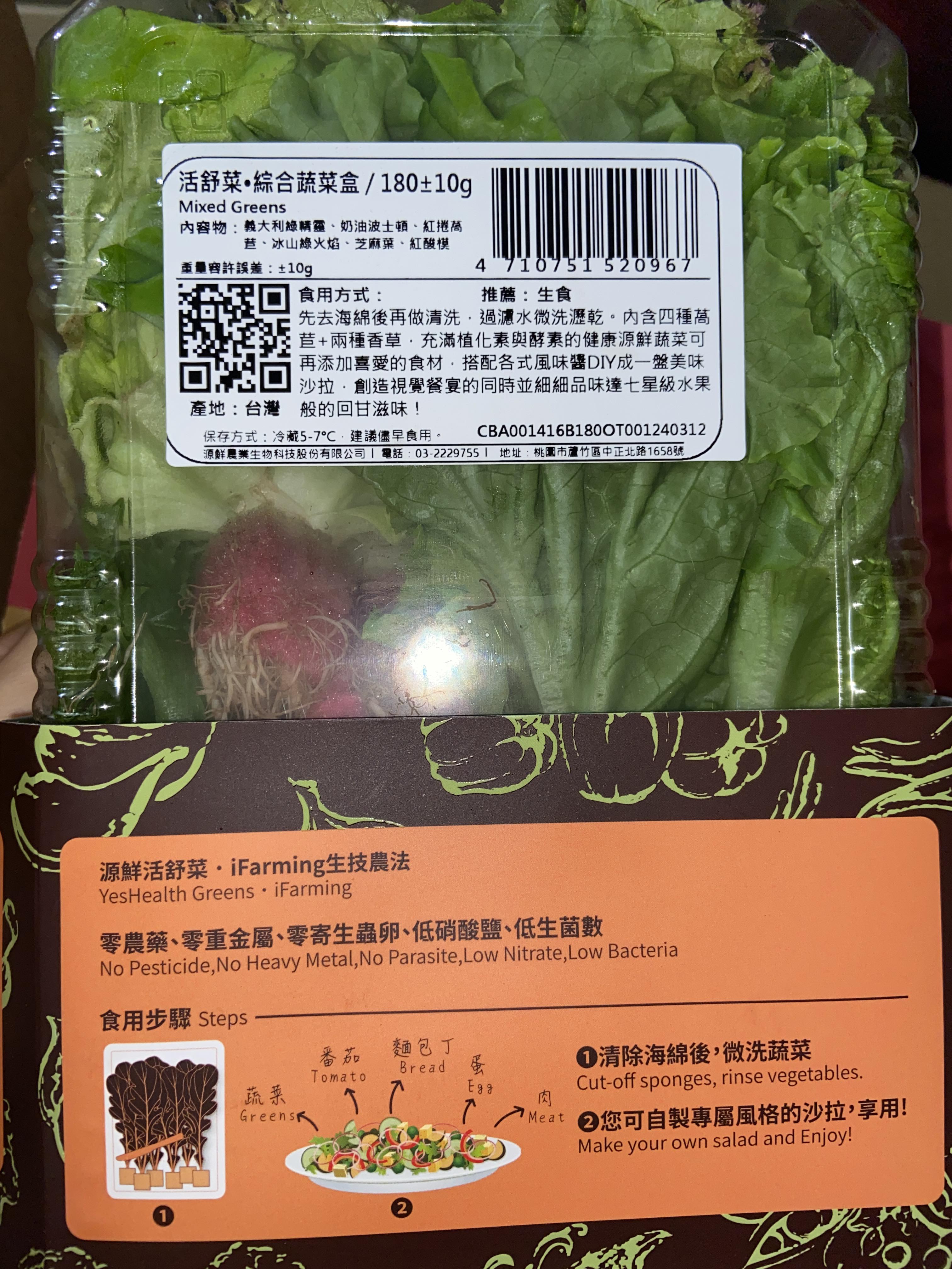 | 試用產品規格 | 綜合蔬菜盒180g±10g/盒+凱薩醬40g*2包 |