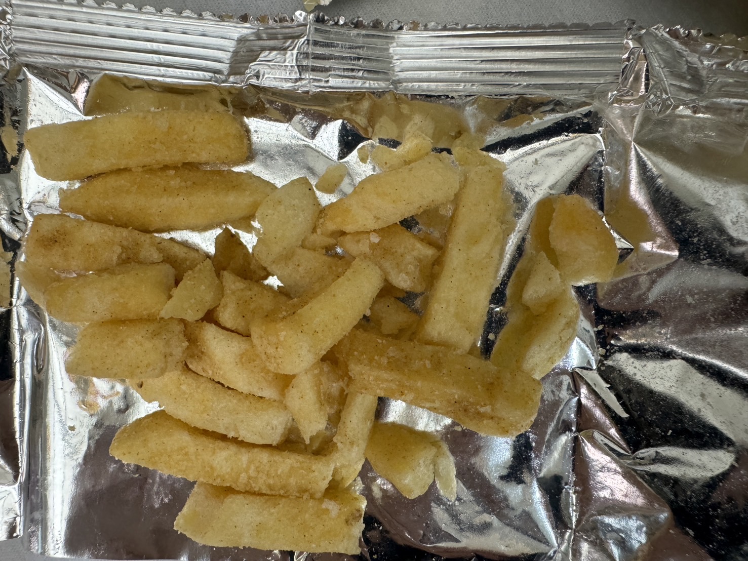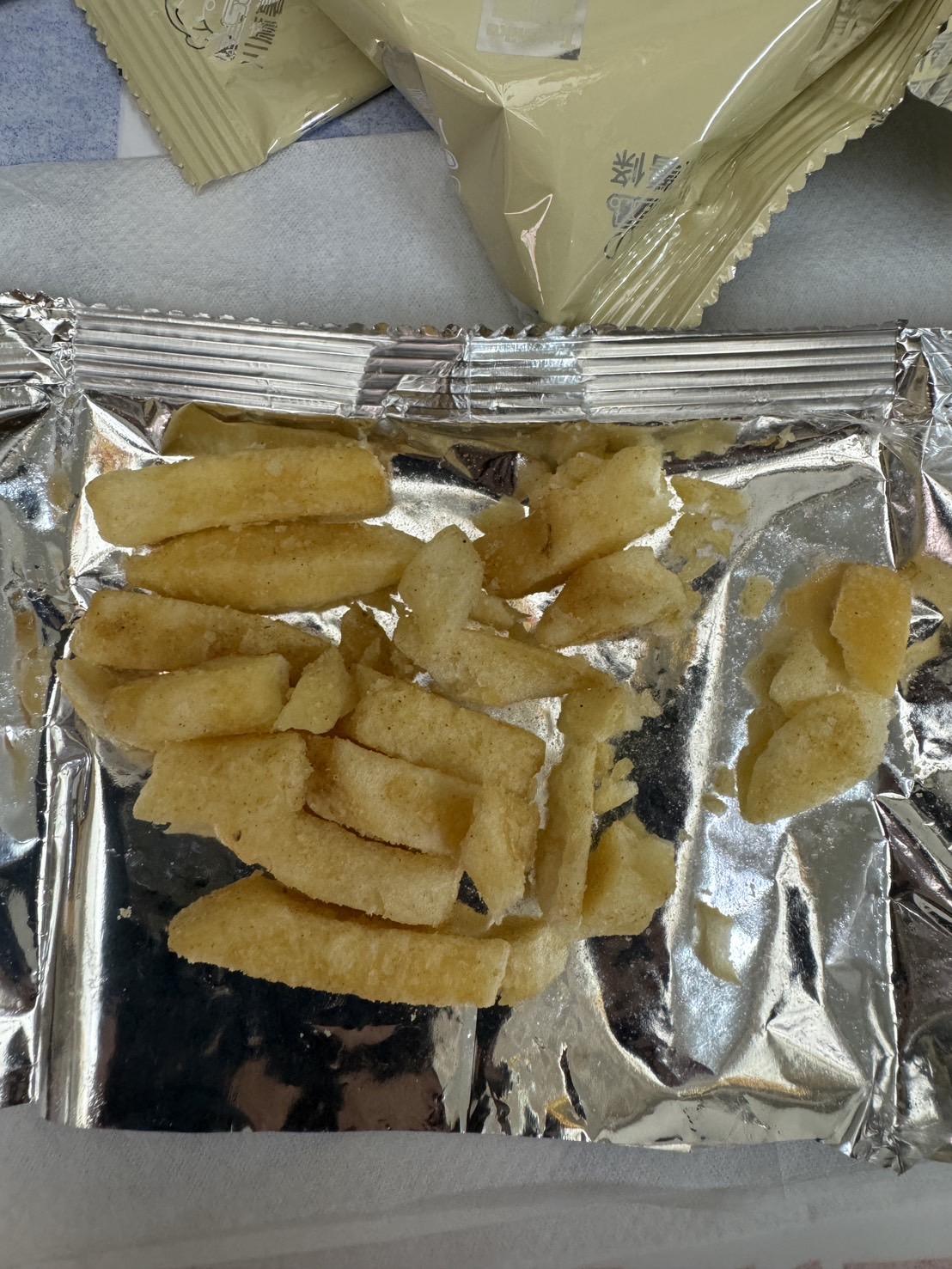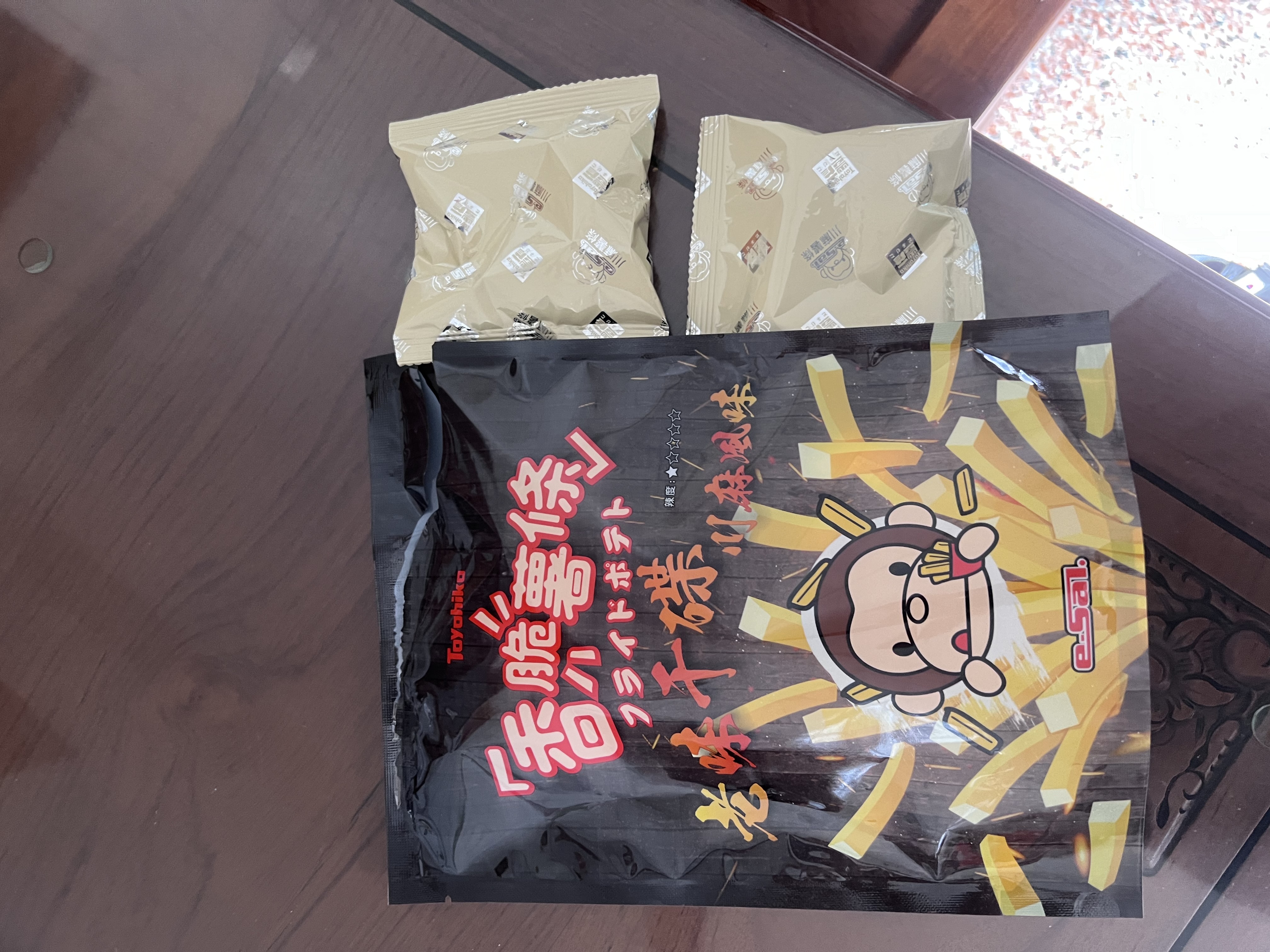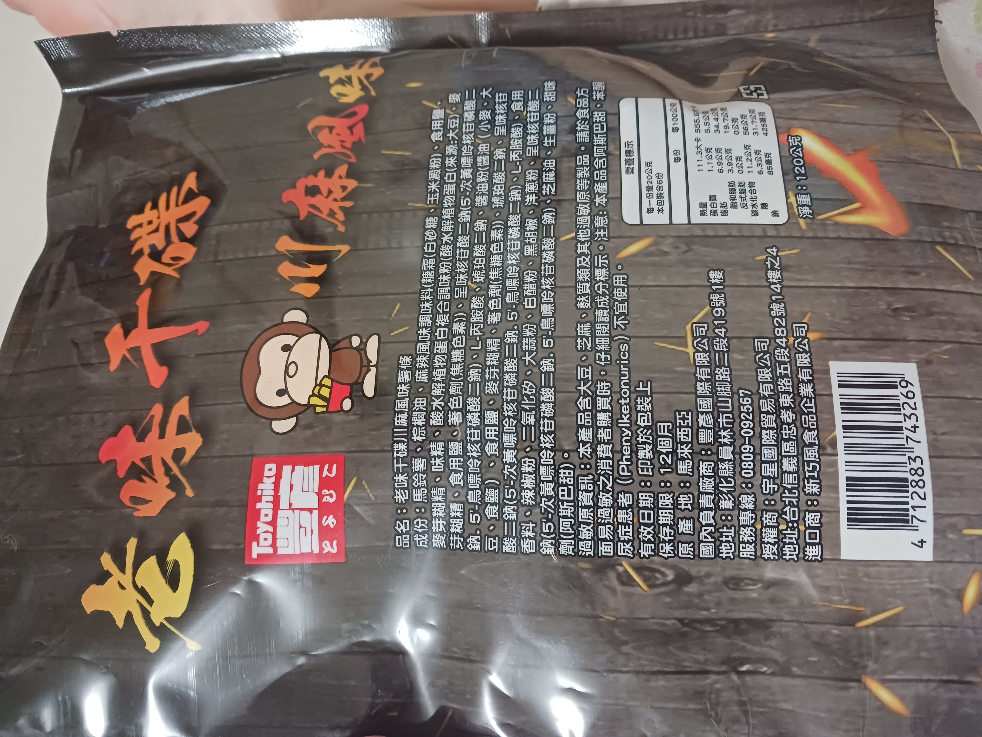 馬鈴薯、棕櫚油、麻辣風味調味料(糖霜(白砂糖、玉米澱粉)、食用鹽、麥芽糊精、味精、酸水解植物蛋白複合味粉(酸水解植物蛋白(來源大豆)麥芽糊精、食用鹽、著色劑(焦糖色素))、呈味核苷酸二鈉(5’-次黃嘌呤核苷磷酸二鈉、5’-鳥嘌呤核苷磷酸二鈉)、L-丙胺酸、琥珀酸二鈉、醬油粉(醬油(小麥、大豆、食鹽)、食用鹽、麥芽糊精、著色劑(焦糖色素)、呈味核苷酸二鈉(5’-次黃嘌呤核苷磷酸二鈉、5’-鳥嘌呤核苷磷酸二鈉)、L-丙胺酸、食用香料、辣椒粉、二氧化矽、大蒜粉、白醋粉、黑胡椒、洋蔥粉、呈味核苷酸二鈉(5’-次黃嘌呤核苷磷酸二鈉、5’-鳥嘌呤核苷磷酸二鈉)、芝麻油、生薑粉、甜味劑(阿斯巴甜)