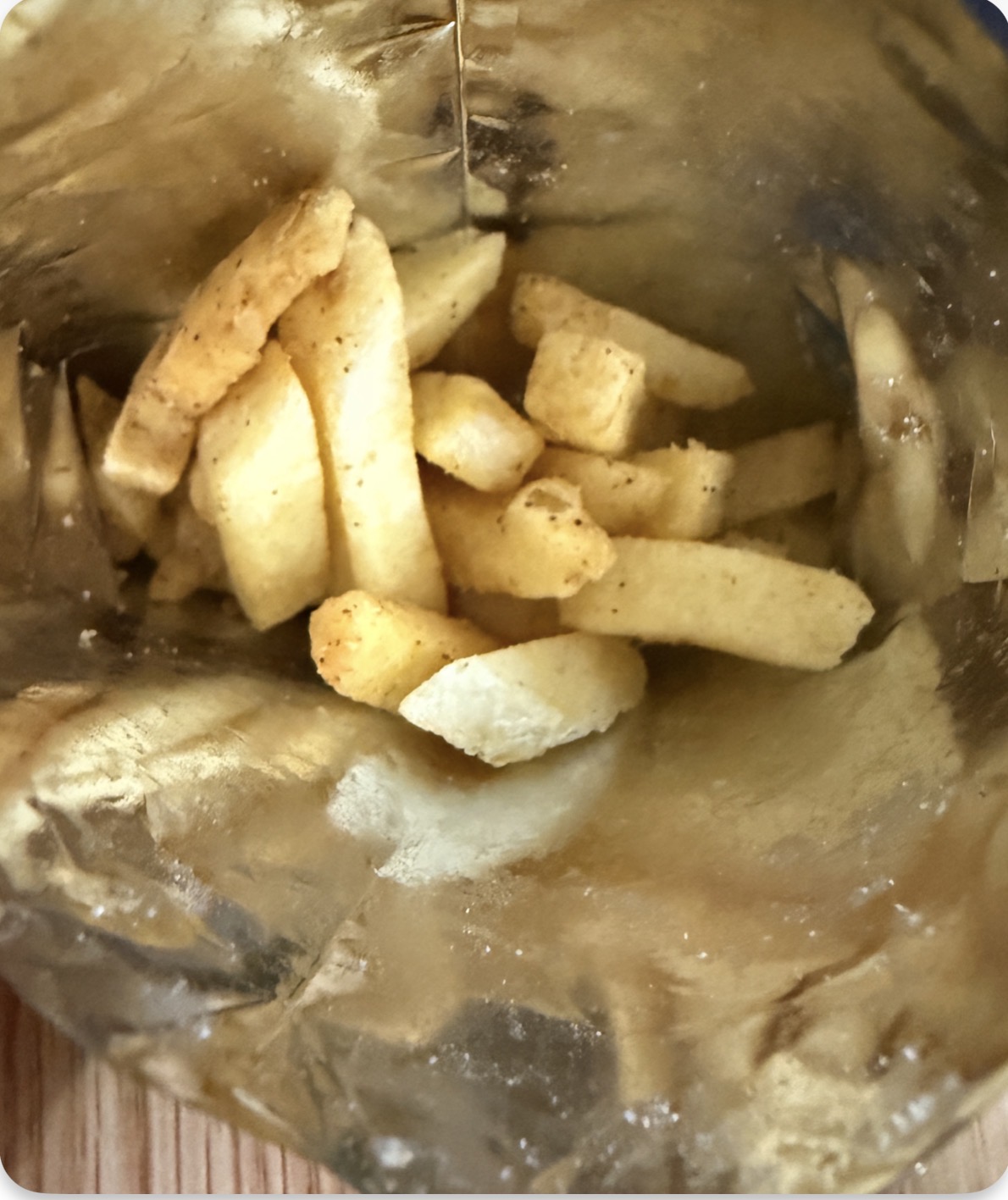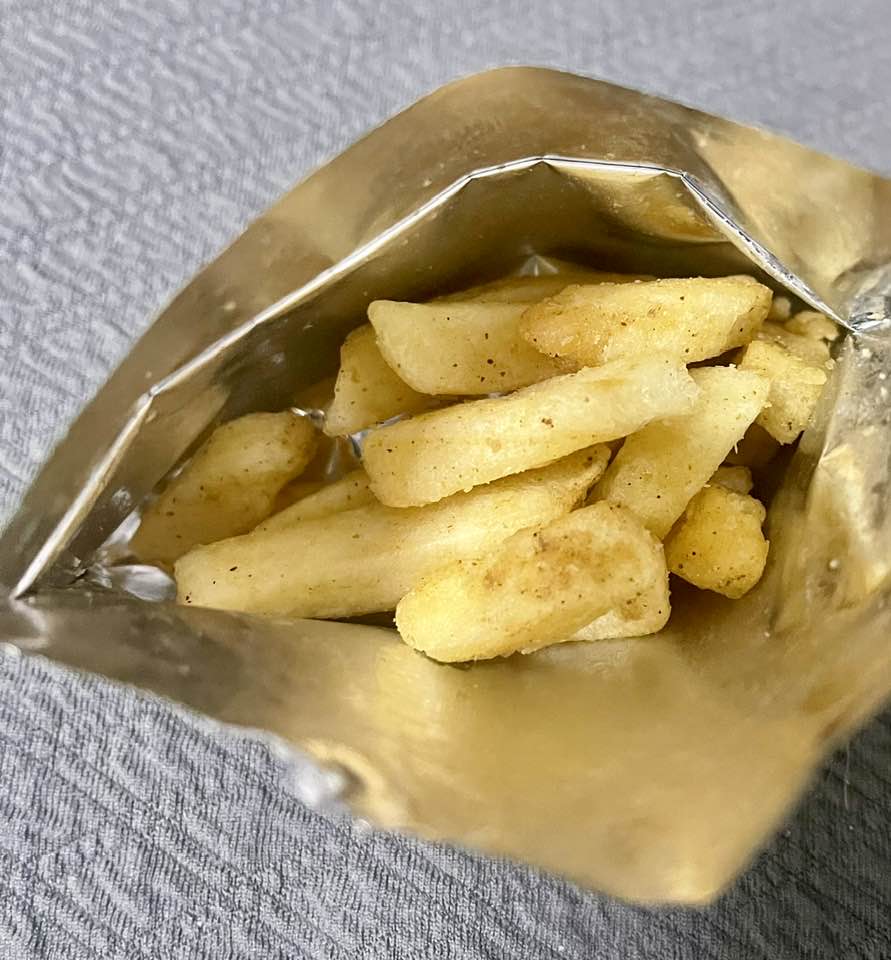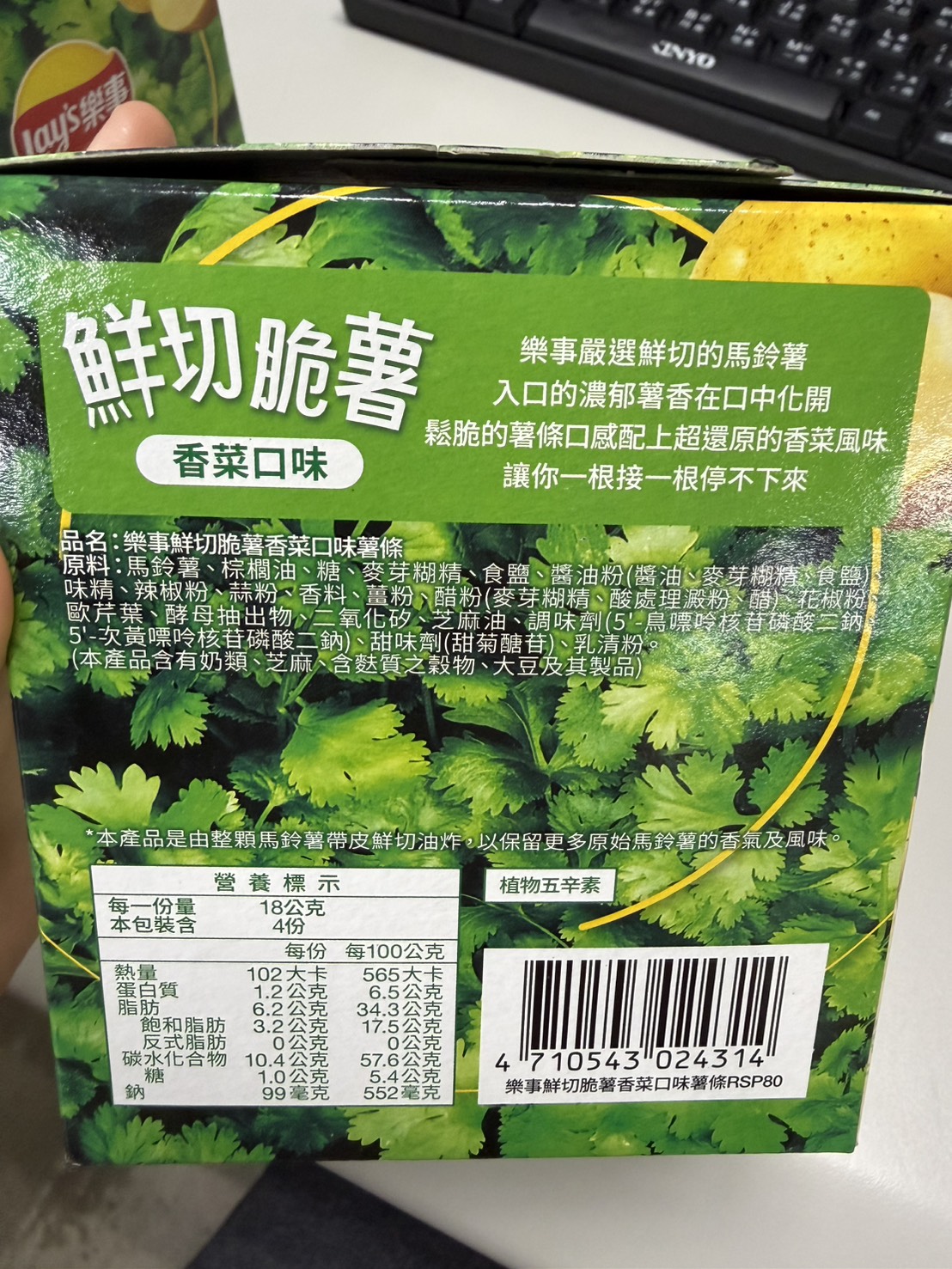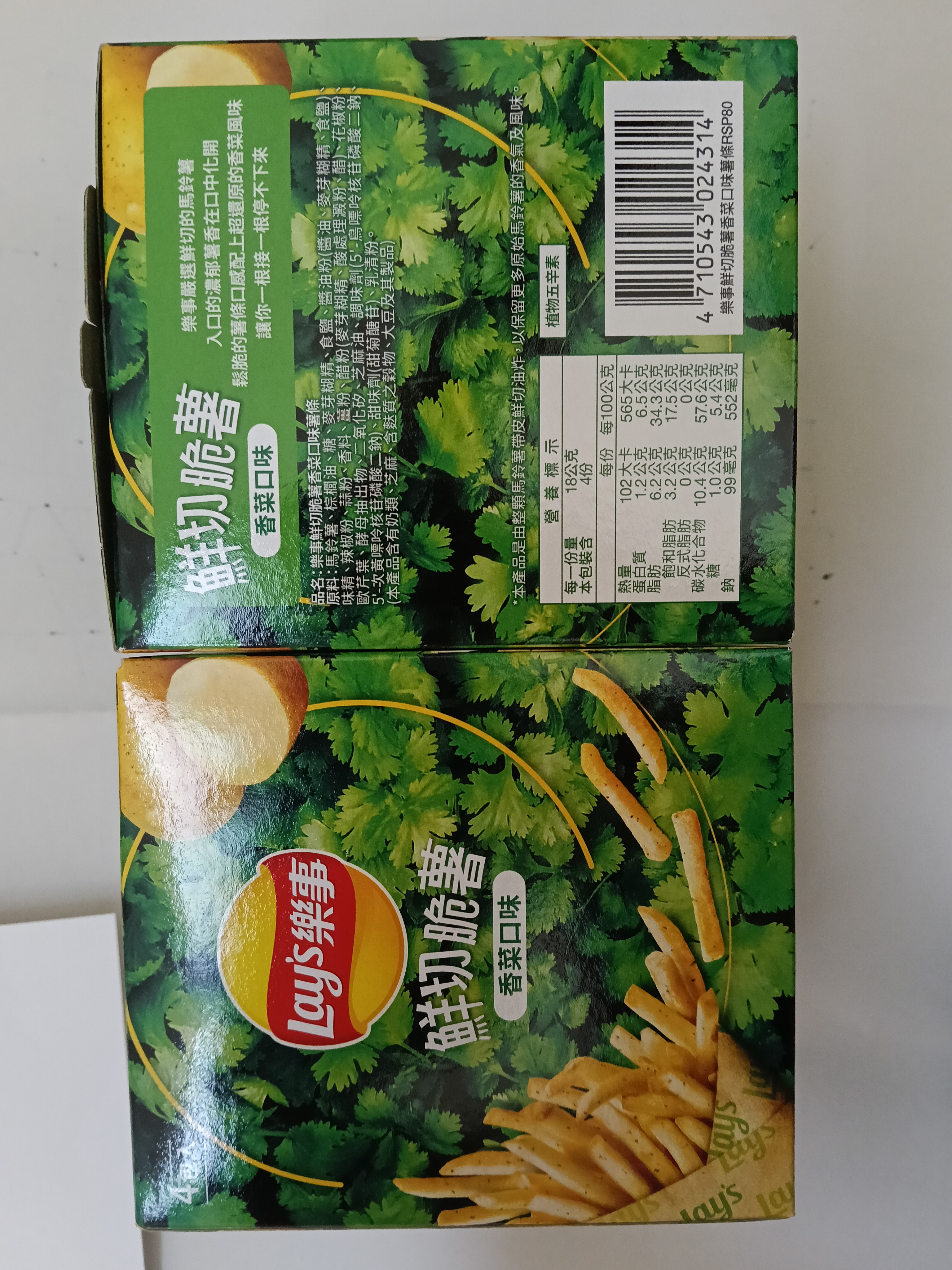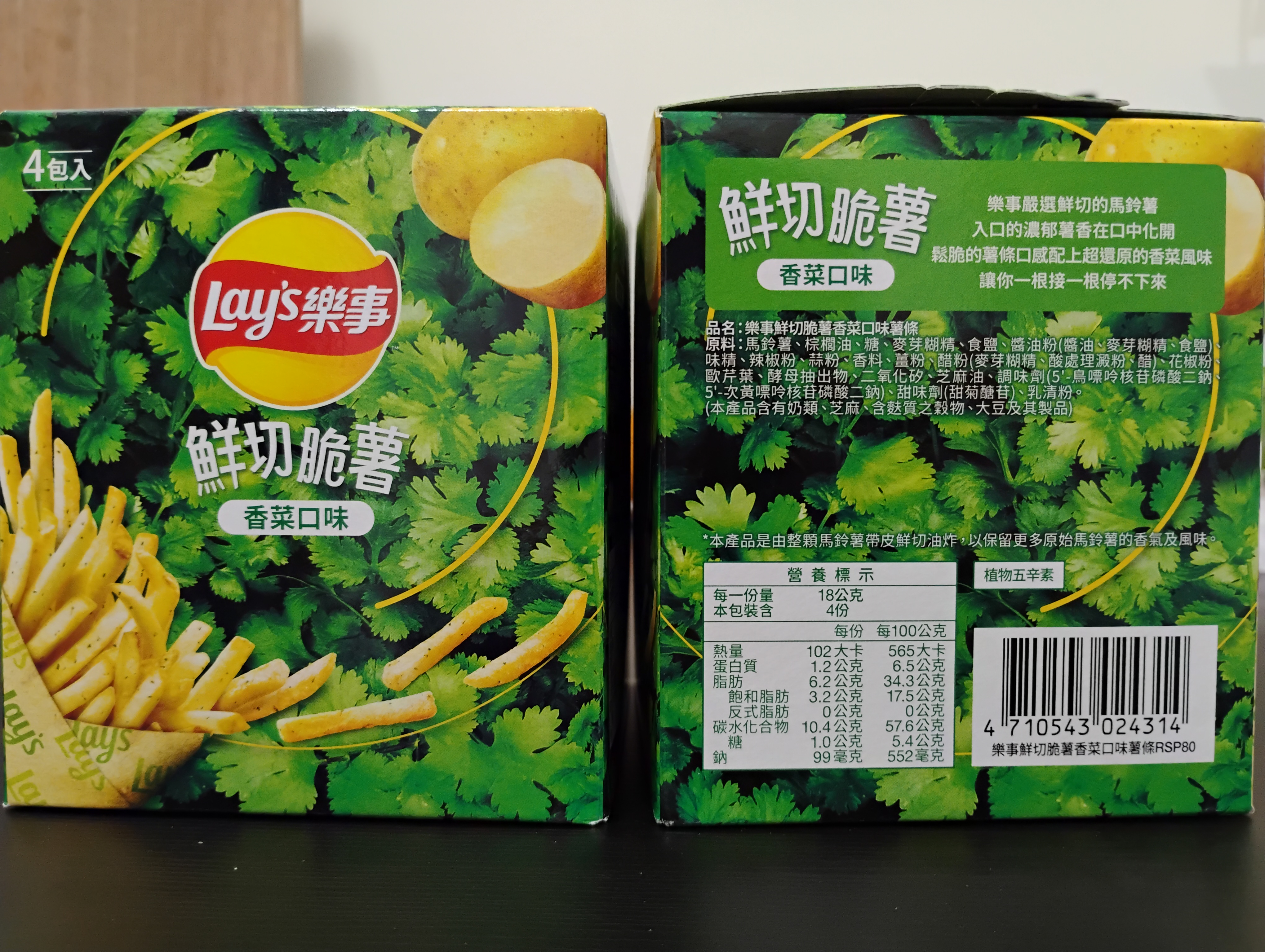 馬鈴薯、棕櫚油、糖、麥芽糊精、醬油粉(醬油、麥芽糊精、食鹽)、食鹽、味精、辣 椒粉、蒜粉、香料、薑粉、氯化鉀、醋粉(麥芽糊精、酸處理澱粉、醋)、花椒粉、歐芹葉、 酵母抽出物、二氧化矽、芝麻油、5'-鳥嘌呤核苷磷酸二鈉、5'-次黃嘌呤核苷磷酸二鈉、甜味 劑(甜菊醣苷)、乳清粉。 4.食品添加物名稱:馬鈴薯、棕櫚油、糖、麥芽糊精、醬油粉(醬油、麥芽糊精、食鹽)、食鹽、味精、辣 椒粉、蒜粉、香料、薑粉、氯化鉀、醋粉(麥芽糊精、酸處理澱粉、醋)、花椒粉、歐芹葉、 酵母抽出物、二氧化矽、芝麻油、5'-鳥嘌呤核苷磷酸二鈉、5'-次黃嘌呤核苷磷酸二鈉、甜味 劑(甜菊醣苷)、乳清粉。