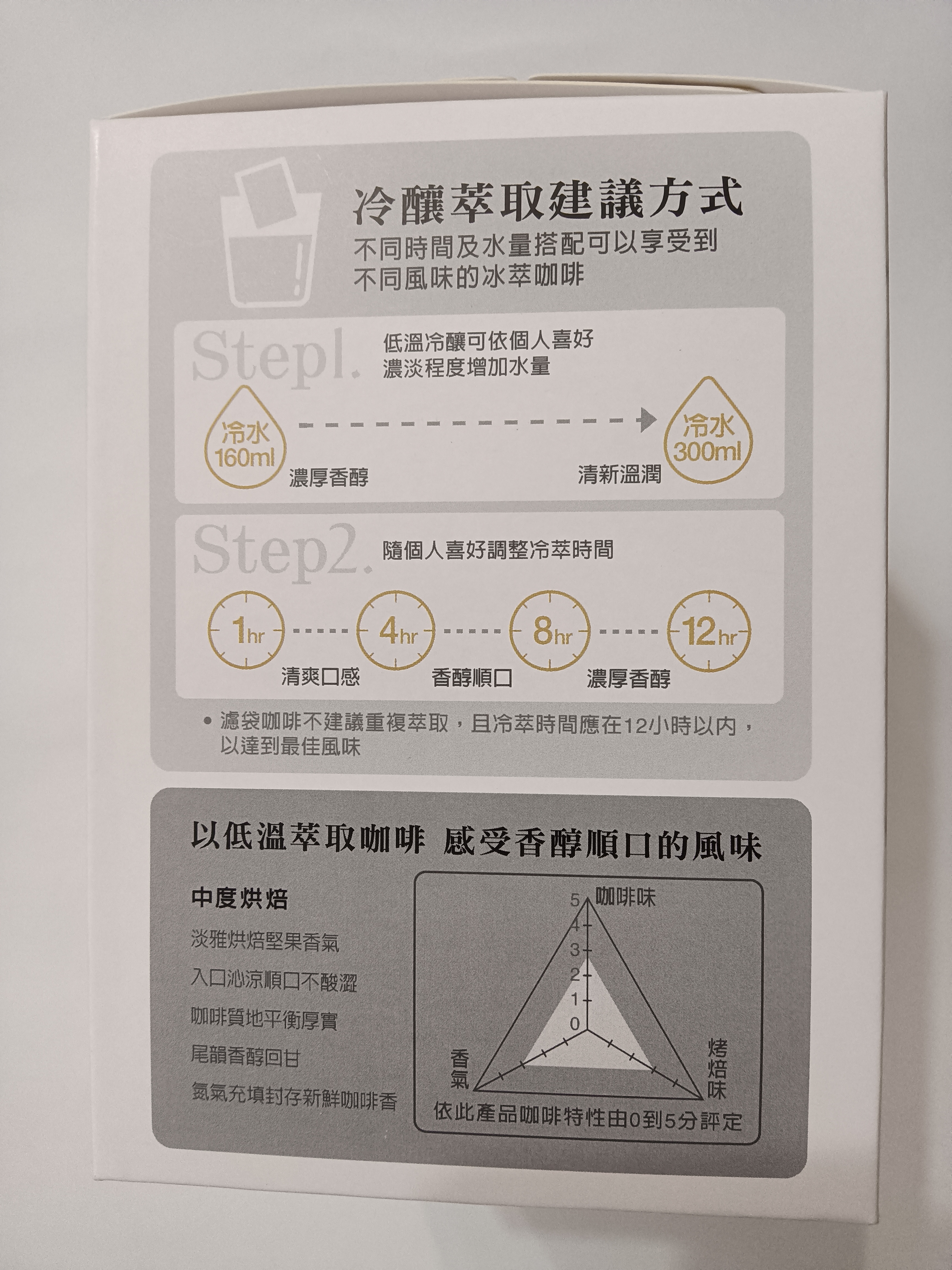 回列表 Nestle 雀巢 金牌冰萃濾袋咖啡 一口飲進冰萃清涼 市價120元 所需等級 一般會員以上 所需學分 50 體驗份數 15 關注人數 3110 申請人數 439 申請截止 品牌業者:Nestie雀巢 負責廠商 台灣雀巢股份有限公司 廠商地址 台北市內湖區瑞光路399號8樓之1 產地 西班牙 試用產品規格 8x10g/盒 食品業者登錄字號 A-120683002-00000-9 投保產品責任險字號 70-107--0842446400001-CGL 心得分享 商品介紹 商品成分 使用方法 注意事項 體驗名單 8.3 Nestle 雀巢金牌冰萃濾袋咖啡 包裝美學 8.1 香醇回甘 8.2 口感柔順 8.3 使用便利 8.8 建議推薦 8.4 心得分享 15則 陳雨恩 鑽石達人 42歲 新竹縣 2021/08/27 對Nestle 雀巢金牌冰萃濾袋咖啡留下評價 9 仔細端詳外盒上冷釀方式的建議後,平常喝單品咖啡為主的我,選擇以300 ml冷萃12小時。前一天晚上放入冰箱,小小地期待隔天一起床就能喝到冰涼的黑咖啡。早上時間一到,我立刻分兩杯,一杯馬上喝,就像一般黑咖啡,主要表現是碳焙味為主,口味較單一。另一杯讓它放回溫20分鐘左右,香氣轉成以果香為主軸,喝起來的味道也更加豐富,前段飽和的果酸味非常明顯,入喉卻是溫和順口,個人覺得果酸的表現很剛好。本來以為十克泡起來會不夠濃,結果出乎預料地令人滿意。外盒形象設計很符合冷萃的結果,簡單且方便就能喝到一杯好咖啡,唯一美中不足的是希望盒子大小可以更符合環保概念,希望能增加包數以充分利用內盒空間。 Winnie J 銀食達人 32歲 臺中市 2021/08/29 對Nestle 雀巢金牌冰萃濾袋咖啡留下評價 8 最近咖啡濾泡包開始掀起一股熱潮,不必有專業的沖煮器具、對於水溫也沒有太大要求,對於咖啡小白來說特別友善。這次試用新品:Nestle 雀巢 金牌冰萃濾袋咖啡外盒即有建議添加的水量及萃取時間,可以隨個人喜好的濃淡度進行調整。【本次體驗沖泡方式】一包10g的濾泡包放入可密封的瓶中,加入160g的常溫水,睡前放入冰箱,隔天早上即可享用,飲用前可加入適量冰塊,一早用來醒腦可是不錯的選擇。【試喝紀錄】整體平衡乾淨,口感醇厚滑順,風味部分有糖炒栗子、堅果、紅糖的調性,適合不喜歡有酸味的受眾,若是使用牛奶來浸泡,相信口味也會不錯。 林哲因 金食達人 39歲 臺北市 2021/08/25 對Nestle 雀巢金牌冰萃濾袋咖啡留下評價 8 首先,商品的外盒十分貼心,將泡製方式及時間水量比例標示的十分清楚,讓飲用者可依自己的喜好做調整及改變。拆開包裝還沒泡製前,拿出濾袋就先聞到陣陣咖啡烘焙香,屬於不會過重的舒服香氣。這次我使用約250ml的冷水,沖泡後放入冰箱約4小時。四小時後,第一口有淡淡的咖啡香,喝完後口中尾韻浮現了輕盈的可可香氣,不會負擔過大,也不會苦澀難以下嚥,十分清爽。非常適合在炎熱的夏天,來一杯清涼的雀巢冰萃咖啡。建議泡製濃醇口感再加冰塊,才不至於將咖啡本身的特色沖淡。 鄭宇媗 金食達人 27歲 臺北市 2021/08/26 對Nestle 雀巢金牌冰萃濾袋咖啡留下評價 9 此款咖啡包裝就像茶包一樣,放進去開水、冷藏一定時間後即可飲用,相當的方便。且相較於平常使用的濾掛式咖啡,在處理使用過的濾袋時,此款比較不會有咖啡渣沾手的問題。而產品包裝也有推薦不同的水量及浸泡時間,以及使用這些泡法能泡出怎樣的風味,相當貼心。本次是將咖啡濾袋浸泡於300毫升的水中八小時,飲用起來相當順口,不會太酸或是有苦澀的味道,同時也能夠感受到咖啡的香氣。總體來說,這是一款相當適合夏季飲用的飲品,之後會還會再嘗試不同的泡法。 Karen Chan 金食達人 36歲 臺北市 2021/08/26 對Nestle 雀巢金牌冰萃濾袋咖啡留下評價 7 開2包泡600cc冷開水,冰鎮8小時後試飲風味整體來說沒有太強酸味苦味,香氣普通,口感順口,平常沒有習慣喝咖啡的人也可以嘗試。品牌風味副標”堅果香韻 中度烘培”,並沒有嚐到太強的堅果味,或許是個人感官問題。包裝外觀普通,外盒有加水、浸泡製作不同風味的指引,但在內包裝小袋外沒有特別標註說明。總評分7分,中規中矩的口味、包裝、價格適合週一到五上班、工作前一晚準備好,隔天早上配早餐或是帶到公司去喝,配茶點應該也不錯,不會太搶點心的味道,適合搭配用,平時沒有喝咖啡的人也可嘗試的口味。 Yesica Shih 金食達人 47歲 高雄市 2021/08/26 對Nestle 雀巢金牌冰萃濾袋咖啡留下評價 10 一般咖啡無論手沖、或是咖啡機沖泡,都得沖出熱咖啡再冷卻,就算便利的膠囊咖啡,也得如此,不然就得花昂貴的機器喝一杯等待許久的冰滴咖啡。現在雀巢金牌冰萃濾袋咖啡,讓喜歡喝冰咖啡的人,有了便利的方法;前一夜冰鎮就有好喝的咖啡,有不會有被冰塊稀釋香醇的咖啡,還可以依自己喜歡的濃度去調整冰鎮時間。 Jennifer 金食達人 57歲 新北市 2021/08/29 對Nestle 雀巢金牌冰萃濾袋咖啡留下評價 8 現在很多人每天早上都從一杯咖啡開始,但是現代人的生活大多都很忙碌,根本沒時間可以悠閒的沖泡一杯現煮咖啡,這時候冷萃咖啡就是一個方便的選擇,只要前一天泡在冷開水中再放入冰箱,第二天就有香醇可口的咖啡了,實在很便利,這款咖啡單喝不加糖不放奶就很順口,不會過苦也不會過酸,但保留咖啡的香醇,很適合喜歡咖啡又怕喝到酸苦的咖啡人。 黃琬庭 金食達人 37歲 桃園市 2021/08/30 對Nestle 雀巢金牌冰萃濾袋咖啡留下評價 9 包裝寫冷萃1-12小時,水量100-300毫升。因為是冷萃需要比較久的時間,我是前一天就放冰箱,隔