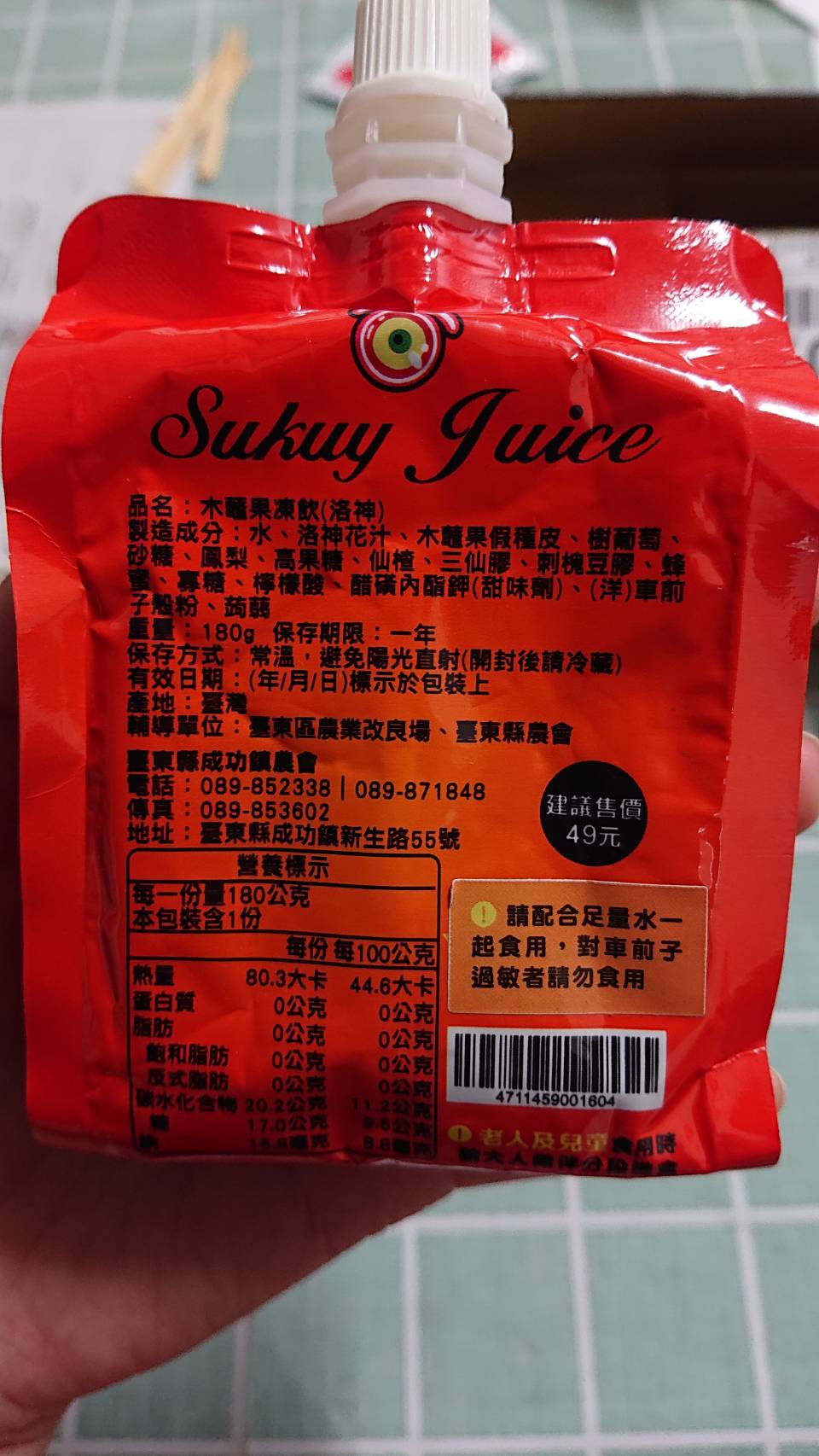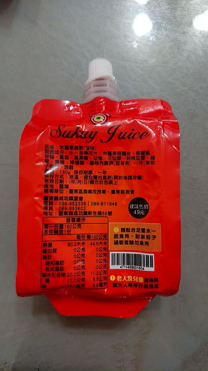 回列表 成功鎮農會 木虌果凍飲 來自天堂的果實 營養滿分超高cp值的最佳選擇 市價135元 所需等級 一般會員以上 所需學分 50 體驗份數 15 關注人數 1520 申請人數 298 申請截止 品牌業者:成功鎮農會 負責廠商 成功鎮農會 廠商地址 台東縣成功鎮中華路139號 產地 台灣 試用產品規格 3包,180g/包 食品業者登錄字號 V-193502400-00002-4 投保產品責任險字號 新光 130507AKP0000296 心得分享 商品介紹 商品成分 使用方法 注意事項 體驗名單 8.2 成功鎮農會 木虌果凍飲 酸甜滋味 8.5 包裝美學 6.8 攜帶方便 9.4 建議推薦 8.2 心得分享 15則 陳昭安 鑽石達人 34歲 雲林縣 2023/03/18 對成功鎮農會 木虌果凍飲留下評價 9 很開心能參與這次食驗室-「成功鎮農會 木虌果凍飲」的試吃體驗,*外包裝:有明顯標示口味、熱量以及商品成分。*商品成分內容物為:水、木虌果假種皮、洛神汁、砂糖、赤藻糖醇、洛神香料、鹿角菜膠、三仙膠、刺槐豆膠、維生素C、氯化鉀、檸檬酸、檸檬酸鈉、醋磺內脂鉀、蔗糖素。*顏色:紅色不濃稠。*使用方式:直接吸飲,味道微酸酸甜甜,洛神味道,如果天氣熱也很適合放冰箱,冰冰涼涼的,即開即飲,戶外登山健行郊遊很方便攜帶,大人小孩愛喝。 陳虹妃 金食達人 46歲 新北市 2023/03/24 對成功鎮農會 木虌果凍飲留下評價 9 日常少見的木虌果是來自花東的特有產物,這次能獲得試用體驗真的很難得,因為平常不太容易買到這樣的商品,剛好也款跟家裡的孩子做個飲食教育,認識一下這個特別的植物。之前在花蓮吃木虌果是用來煮湯,這次是喝果凍飲,算是一個很新奇的體驗!木虌果外表跟果肉是亮橘色,這個果凍飲可能因為保存的關係,所以倒出來後發現有點暗橘色,喝起來比較像濃稠的果汁,沒有果凍的口感,但是酸酸甜甜的味道也算是奇妙,有點像番茄汁加胡蘿蔔汁的味道,也不算難喝,但是看在茄紅素很高的份上,還是很值得推薦喔~ 洪楚喬 金食達人 32歲 臺中市 2023/03/19 對成功鎮農會 木虌果凍飲留下評價 9 今天試飲:木虌果凍飲洛神口味成份有:水,洛神花汁,木虌果假種皮,樹葡萄,砂糖,鳳梨,高果糖,仙楂,三仙膠,蒟蒻等成分組合而成的凍飲料。試飲過程:加入冰塊與開水稀釋,在這微熱的午後來上一杯真是解渴,有這酸梅子湯的感覺,芒果般的果凍,清涼又有勁,精神狀態變得舒服愉悅。很適合午後的時光,來上一杯,讓下午更有活力。 陳雨恩 鑽石達人 62歲 新竹縣 2023/03/20 對成功鎮農會 木虌果凍飲留下評價 10 常溫下凍飲內容物是偏液態,如果直接喝會覺得太濃,甜度偏高容易膩,建議一定要邊喝凍飲邊喝水,或是直接倒入碗中,依照自己的喜好加入開水稀釋。好奇木虌果本身是什麼味道?甜味是為了調和木虌果假種皮的澀味嗎?後來試著先冰過再品嚐,發現在冰涼的狀態下喝起來就有果凍口感,入口即化,變得比較好喝,仙渣洛神搭配起來很開胃,一包就能喝到豐富的茄紅素和胡蘿蔔素,營養價值非常高。 Sophia 金食達人 39歲 嘉義市 2023/03/23 對成功鎮農會 木虌果凍飲留下評價 8 看到食驗室成功農會這個木虌果體驗,覺得太酷了,是一個沒聽過的果實,沒喝過很想喝喝看。木虌果是100%台灣原生種,被譽為「天堂來的果實」,小時候看海賊王,有惡魔果實,沒吃過惡魔果實,嚐嚐天堂果實的滋味也是很可以~木虌果果凍飲 - 洛神口味,加了洛神、山楂,喝起來酸酸甜甜,滿清爽的。小包裝,方便攜帶,就口喝設計,隨開隨喝,很方便。很特別的是,本來倒在杯子,是濃稠的果汁,冰在冰箱後,就會變果凍飲,個人覺得冰冰的,比較好喝。 HoYun 金食達人 61歲 新竹市 2023/03/19 對成功鎮農會 木虌果凍飲留下評價 7 「木虌果」俗名刺苦瓜,是葫蘆科苦瓜屬的草本植物,由於它的黑色種子形狀很像一隻一隻的小鱉而得名。中醫古籍記載,成熟後的種子具有微毒性,經乾燥等加工處理後可作為中藥,稱為木鱉子,用於外敷,可治療腫瘡囊腫。而整顆木虌果的果實是長橢圓形,表面有許多軟刺,果實成熟時會由綠轉紅,台灣原住民和東南亞一代的居民都會取其果肉入菜食用,越南傳統作法是將木虌果和煮熟的米飯混合著吃,也常成為當地小孩、孕婦和體質虛弱者的營養補充品。木虌果的營養豐富,早就被譽為「來自天堂的水果」,不過因為在國內的普及度仍不高,台東農改場近期送驗分析,發現木虌果有N大獨特之處:*護心、防癌,茄紅素是番茄的25倍*顧眼睛、防心血管疾病,β-胡蘿蔔素是胡蘿蔔的3倍*富含膳食纖維,增進腸道健康基於以上網路訊息所稱種種好處,發現有試吃,當然要給它報名試試~來自台東成功鎮農會的木虌果凍飲,成分含有:水、木虌果假種皮、洛神汁、砂糖、赤藻糖醇、洛神香料、鹿角菜膠、三仙膠、刺槐豆膠、維生素C、氯化鉀、檸檬酸、檸檬酸鈉、醋磺內脂鉀、蔗糖素。來自天堂的果實,營養滿分,果汁濃綢,但是本人我原本就不愛濃綢口感,加了冰塊和冷開水稀釋後,才把它喝完,口味也淡掉許多。 宋惠菁 金食達人 49歲 臺南市 2023/03/20 對成功鎮農會 木虌果凍飲留下評價 9 外觀並不特別,但是大大的木鱉果三個字就很能引起好奇和注意力;吸飲式包裝相當方便,不佔空間而且沒喝完還可以鎖回去。雖然說是果凍飲,但沒有果凍的口感,而是濃稠的液體,比果凍型態容易吸飲,比較不會殘留浪費。整體口味酸酸甜甜、濃稠滑口,帶有淡淡木鱉果特殊的油味但不影響適口性;成份還蠻天然,價格上雖然比一般口凍