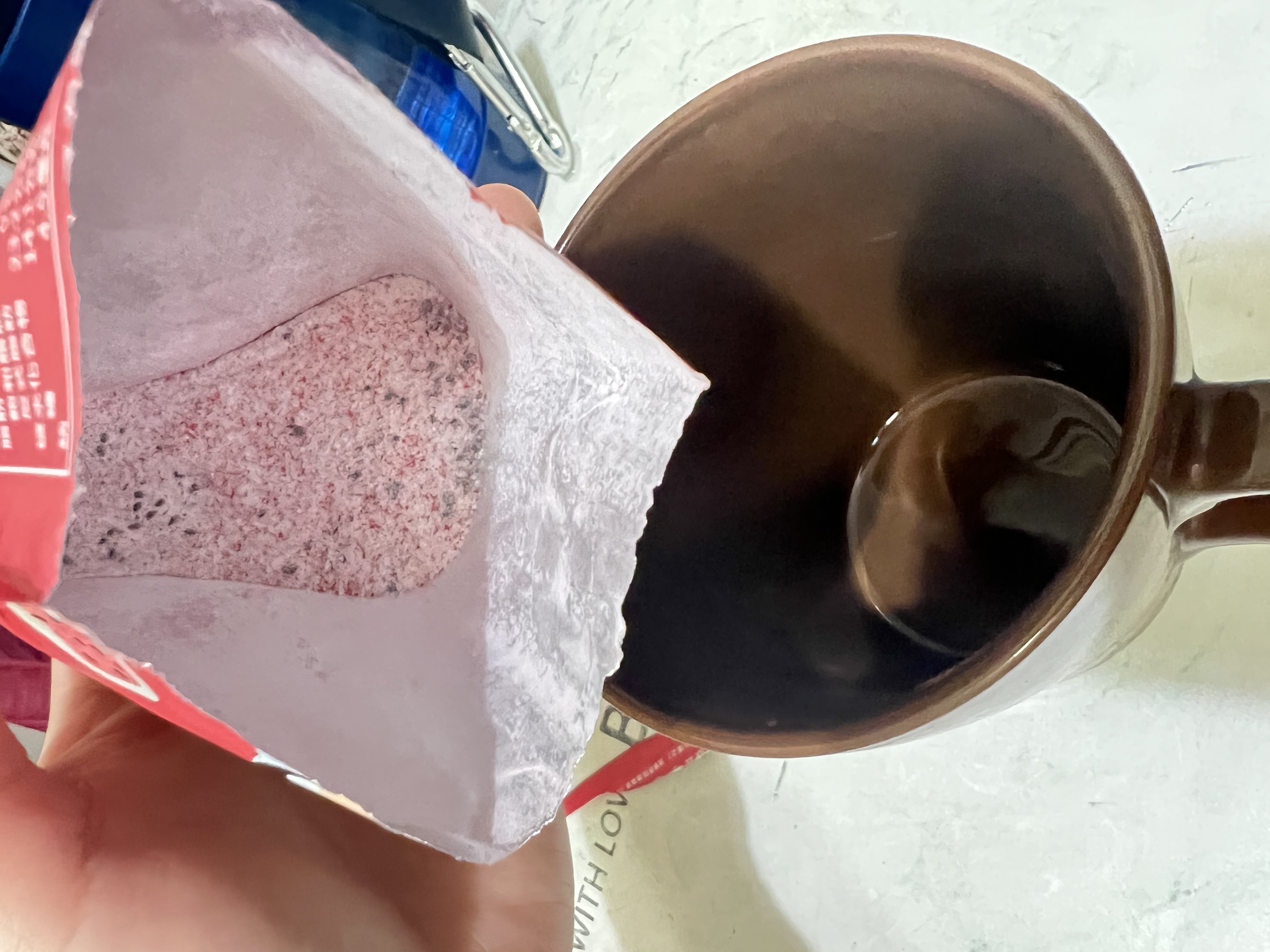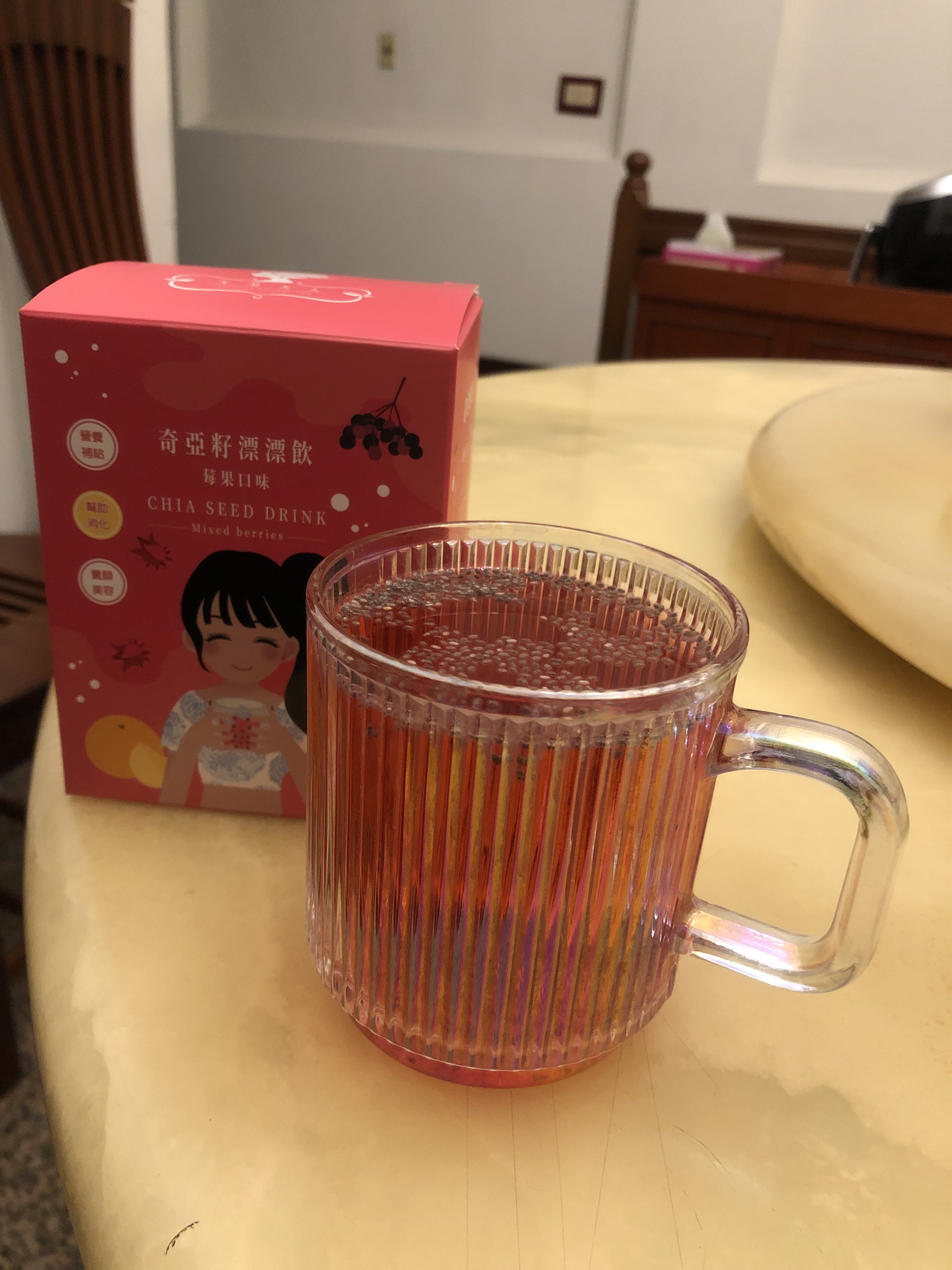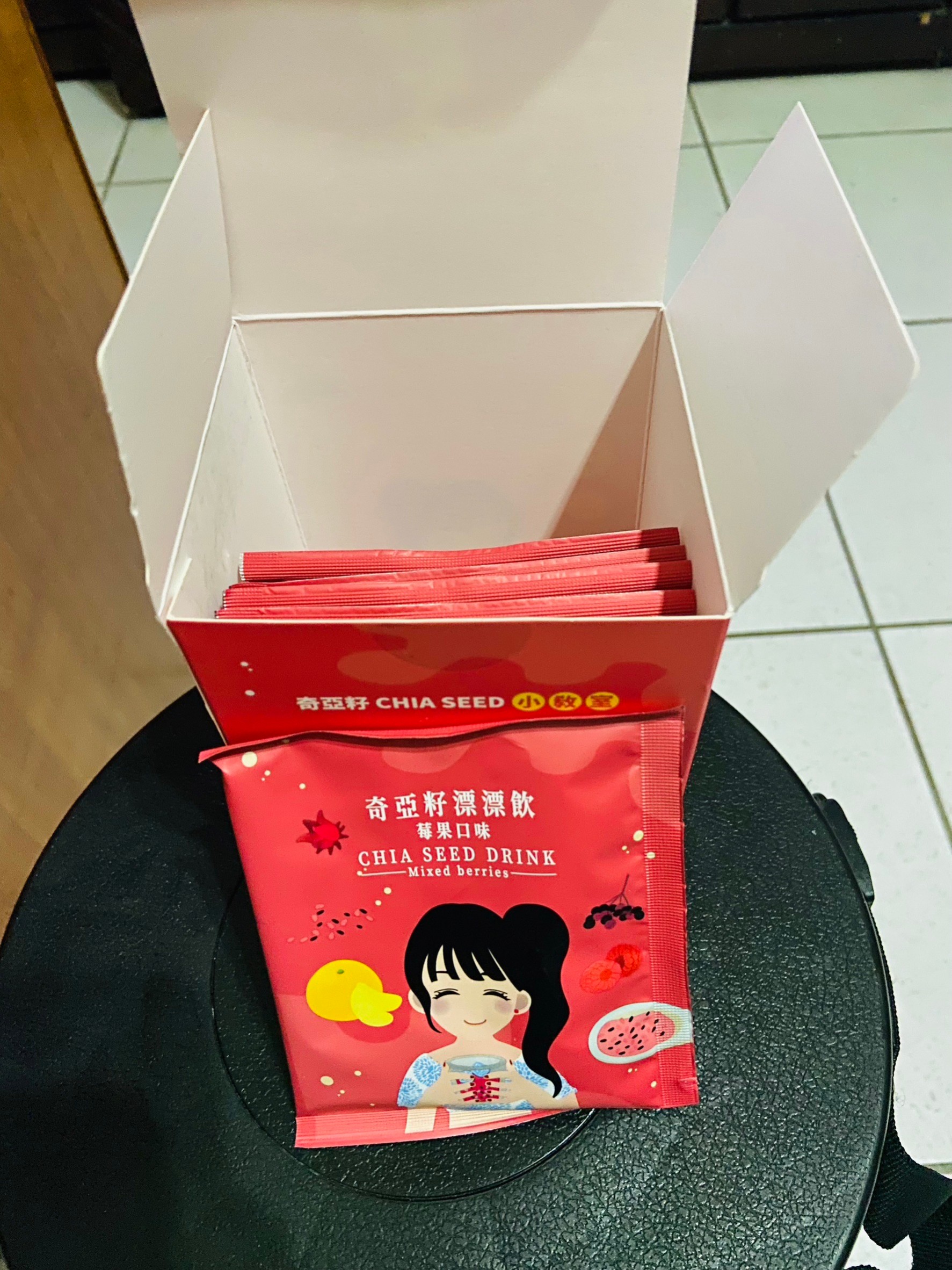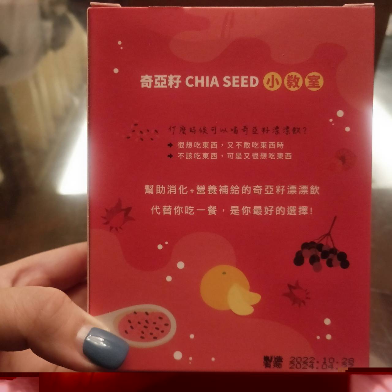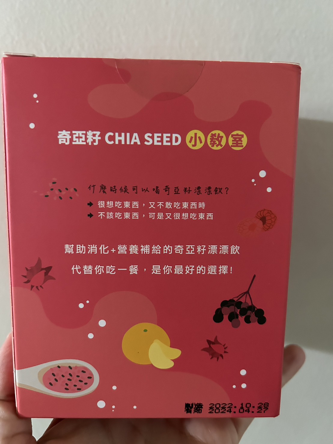 麥芽糊精、砂糖、綜合莓果粉(蔗糖、玫瑰果抽出物、洛神花抽出物、接骨木莓抽出物、檸檬皮抽出物、柑橘抽出物、檸檬酸、檸檬酸鈉、二氧化矽)、奇亞籽(鼠尾草種子)、覆盆莓果汁粉(砂糖、麥芽糊精、無水檸檬酸、阿拉伯膠、DL-蘋果酸、覆盆莓濃縮汁、檸檬酸鈉、辛烯基丁二酸鈉澱粉、酒石酸、食用紅色四十號、香料)、DL-蘋果酸(羥基丁二酸)