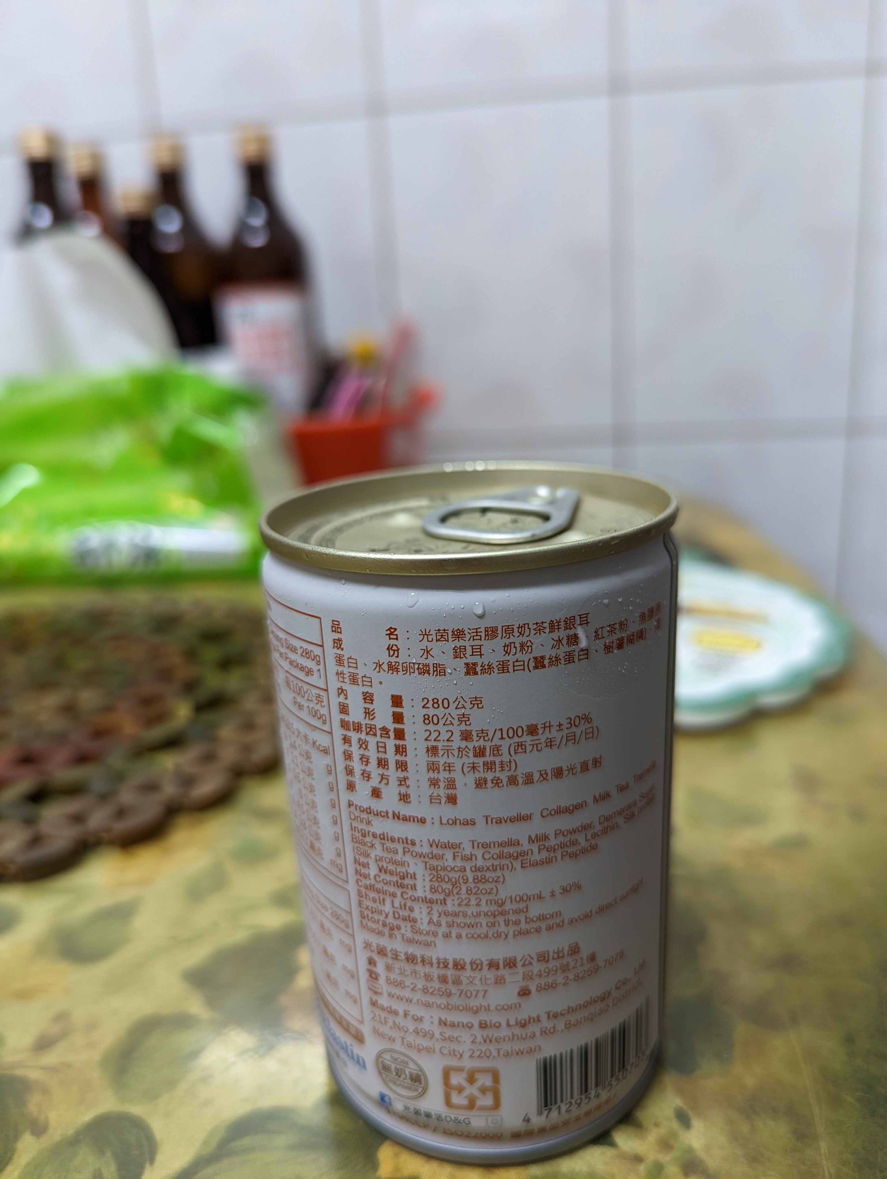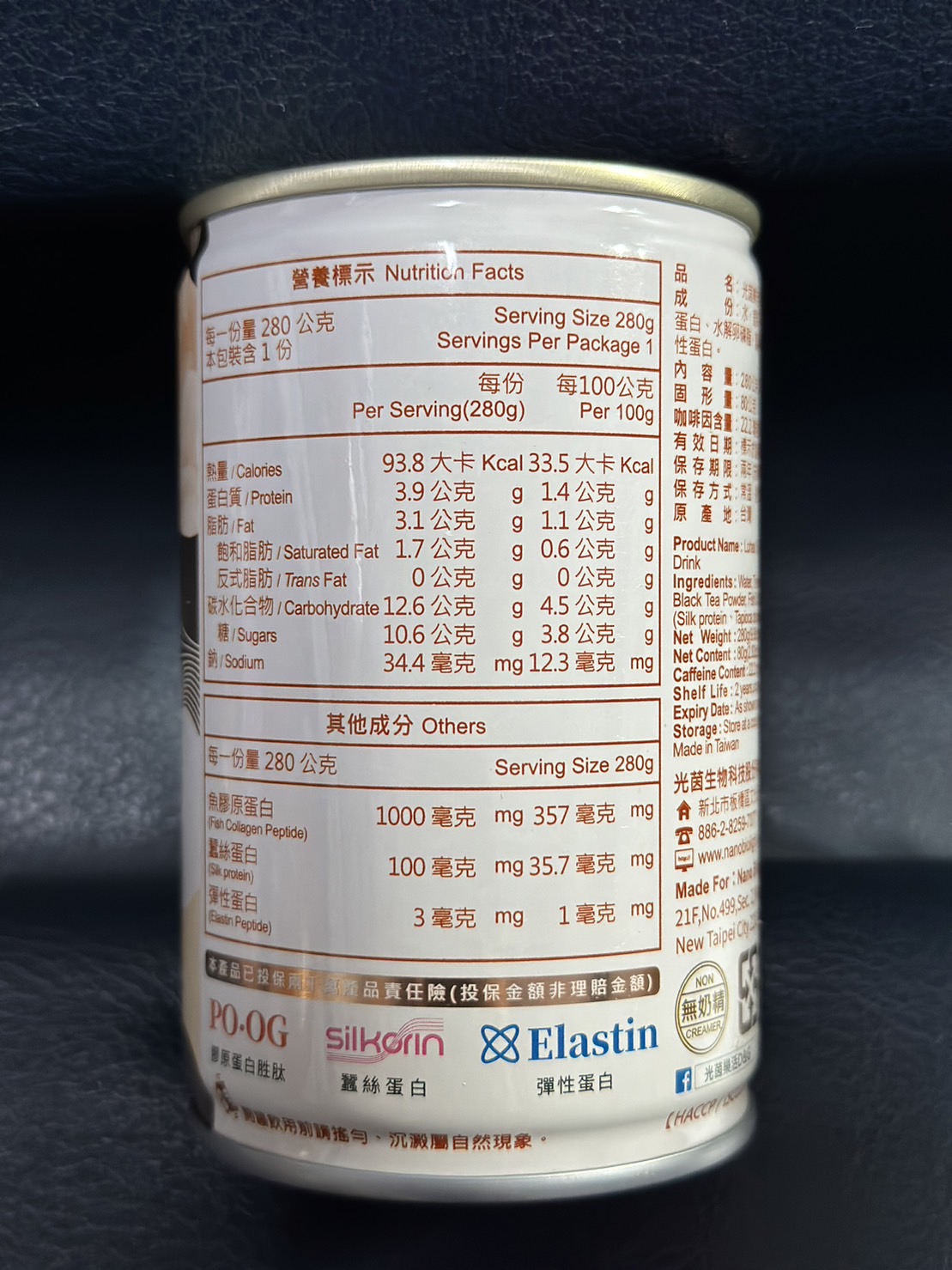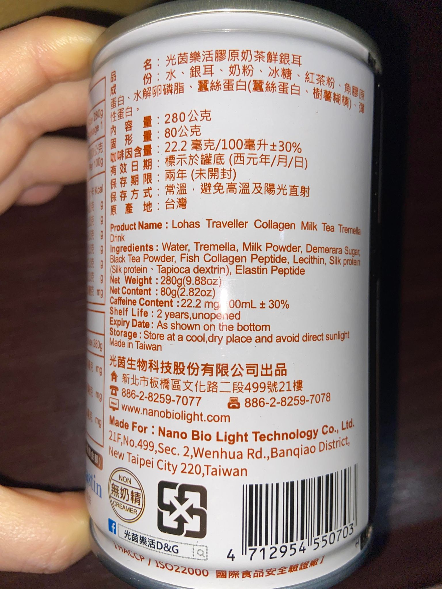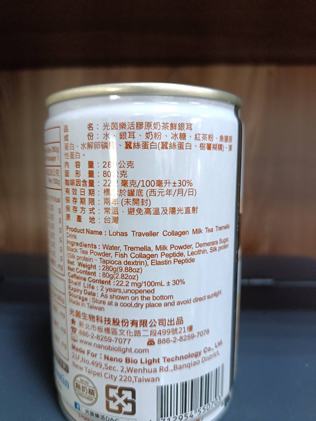 回列表 光茵樂活 膠原奶茶鮮銀耳 添加創新成分 低糖低熱量 市價 120元(免費申請) 所需等級 一般會員以上 所需學分 50 體驗份數 15 關注人數 1654 申請人數 304 申請截止 品牌業者:光茵生物科技股份有限公司 負責廠商 光茵生物科技股份有限公司 廠商地址 新北市板橋區文化路2段485號15樓 產地 台灣 試用產品規格 280公克/罐 食品業者登錄字號 F-129103482-00001-3 投保產品責任險字號 富邦產物產品責任險0510第19AML0000767 心得分享 商品介紹 商品成分 使用方法 注意事項 體驗名單 8.9 光茵樂活 膠原奶茶鮮銀耳 Q彈滑順 9.0 營養豐富 8.7 包裝美學 8.3 方便食用 8.7 推薦建議 8.7 心得分享 15則 彭苡琳 金食達人 33歲 桃園市 2023/06/27 對光茵樂活 膠原奶茶鮮銀耳留下評價 10 很喜歡外包裝的設計,美觀又有質感!易開罐的設計也很方便,打開後可以直接拿湯匙食用。飲品聞起來有淡淡的茶香味,多了白木耳的膳食纖維,口感是比較偏濃稠的,很驚艷的是甜度雖然低,但因為茶香濃郁,喝起來還是很有味道,白木耳也能滿足咀嚼愛好者的需求,單喝就很棒!有嘗試加入鮮奶增添風味,但搭配全脂的乳香有點太濃郁,或許低脂的會好一些~整體來說覺得是健康飲品的好選擇! lydia 金食達人 43歲 新北市 2023/06/28 對光茵樂活 膠原奶茶鮮銀耳留下評價 10 膠原奶茶罐裝攜帶很方便,可以做為外出的小零食。滿滿的一罐,他的銀耳是大塊大塊的,不是一般市售看不見顆粒的銀耳露,而且吃的到軟Q的口感。奶茶味道濃郁,混著銀耳膠質的的口感,但沒有一般銀耳露膠質那麼濃郁,若以手搖杯的甜度來說,大概介於1~3分糖間,低甜度的味道很喜歡。 Steven Huang 金食達人 33歲 苗栗縣 2023/07/02 對光茵樂活 膠原奶茶鮮銀耳留下評價 9 這次很開心可以試吃光茵樂活的膠原奶茶鮮銀耳。之前就有在一些團購網中看到別人推薦,所以這次可以試吃格外的開心。由於是罐頭包裝,所以保存期限大約可以放置兩年。第一次吃到銀耳搭配奶茶的口味,吃起來還滿搭的。奶茶的甜度大約一分糖,不會很甜,而且也不是廉價沖泡奶茶的味道,滿好喝的。銀耳的分量很滿多的,所以飽足感也很夠。 CHEN DENG LONG 鑽石達人 66歲 臺南市 2023/06/28 對光茵樂活 膠原奶茶鮮銀耳留下評價 7 本次試吃產品:光茵樂活 膠原奶茶鮮銀耳外罐蠻漂亮的,看起來小小一罐,沒想到還挺有份量的。但是缺點是沒有上蓋,所以必須一次吃完。內容物的蠶絲蛋白很令人好奇,裡面可以看到白木耳,雖說有加冰糖,但不怎麼甜,比較像無糖的感覺,木耳加奶茶的組合是第一次喝到,感覺挺新奇的。但是除了健康之外,口味的部分個人覺得不是很適應。如果健康食品也能兼顧美味就好了,不知道是不是因為健康才做得不甜。 楊乃芬 鑽石達人 64歲 臺南市 2023/06/28 對光茵樂活 膠原奶茶鮮銀耳留下評價 9 此產品內含阿薩姆紅茶、鮮乳及銀耳,又添加膠原蛋白、蠶絲蛋白及彈性蛋白,因低糖所以吃起來不會太甜,又有奶茶的香味,銀耳很Q不會爛爛的,有口感,因添加一些蛋白及銀耳是天然食材。所以,整體食補,對於幫助排便,維持消化道健康及溫潤養生,養顏美容,提升保護力有一定的功效。 吳瓊蕙 金食達人 61歲 臺南市 2023/06/28 對光茵樂活 膠原奶茶鮮銀耳留下評價 10 平日我們都超愛喝奶茶,不管是夏天來一杯冰冰涼涼的奶茶或冬天握著一杯濃郁溫熱的奶茶都是一種享受,但是奶茶熱量真的超高的,對想控制體重的人是一種煎熬,現在推出這款膠原奶茶鮮銀耳,讓愛喝奶茶的我們有福了!熱量不到 100 大卡,無奶精添加的鮮奶茶天天喝也沒有負擔。又添加日本專利膠原蛋白、彈性蛋白、蠶絲蛋白,既能滿足奶茶的香醇濃郁口感,又有銀耳的飽足感,對愛美想減肥的人在炎熱的夏天,是很棒的選擇。尤其冰鎮後口感更好,也可拿來替代午餐喔!特推~光茵樂活 膠原奶茶鮮銀耳,會考慮買來吃的! 林杰 鑽石達人 36歲 臺北市 2023/06/28 對光茵樂活 膠原奶茶鮮銀耳留下評價 8 這款膠原奶茶鮮銀耳我第一次喝到,熱量不到100卡,裡頭加了我愛的白木耳,想吃甜點時拿它出來,健康又能滿足我想吃的慾望,裡面給的白木耳也很多,包裝很精美,鐵鋁罐易開罐設計,方便我們即開即喝,很衛生,而且常溫保存就好非常的方便,原來白木耳+奶茶也很搭。 邱郁婷 金食達人 38歲 臺中市 2023/06/30 對光茵樂活 膠原奶茶鮮銀耳留下評價 8 早餐時間匆匆忙忙,趕在上班前吃點當季最新鮮水果配上營養滿分的膠原奶茶鮮銀耳奶茶,比起早餐店方便營養健康許多! 偶爾放縱自己早餐喝奶茶,礙於熱量高又沒營養,平時都是忍耐著慾望每天喝無糖豆漿!今天有機會嘗試光茵樂活膠原奶茶鮮銀耳, 添加紐西蘭奶粉與紅茶粉以及銀耳配上膠原蛋白 ,居然將銀耳和鮮奶茶搭在一起,銀耳滑潤的口感配上奶茶非常特別,銀耳也很有存在感完全沒辦法用吸管喝,非常適合當成甜品食用,熱量超低不到100大卡感覺營養美味又沒負擔。 柯慧瑩 金食達人 41歲 高雄市 2023/07/01 對光茵樂活 膠原奶茶鮮銀耳留下評價 8 有別於一般銀耳飲品大都是以加冰糖熬煮作為呈現,這款則是以茶味較濃的奶茶作為口味的呈現。夏天可以冰入冰箱之後再做飲用,產品本身為低糖低熱量飲品,銀耳本身的特性讓整體喝起來更滑順好入口。銀耳的量蠻多的,感覺很不錯。甜度的部分個人希望可以再加一點點會更好。適合當嘴有一點饞但又怕吃多會胖時的小點心! Joe Ho 金食