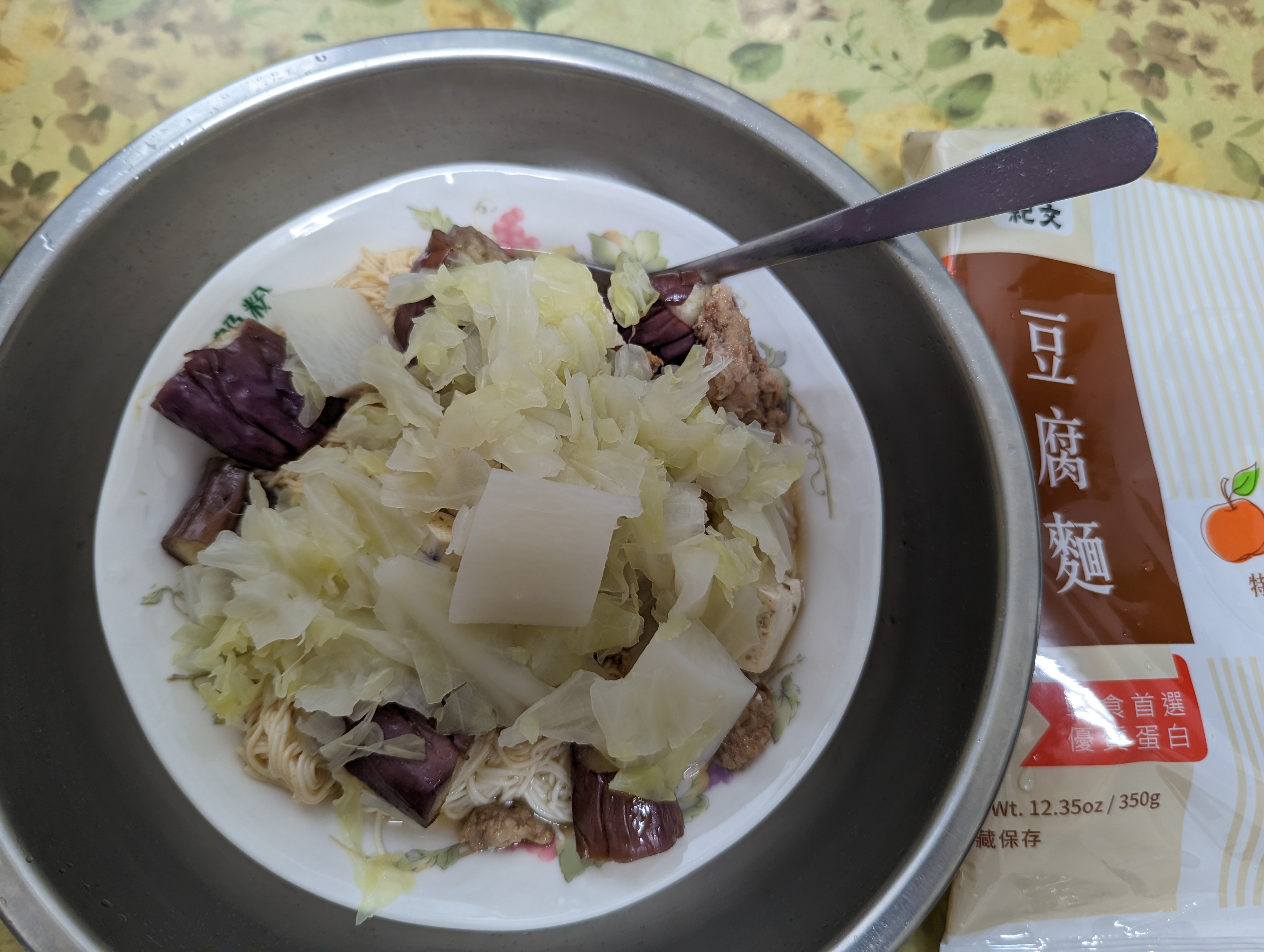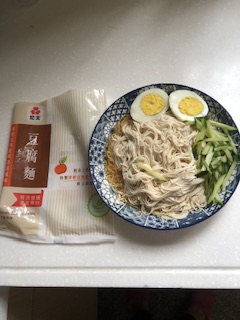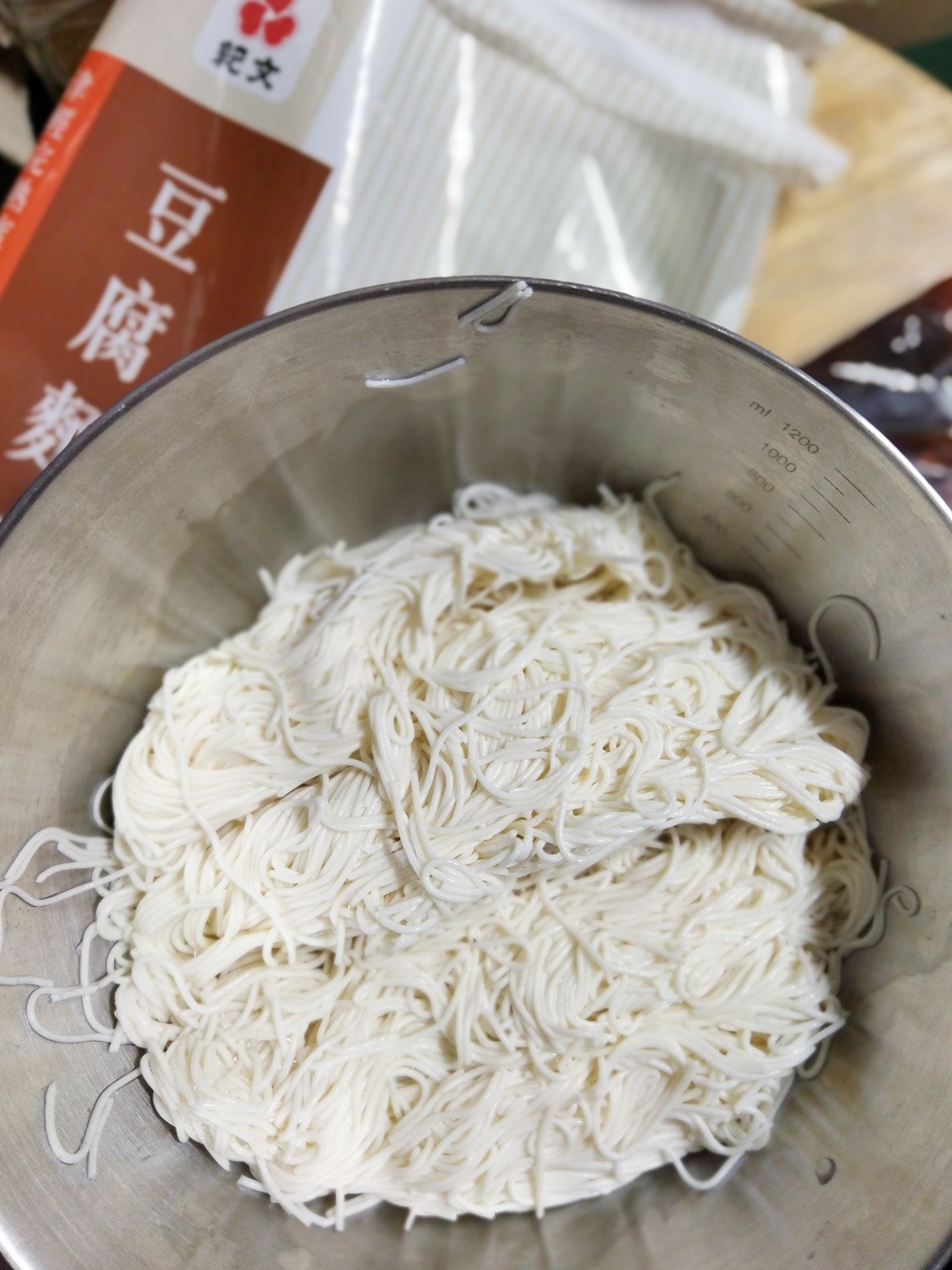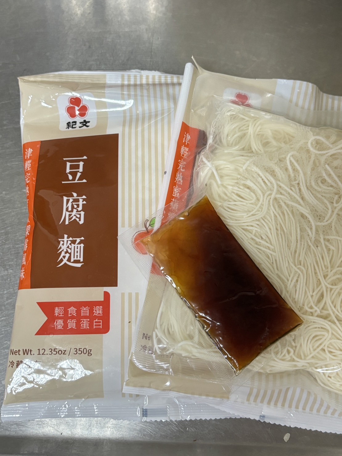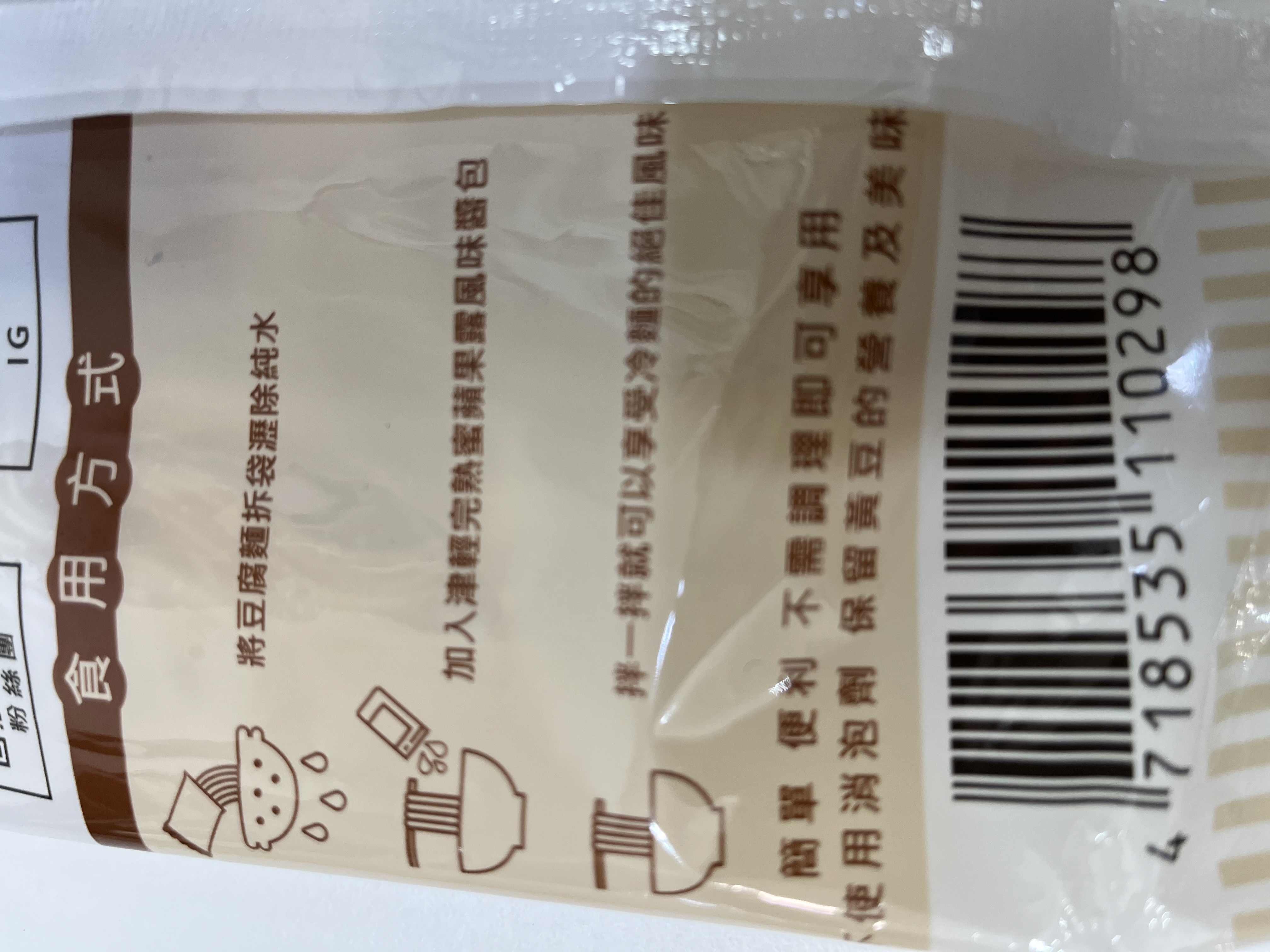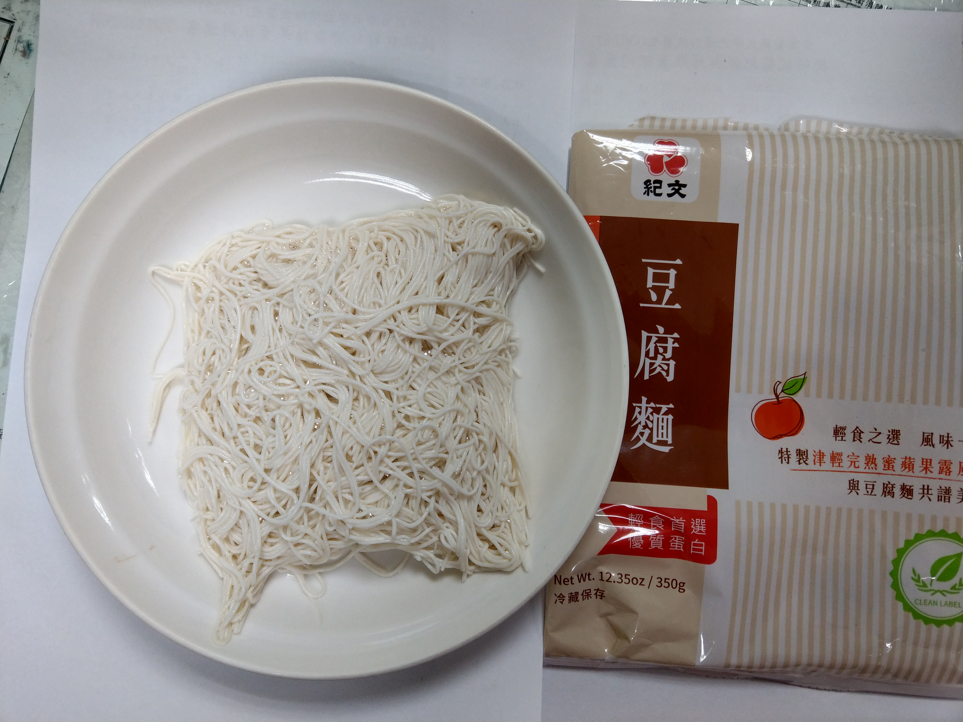 豆腐麵成份:水、大豆(非基因改造)、馬鈴薯澱粉、乙化磷酸二澱粉、海藻酸鈉、玉米糖膠