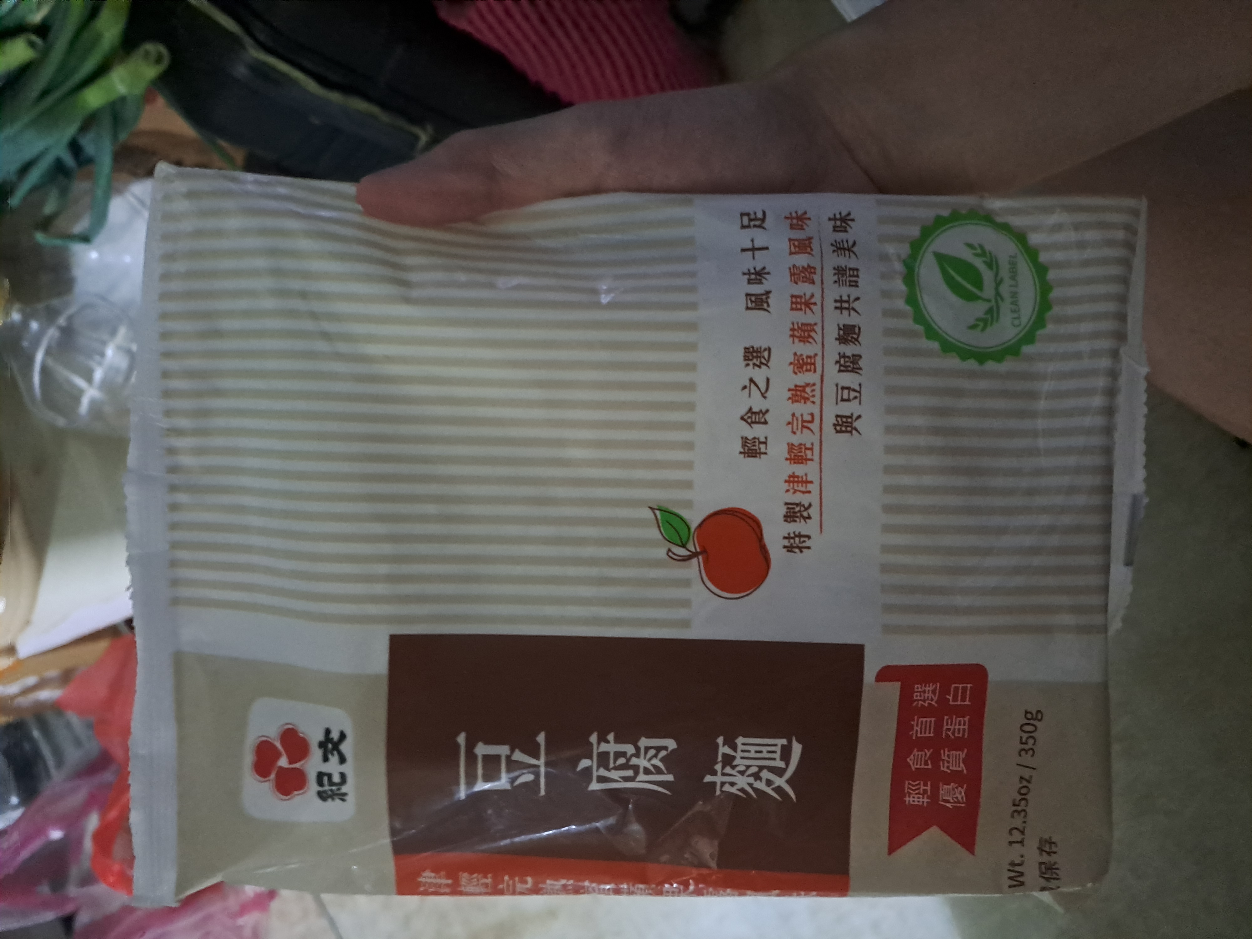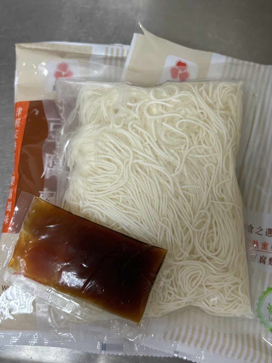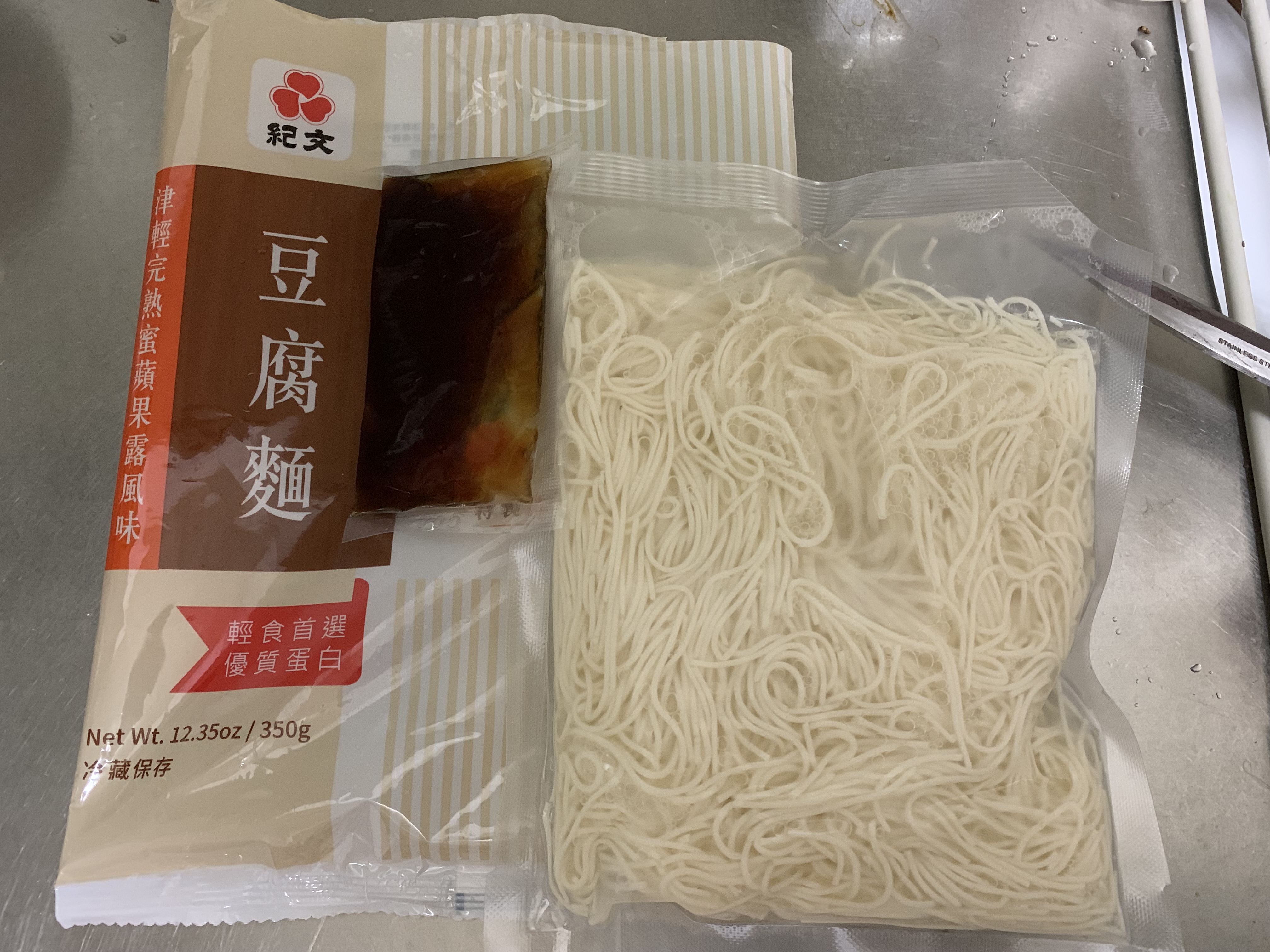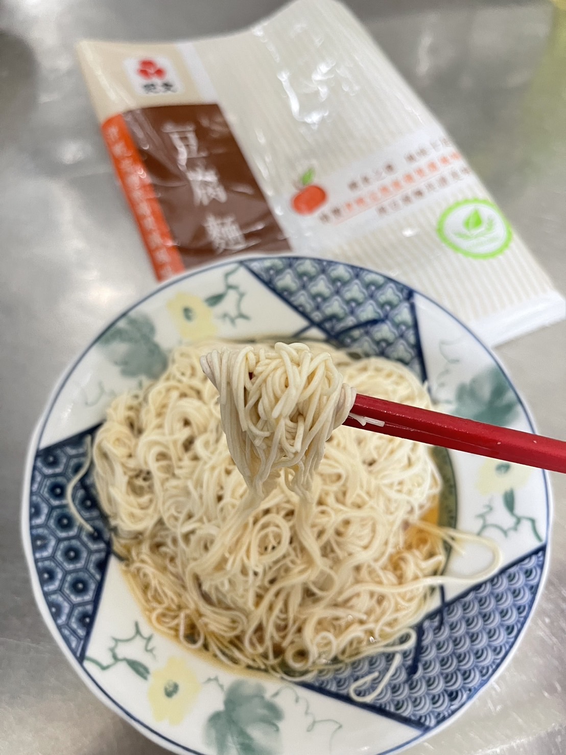 豆腐麵成份:水、大豆(非基因改造)、馬鈴薯澱粉、乙化磷酸二澱粉、海藻酸鈉、玉米糖膠