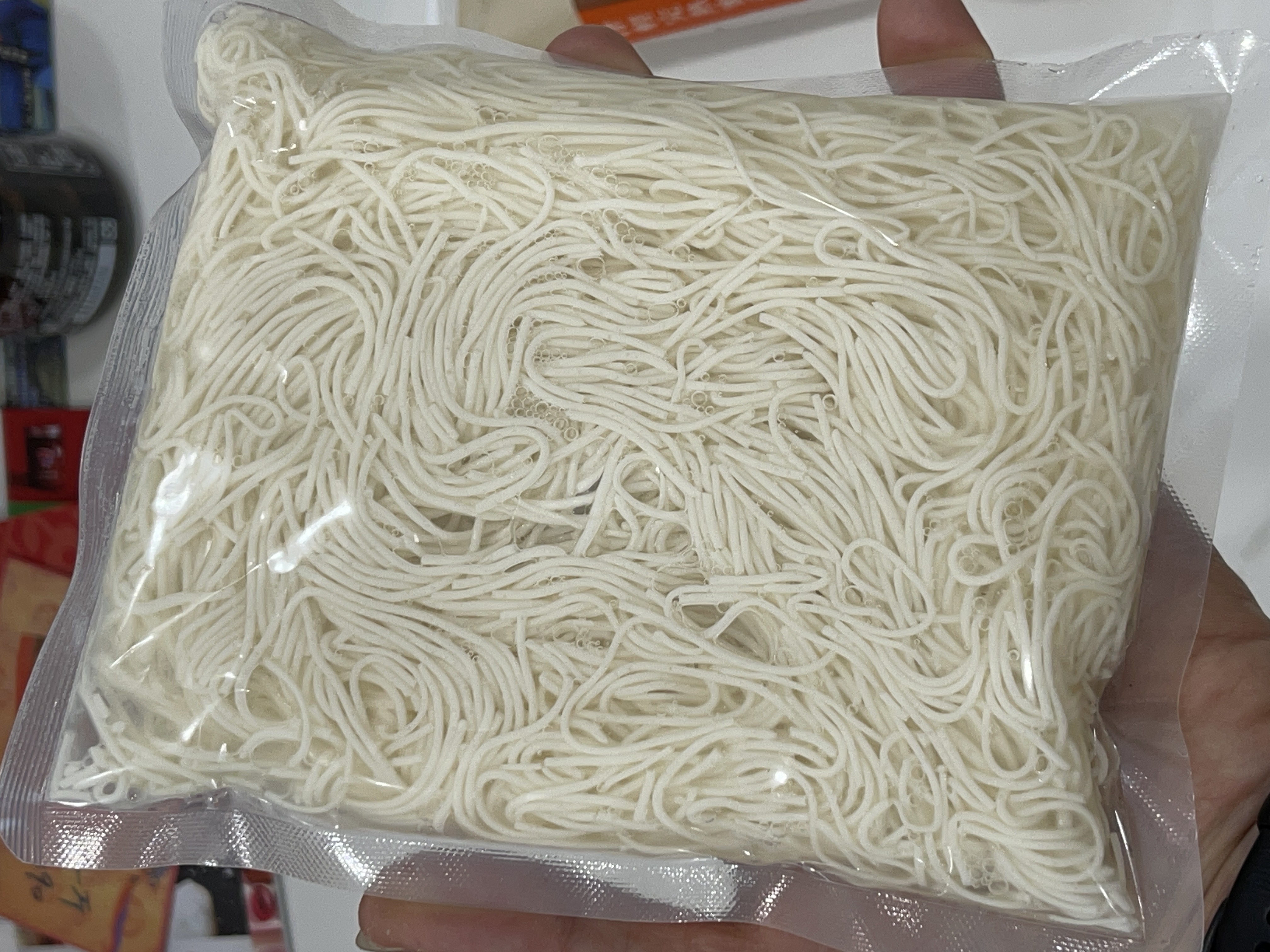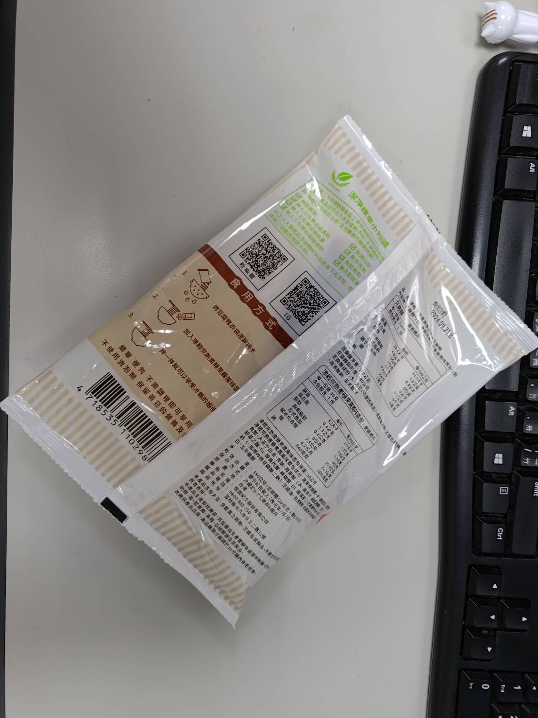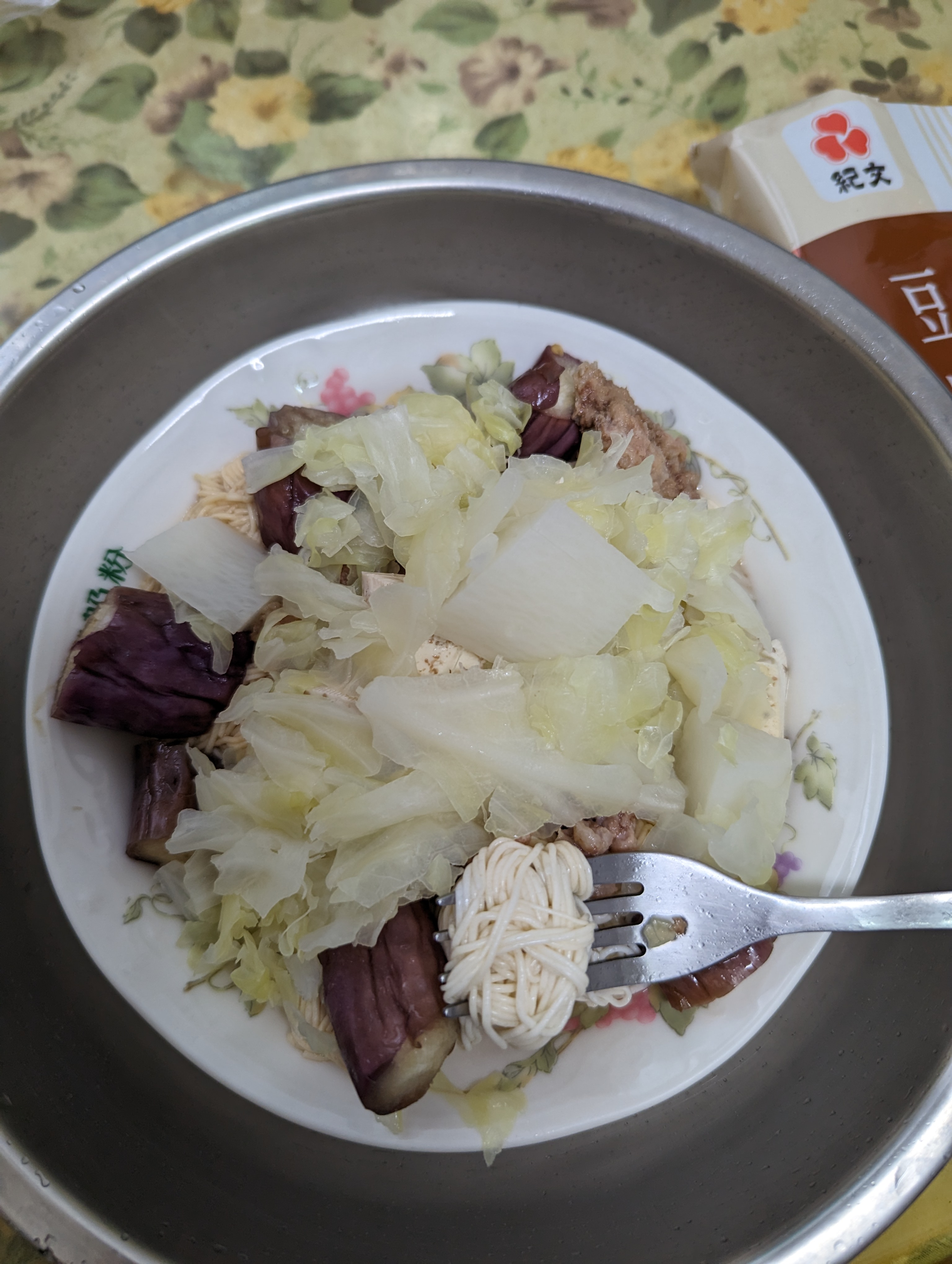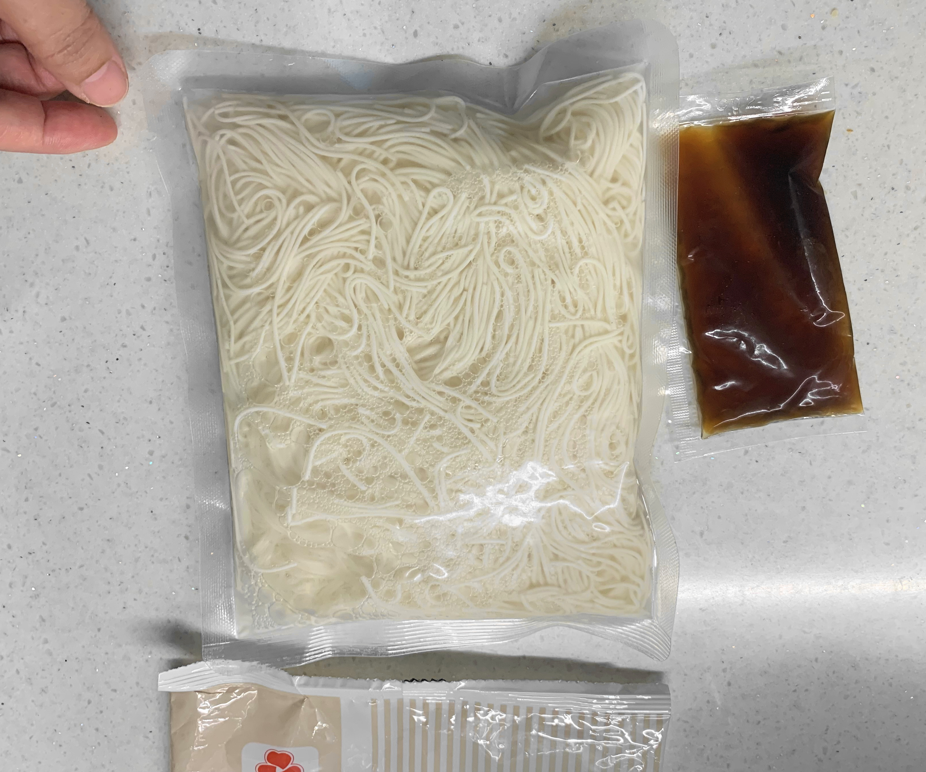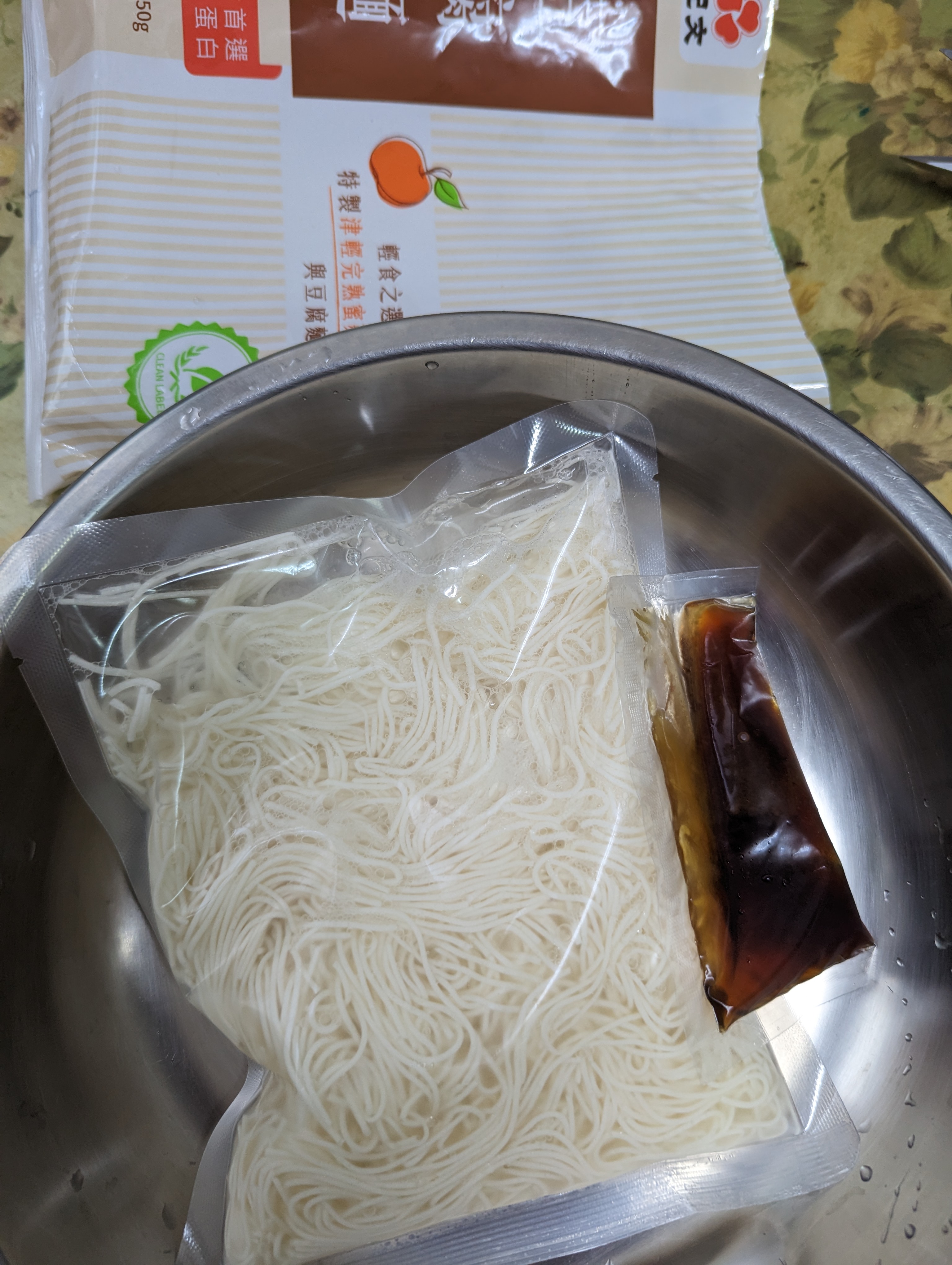 豆腐麵成份:水、大豆(非基因改造)、馬鈴薯澱粉、乙化磷酸二澱粉、海藻酸鈉、玉米糖膠