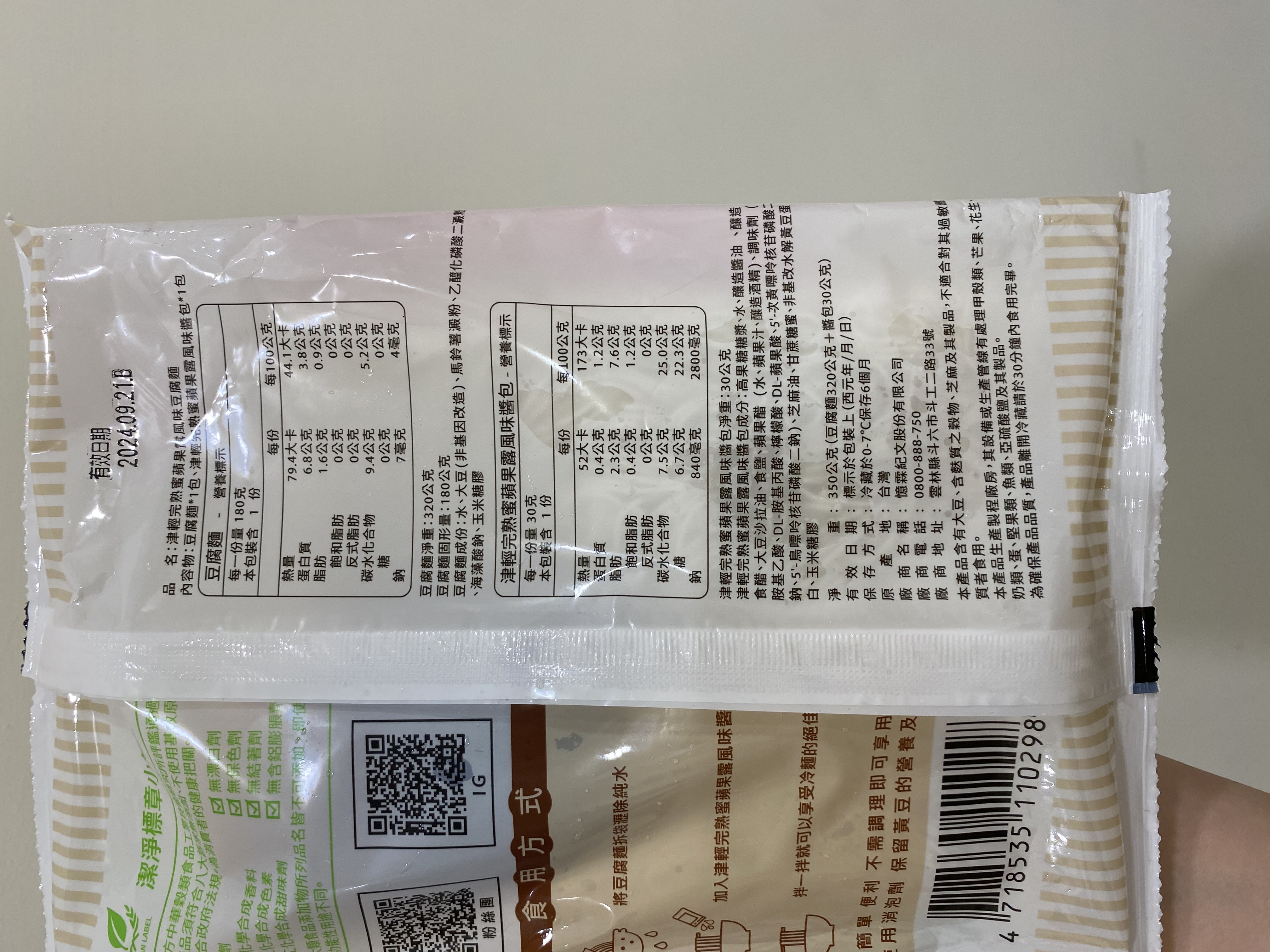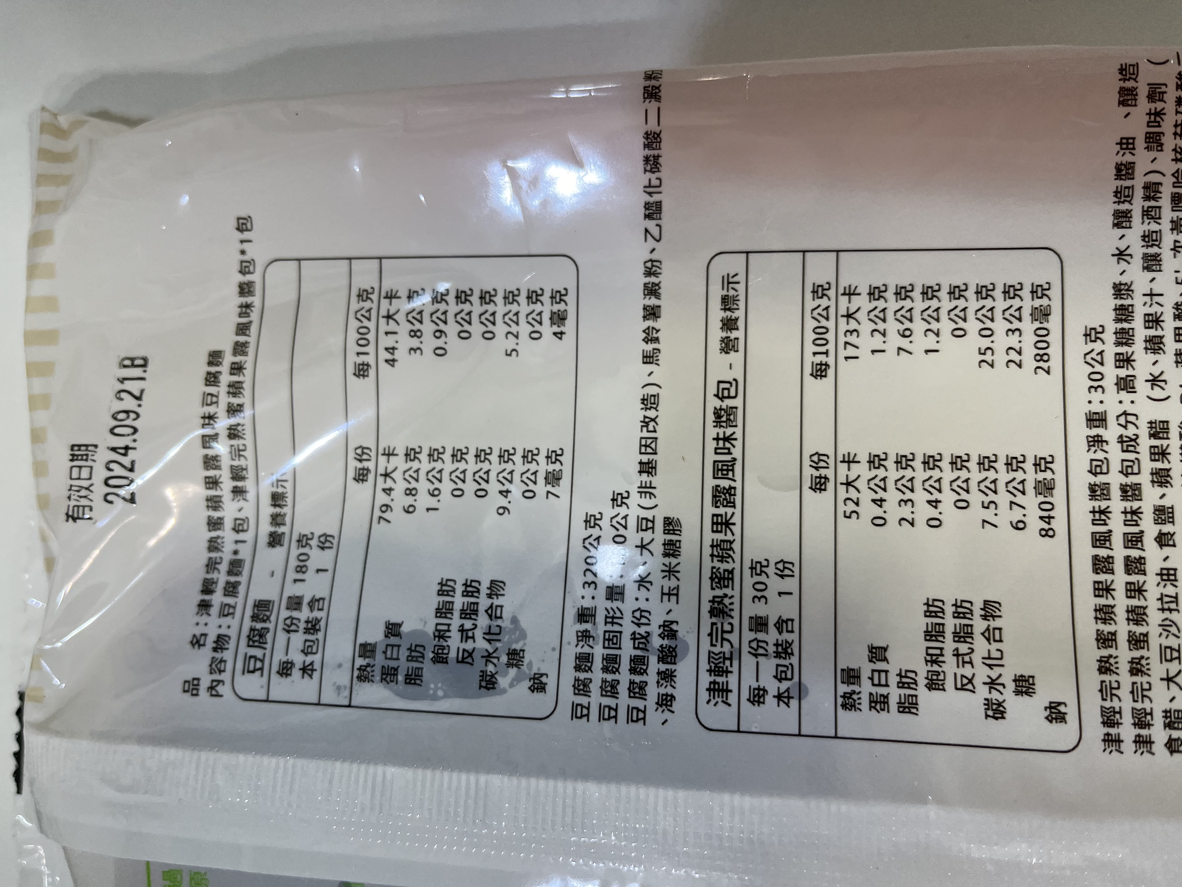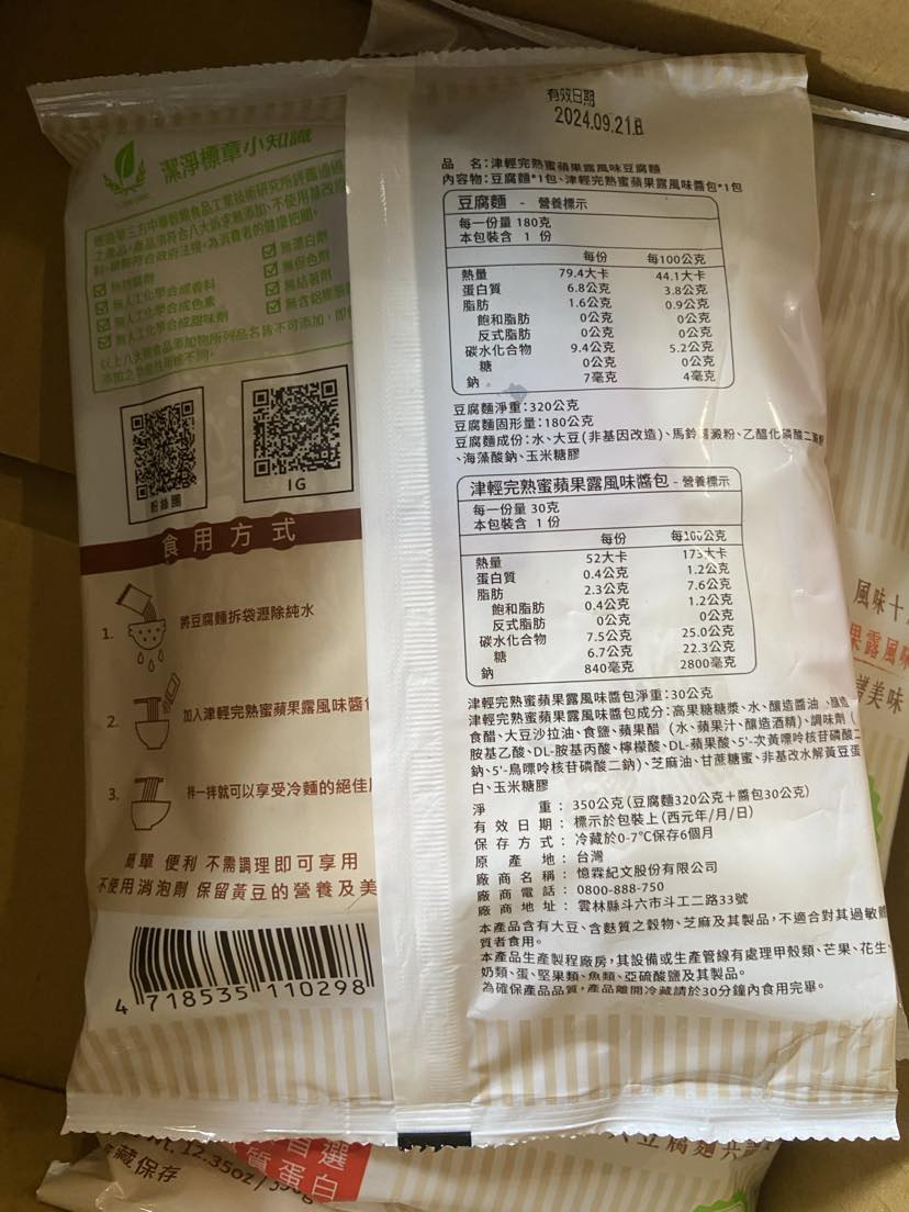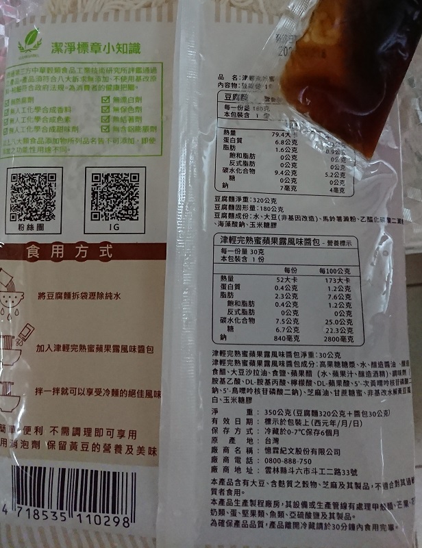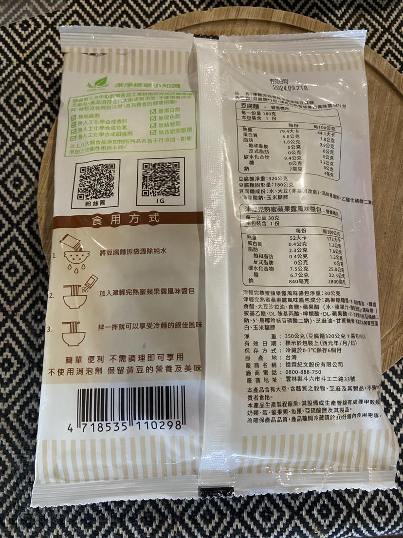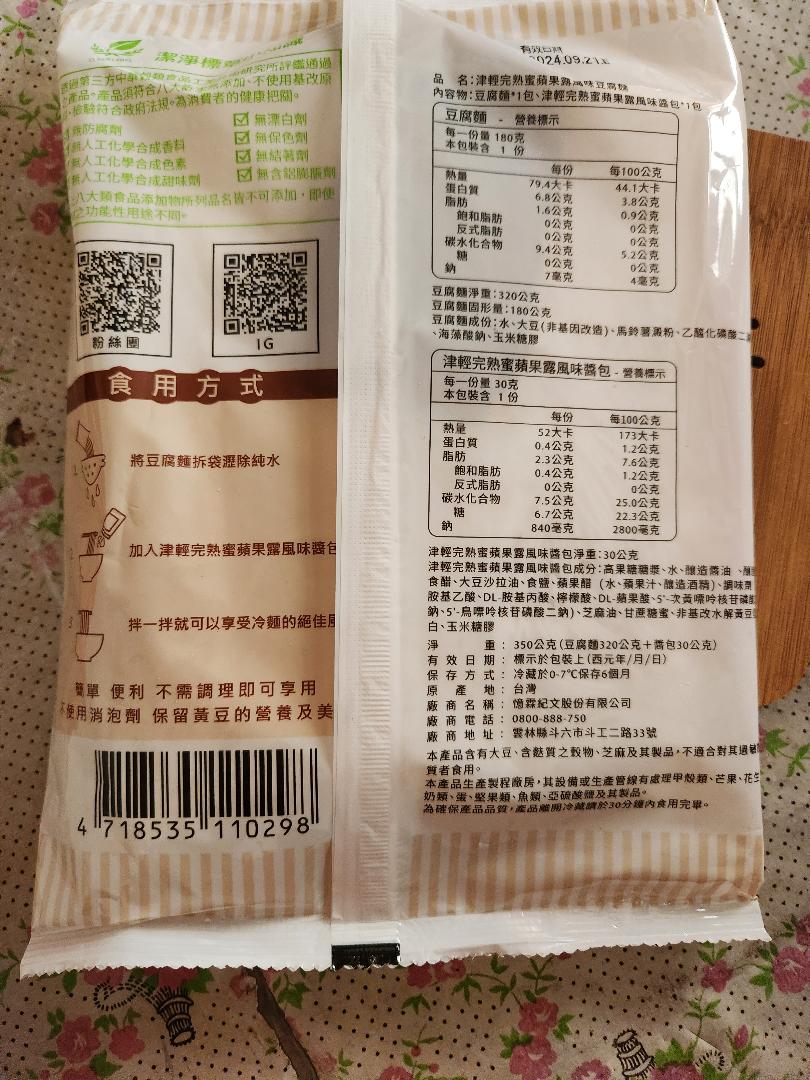 | 試用產品規格 | 豆腐麵(180g)與蘋果露風味醬包(30g)各1包 共三組 |