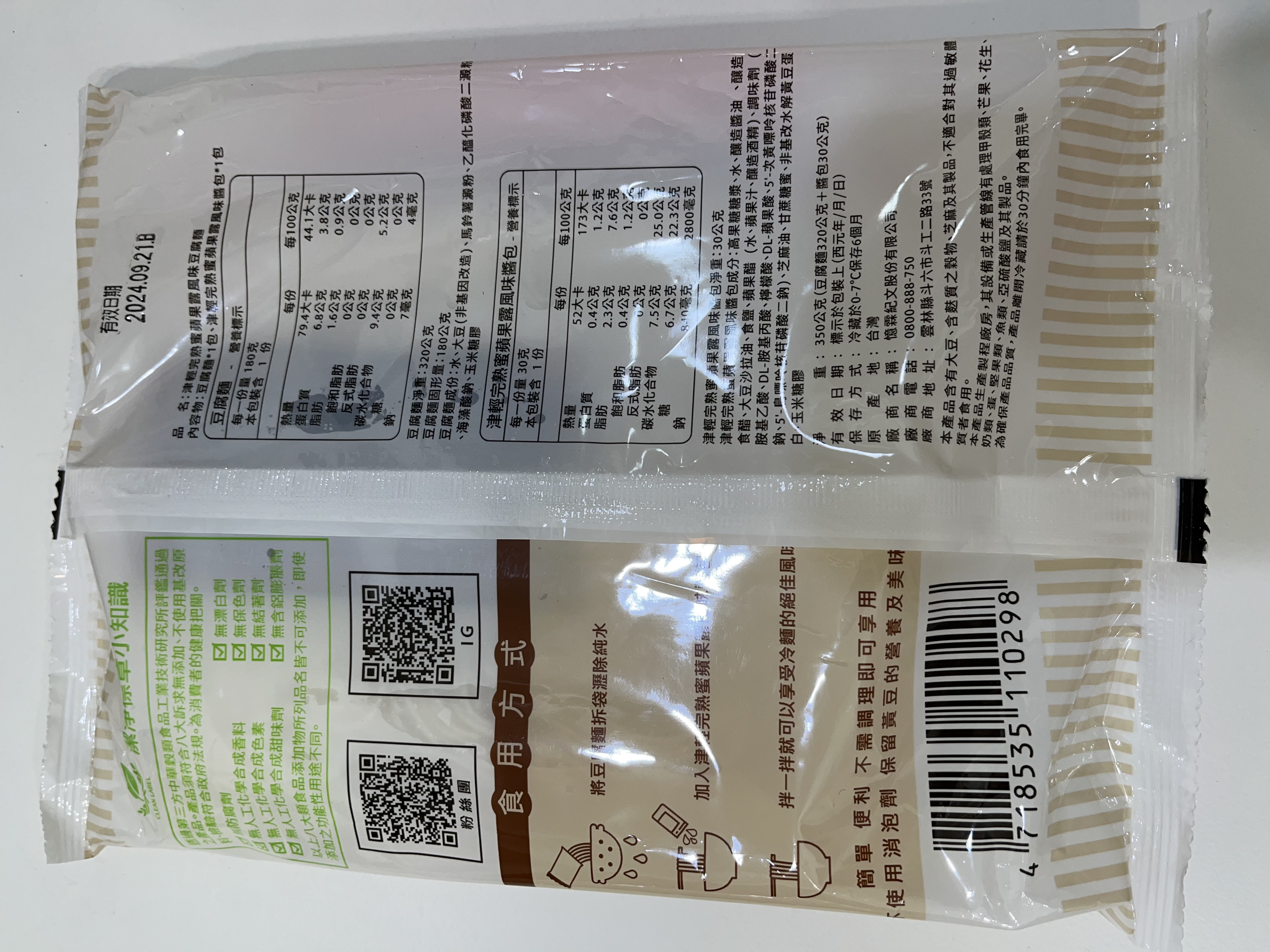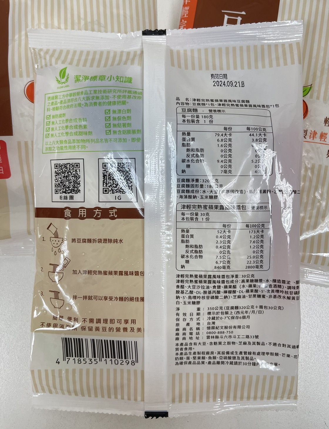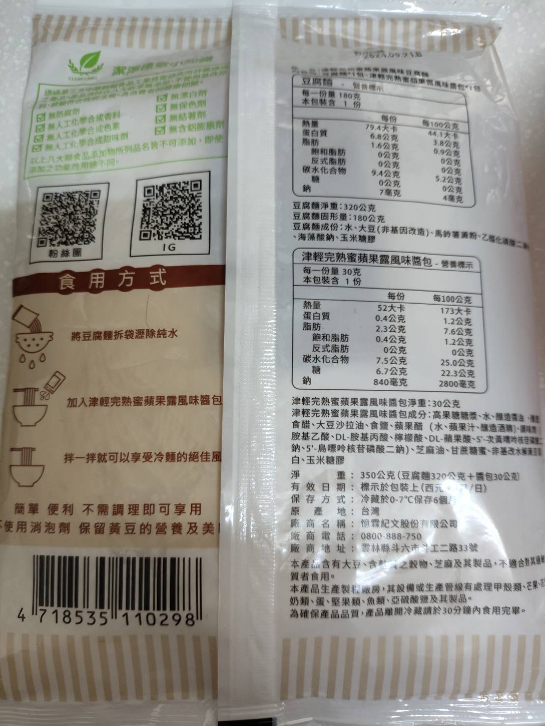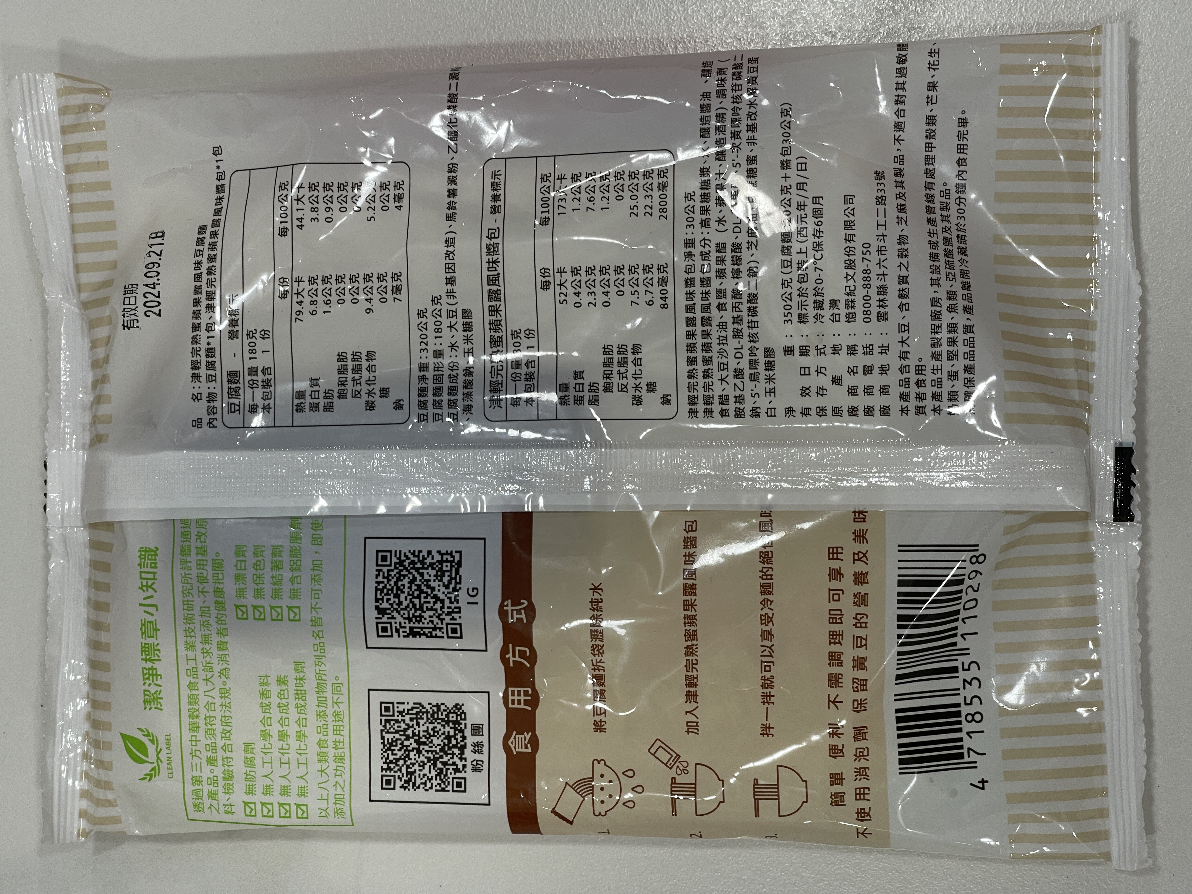 | 試用產品規格 | 豆腐麵(180g)與蘋果露風味醬包(30g)各1包 共三組 |