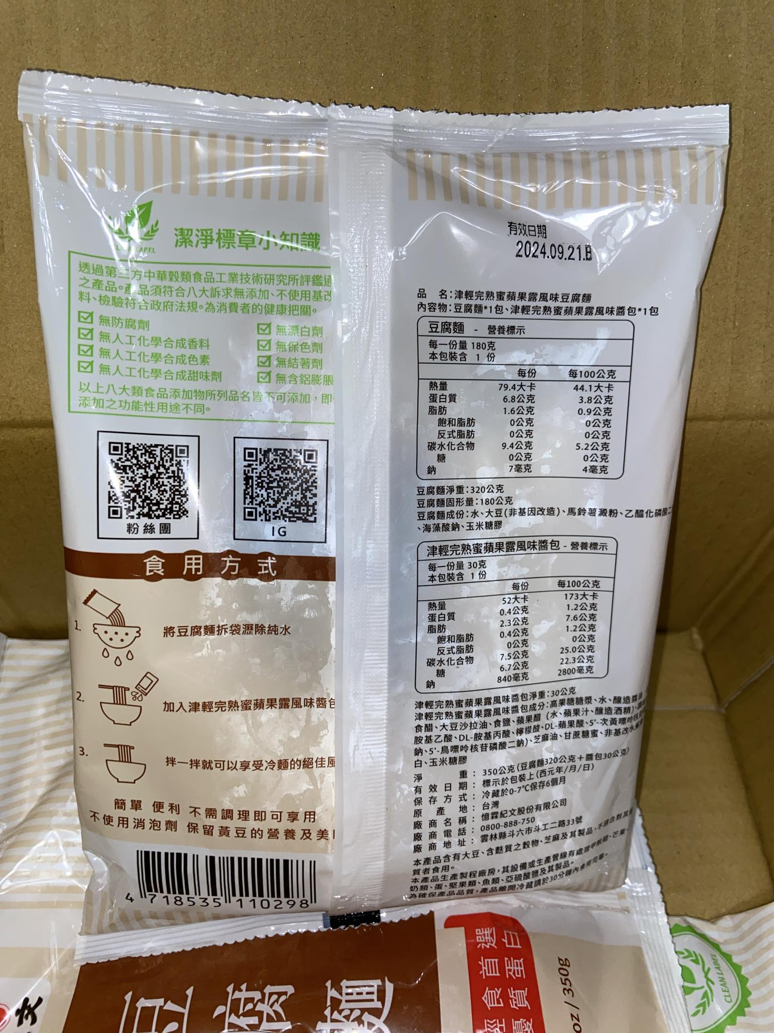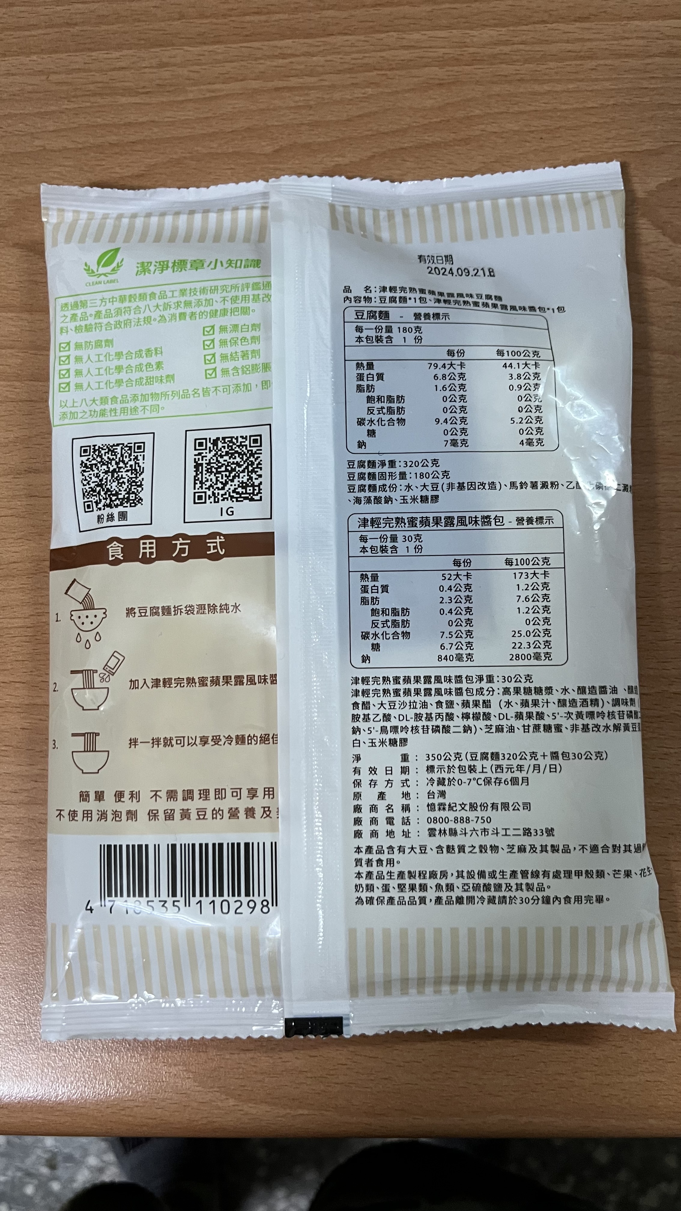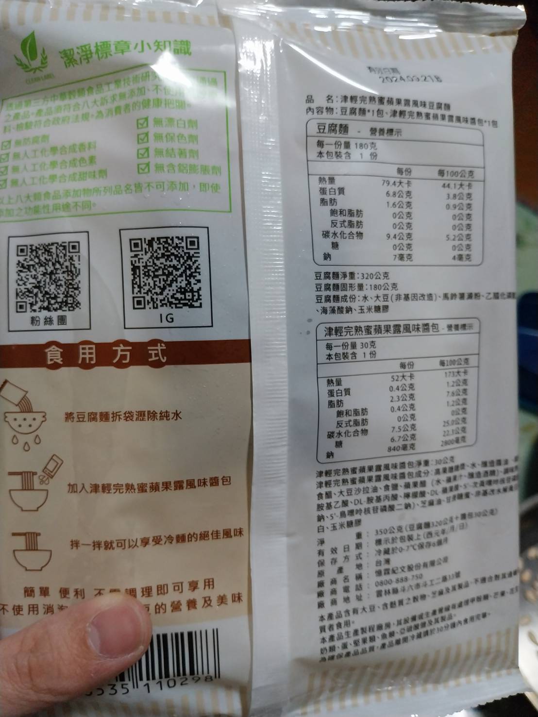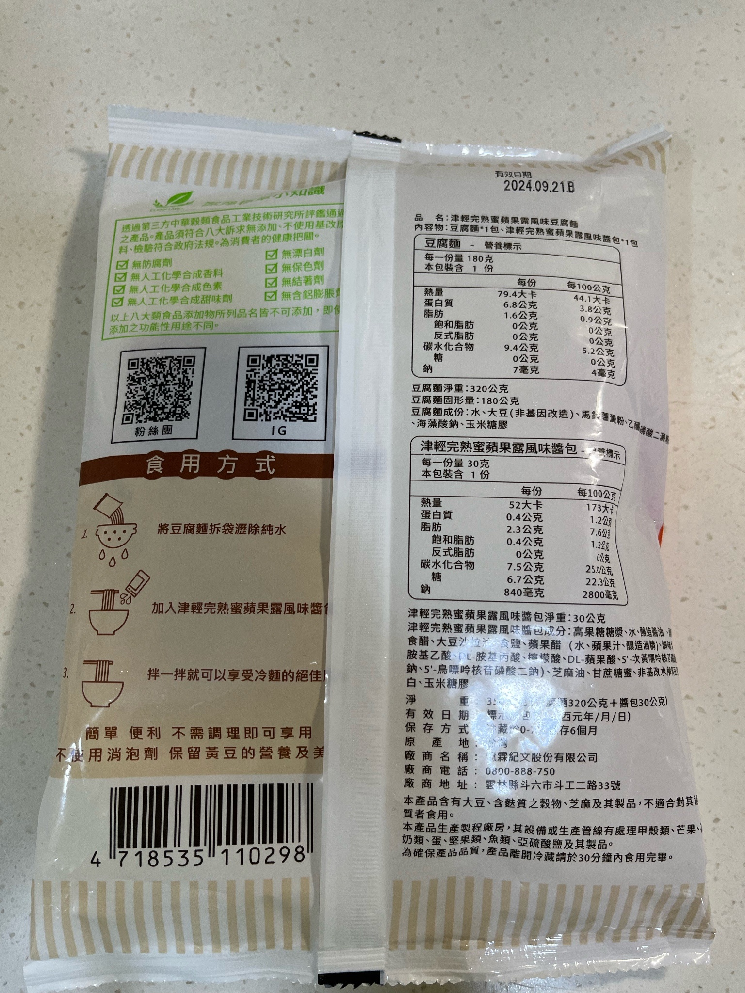 | 試用產品規格 | 豆腐麵(180g)與蘋果露風味醬包(30g)各1包 共三組 |