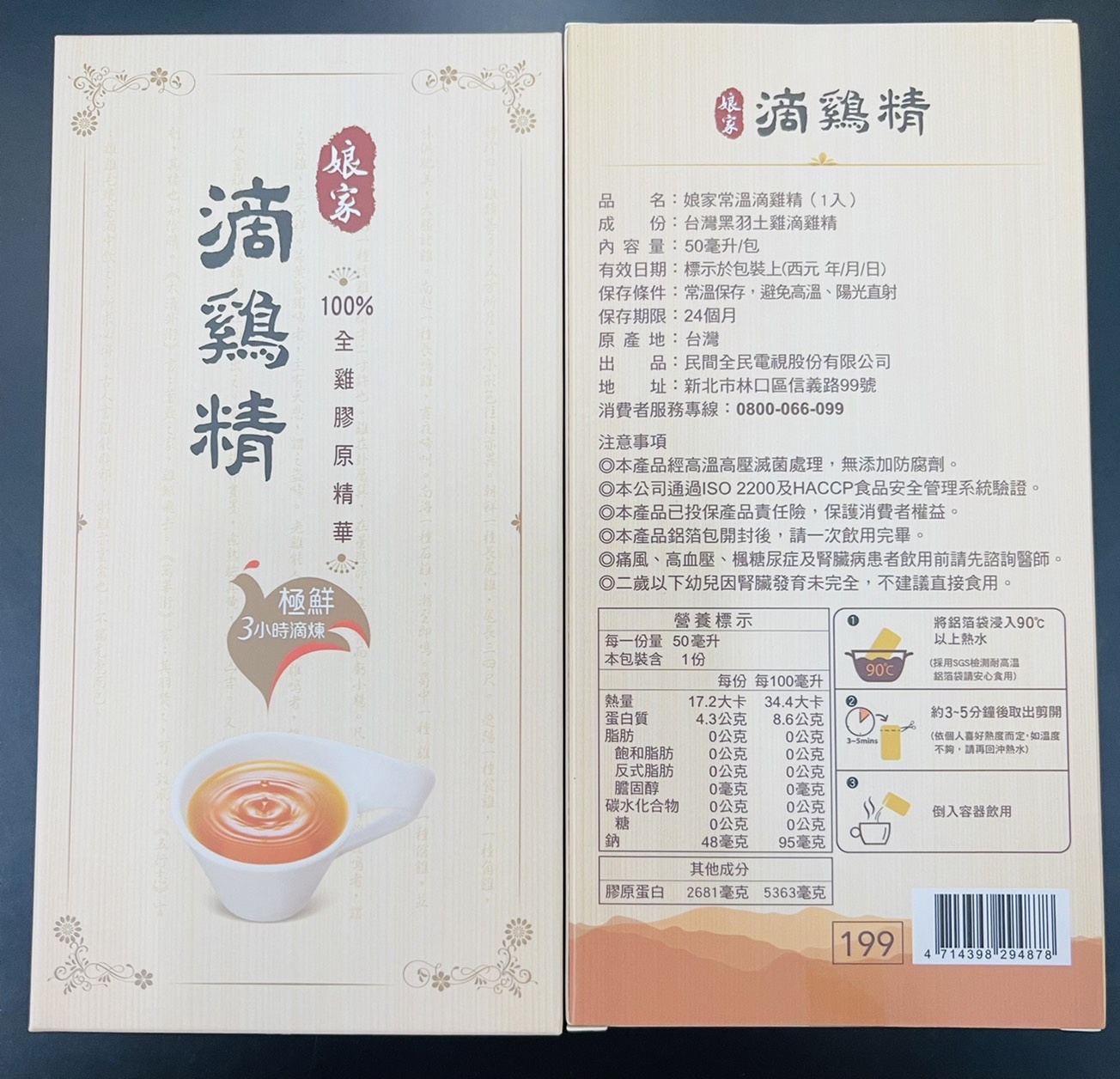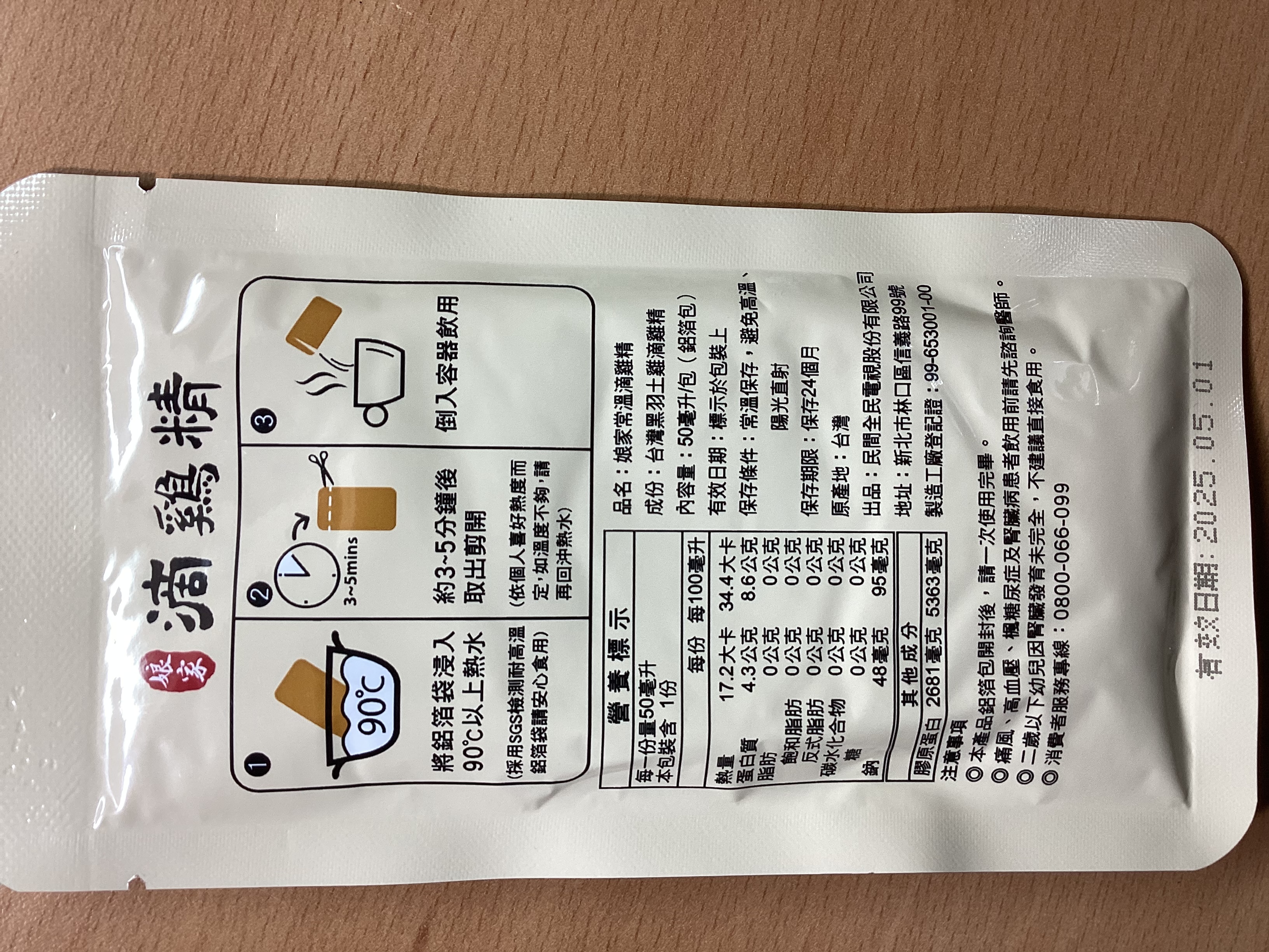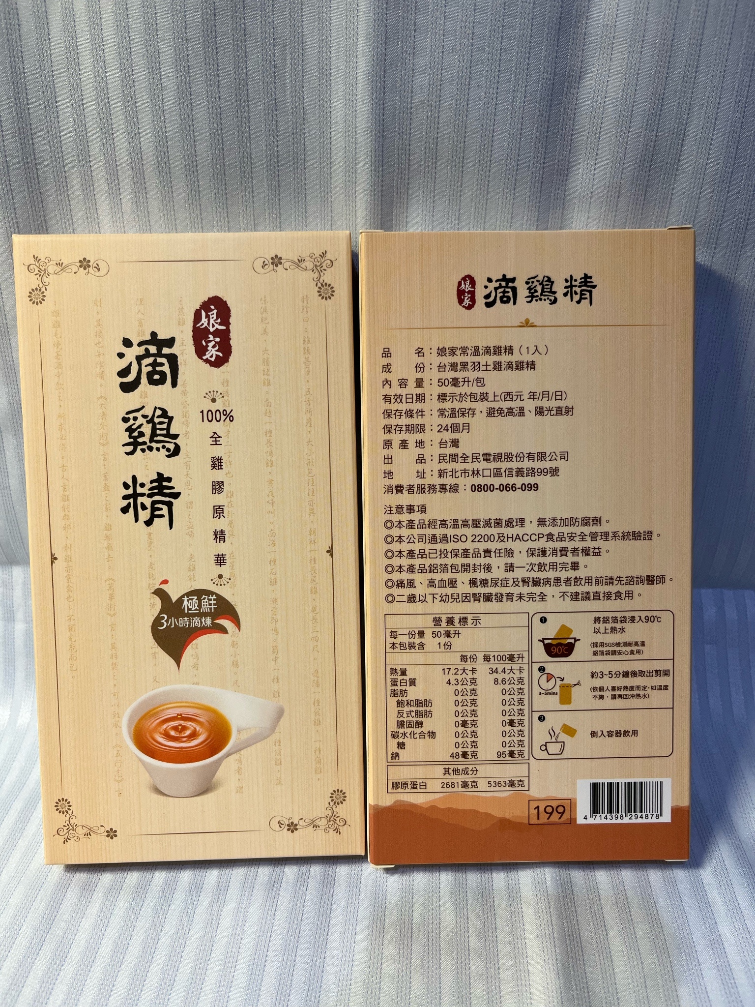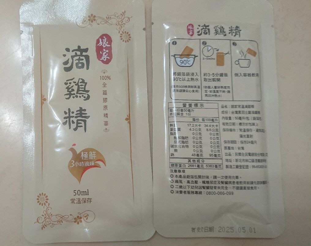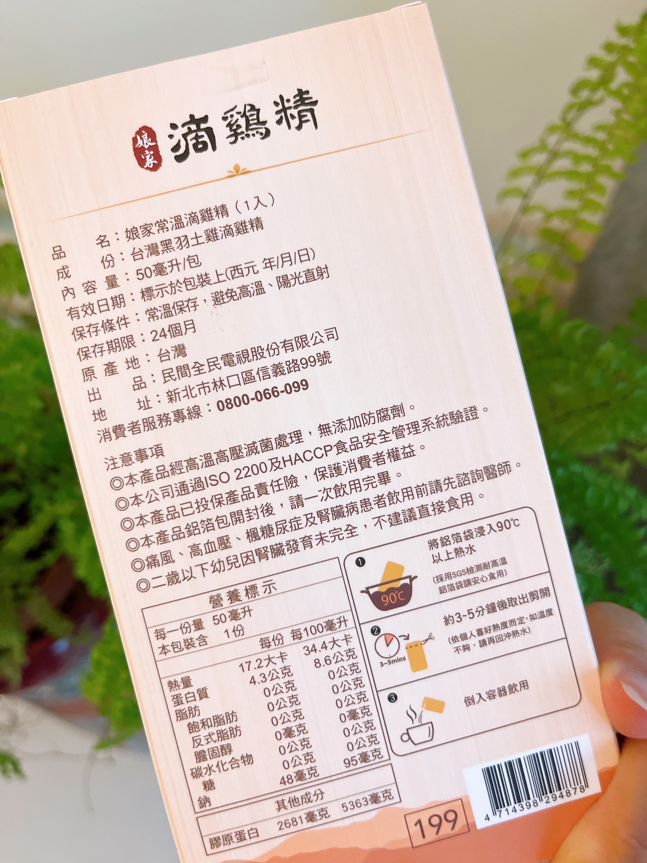 回列表 娘家常溫滴雞精 品質世界肯定 每一口都來自極鮮3小時滴煉 市價199元(免費申請) 所需等級 一般會員以上 所需學分 50 體驗份數 100 關注人數 1457 申請人數 358 申請截止 品牌業者:娘家 負責廠商 民間全民電視股份有限公司 廠商地址 新北市林口區信義路99號 產地 台灣 試用產品規格 2盒(一盒1入) 食品業者登錄字號 E-196975768-00000-9 投保產品責任險字號 0525字第22AML0002428號 心得分享 商品介紹 商品成分 使用方法 注意事項 體驗名單 9.2 娘家常溫滴雞精 香醇濃厚 9.2 好喝無腥味 9.2 滿滿膠原蛋白 8.9 元氣滋補 9.1 推薦送禮/自用保養 9.1 建議推薦 9.1 心得分享 96則 Jessica Su 鑽石達人 40歲 雲林縣 2023/08/18 對娘家常溫滴雞精留下評價 9 感謝食力食驗室這次提供寶貴的機會體驗"娘家常溫滴雞精"產品主打 品質世界肯定 每一口都來自極鮮3小時滴煉推薦"娘家常溫滴雞精"的理由1.娘家這款滴雞精有別於一般市售滴雞精需要冷凍保存,常溫滴雞精可以隨身攜帶,出外旅行帶著喝也很方便~2.直接喝味道滿濃厚,但沒有腥味希望改善的地方:1.定價一小包199,價格有點高。2.一小包用一個紙盒裝,有點過度包裝,希望能考慮減碳環保減少過度包裝感謝食力食驗室提供這次體驗機會,希望下次還能有機會體驗其他產品~~ 陳卡比 金食達人 38歲 臺南市 2023/08/18 對娘家常溫滴雞精留下評價 8 最近因為懷孕的關係開始喝起了滴雞精感謝這次能有機會體驗到不同品牌的滴雞精娘家這款滴雞精很方便的是可以常溫保存,攜帶很方便口味上是純雞精,沒有添加中藥材, 是很純粹的味道喝起來比我之前喝的品牌還要濃郁,雞味比較重不過如果是怕味道太重的人 可能會不太習慣但還是在可接受的範圍內包裝簡潔,有單入的紙盒包裝要送禮時也蠻方便的 張芷瑋 金食達人 40歲 新北市 2023/08/18 對娘家常溫滴雞精留下評價 9 這是我第一次嘗試喝滴雞精,以前不敢喝還以為會有雞腥味,不過這次體驗,讓我對滴雞精印象超好的!平常放常溫就好,不需要冷藏,想喝的時候放進90度的熱水裡隔水加熱,就能吃到香噴噴的滴雞精了,撕開鋁箔袋的瞬間,濃郁的香味撲鼻而來,滴雞精舀起來顏色金黃金黃,看起來就很美味,娘家滴雞精是用黑羽土雞,它的營養價值相當高的因為不加任何一滴水,喝下去味道相當濃郁,很溫暖順口,每一口都能感受到它的純粹,對我這種超忙碌的人來說,真的是很方便補充營養的方式! Lily Liao 鑽石達人 34歲 新北市 2023/08/20 對娘家常溫滴雞精留下評價 7 感謝食力給予機會試吃娘家常溫滴雞精。此款滴雞精標榜極鮮3小時滴煉,含有100%全雞膠原精華,先前我只喝過冷凍保存的滴雞精,很好奇常溫的滴雞精是什麼味道。食用方法是浸入90℃以上的水3~5分鐘後取出剪開倒入容器,我得老實說90℃讓我滿困擾的,我知道水滾是100℃但我不知道該怎麼在沒有溫度計下的方式測量90℃,所以我就是等水滾,關火後就把滴雞精放進去計時5分鐘。剪開倒入容器後先聞到一個非常明顯的雞精味,這味道讓我有點害怕,以前喝瓶裝雞精都得捏著鼻子皺著臉才有辦法喝下去,一聞到就跟我過去的經驗做連結,先有了比較負面的印象,不過實際上喝下肚後,並沒有讓我害怕的雞精味,感覺上比較像雞湯,然而香氣沒有很足,就是一款還不錯的常溫滴雞精。雖然沒有比我之前試吃的冷凍滴雞精好喝,但常溫保存方便許多,這一點就略勝一籌,價格上也更實惠,我覺得是個很好的選擇。 AK Stein 鑽石達人 44歲 花蓮縣 2023/08/21 對娘家常溫滴雞精留下評價 9 包裝收納得很好,每包滴雞精都密封得很紮實平整,娘家滴雞精是目前喝完後覺得喝過的滴雞精中接受度最高的。娘家滴精雞精的份量介於中等,成分夠,適量的補充。製造日期直接壓印在每一包包裝上,而不是只有統一印於外盒,這樣每一包都有清楚效時間,設計很貼心。娘家滴雞精採用全程封存全雞的原汁精華,利用獨特的蒸氣不回流技術,每一隻三公斤的黑羽土雞只能滴出大概2包左右的娘家滴雞精,油脂分離零脂肪,滴滴甘醇不油膩。 irene yang 金食達人 32歲 新北市 2023/08/22 對娘家常溫滴雞精留下評價 10 很榮幸抽到試喝"娘家常溫滴雞精",真的讓我超驚艷的!首先,它的味道鮮美,帶有濃濃的雞香卻不人工也沒加任何一滴水,喝了一包還覺得不後夠。不同以往古早口味不大眾的雞精,喝起來超順口,一點都沒有腥味或是難嚥的感覺,就像喝了一碗超濃縮卻營養十足的雞湯。最方便的是,它簡單隔水加熱,隨時隨地都能喝到暖胃的雞湯,真的太方便了!對於忙碌的上班族,終於找到可以隨時補充能量的好拍擋。 陳昭安 鑽石達人 34歲 雲林縣 2023/08/23 對娘家常溫滴雞精留下評價 10 很開心能參與這次食驗室-「娘家常溫滴雞精」的試吃體驗,*外包裝:有明顯產品名稱、熱量、商品成分、保存期限以及外盒有說明食用方式。*商品成分內容物為: 台灣黑羽土雞滴雞精。*食用方式【隔水加熱】1. 將鋁箔包直接浸入90度c以上熱水。2. 約3-5分鐘後取出。3. 剪開鋁箔包,倒入容器內飲用。*試吃心得: 1.包裝隔水加熱預熱快。2.食用方式有圖解清楚明瞭。3.味道不腥不膩。4.隨身包好攜帶。5.很推薦大家食用。 涂秀英 鑽石達人 37歲 臺北市 2023/08/24 對娘家常溫滴雞精留下評價 10 市面上琳瑯滿目的雞精品牌,今天我要慎重推薦娘家100%全雞膠原精華滴雞精.拆開來就可以聞到淡淡的香氣,一般來說雞湯冷了會浮一