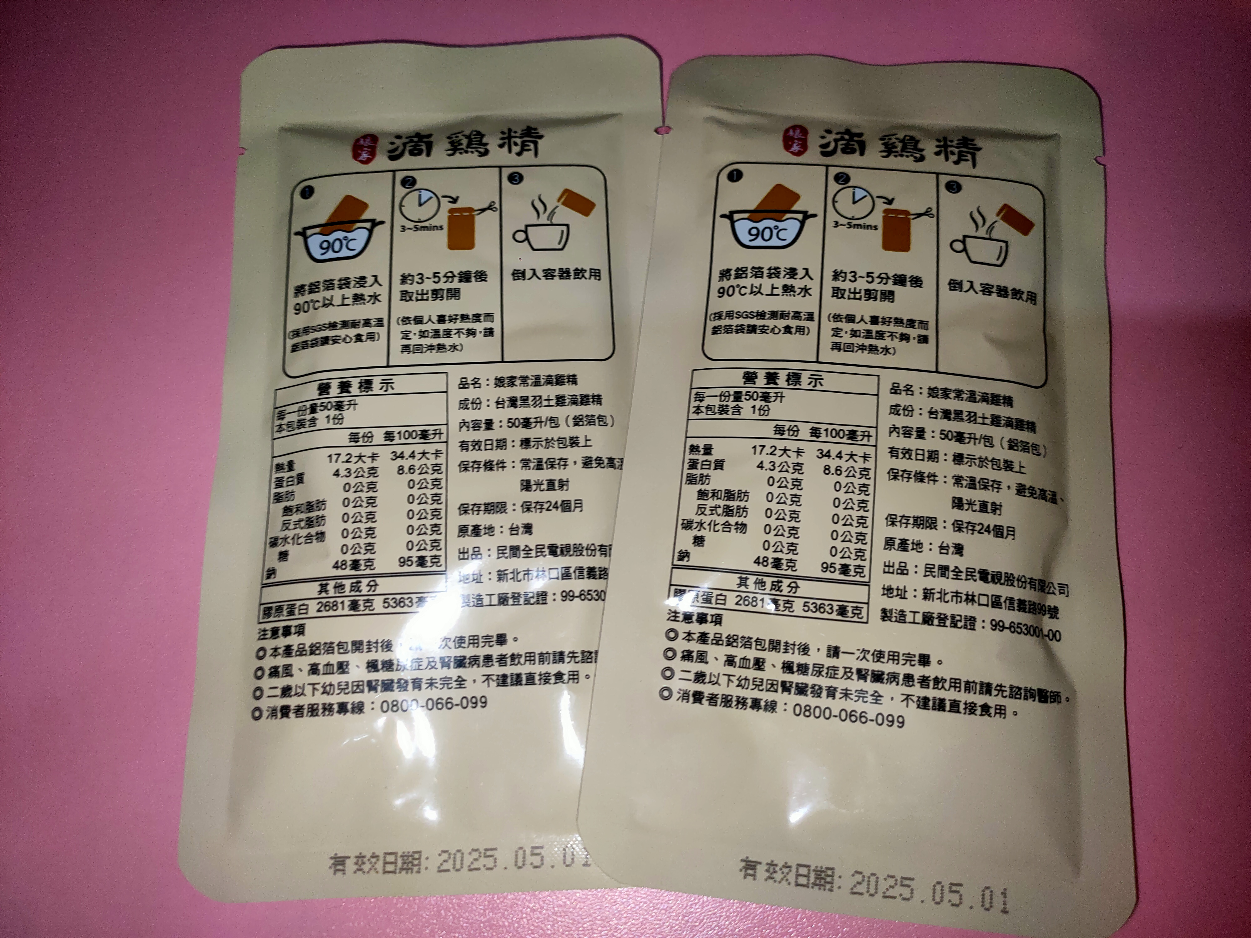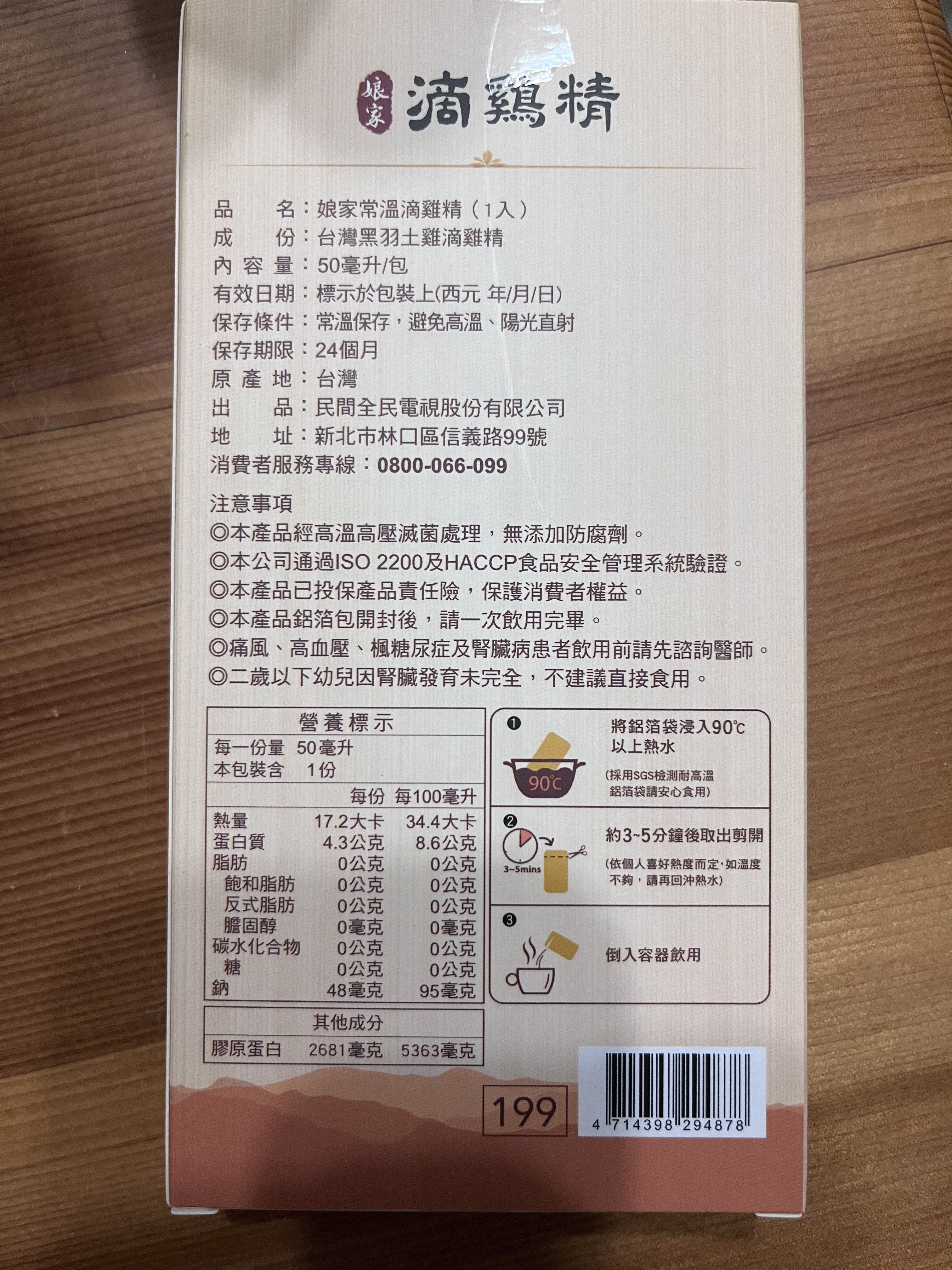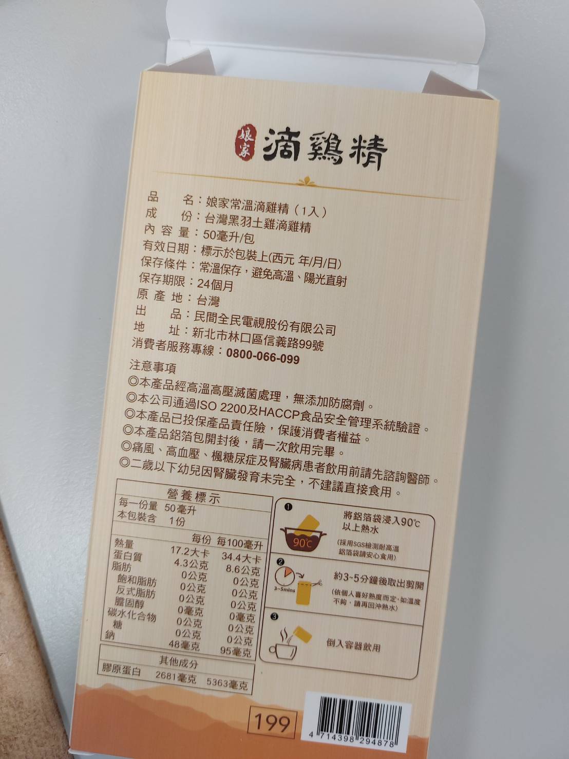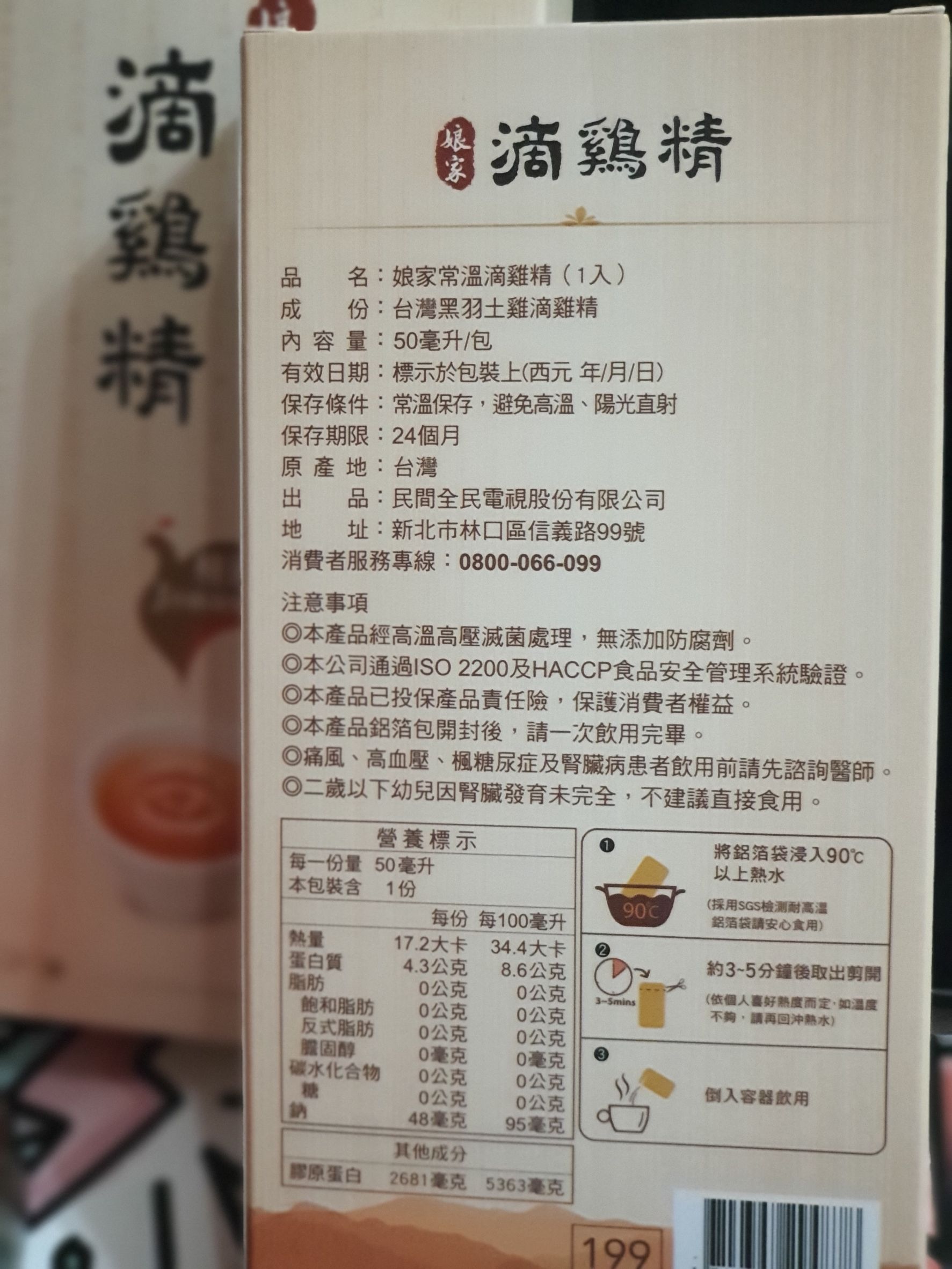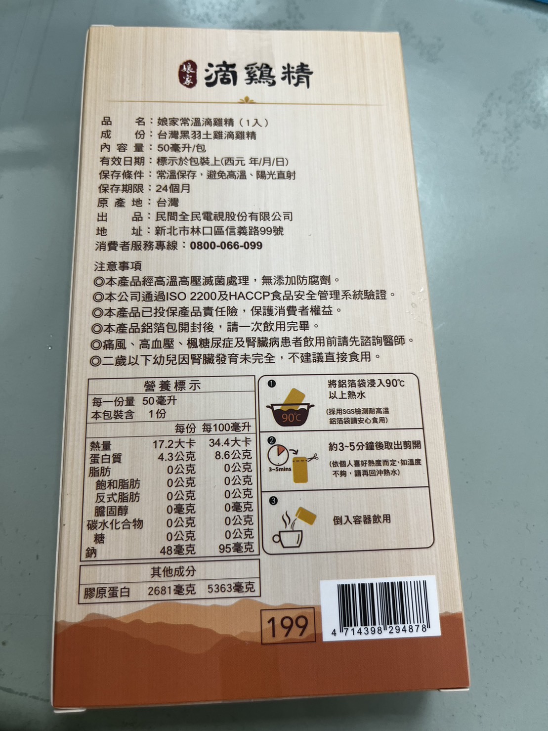 回列表 娘家常溫滴雞精 品質世界肯定 每一口都來自極鮮3小時滴煉 市價199元(免費申請) 所需等級 一般會員以上 所需學分 50 體驗份數 100 關注人數 1457 申請人數 358 申請截止 品牌業者:娘家 負責廠商 民間全民電視股份有限公司 廠商地址 新北市林口區信義路99號 產地 台灣 試用產品規格 2盒(一盒1入) 食品業者登錄字號 E-196975768-00000-9 投保產品責任險字號 0525字第22AML0002428號 心得分享 商品介紹 商品成分 使用方法 注意事項 體驗名單 9.2 娘家常溫滴雞精 香醇濃厚 9.2 好喝無腥味 9.2 滿滿膠原蛋白 8.9 元氣滋補 9.1 推薦送禮/自用保養 9.1 建議推薦 9.1 心得分享 96則 Jessica Su 鑽石達人 40歲 雲林縣 2023/08/18 對娘家常溫滴雞精留下評價 9 感謝食力食驗室這次提供寶貴的機會體驗"娘家常溫滴雞精"產品主打 品質世界肯定 每一口都來自極鮮3小時滴煉推薦"娘家常溫滴雞精"的理由1.娘家這款滴雞精有別於一般市售滴雞精需要冷凍保存,常溫滴雞精可以隨身攜帶,出外旅行帶著喝也很方便~2.直接喝味道滿濃厚,但沒有腥味希望改善的地方:1.定價一小包199,價格有點高。2.一小包用一個紙盒裝,有點過度包裝,希望能考慮減碳環保減少過度包裝感謝食力食驗室提供這次體驗機會,希望下次還能有機會體驗其他產品~~ 陳卡比 金食達人 38歲 臺南市 2023/08/18 對娘家常溫滴雞精留下評價 8 最近因為懷孕的關係開始喝起了滴雞精感謝這次能有機會體驗到不同品牌的滴雞精娘家這款滴雞精很方便的是可以常溫保存,攜帶很方便口味上是純雞精,沒有添加中藥材, 是很純粹的味道喝起來比我之前喝的品牌還要濃郁,雞味比較重不過如果是怕味道太重的人 可能會不太習慣但還是在可接受的範圍內包裝簡潔,有單入的紙盒包裝要送禮時也蠻方便的 張芷瑋 金食達人 40歲 新北市 2023/08/18 對娘家常溫滴雞精留下評價 9 這是我第一次嘗試喝滴雞精,以前不敢喝還以為會有雞腥味,不過這次體驗,讓我對滴雞精印象超好的!平常放常溫就好,不需要冷藏,想喝的時候放進90度的熱水裡隔水加熱,就能吃到香噴噴的滴雞精了,撕開鋁箔袋的瞬間,濃郁的香味撲鼻而來,滴雞精舀起來顏色金黃金黃,看起來就很美味,娘家滴雞精是用黑羽土雞,它的營養價值相當高的因為不加任何一滴水,喝下去味道相當濃郁,很溫暖順口,每一口都能感受到它的純粹,對我這種超忙碌的人來說,真的是很方便補充營養的方式! Lily Liao 鑽石達人 34歲 新北市 2023/08/20 對娘家常溫滴雞精留下評價 7 感謝食力給予機會試吃娘家常溫滴雞精。此款滴雞精標榜極鮮3小時滴煉,含有100%全雞膠原精華,先前我只喝過冷凍保存的滴雞精,很好奇常溫的滴雞精是什麼味道。食用方法是浸入90℃以上的水3~5分鐘後取出剪開倒入容器,我得老實說90℃讓我滿困擾的,我知道水滾是100℃但我不知道該怎麼在沒有溫度計下的方式測量90℃,所以我就是等水滾,關火後就把滴雞精放進去計時5分鐘。剪開倒入容器後先聞到一個非常明顯的雞精味,這味道讓我有點害怕,以前喝瓶裝雞精都得捏著鼻子皺著臉才有辦法喝下去,一聞到就跟我過去的經驗做連結,先有了比較負面的印象,不過實際上喝下肚後,並沒有讓我害怕的雞精味,感覺上比較像雞湯,然而香氣沒有很足,就是一款還不錯的常溫滴雞精。雖然沒有比我之前試吃的冷凍滴雞精好喝,但常溫保存方便許多,這一點就略勝一籌,價格上也更實惠,我覺得是個很好的選擇。 AK Stein 鑽石達人 44歲 花蓮縣 2023/08/21 對娘家常溫滴雞精留下評價 9 包裝收納得很好,每包滴雞精都密封得很紮實平整,娘家滴雞精是目前喝完後覺得喝過的滴雞精中接受度最高的。娘家滴精雞精的份量介於中等,成分夠,適量的補充。製造日期直接壓印在每一包包裝上,而不是只有統一印於外盒,這樣每一包都有清楚效時間,設計很貼心。娘家滴雞精採用全程封存全雞的原汁精華,利用獨特的蒸氣不回流技術,每一隻三公斤的黑羽土雞只能滴出大概2包左右的娘家滴雞精,油脂分離零脂肪,滴滴甘醇不油膩。 irene yang 金食達人 32歲 新北市 2023/08/22 對娘家常溫滴雞精留下評價 10 很榮幸抽到試喝"娘家常溫滴雞精",真的讓我超驚艷的!首先,它的味道鮮美,帶有濃濃的雞香卻不人工也沒加任何一滴水,喝了一包還覺得不後夠。不同以往古早口味不大眾的雞精,喝起來超順口,一點都沒有腥味或是難嚥的感覺,就像喝了一碗超濃縮卻營養十足的雞湯。最方便的是,它簡單隔水加熱,隨時隨地都能喝到暖胃的雞湯,真的太方便了!對於忙碌的上班族,終於找到可以隨時補充能量的好拍擋。 陳昭安 鑽石達人 34歲 雲林縣 2023/08/23 對娘家常溫滴雞精留下評價 10 很開心能參與這次食驗室-「娘家常溫滴雞精」的試吃體驗,*外包裝:有明顯產品名稱、熱量、商品成分、保存期限以及外盒有說明食用方式。*商品成分內容物為: 台灣黑羽土雞滴雞精。*食用方式【隔水加熱】1. 將鋁箔包直接浸入90度c以上熱水。2. 約3-5分鐘後取出。3. 剪開鋁箔包,倒入容器內飲用。*試吃心得: 1.包裝隔水加熱預熱快。2.食用方式有圖解清楚明瞭。3.味道不腥不膩。4.隨身包好攜帶。5.很推薦大家食用。 涂秀英 鑽石達人 37歲 臺北市 2023/08/24 對娘家常溫滴雞精留下評價 10 市面上琳瑯滿目的雞精品牌,今天我要慎重推薦娘家100%全雞膠原精華滴雞精.拆開來就可以聞到淡淡的香氣,一般來說雞湯冷了會浮一