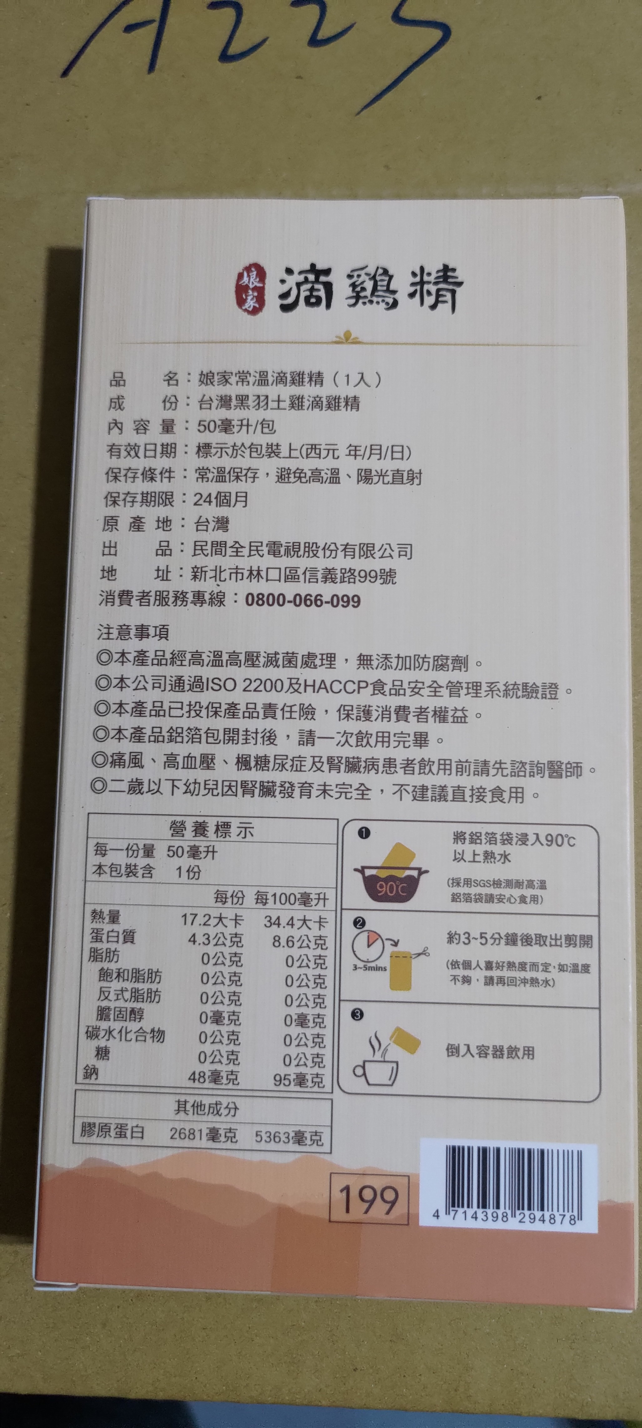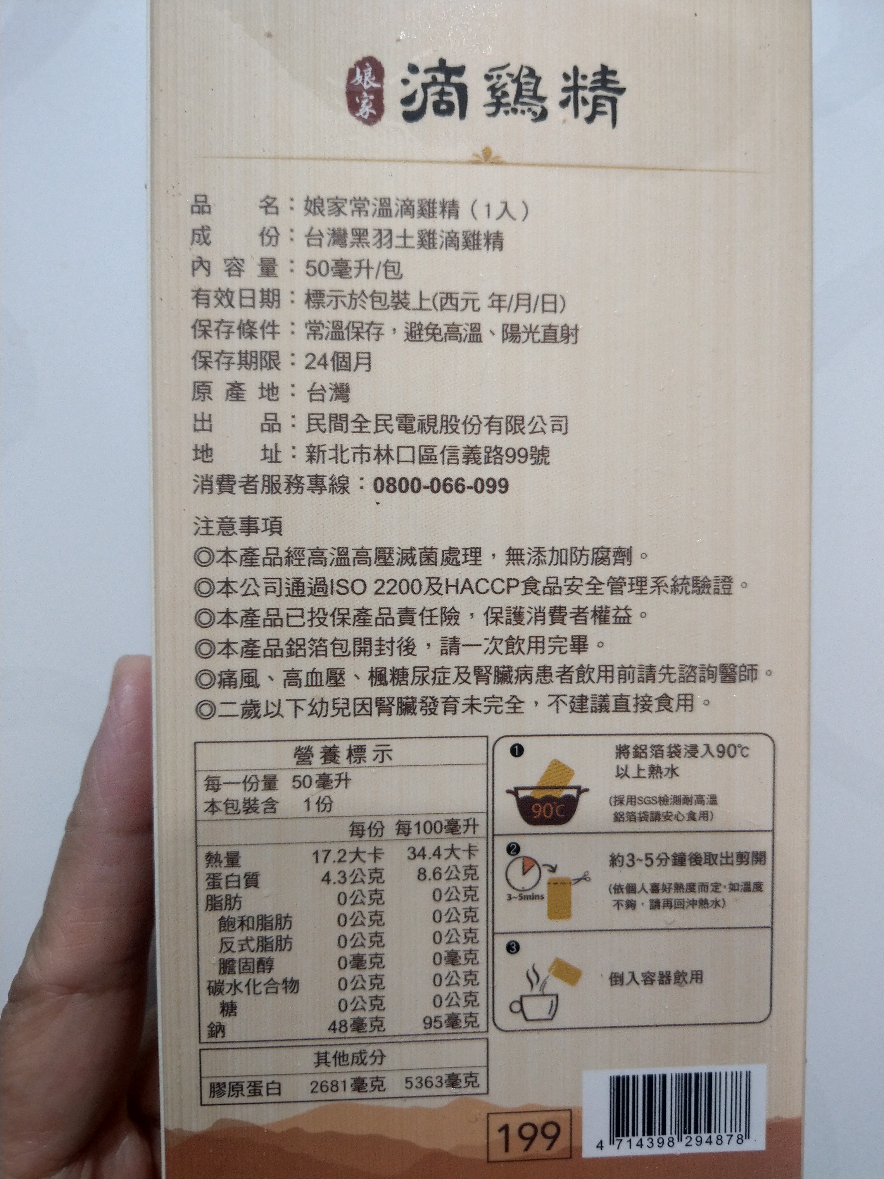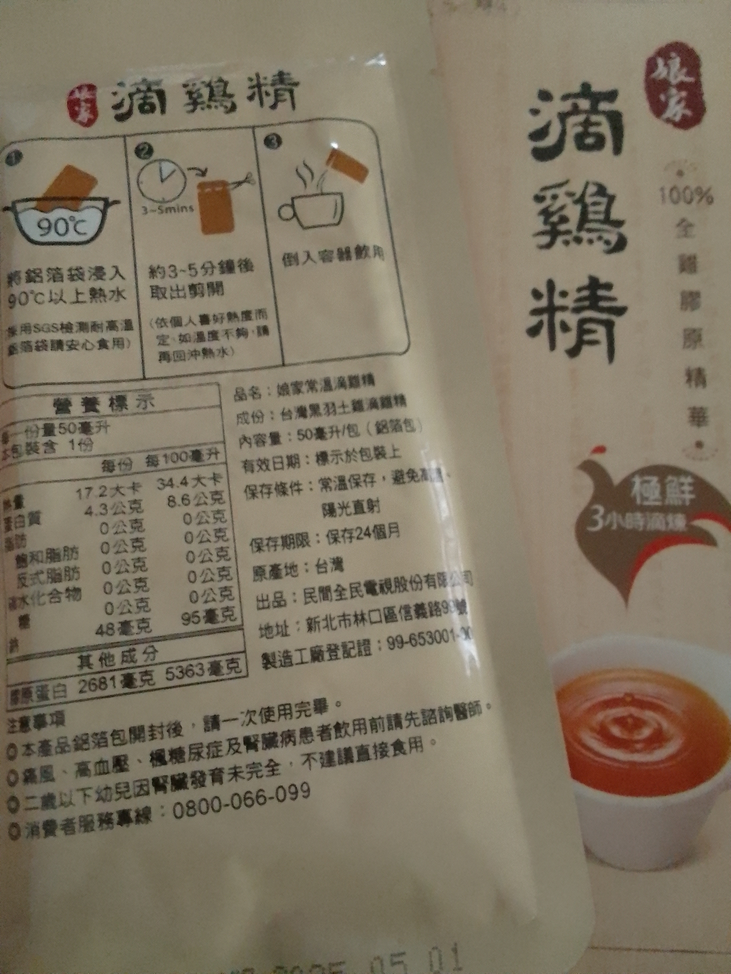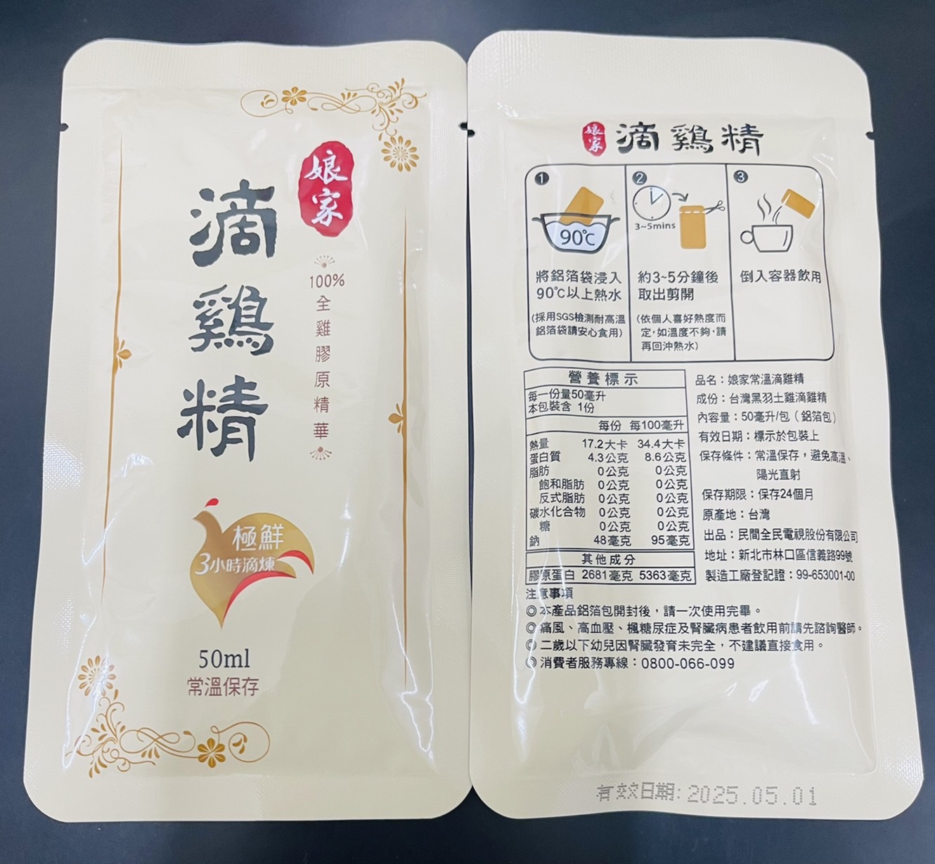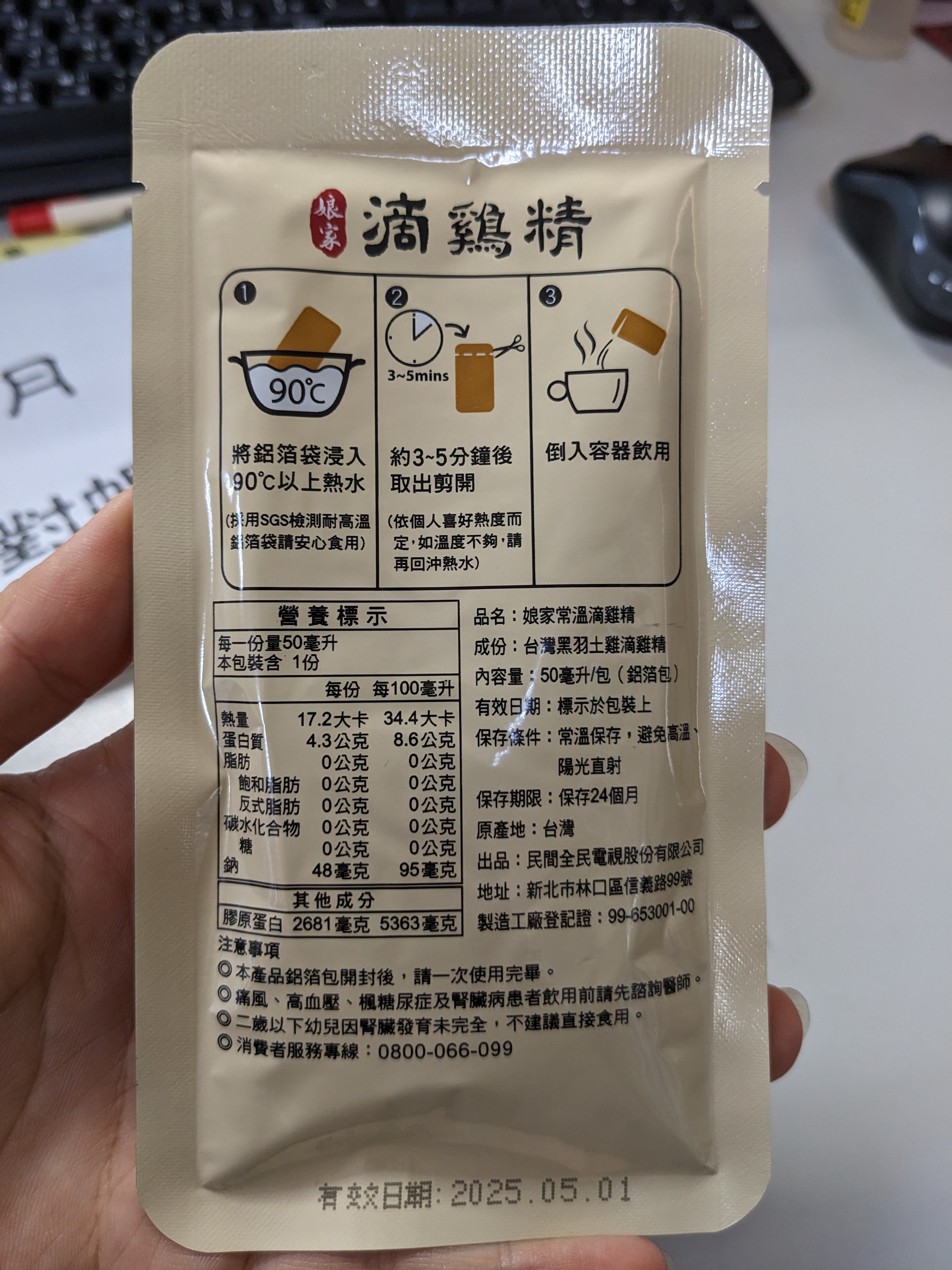 回列表 娘家常溫滴雞精 品質世界肯定 每一口都來自極鮮3小時滴煉 市價199元(免費申請) 所需等級 一般會員以上 所需學分 50 體驗份數 100 關注人數 1457 申請人數 358 申請截止 品牌業者:娘家 負責廠商 民間全民電視股份有限公司 廠商地址 新北市林口區信義路99號 產地 台灣 試用產品規格 2盒(一盒1入) 食品業者登錄字號 E-196975768-00000-9 投保產品責任險字號 0525字第22AML0002428號 心得分享 商品介紹 商品成分 使用方法 注意事項 體驗名單 9.2 娘家常溫滴雞精 香醇濃厚 9.2 好喝無腥味 9.2 滿滿膠原蛋白 8.9 元氣滋補 9.1 推薦送禮/自用保養 9.1 建議推薦 9.1 心得分享 96則 Jessica Su 鑽石達人 40歲 雲林縣 2023/08/18 對娘家常溫滴雞精留下評價 9 感謝食力食驗室這次提供寶貴的機會體驗"娘家常溫滴雞精"產品主打 品質世界肯定 每一口都來自極鮮3小時滴煉推薦"娘家常溫滴雞精"的理由1.娘家這款滴雞精有別於一般市售滴雞精需要冷凍保存,常溫滴雞精可以隨身攜帶,出外旅行帶著喝也很方便~2.直接喝味道滿濃厚,但沒有腥味希望改善的地方:1.定價一小包199,價格有點高。2.一小包用一個紙盒裝,有點過度包裝,希望能考慮減碳環保減少過度包裝感謝食力食驗室提供這次體驗機會,希望下次還能有機會體驗其他產品~~ 陳卡比 金食達人 38歲 臺南市 2023/08/18 對娘家常溫滴雞精留下評價 8 最近因為懷孕的關係開始喝起了滴雞精感謝這次能有機會體驗到不同品牌的滴雞精娘家這款滴雞精很方便的是可以常溫保存,攜帶很方便口味上是純雞精,沒有添加中藥材, 是很純粹的味道喝起來比我之前喝的品牌還要濃郁,雞味比較重不過如果是怕味道太重的人 可能會不太習慣但還是在可接受的範圍內包裝簡潔,有單入的紙盒包裝要送禮時也蠻方便的 張芷瑋 金食達人 40歲 新北市 2023/08/18 對娘家常溫滴雞精留下評價 9 這是我第一次嘗試喝滴雞精,以前不敢喝還以為會有雞腥味,不過這次體驗,讓我對滴雞精印象超好的!平常放常溫就好,不需要冷藏,想喝的時候放進90度的熱水裡隔水加熱,就能吃到香噴噴的滴雞精了,撕開鋁箔袋的瞬間,濃郁的香味撲鼻而來,滴雞精舀起來顏色金黃金黃,看起來就很美味,娘家滴雞精是用黑羽土雞,它的營養價值相當高的因為不加任何一滴水,喝下去味道相當濃郁,很溫暖順口,每一口都能感受到它的純粹,對我這種超忙碌的人來說,真的是很方便補充營養的方式! Lily Liao 鑽石達人 34歲 新北市 2023/08/20 對娘家常溫滴雞精留下評價 7 感謝食力給予機會試吃娘家常溫滴雞精。此款滴雞精標榜極鮮3小時滴煉,含有100%全雞膠原精華,先前我只喝過冷凍保存的滴雞精,很好奇常溫的滴雞精是什麼味道。食用方法是浸入90℃以上的水3~5分鐘後取出剪開倒入容器,我得老實說90℃讓我滿困擾的,我知道水滾是100℃但我不知道該怎麼在沒有溫度計下的方式測量90℃,所以我就是等水滾,關火後就把滴雞精放進去計時5分鐘。剪開倒入容器後先聞到一個非常明顯的雞精味,這味道讓我有點害怕,以前喝瓶裝雞精都得捏著鼻子皺著臉才有辦法喝下去,一聞到就跟我過去的經驗做連結,先有了比較負面的印象,不過實際上喝下肚後,並沒有讓我害怕的雞精味,感覺上比較像雞湯,然而香氣沒有很足,就是一款還不錯的常溫滴雞精。雖然沒有比我之前試吃的冷凍滴雞精好喝,但常溫保存方便許多,這一點就略勝一籌,價格上也更實惠,我覺得是個很好的選擇。 AK Stein 鑽石達人 44歲 花蓮縣 2023/08/21 對娘家常溫滴雞精留下評價 9 包裝收納得很好,每包滴雞精都密封得很紮實平整,娘家滴雞精是目前喝完後覺得喝過的滴雞精中接受度最高的。娘家滴精雞精的份量介於中等,成分夠,適量的補充。製造日期直接壓印在每一包包裝上,而不是只有統一印於外盒,這樣每一包都有清楚效時間,設計很貼心。娘家滴雞精採用全程封存全雞的原汁精華,利用獨特的蒸氣不回流技術,每一隻三公斤的黑羽土雞只能滴出大概2包左右的娘家滴雞精,油脂分離零脂肪,滴滴甘醇不油膩。 irene yang 金食達人 32歲 新北市 2023/08/22 對娘家常溫滴雞精留下評價 10 很榮幸抽到試喝"娘家常溫滴雞精",真的讓我超驚艷的!首先,它的味道鮮美,帶有濃濃的雞香卻不人工也沒加任何一滴水,喝了一包還覺得不後夠。不同以往古早口味不大眾的雞精,喝起來超順口,一點都沒有腥味或是難嚥的感覺,就像喝了一碗超濃縮卻營養十足的雞湯。最方便的是,它簡單隔水加熱,隨時隨地都能喝到暖胃的雞湯,真的太方便了!對於忙碌的上班族,終於找到可以隨時補充能量的好拍擋。 陳昭安 鑽石達人 34歲 雲林縣 2023/08/23 對娘家常溫滴雞精留下評價 10 很開心能參與這次食驗室-「娘家常溫滴雞精」的試吃體驗,*外包裝:有明顯產品名稱、熱量、商品成分、保存期限以及外盒有說明食用方式。*商品成分內容物為: 台灣黑羽土雞滴雞精。*食用方式【隔水加熱】1. 將鋁箔包直接浸入90度c以上熱水。2. 約3-5分鐘後取出。3. 剪開鋁箔包,倒入容器內飲用。*試吃心得: 1.包裝隔水加熱預熱快。2.食用方式有圖解清楚明瞭。3.味道不腥不膩。4.隨身包好攜帶。5.很推薦大家食用。 涂秀英 鑽石達人 37歲 臺北市 2023/08/24 對娘家常溫滴雞精留下評價 10 市面上琳瑯滿目的雞精品牌,今天我要慎重推薦娘家100%全雞膠原精華滴雞精.拆開來就可以聞到淡淡的香氣,一般來說雞湯冷了會浮一